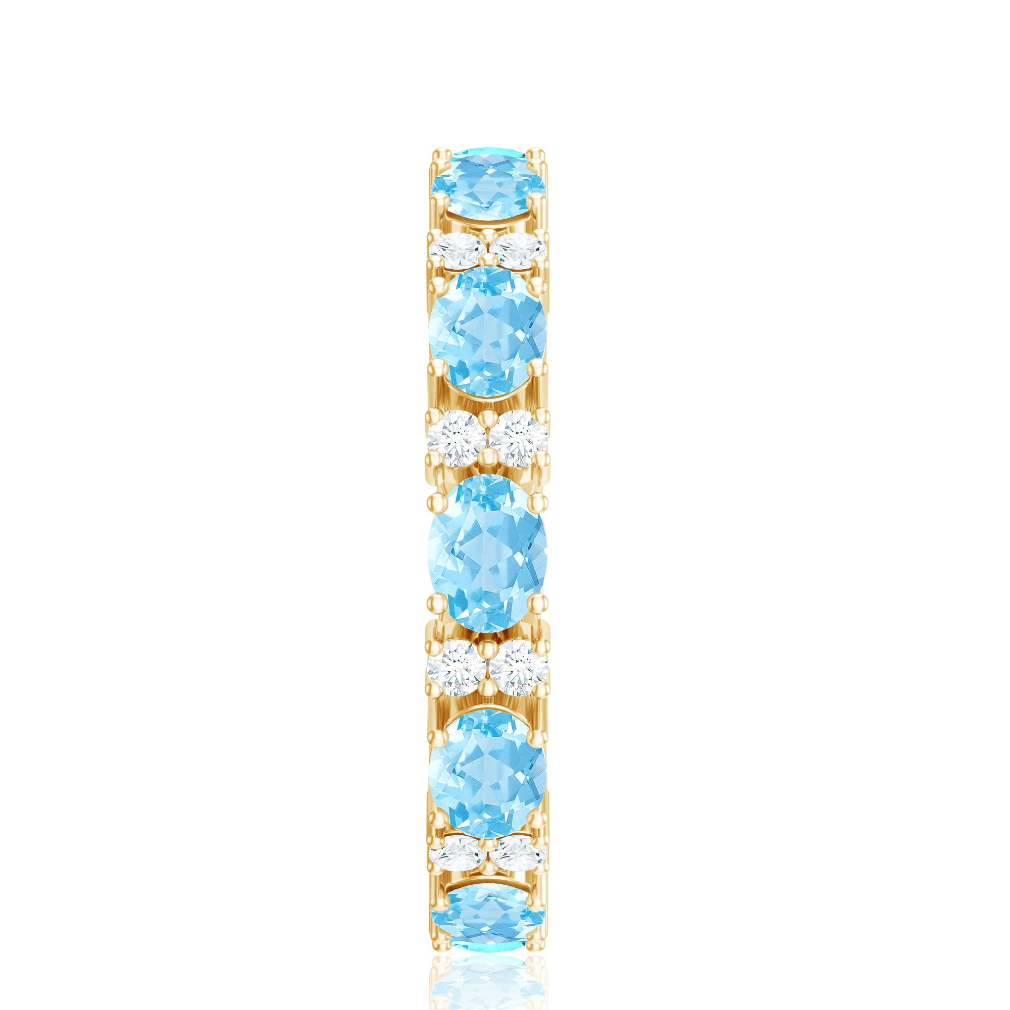 Mix it up with mixed-shape eternity bands! They use various stone shapes, like marquise and round cuts, for a unique and joyful look.