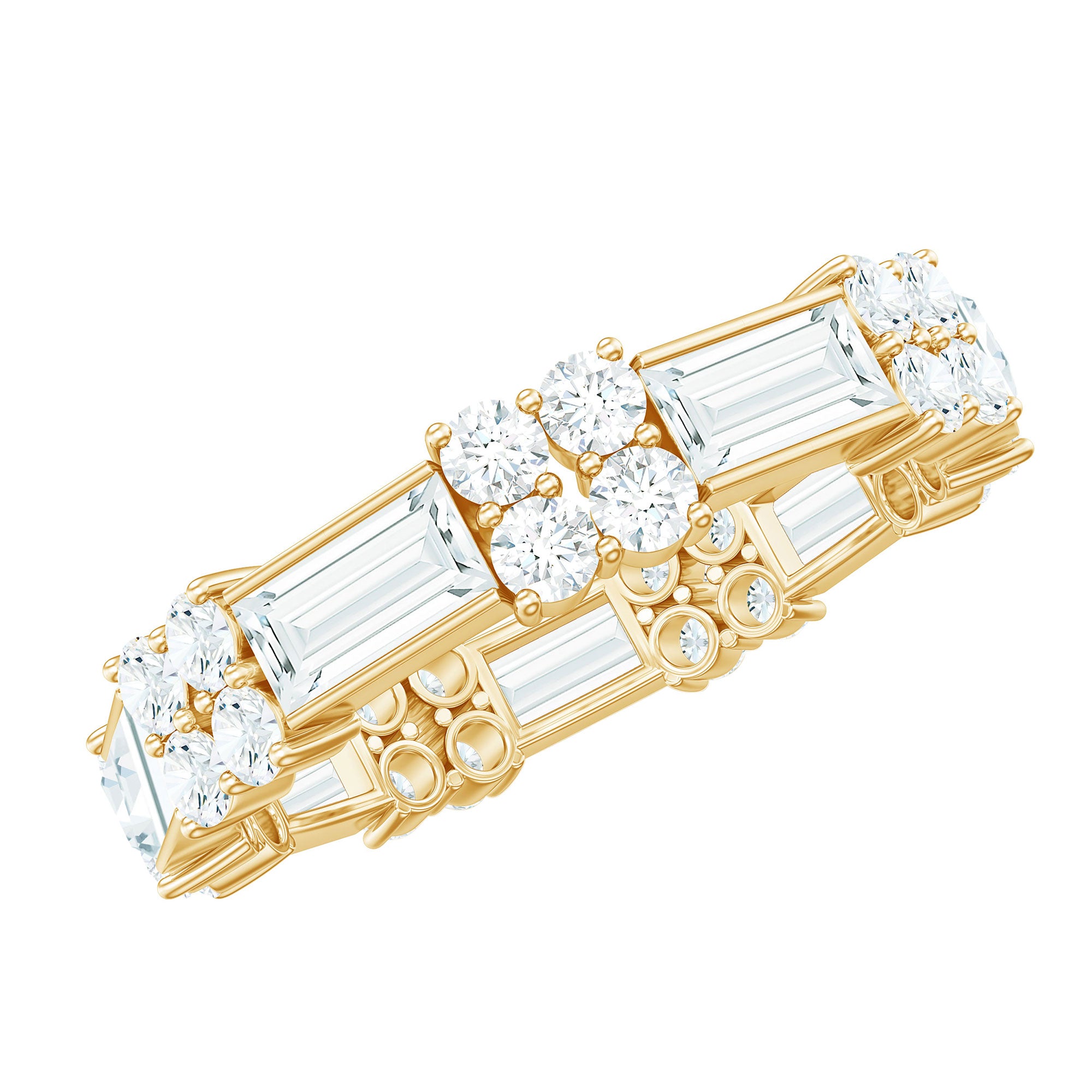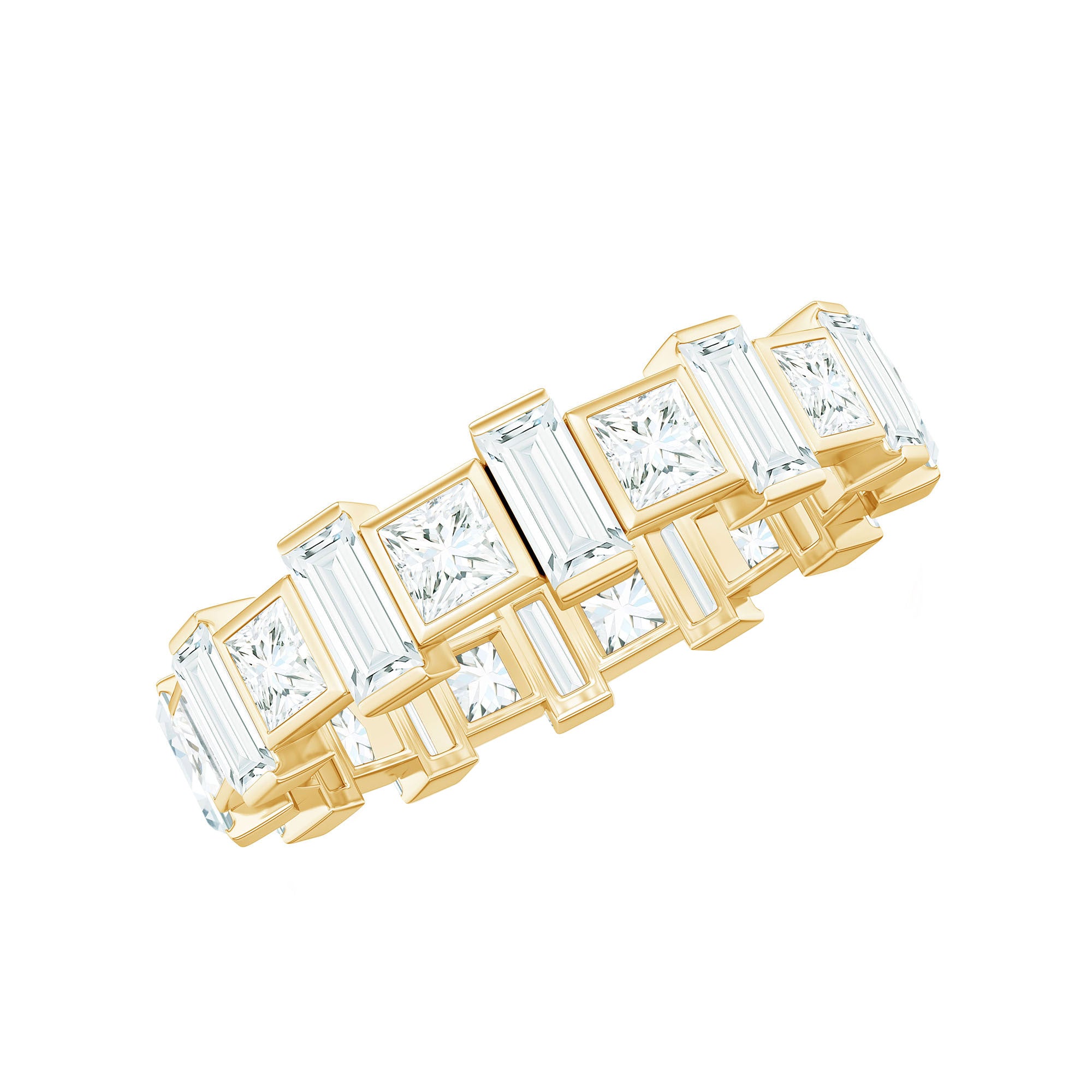 Mix it up with mixed-shape eternity bands! They use various stone shapes, like marquise and round cuts, for a unique and joyful look.