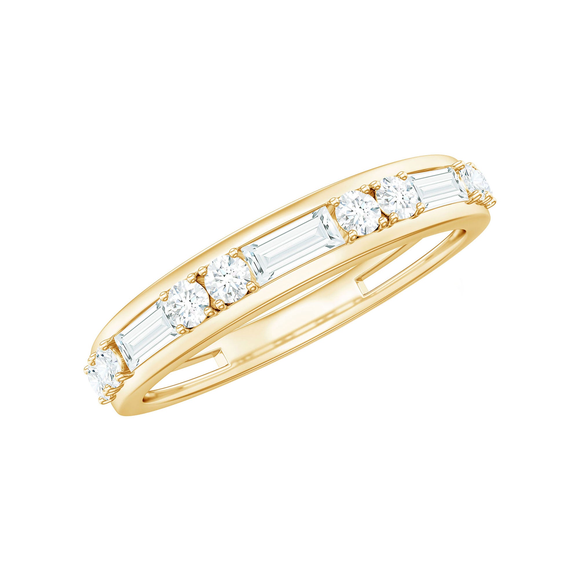 Half eternity rings feature stones on the upper half, covering 1/2 or 3/4 of the band. Considered more practical and comfortable, they allow larger stones compared to full eternity rings.