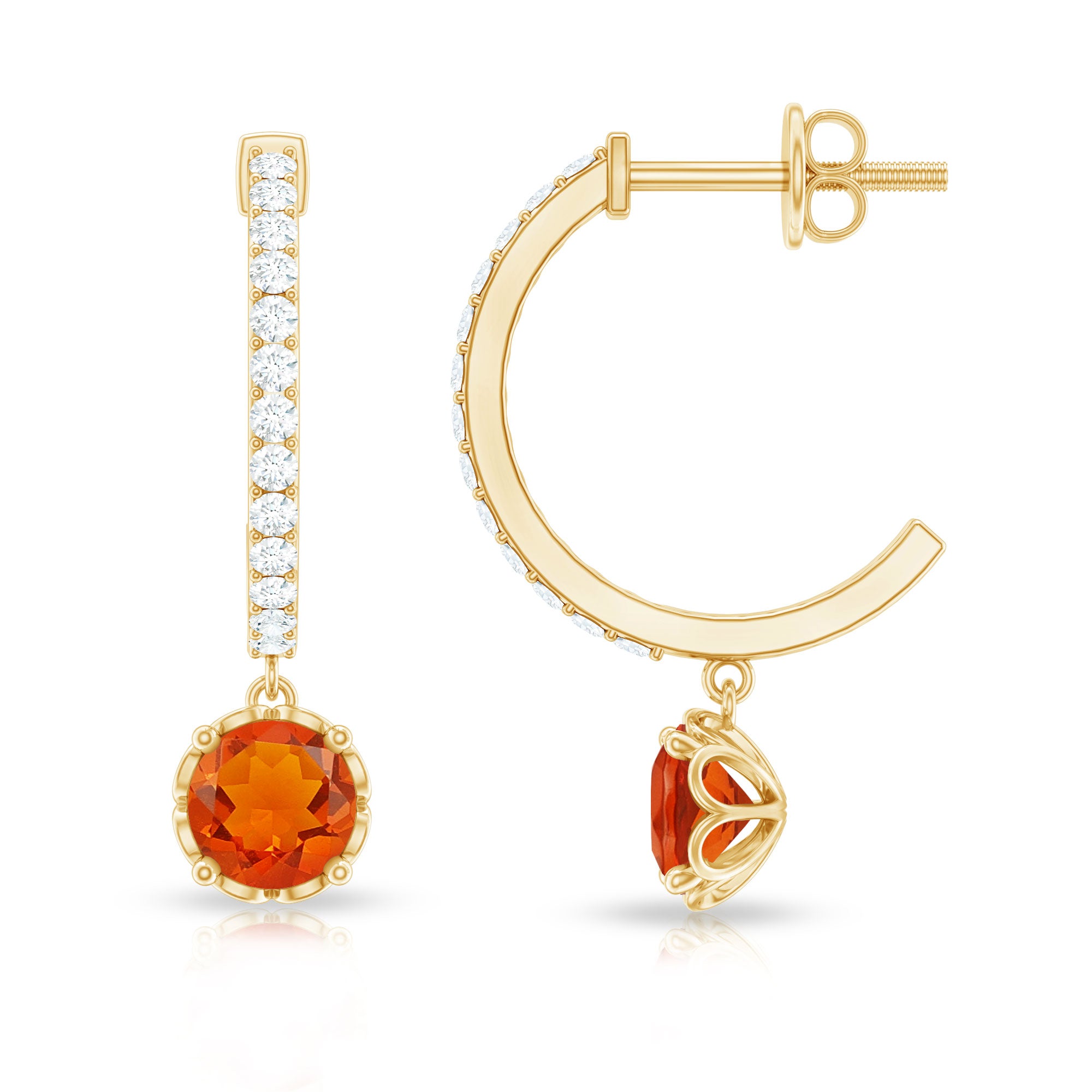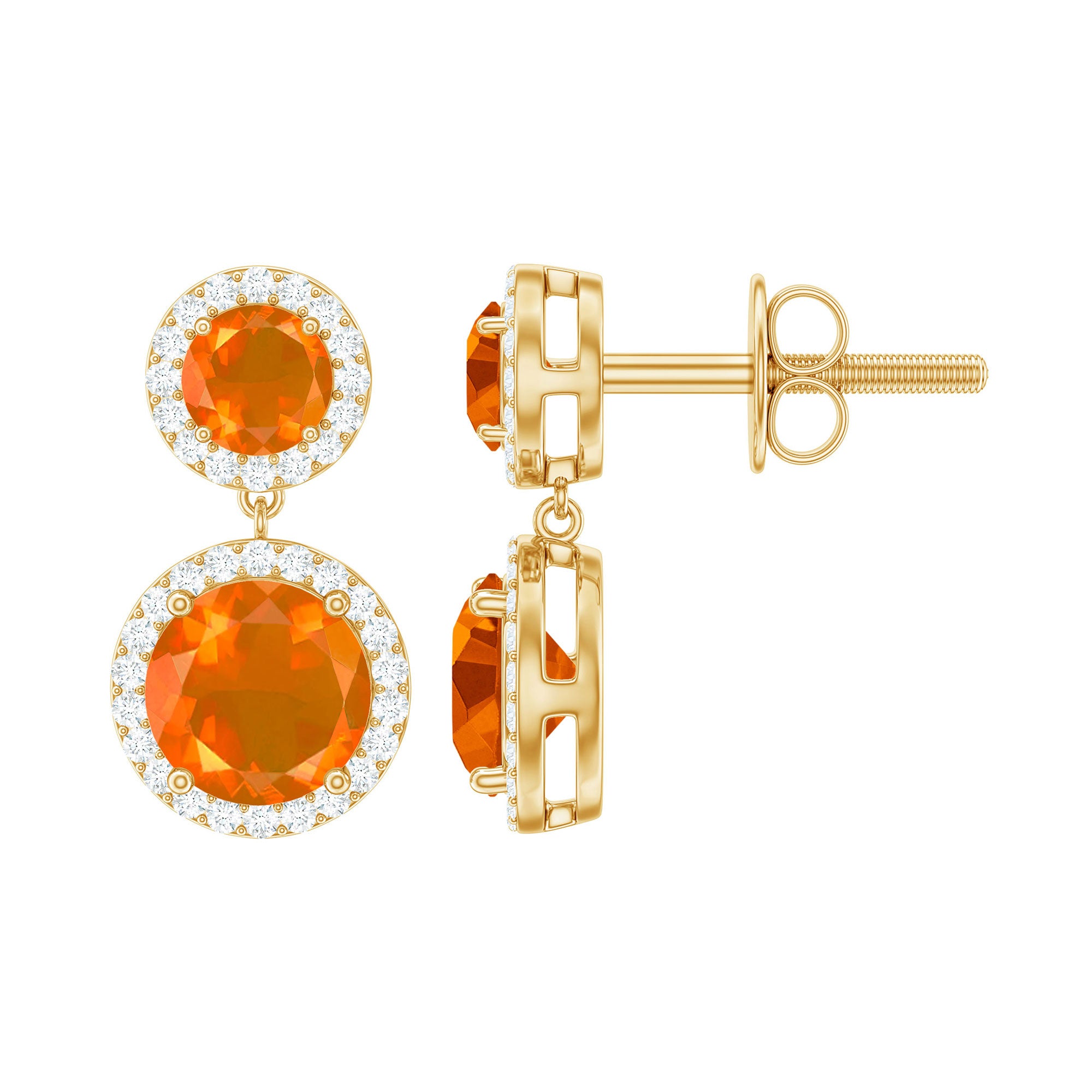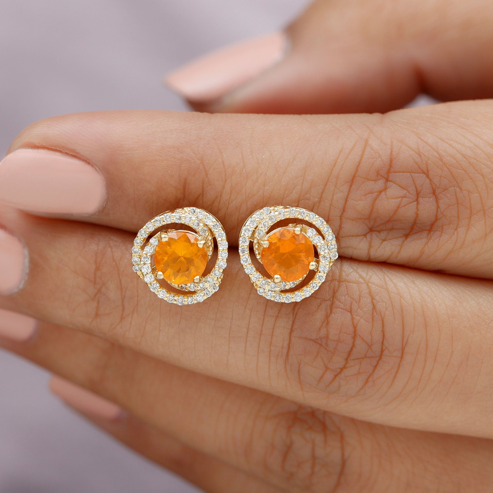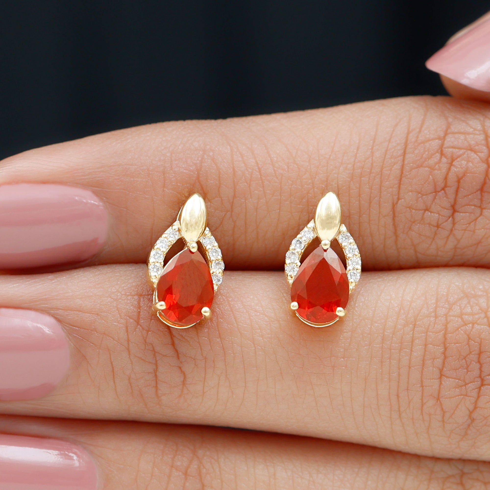 Rosec Jewels collections of fire opal earrings are all you need to level up your earrings fashion. these vibrant orange opal earrings will attract everyone's eyes towards you. the uniqueness of our fire opals is playing red, orange, and yellow colors in the best quality. the transparent translucent appearance of our gold fire opals gives you luxurious looks.