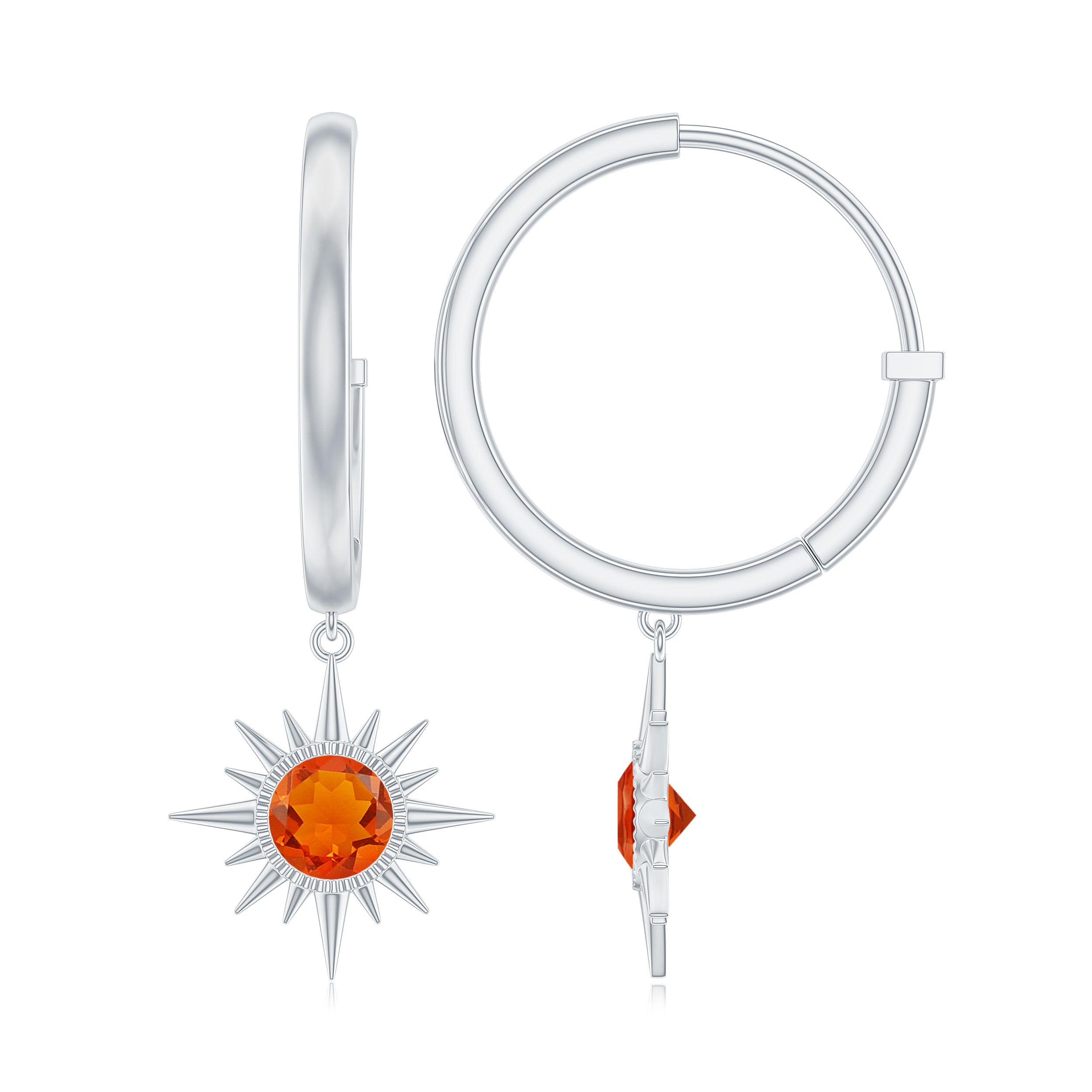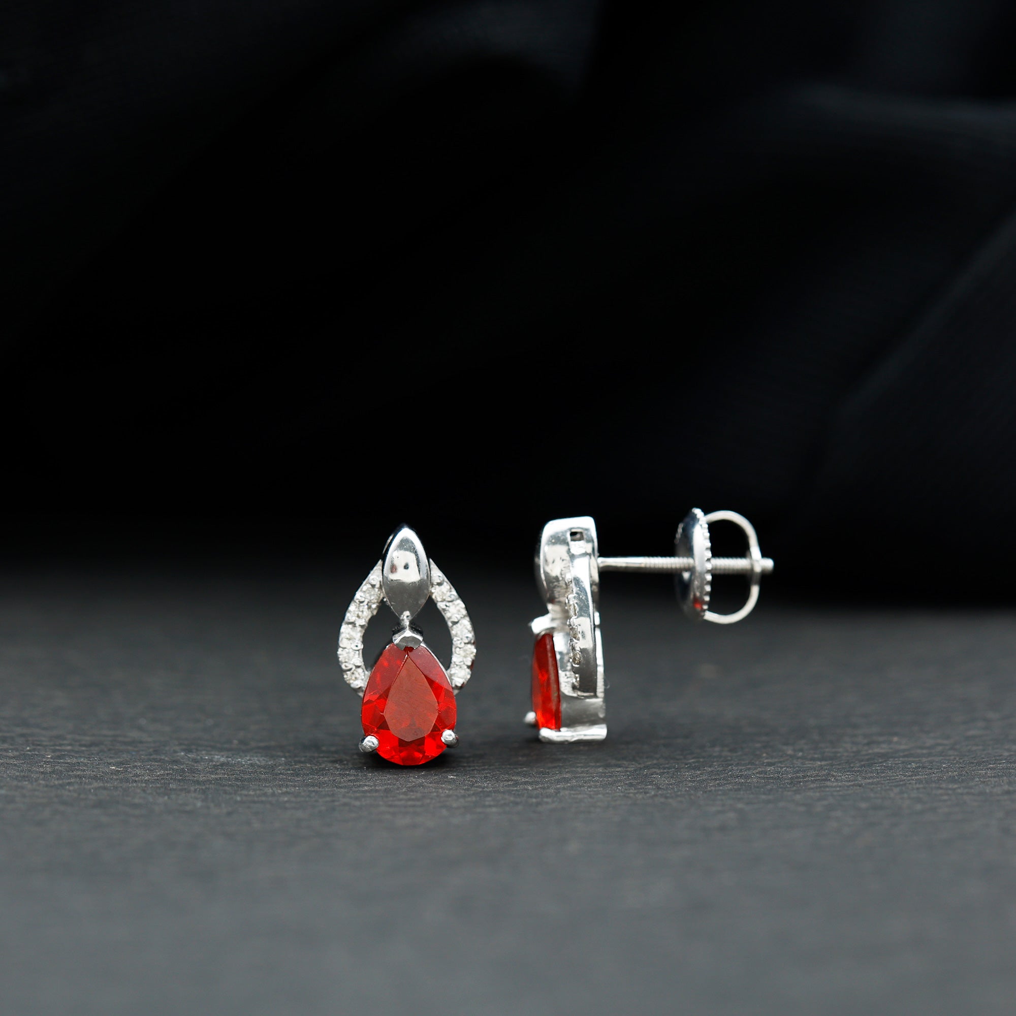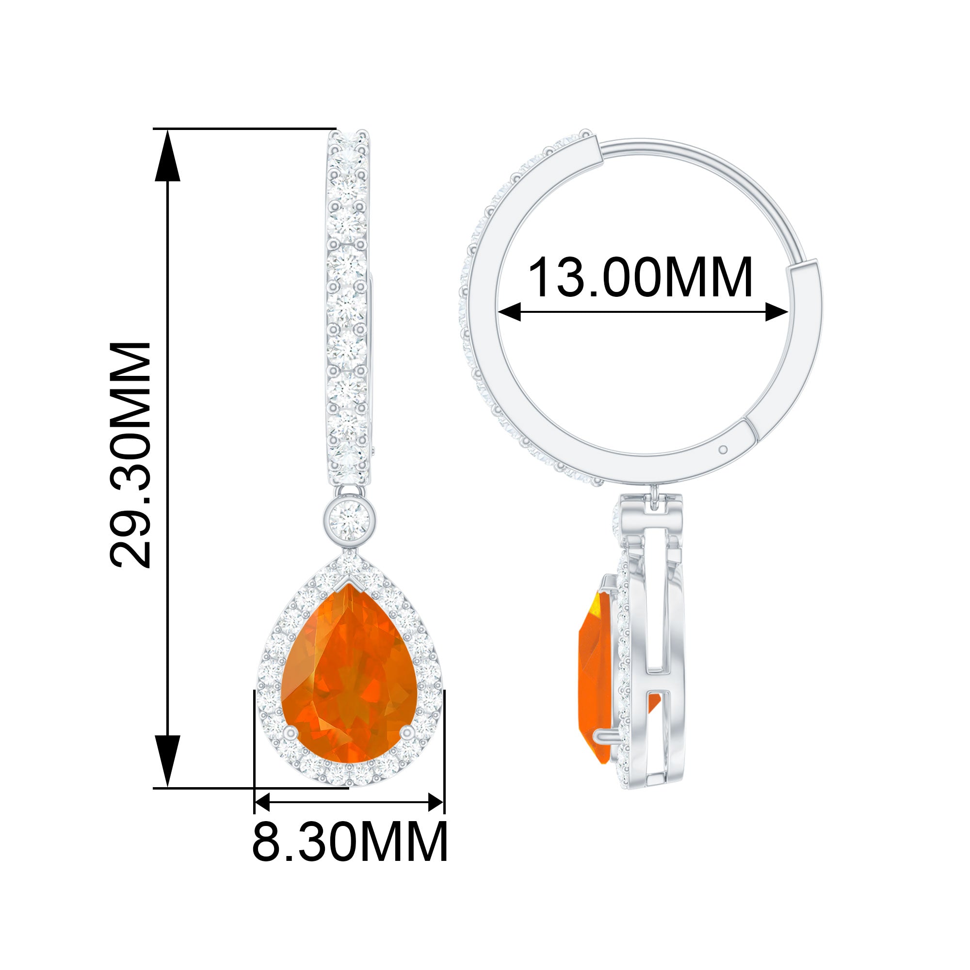 Want to buy fashionable and modern styles of earrings? Explore our fire opal hoop earrings collections with natural diamond and halo designs. Fire opal drop earrings are also one of the best styles in the Hoop earrings. White gold compliments the fiery red opal and gives you a modern look in this fashionable era.