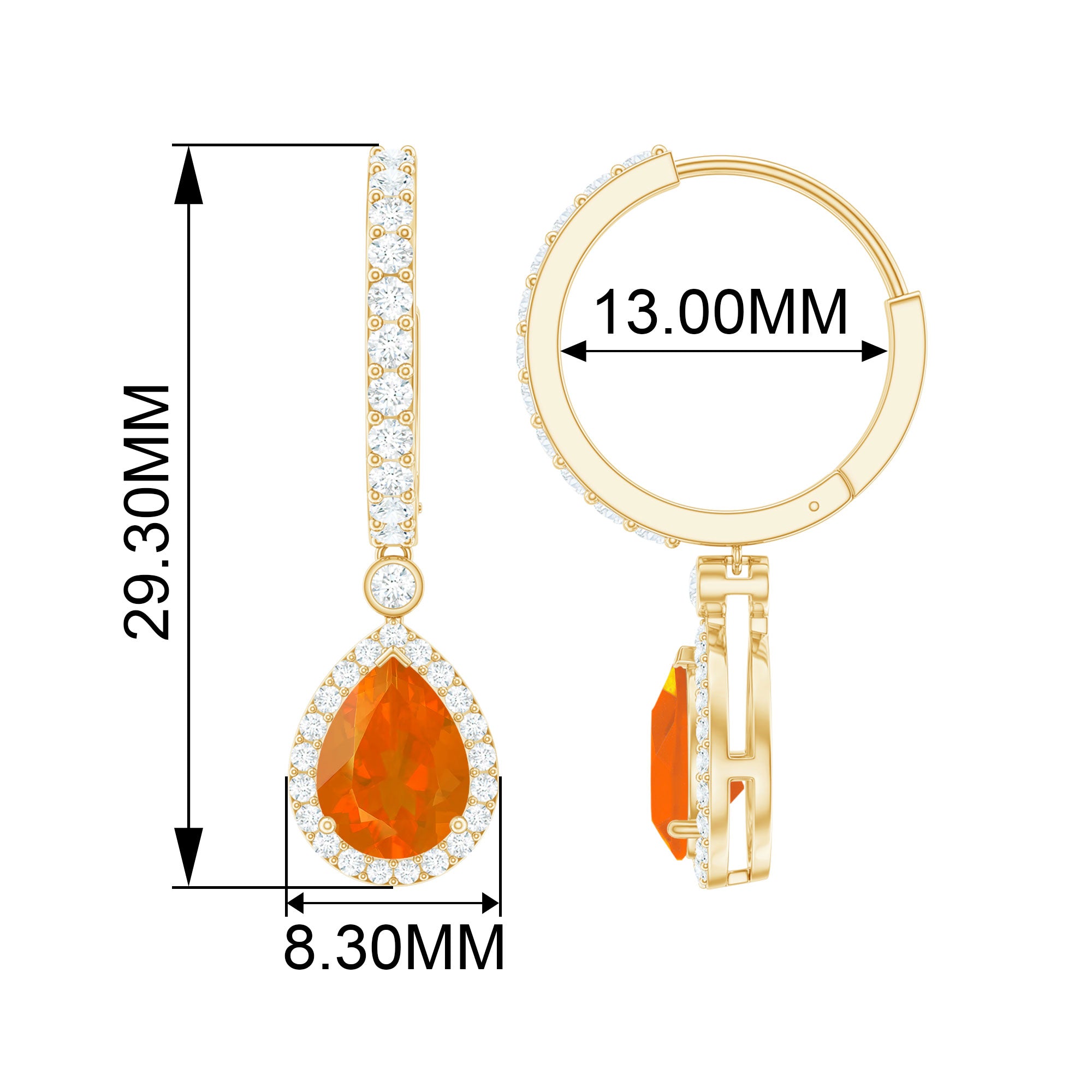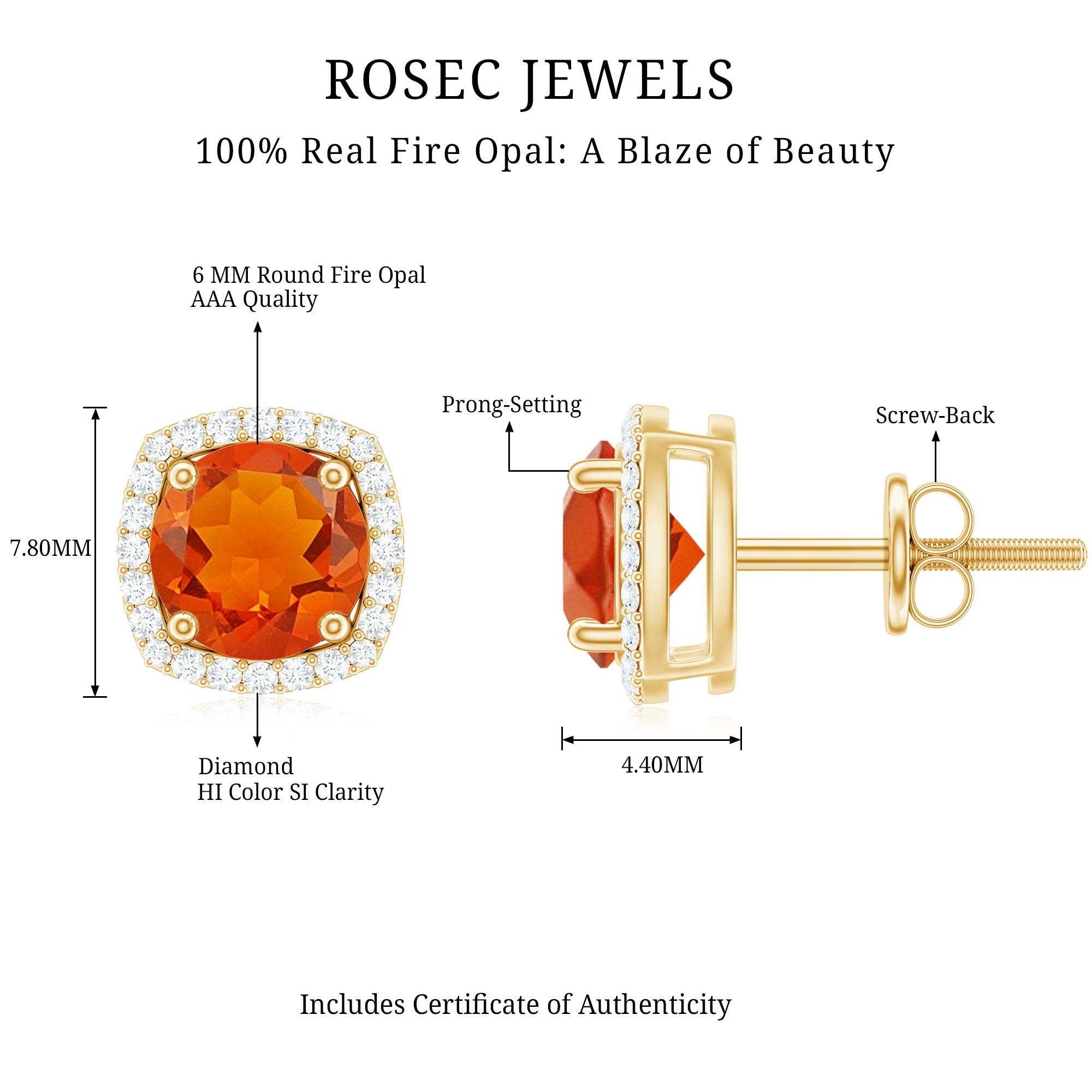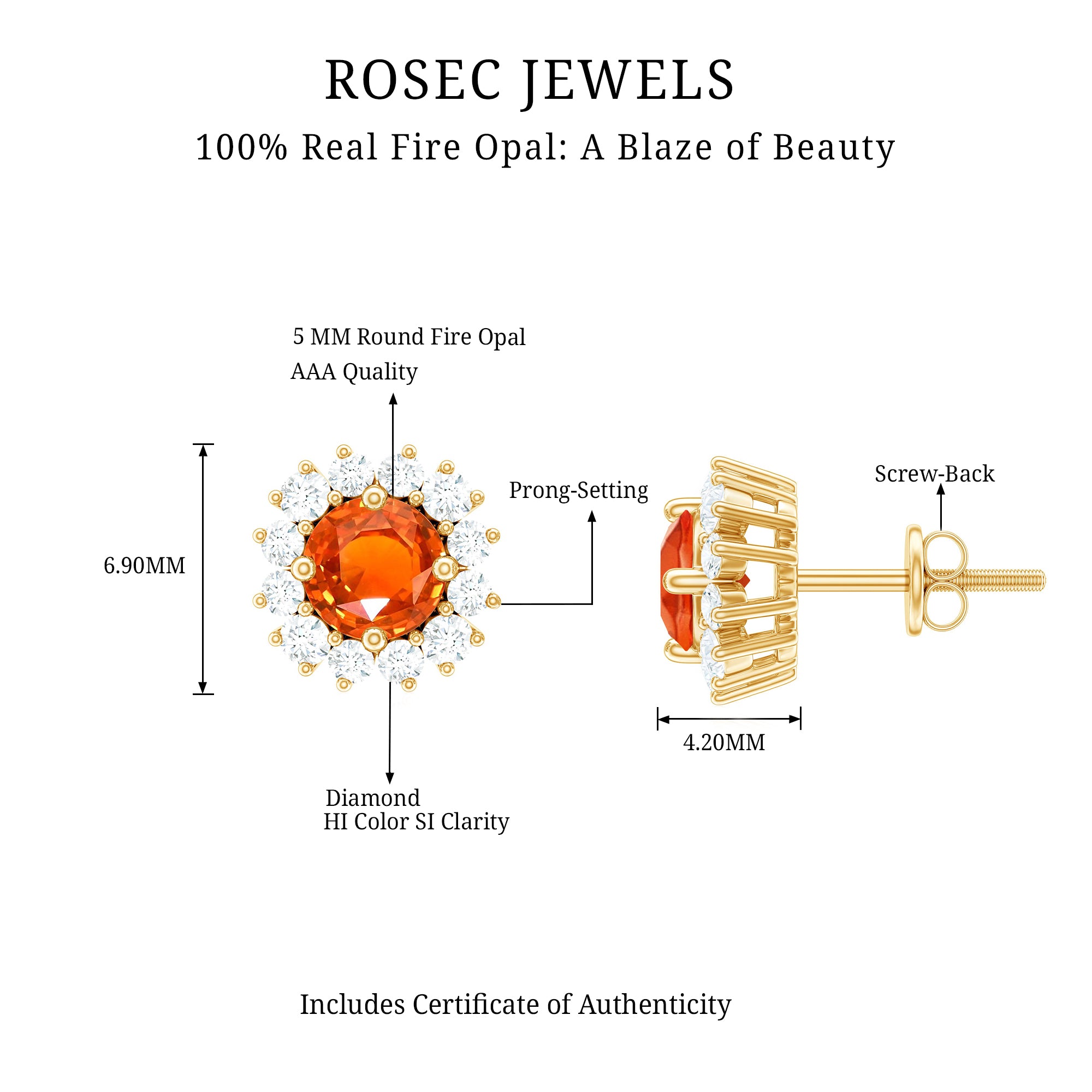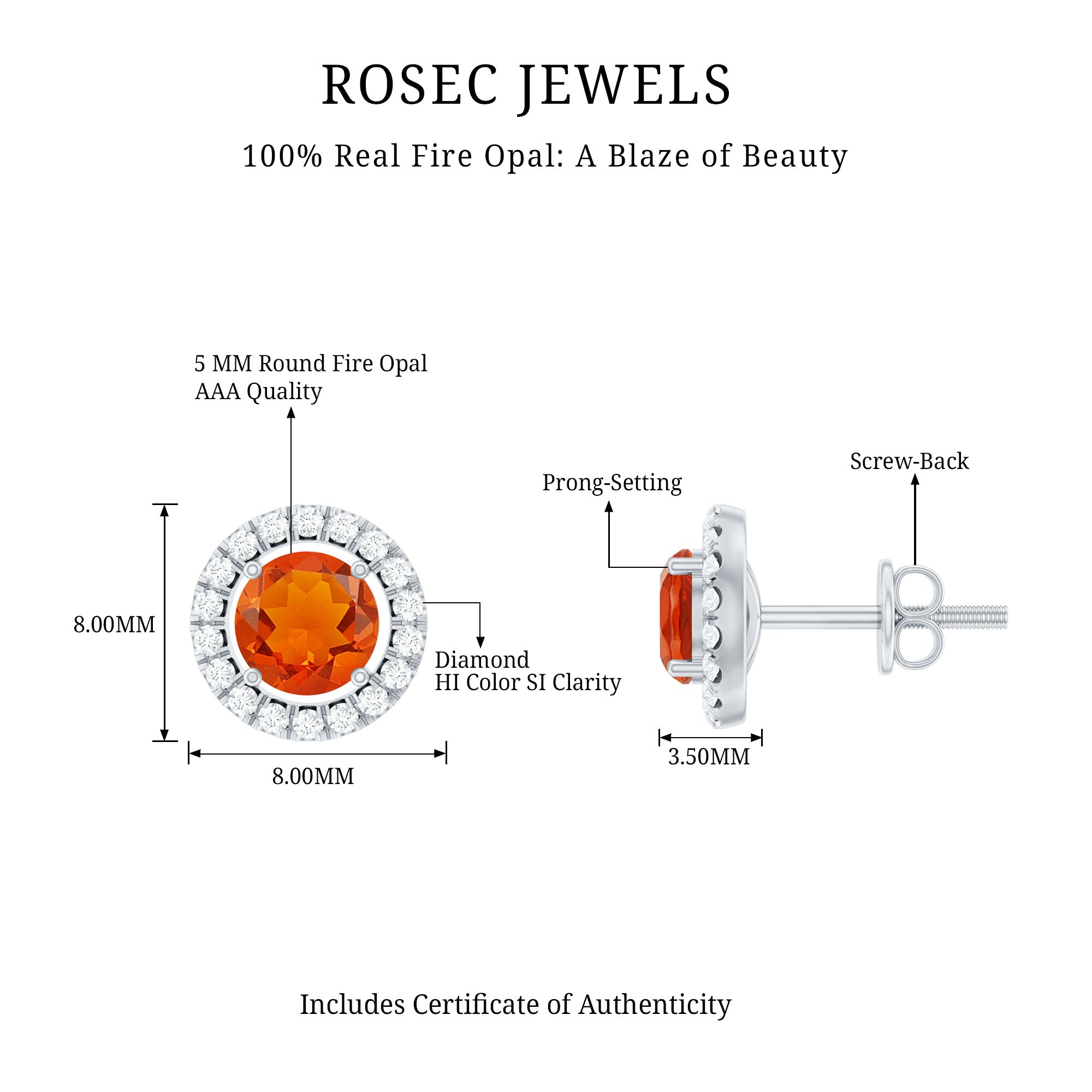 Color: At Rosec Jewels, our earrings feature the finest fire opals that exhibit a spectrum. Our fire opals have a rich and saturated color that showcases from vivid reds to bright oranges.