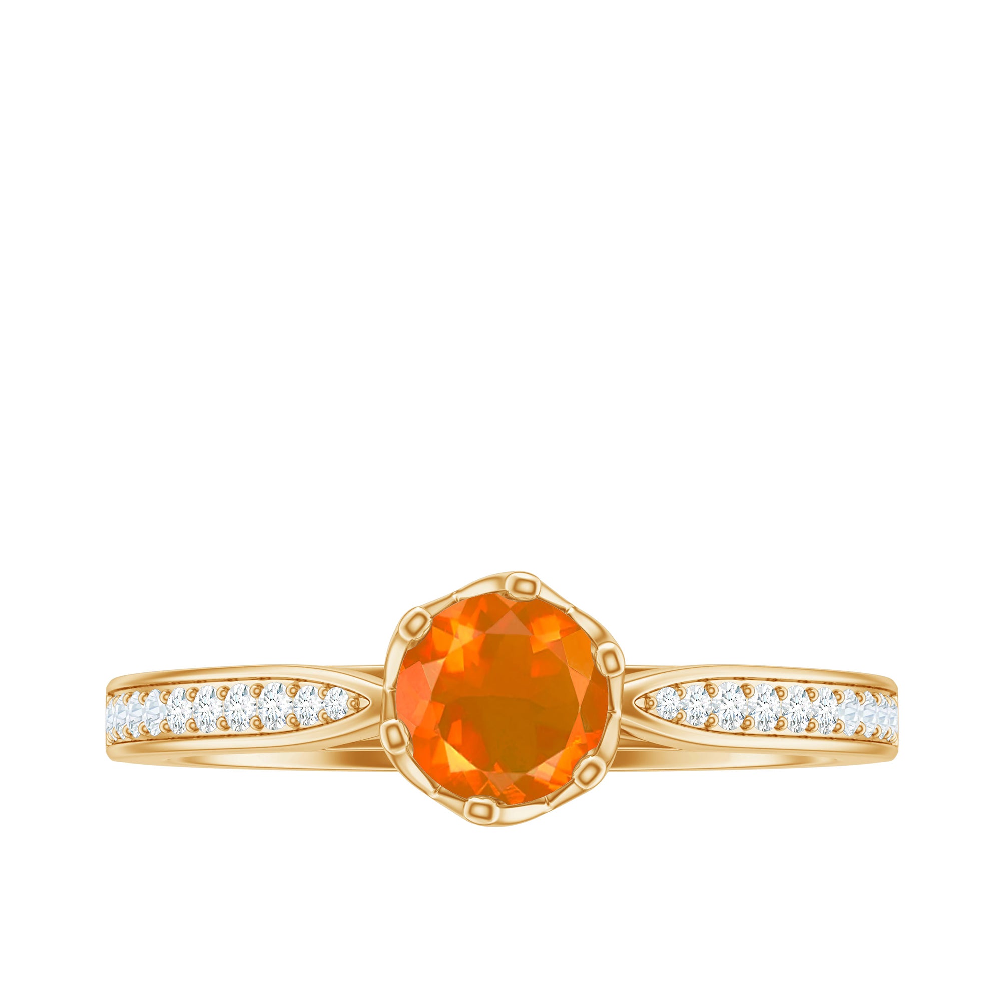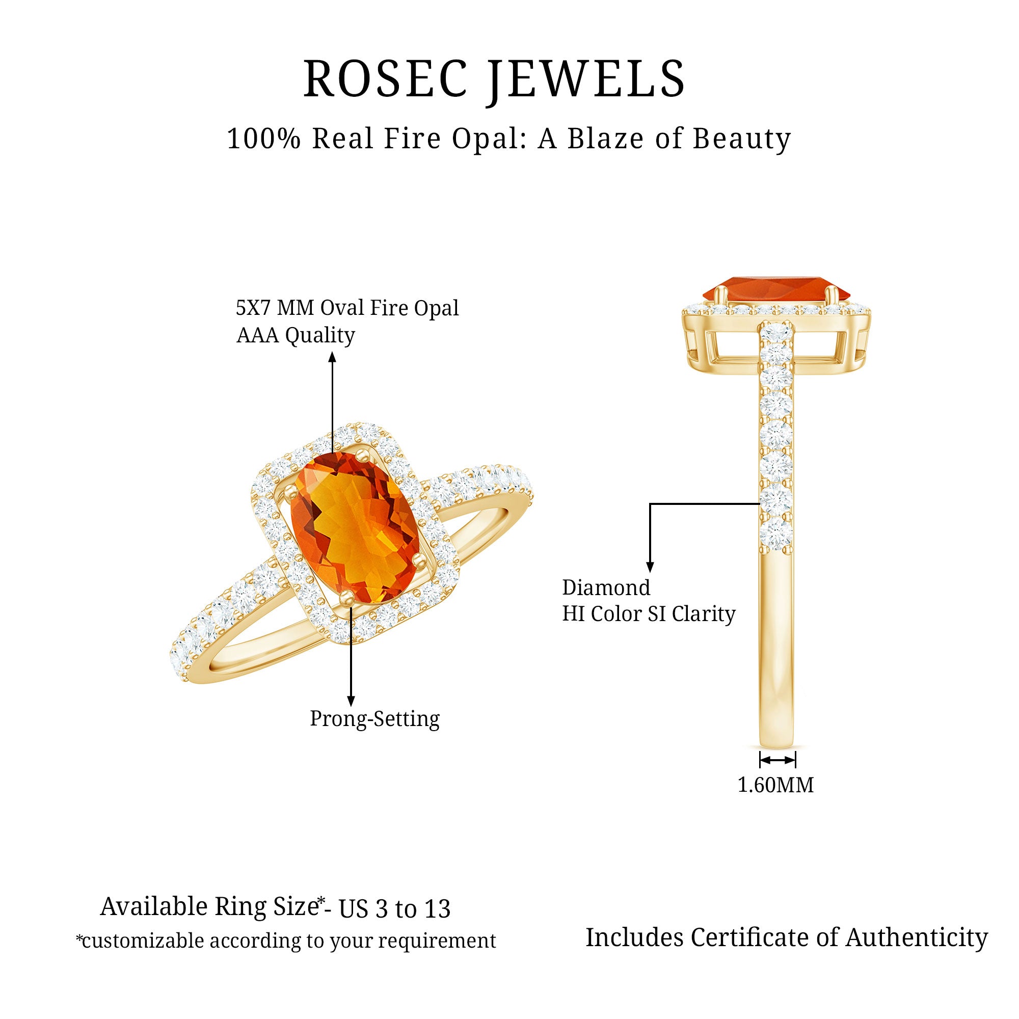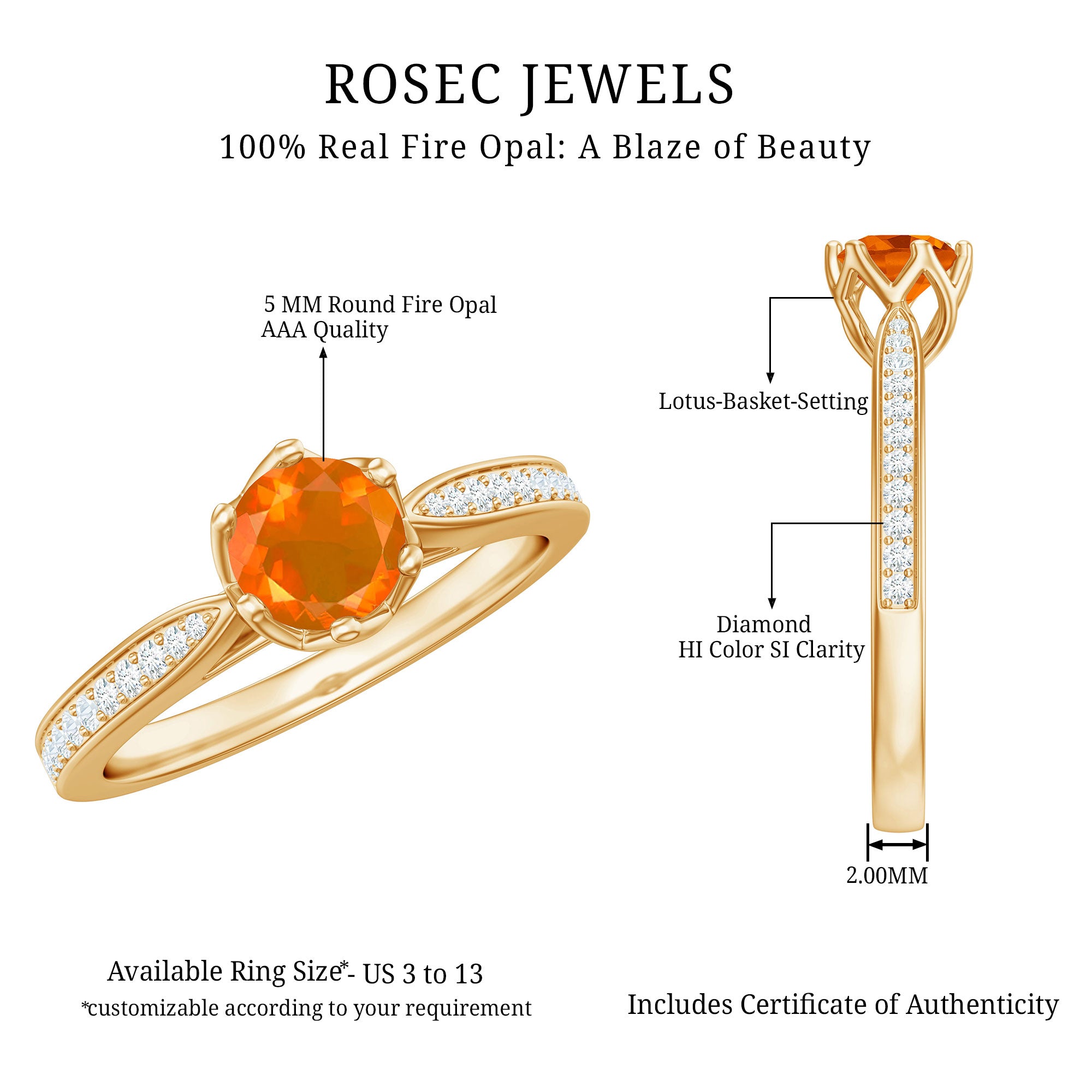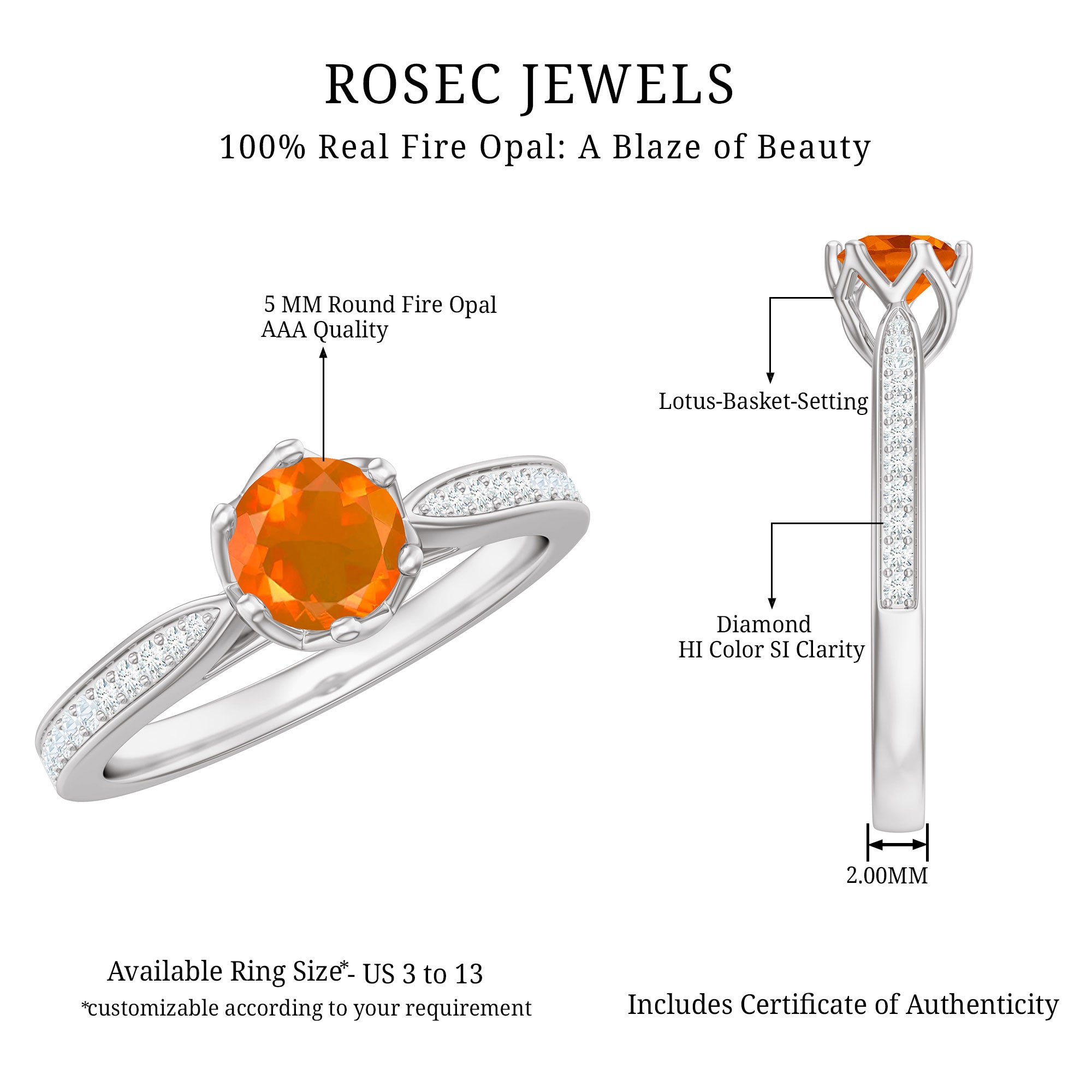 Features a center fire opal stone which takes all the attention with their fiery hues. The solitaire opal can be of any shape such as brilliant round, pear, heart, emerald cut and many more. This solitaire style adds the sophisticated touch to the ring.
