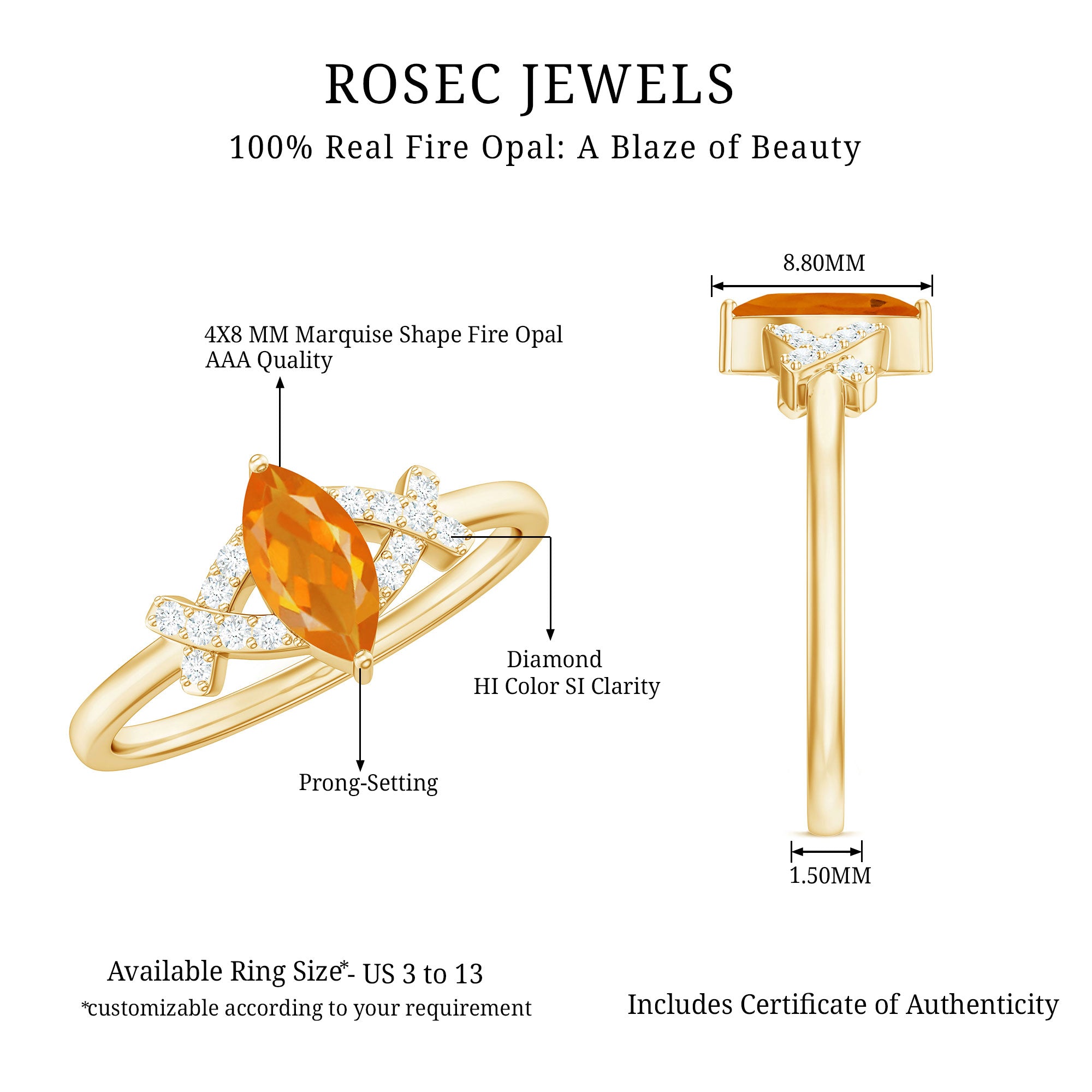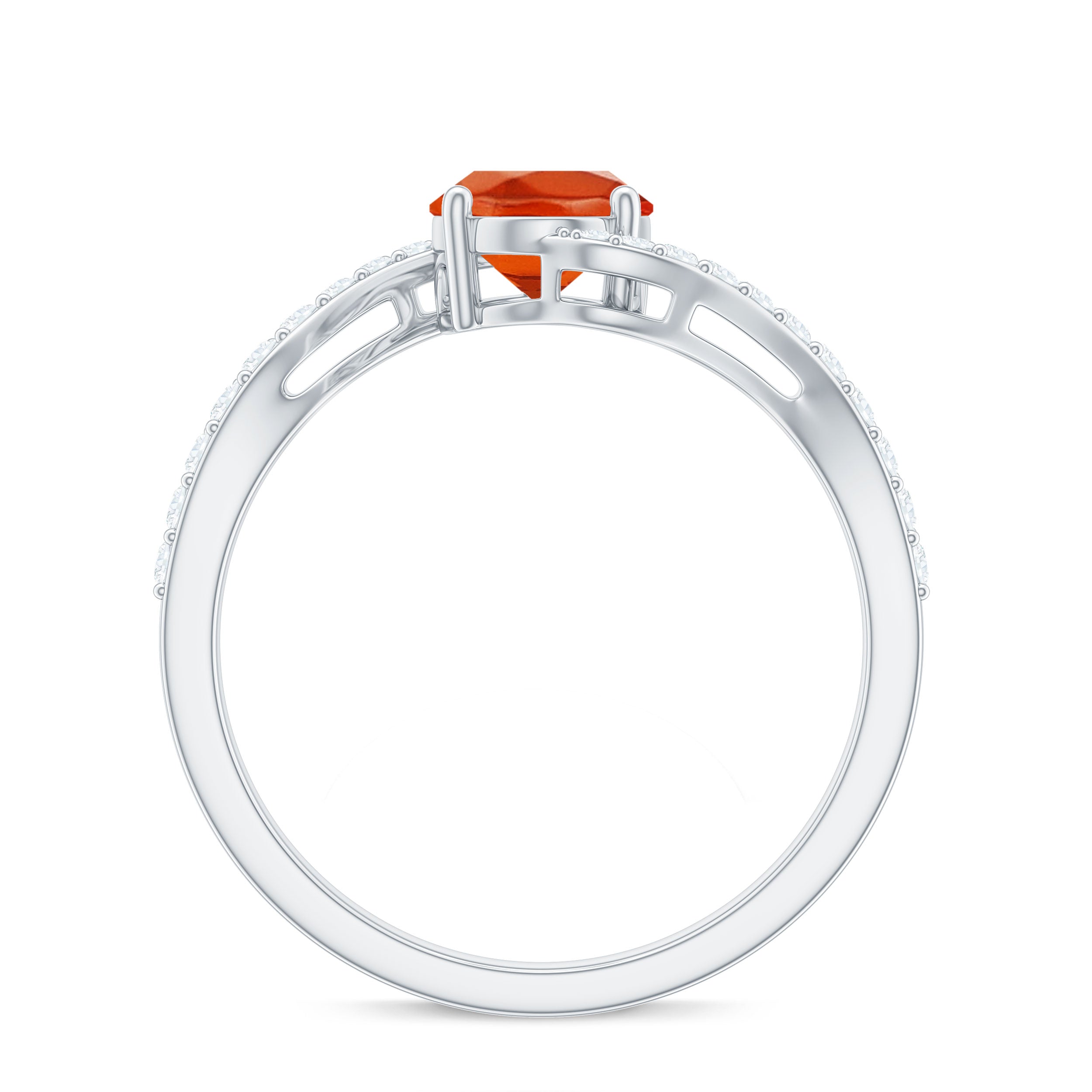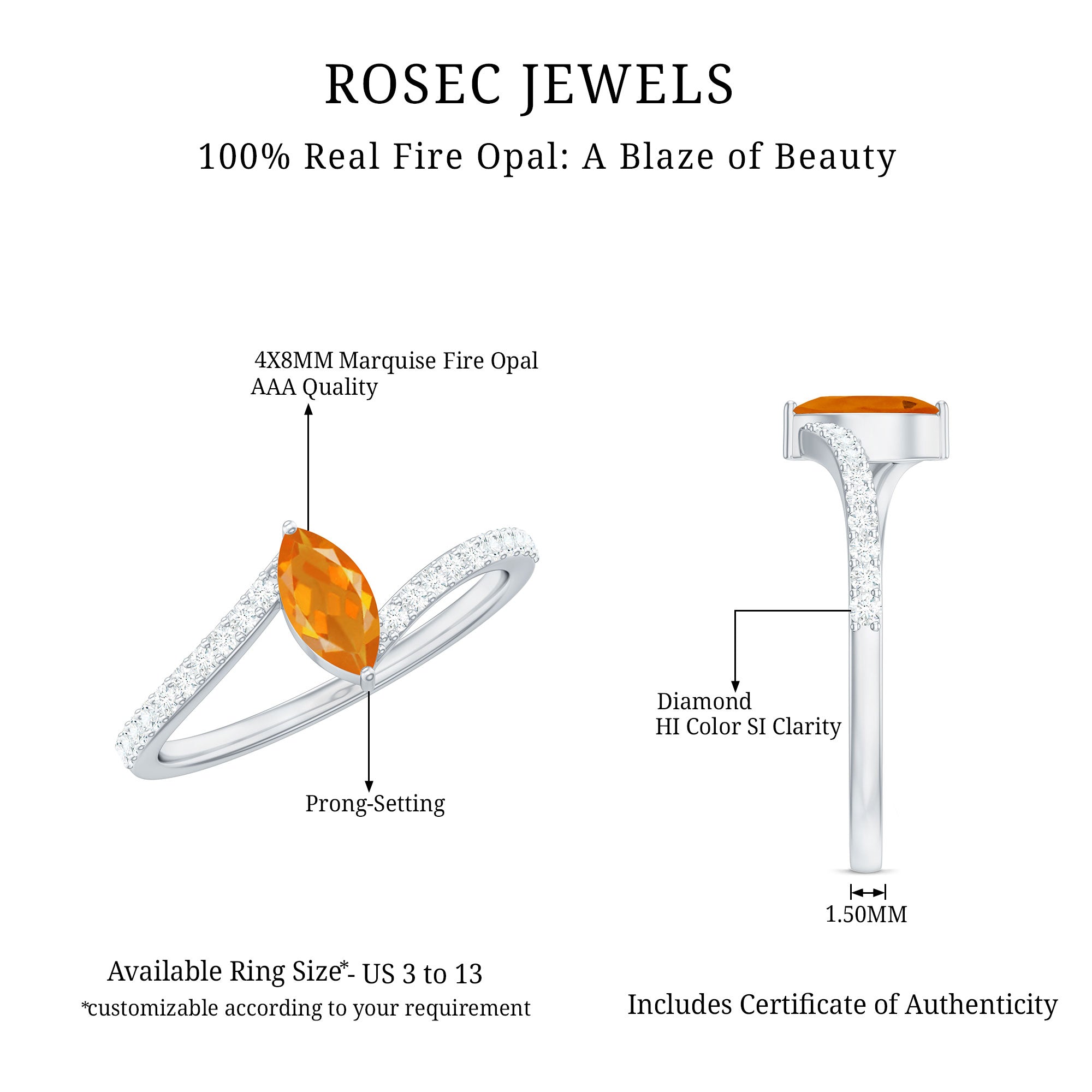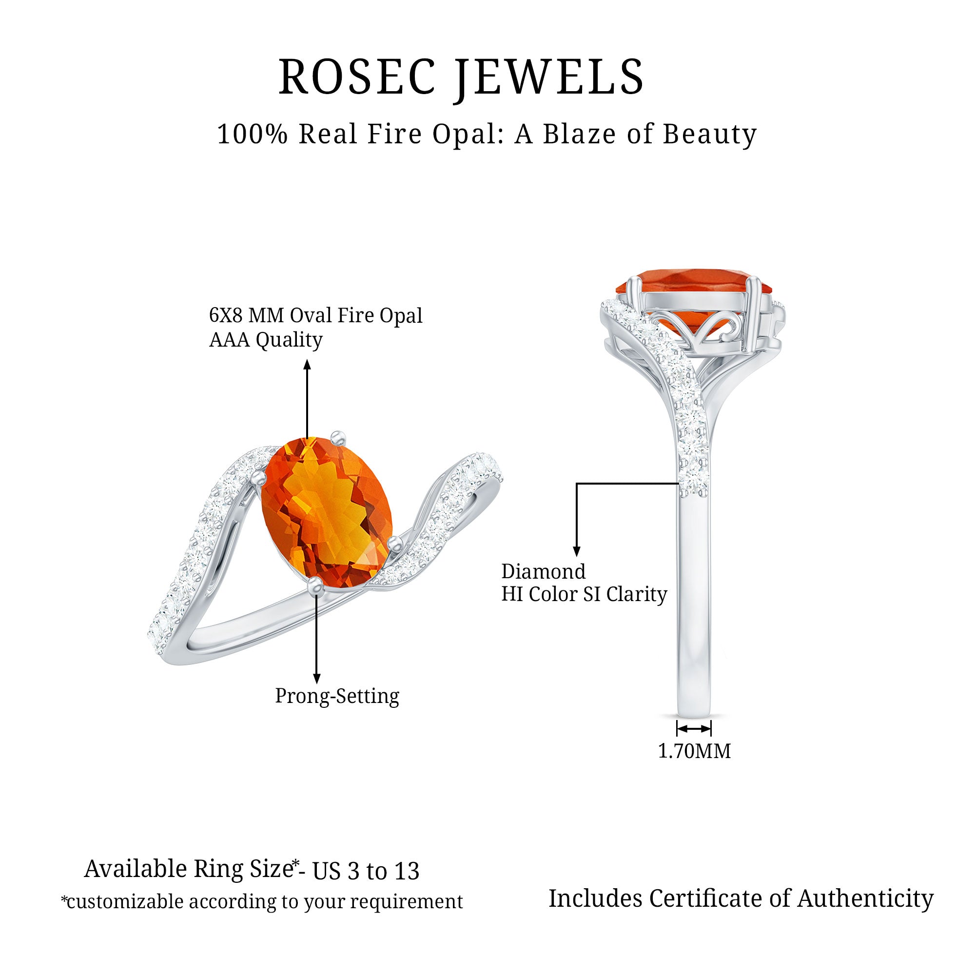 Features a center fire opal stone which takes all the attention with their fiery hues. The solitaire opal can be of any shape such as brilliant round, pear, heart, emerald cut and many more. This solitaire style adds the sophisticated touch to the ring.