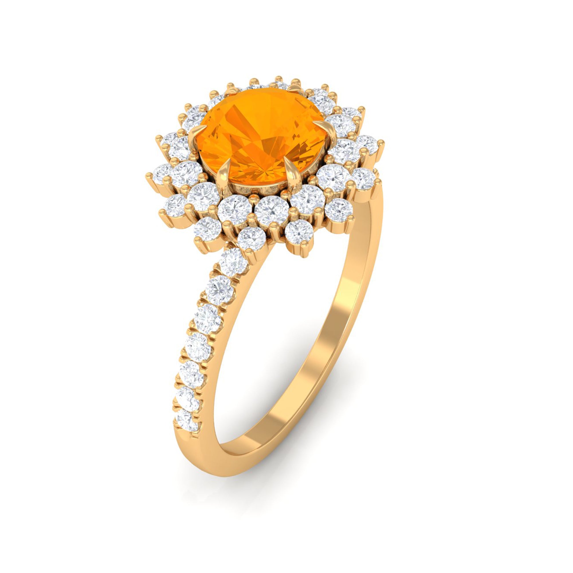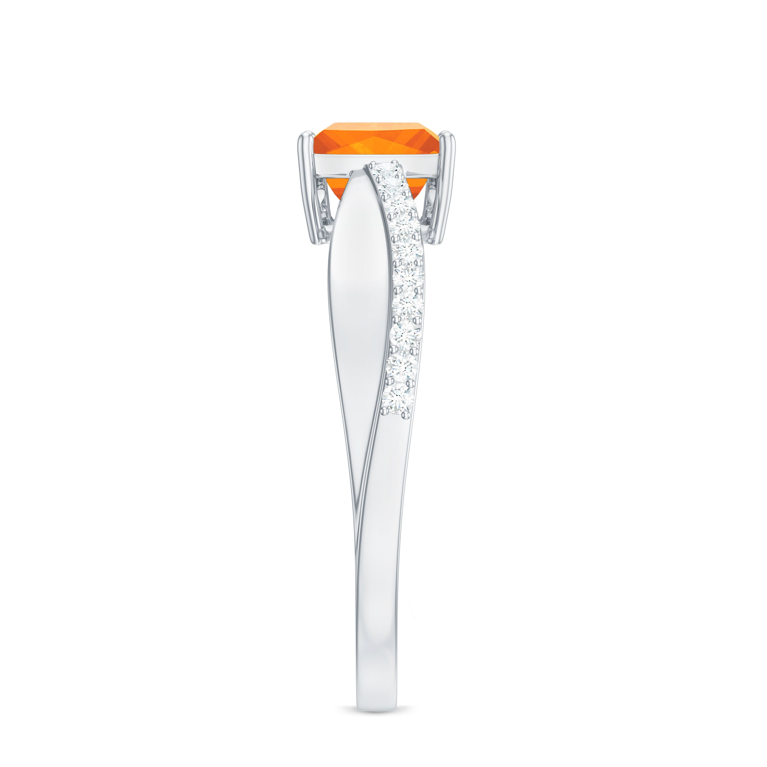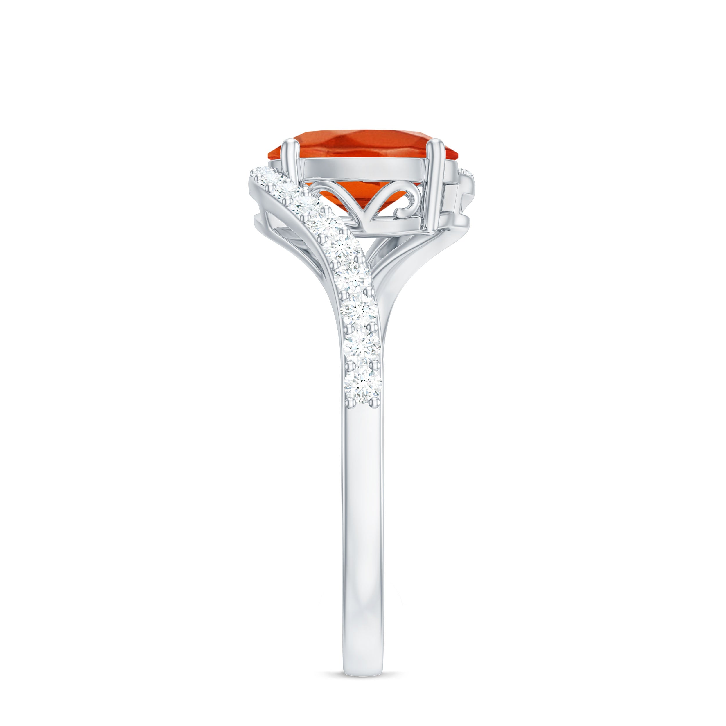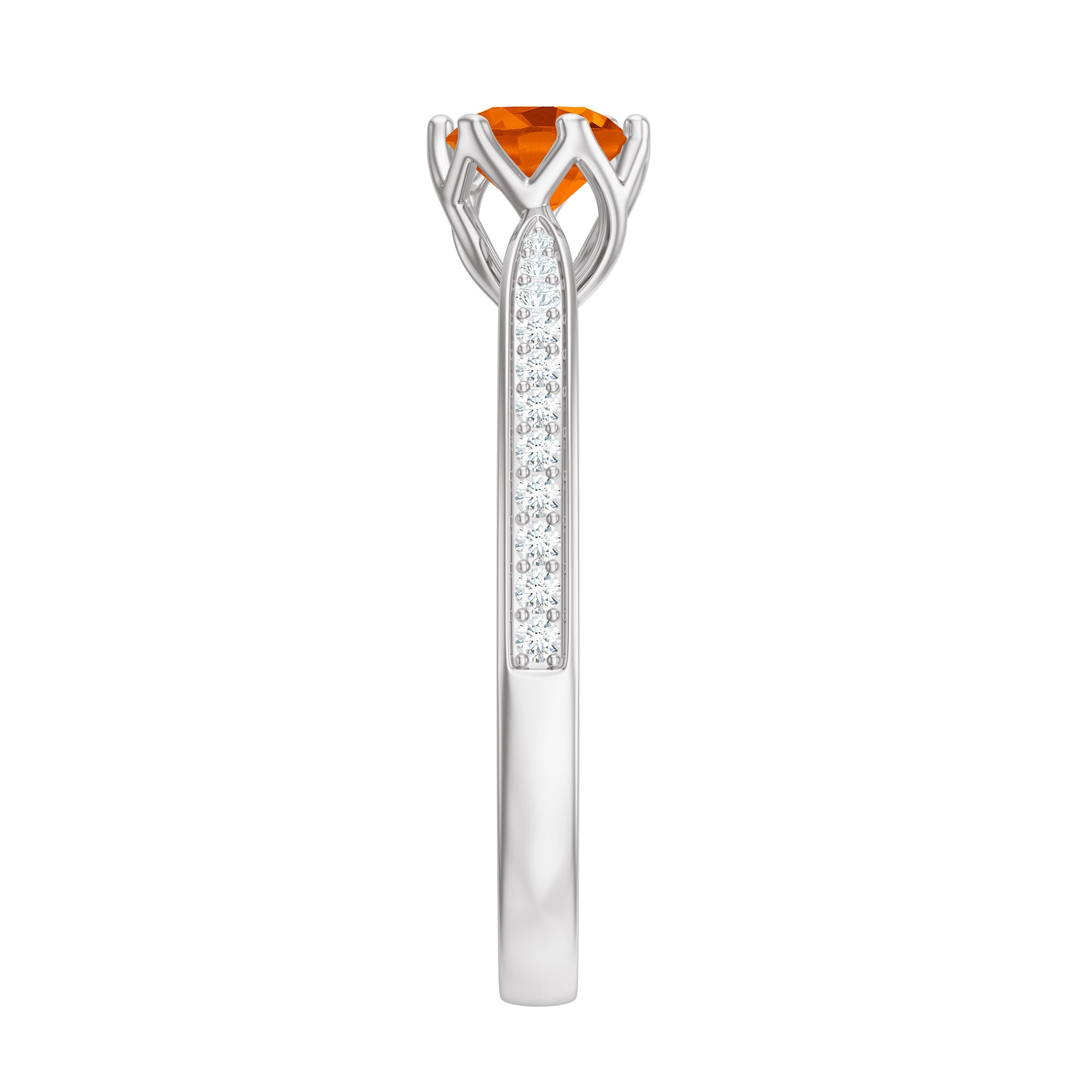 Features a center fire opal stone which takes all the attention with their fiery hues. The solitaire opal can be of any shape such as brilliant round, pear, heart, emerald cut and many more. This solitaire style adds the sophisticated touch to the ring.