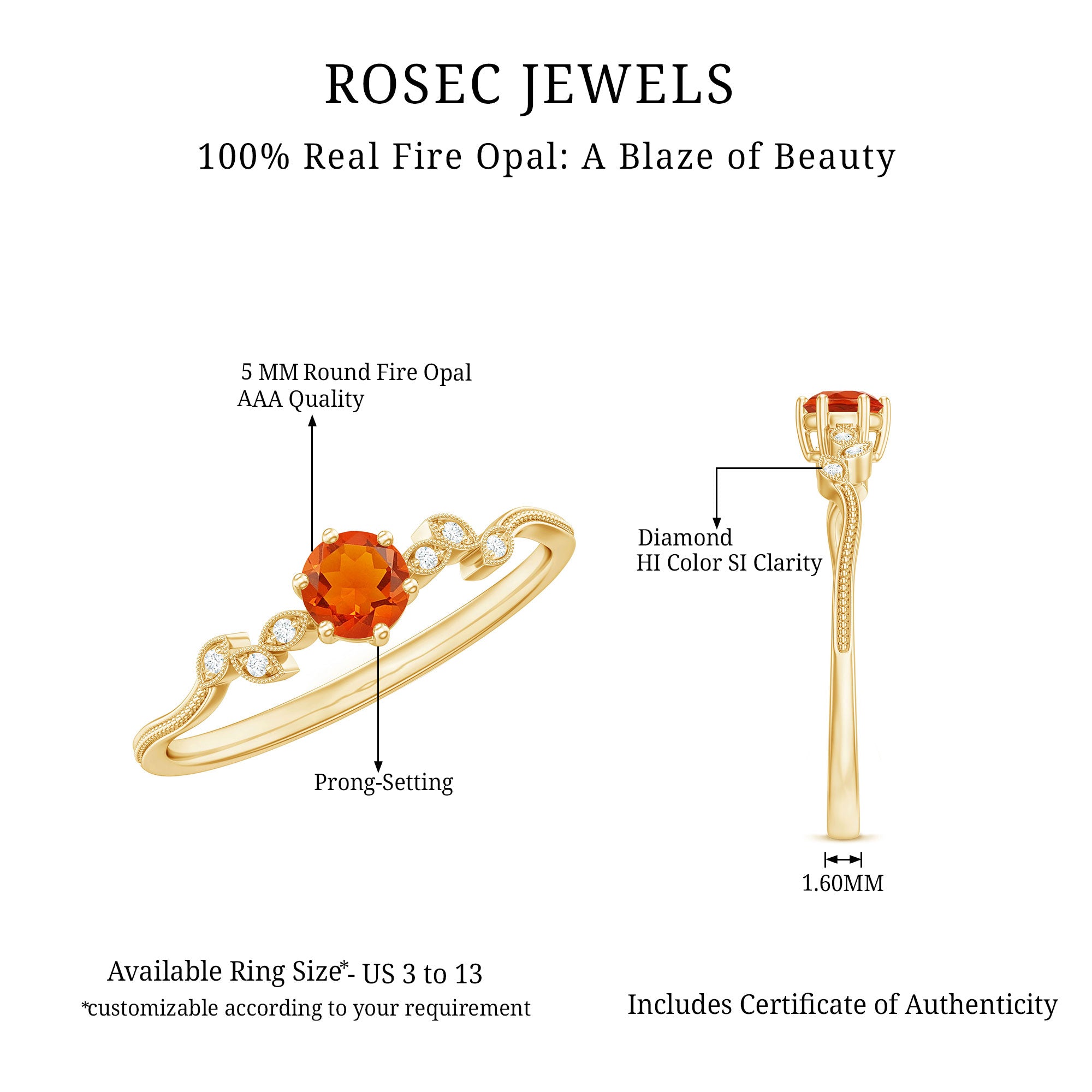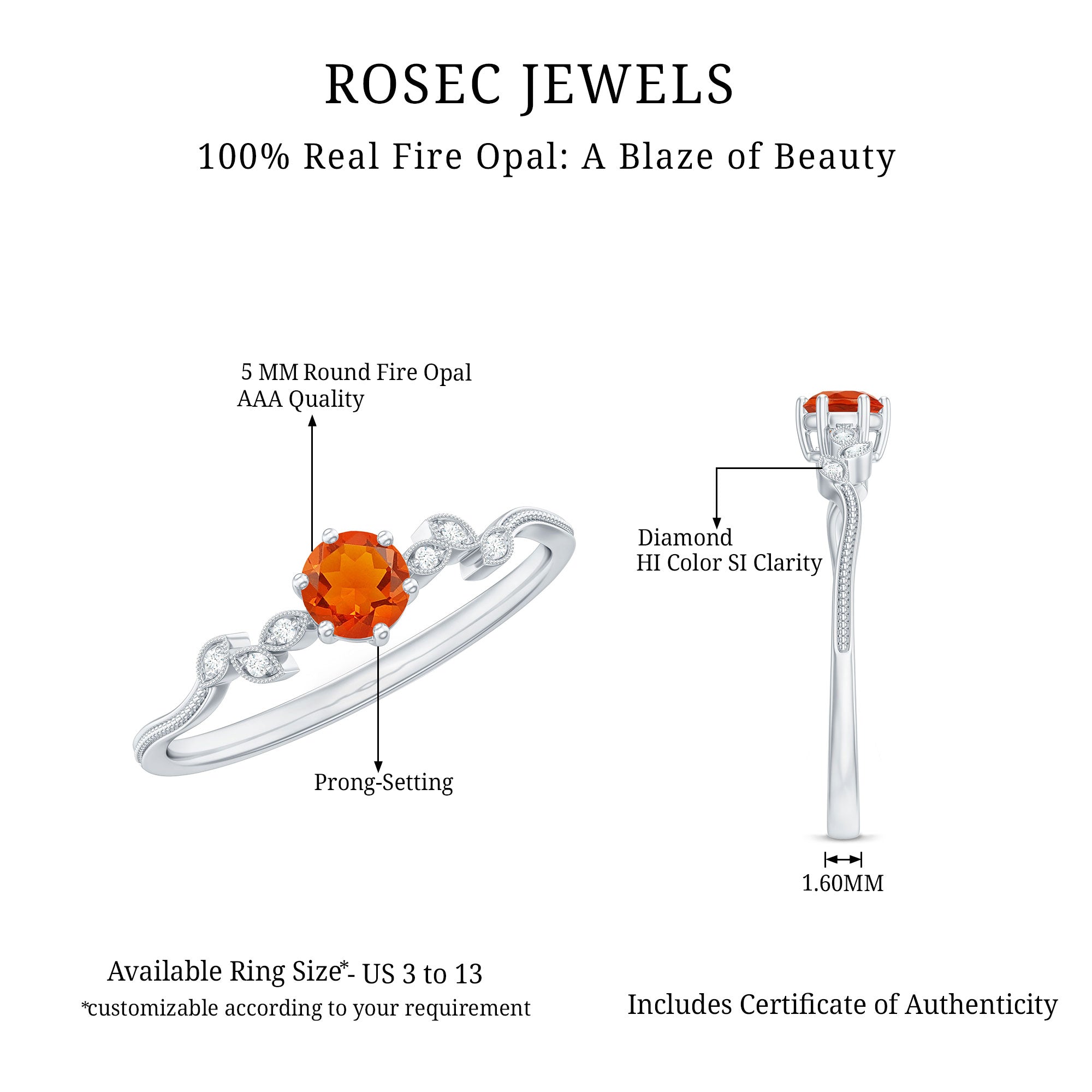 A vintage inspired fire opal rings may give the impression of being several decades old, despite its contemporary creation. Mexican opal rings exudes the aura of antique artistry, drawing inspiration from the intricate designs of the Art Deco, Edwardian, and Victorian Eras. More of the details such as filigree, milgrain, and antique motifs, which are prominent design elements from those eras, along with other ornate engravings and embellishments.