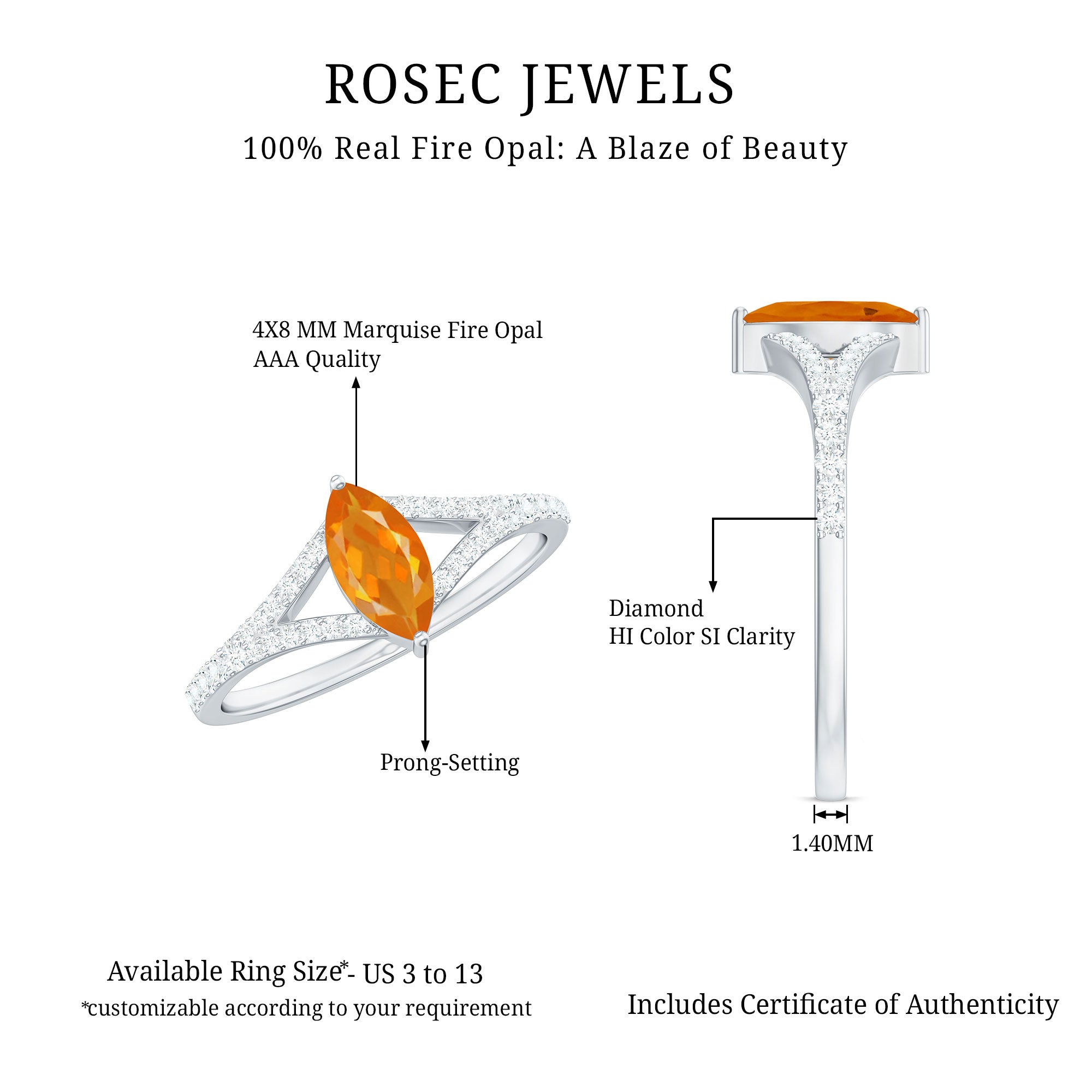 Features a center fire opal stone which takes all the attention with their fiery hues. The solitaire opal can be of any shape such as brilliant round, pear, heart, emerald cut and many more. This solitaire style adds the sophisticated touch to the ring.