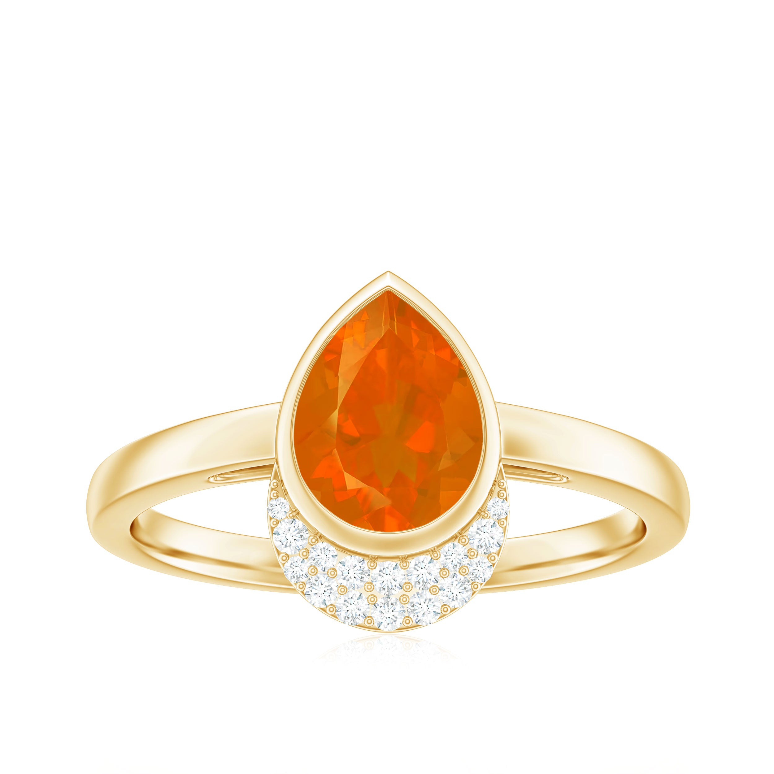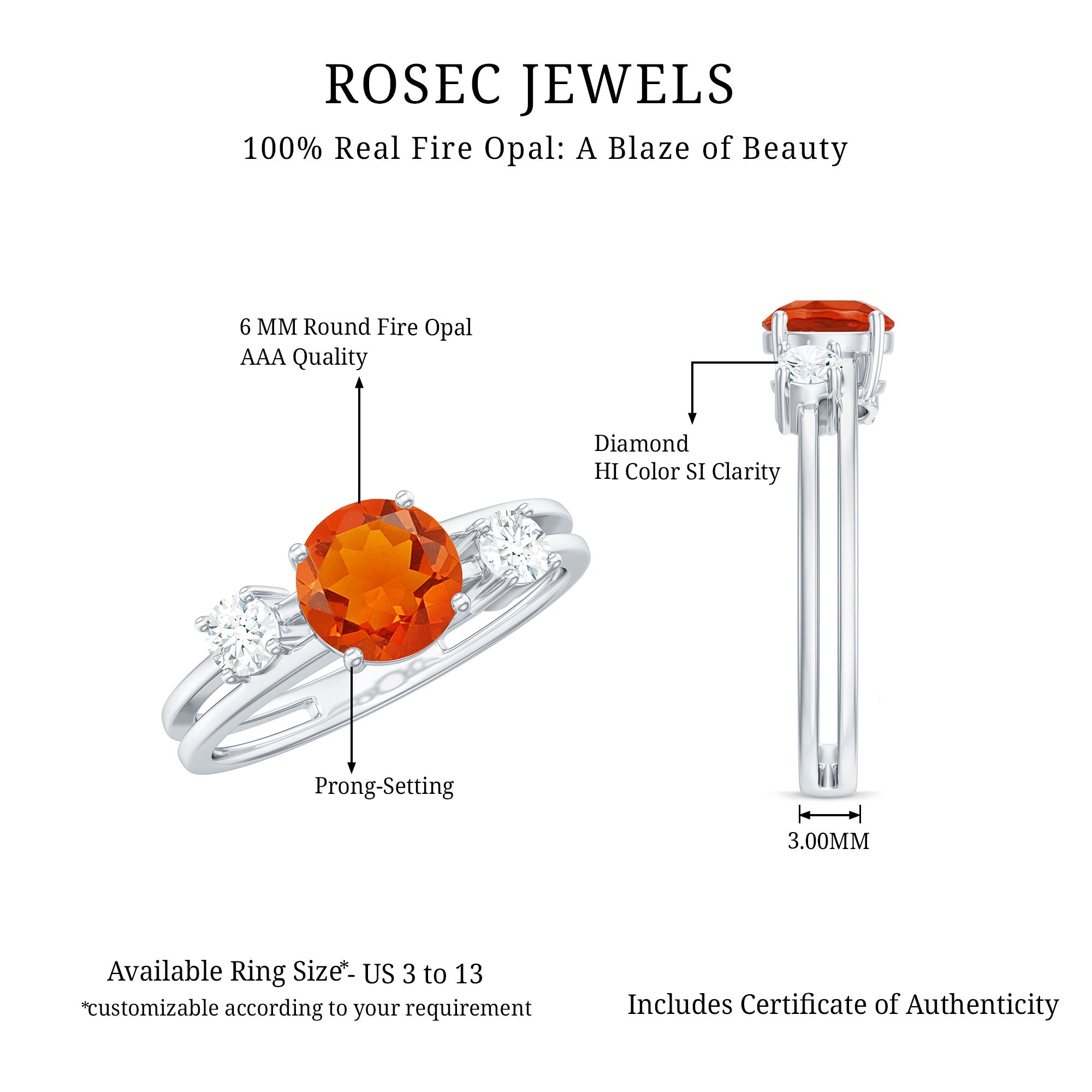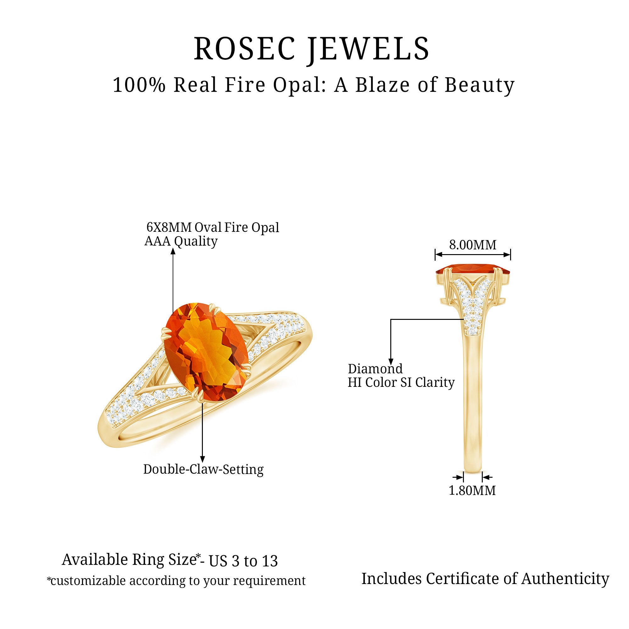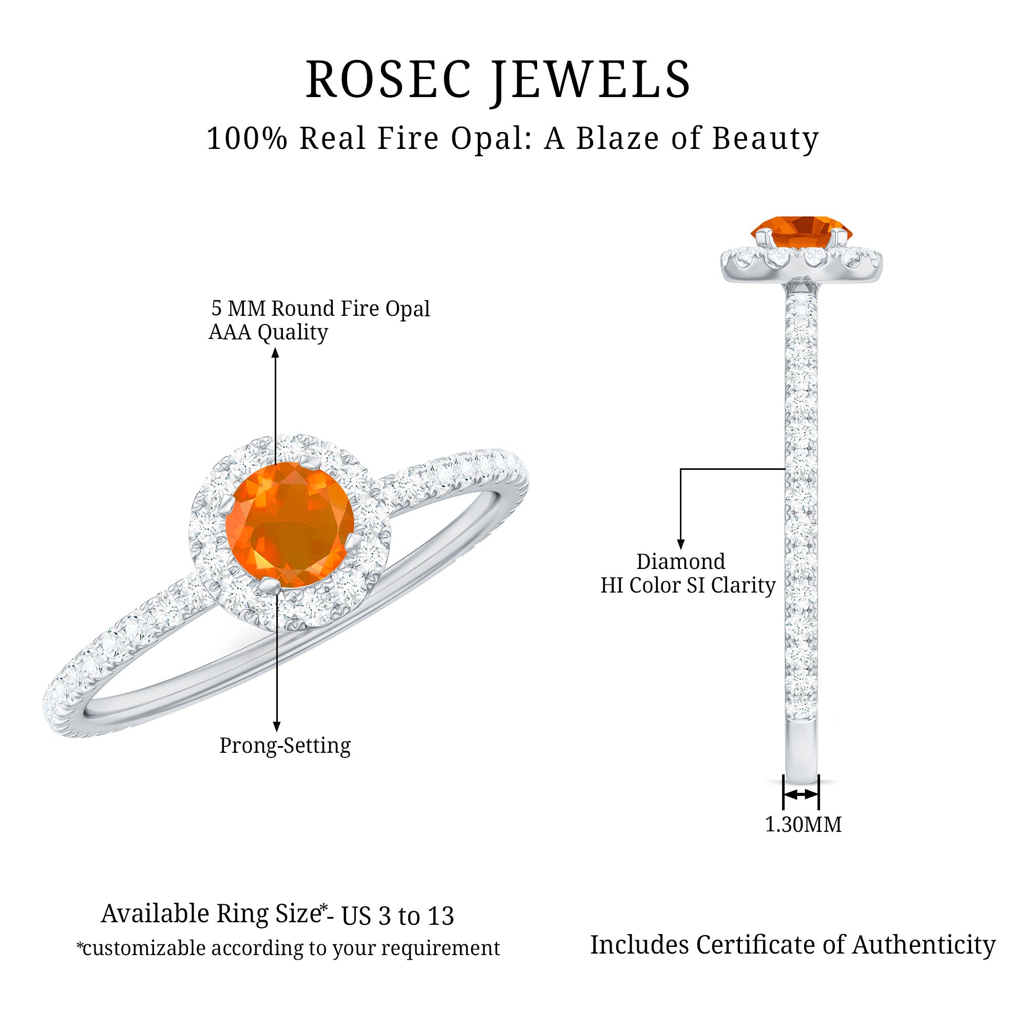 Features a center fire opal stone which takes all the attention with their fiery hues. The solitaire opal can be of any shape such as brilliant round, pear, heart, emerald cut and many more. This solitaire style adds the sophisticated touch to the ring.