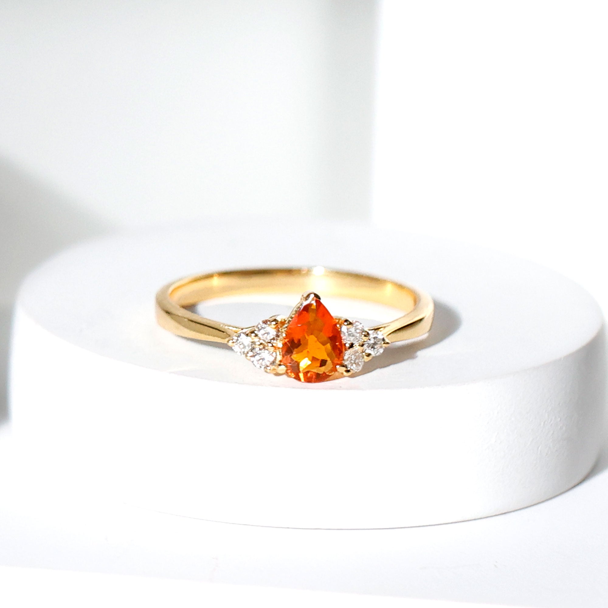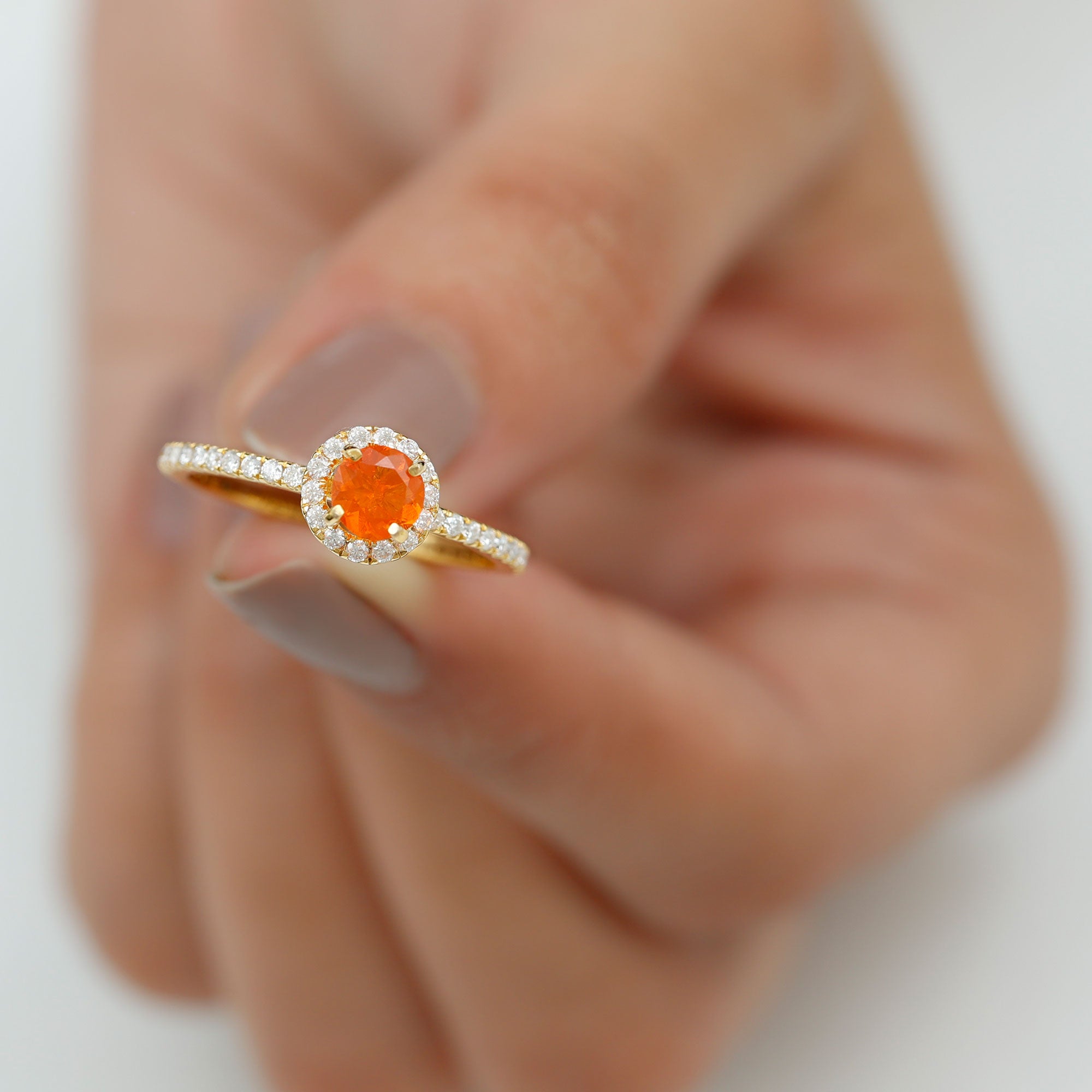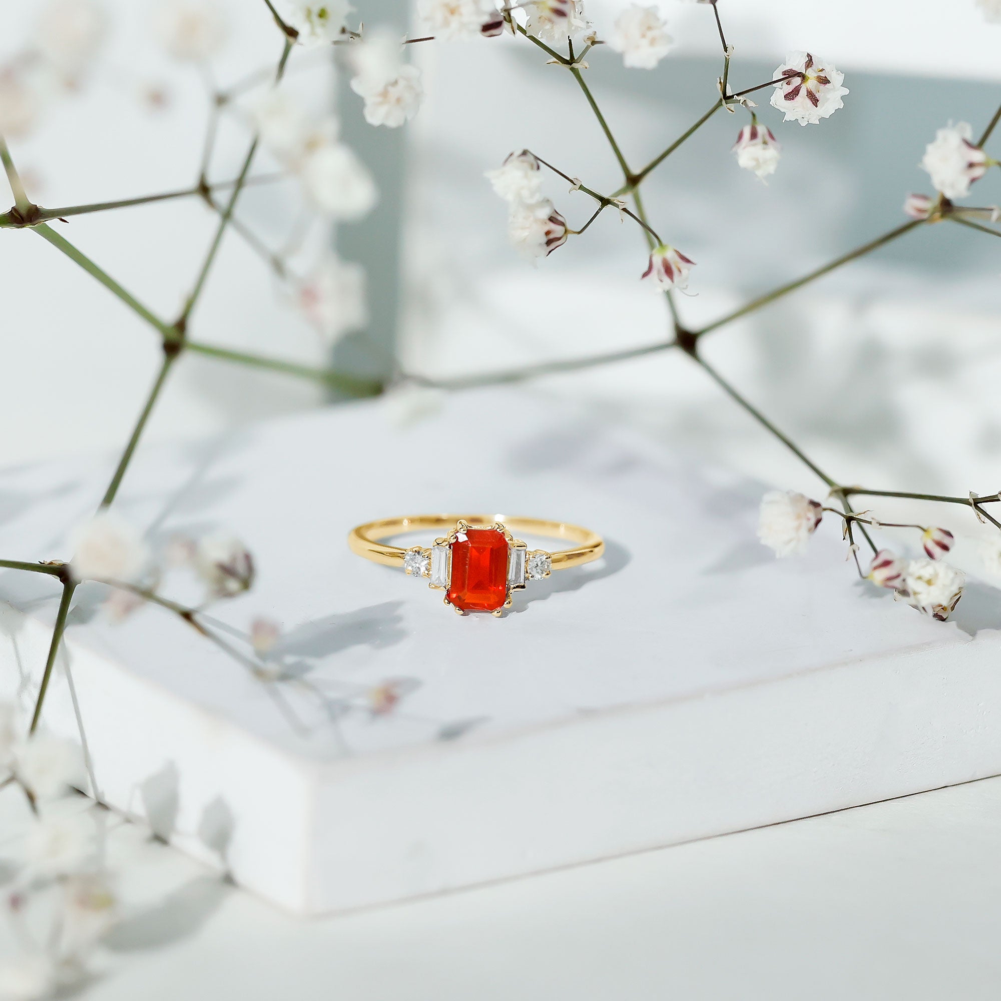 Orange gemstone rings holds meaningful symbol of love and commitment, featuring fire opal as the center of attraction. You can gift these rings as promise of love, friendship and loyalty. Often these fire opals promise rings exchange between friends or beloved ones. Whether embellished with minimalist bands or adorned with elaborate design, fire opal expresses the commitment to a shared journey.