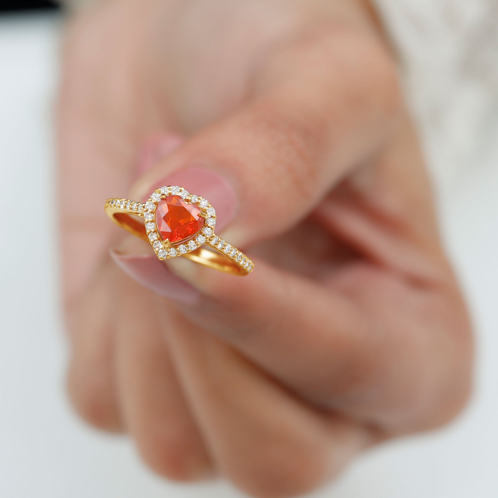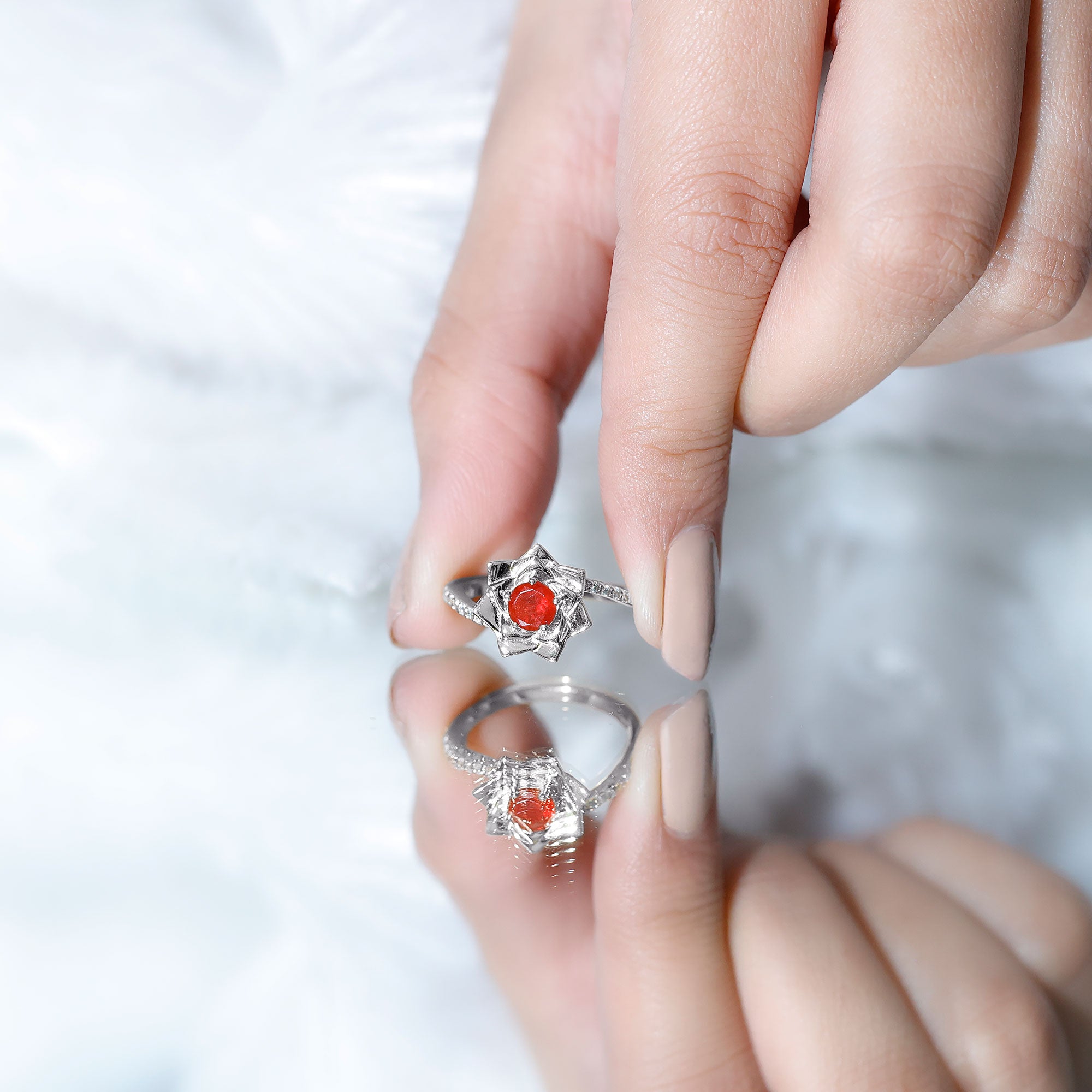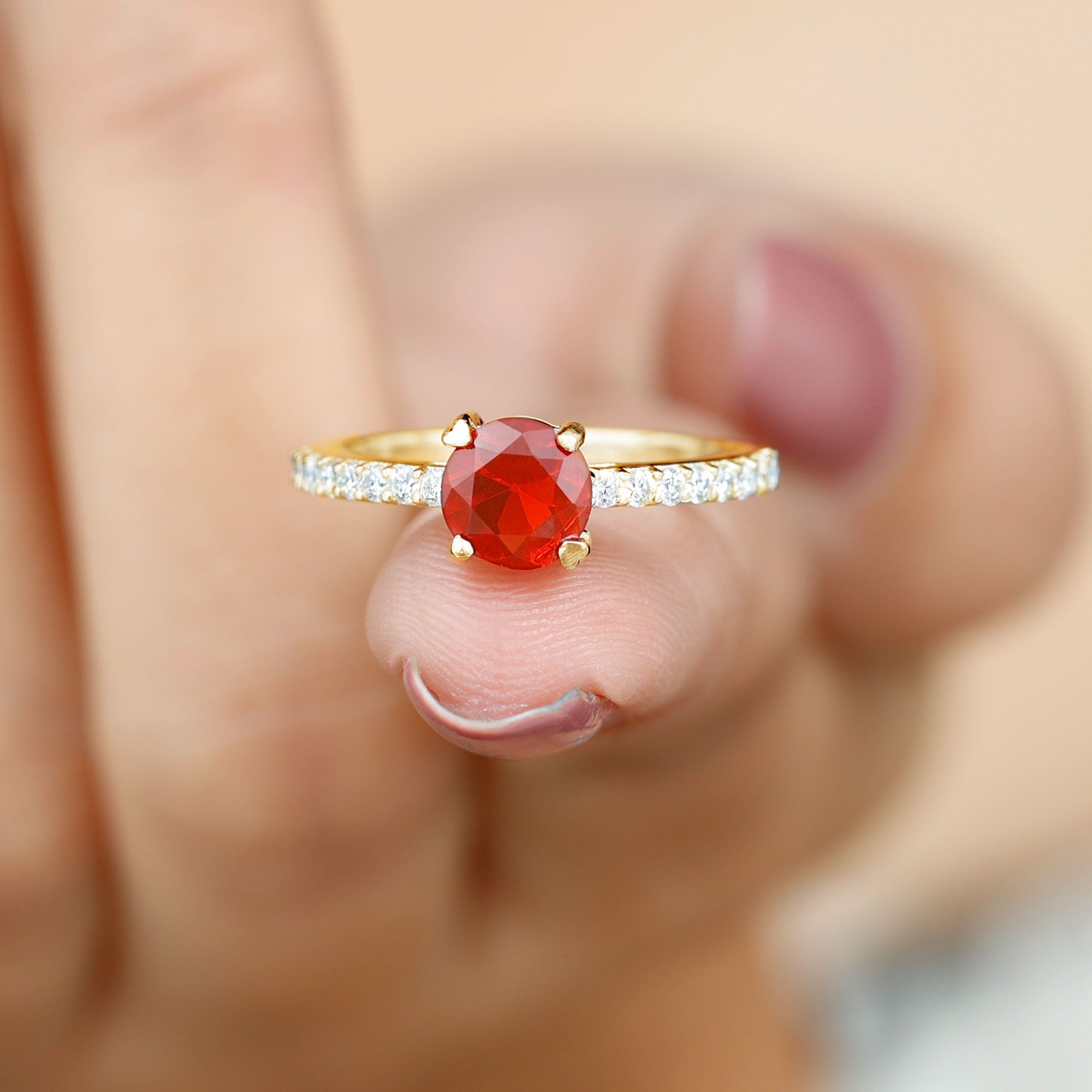 Orange gemstone rings holds meaningful symbol of love and commitment, featuring fire opal as the center of attraction. You can gift these rings as promise of love, friendship and loyalty. Often these fire opals promise rings exchange between friends or beloved ones. Whether embellished with minimalist bands or adorned with elaborate design, fire opal expresses the commitment to a shared journey.