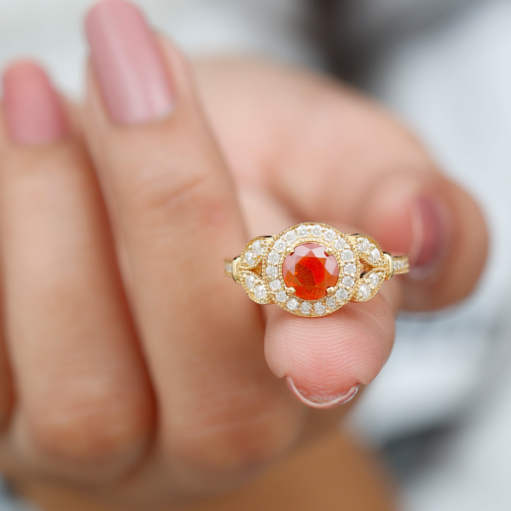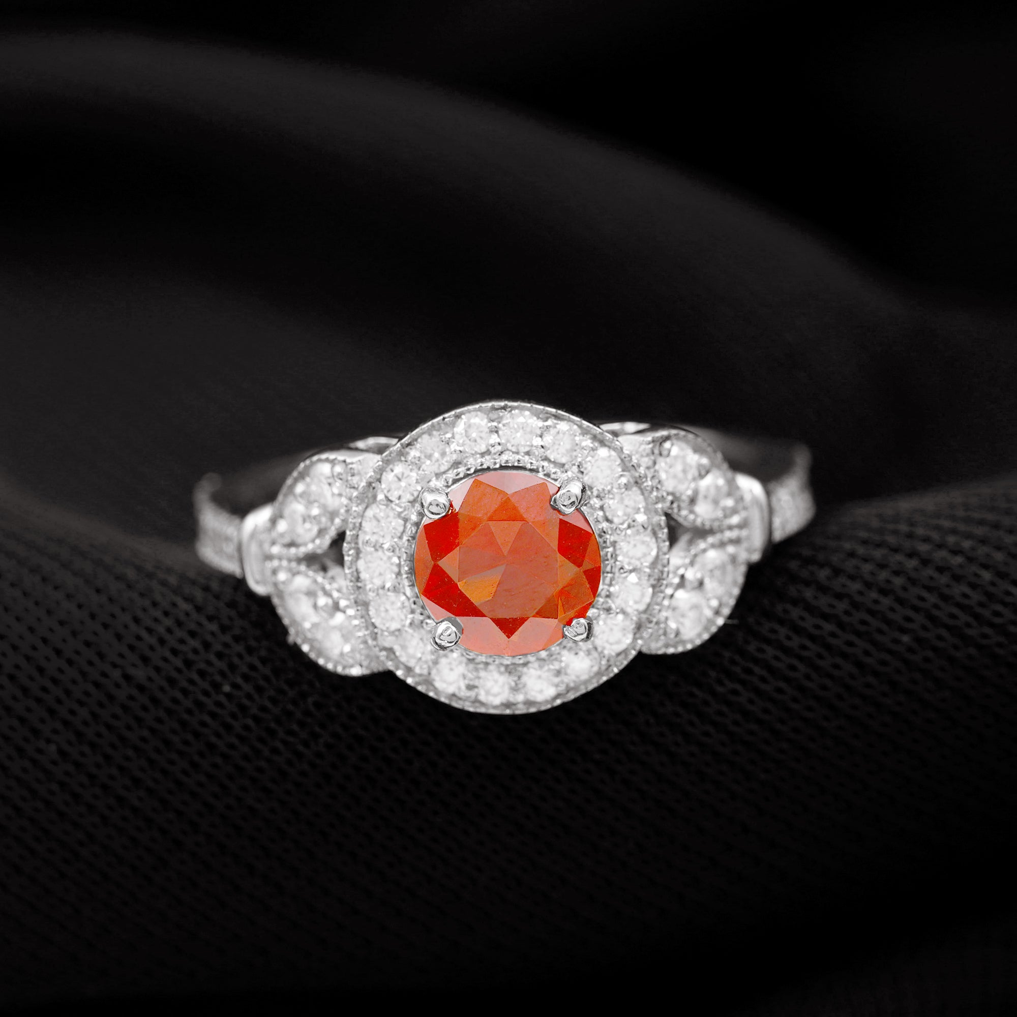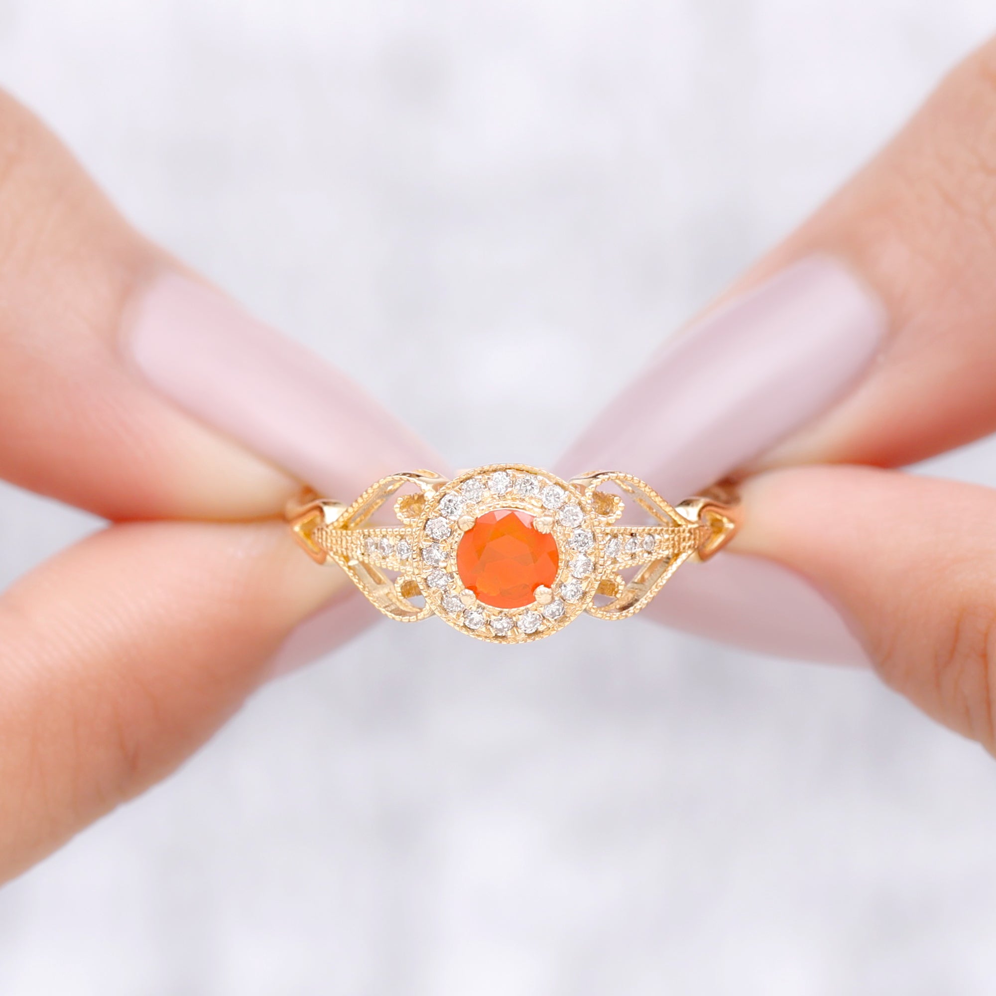 A vintage inspired fire opal rings may give the impression of being several decades old, despite its contemporary creation. Mexican opal rings exudes the aura of antique artistry, drawing inspiration from the intricate designs of the Art Deco, Edwardian, and Victorian Eras. More of the details such as filigree, milgrain, and antique motifs, which are prominent design elements from those eras, along with other ornate engravings and embellishments.