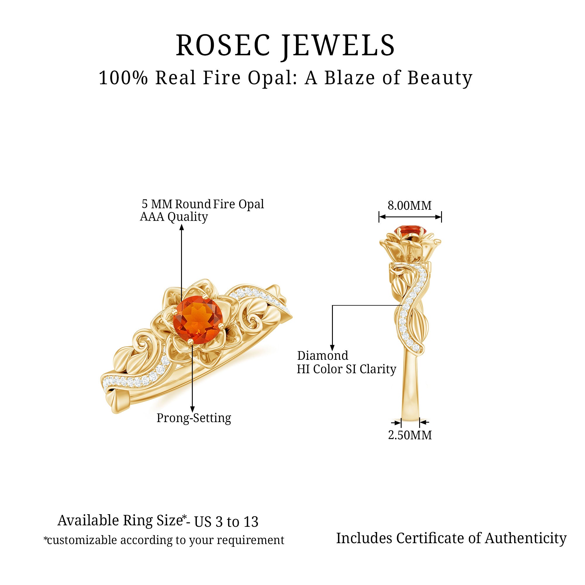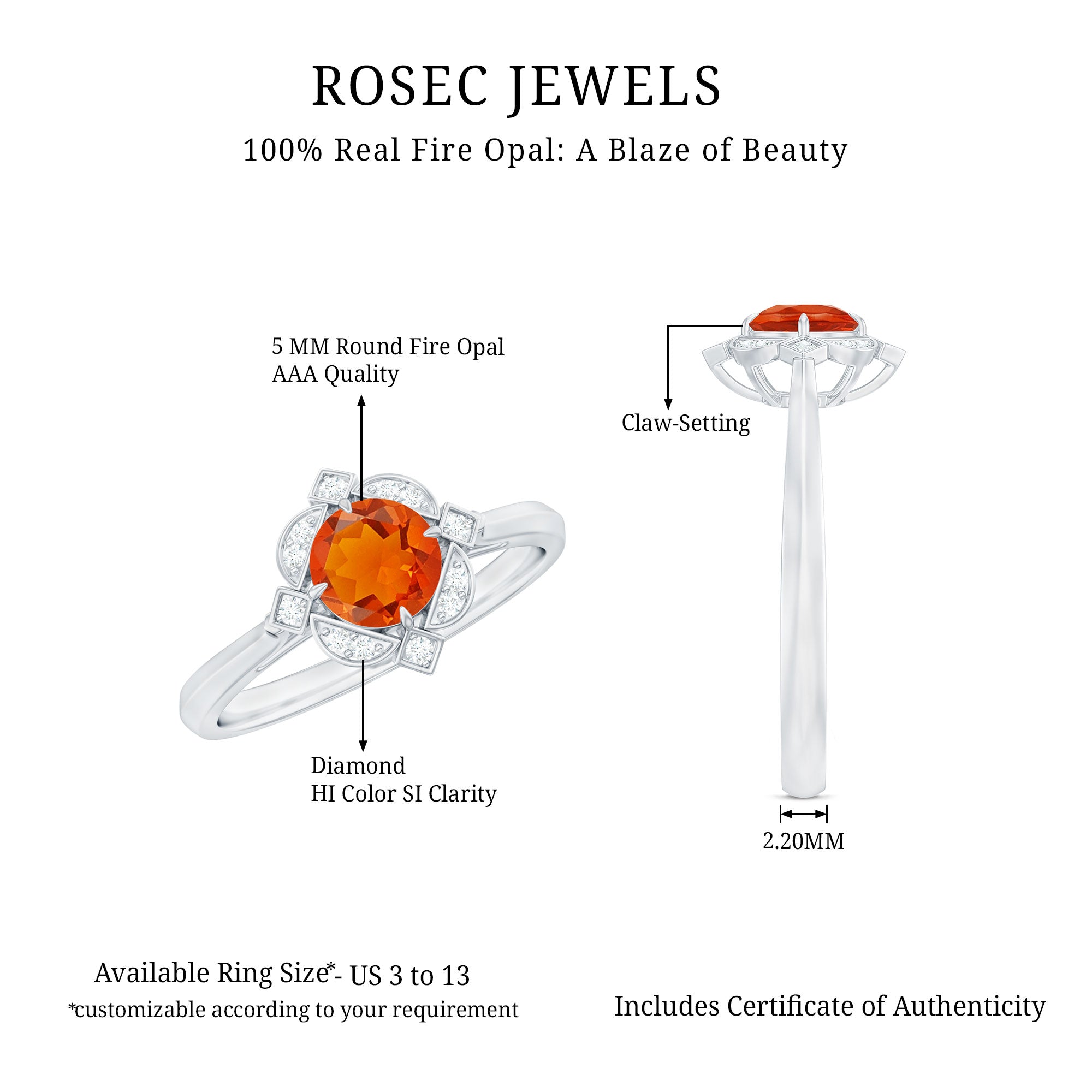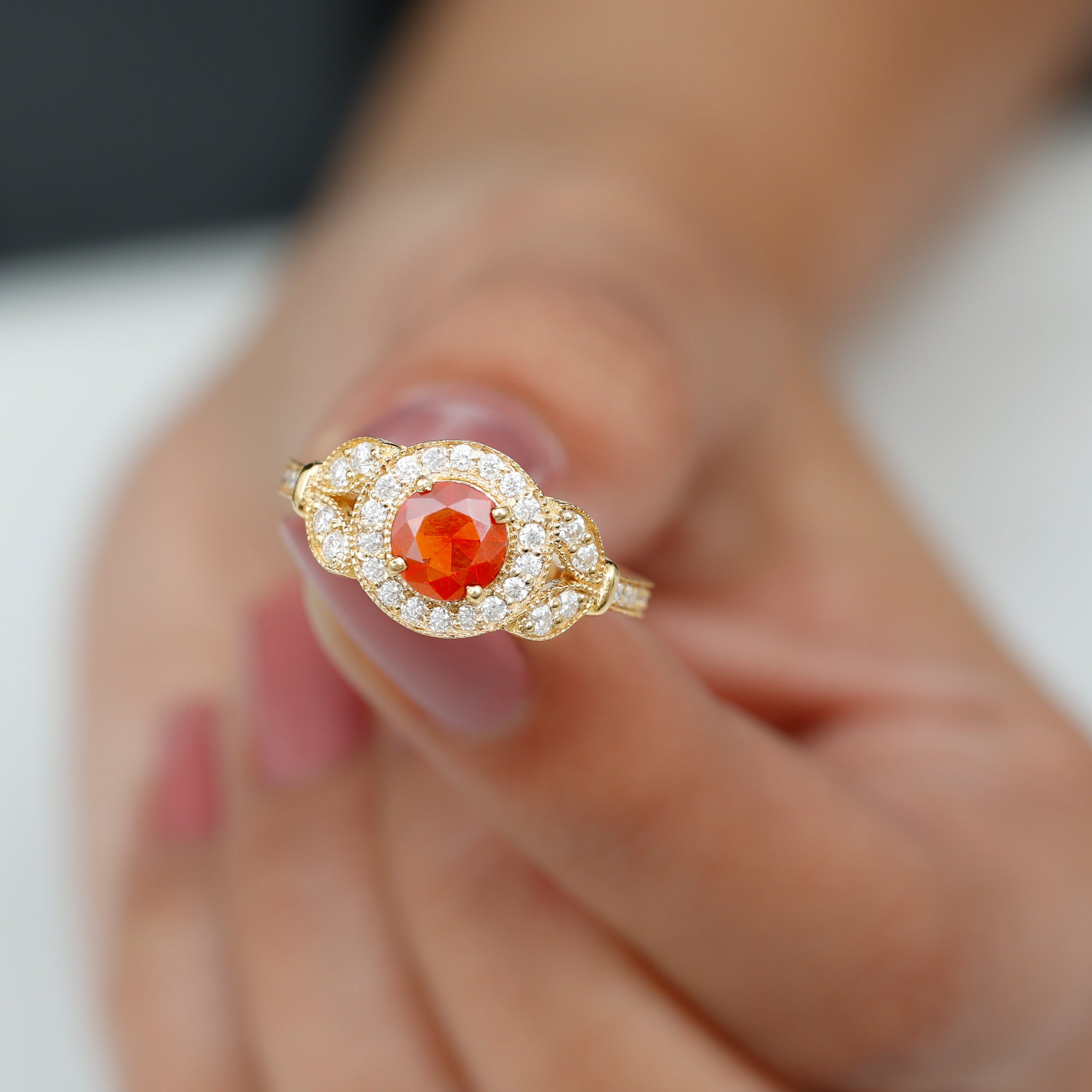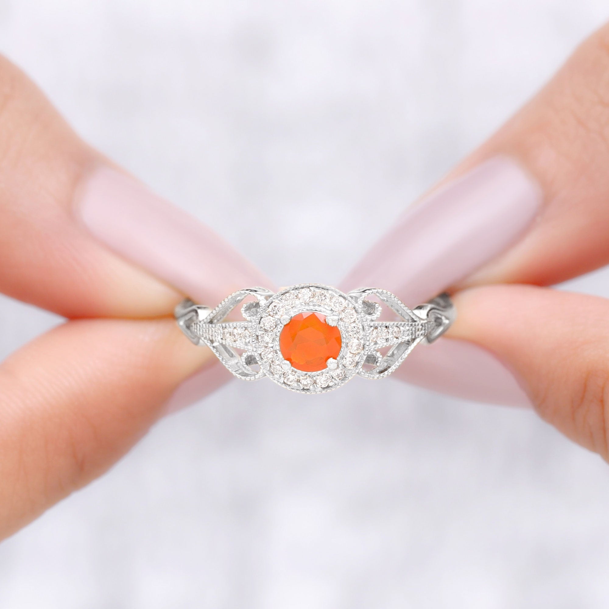 A vintage inspired fire opal rings may give the impression of being several decades old, despite its contemporary creation. Mexican opal rings exudes the aura of antique artistry, drawing inspiration from the intricate designs of the Art Deco, Edwardian, and Victorian Eras. More of the details such as filigree, milgrain, and antique motifs, which are prominent design elements from those eras, along with other ornate engravings and embellishments.