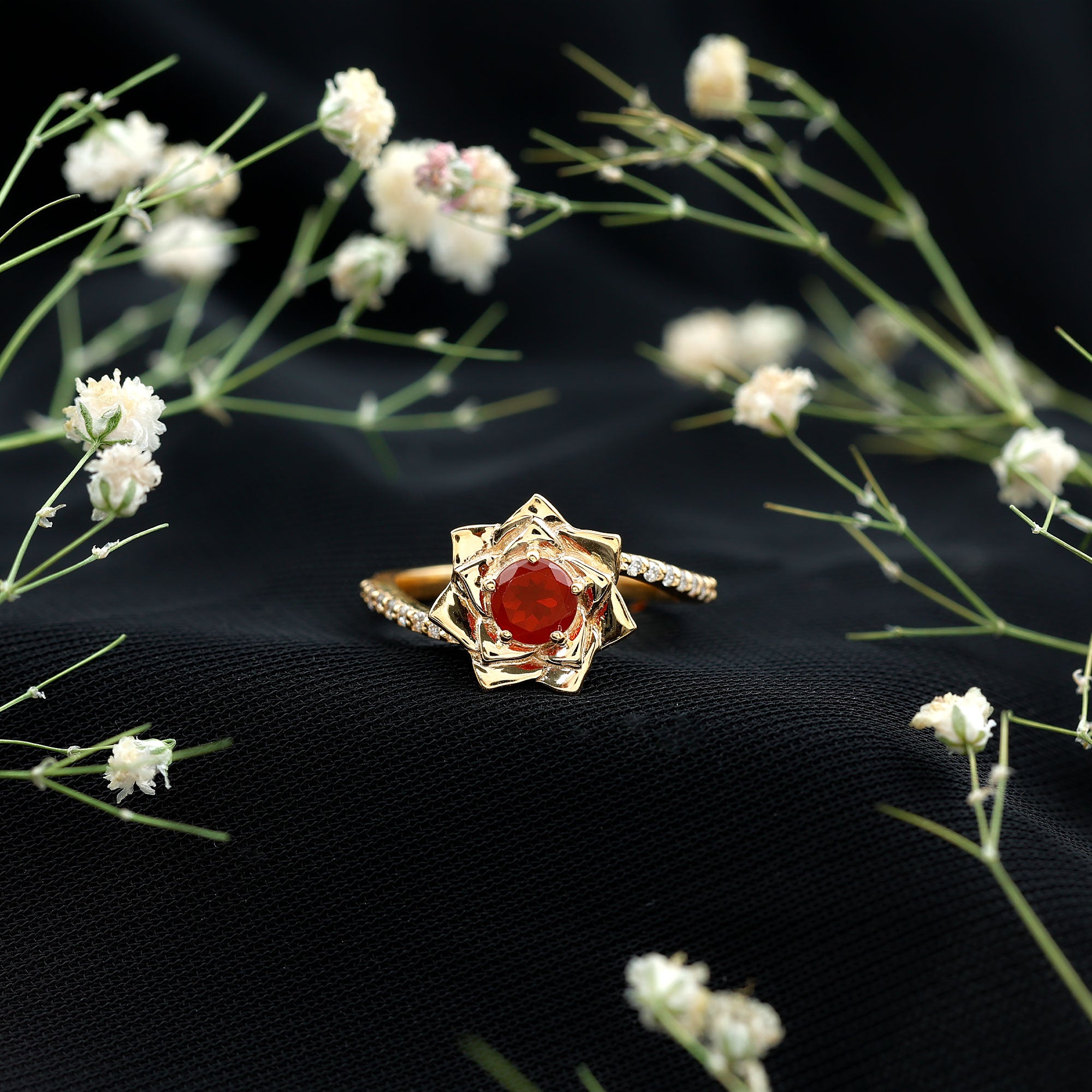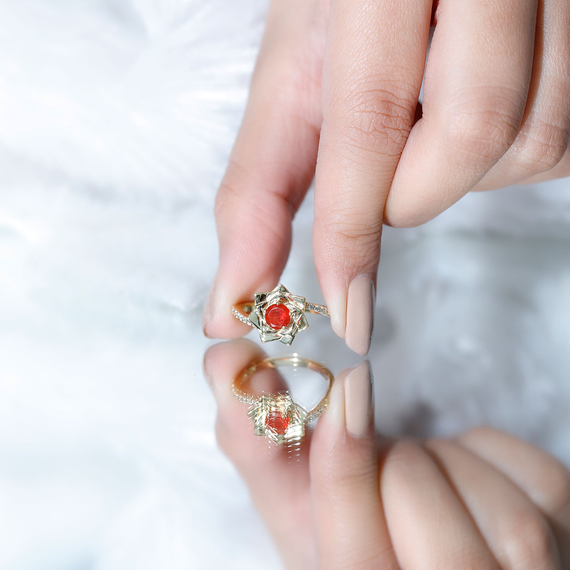Consider your Style:- Does it boast a classic solitaire, a halo setting, or a vintage-inspired motif? The style of your fire opal ring will determine as per your style that will enhance its beauty most effectively.