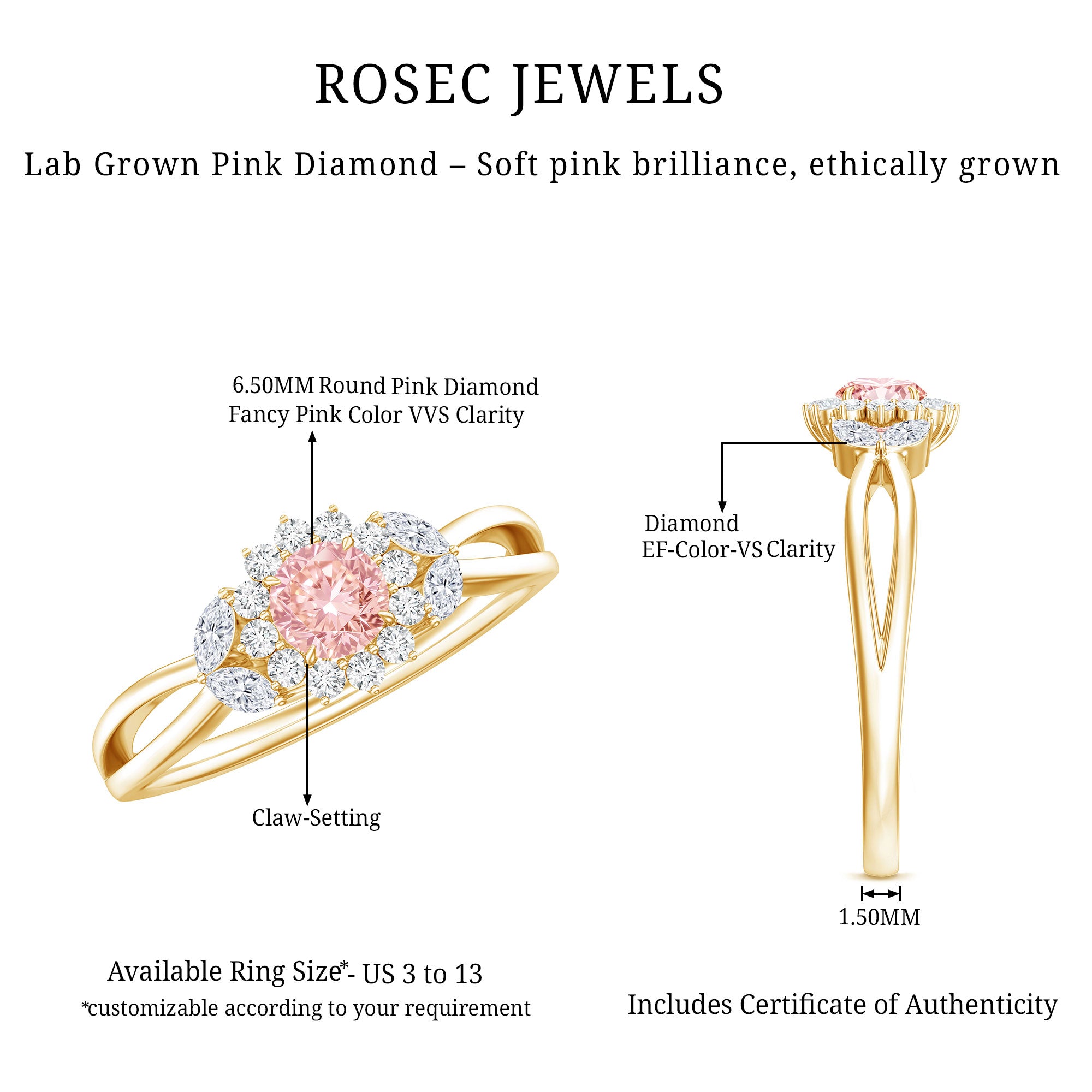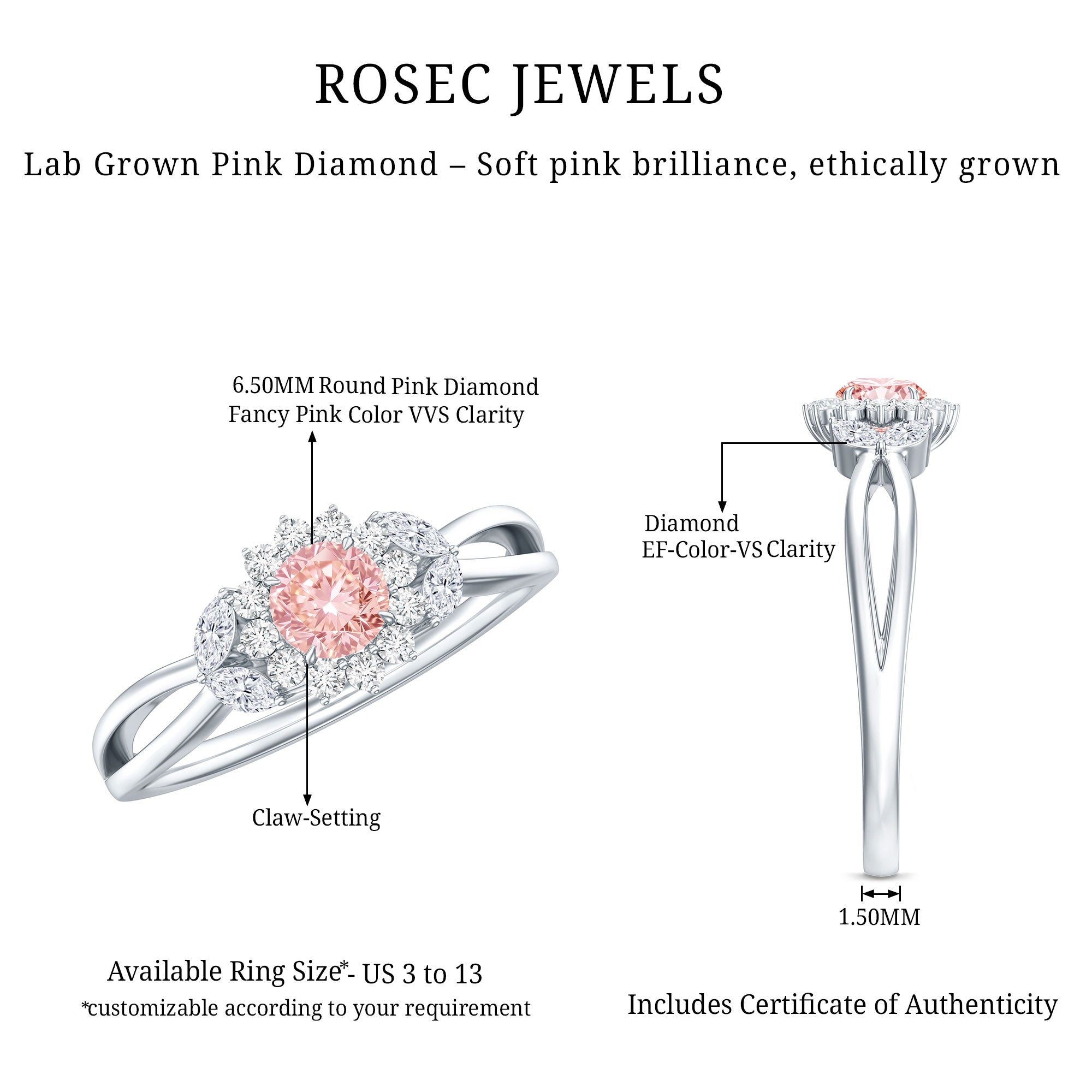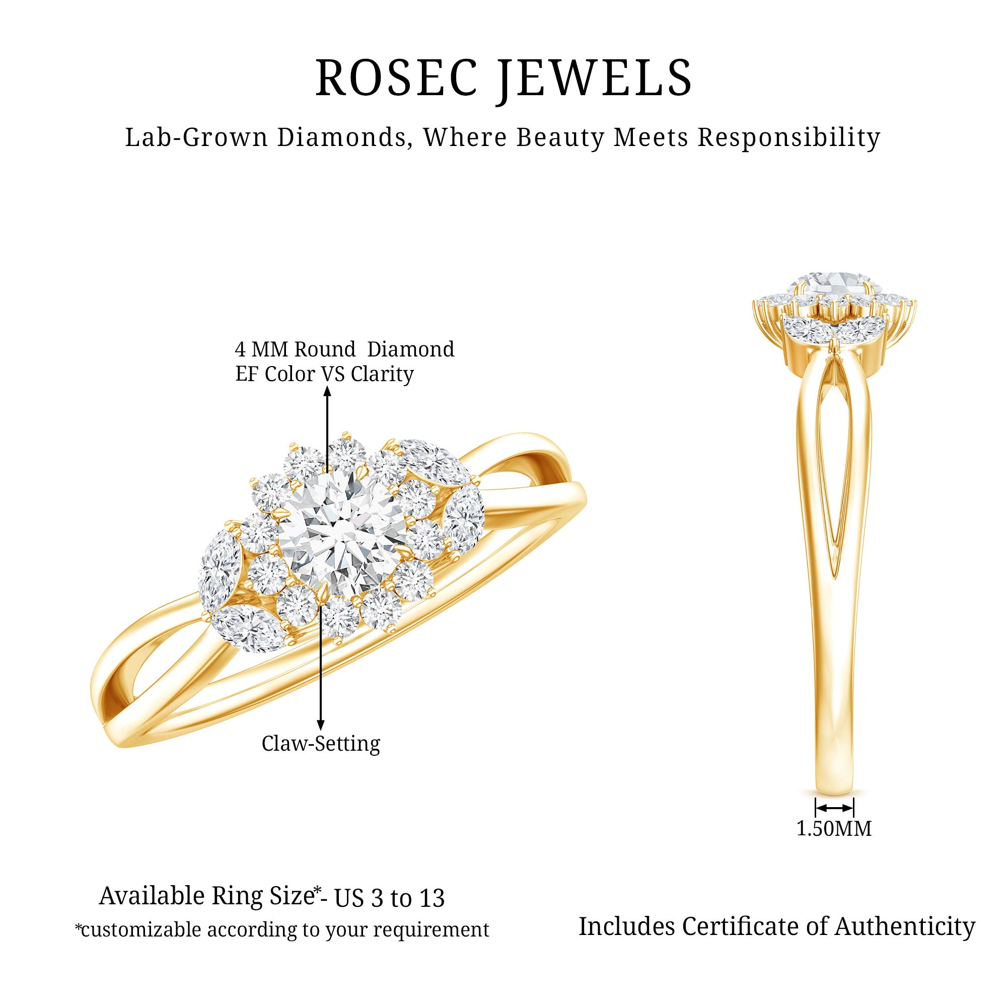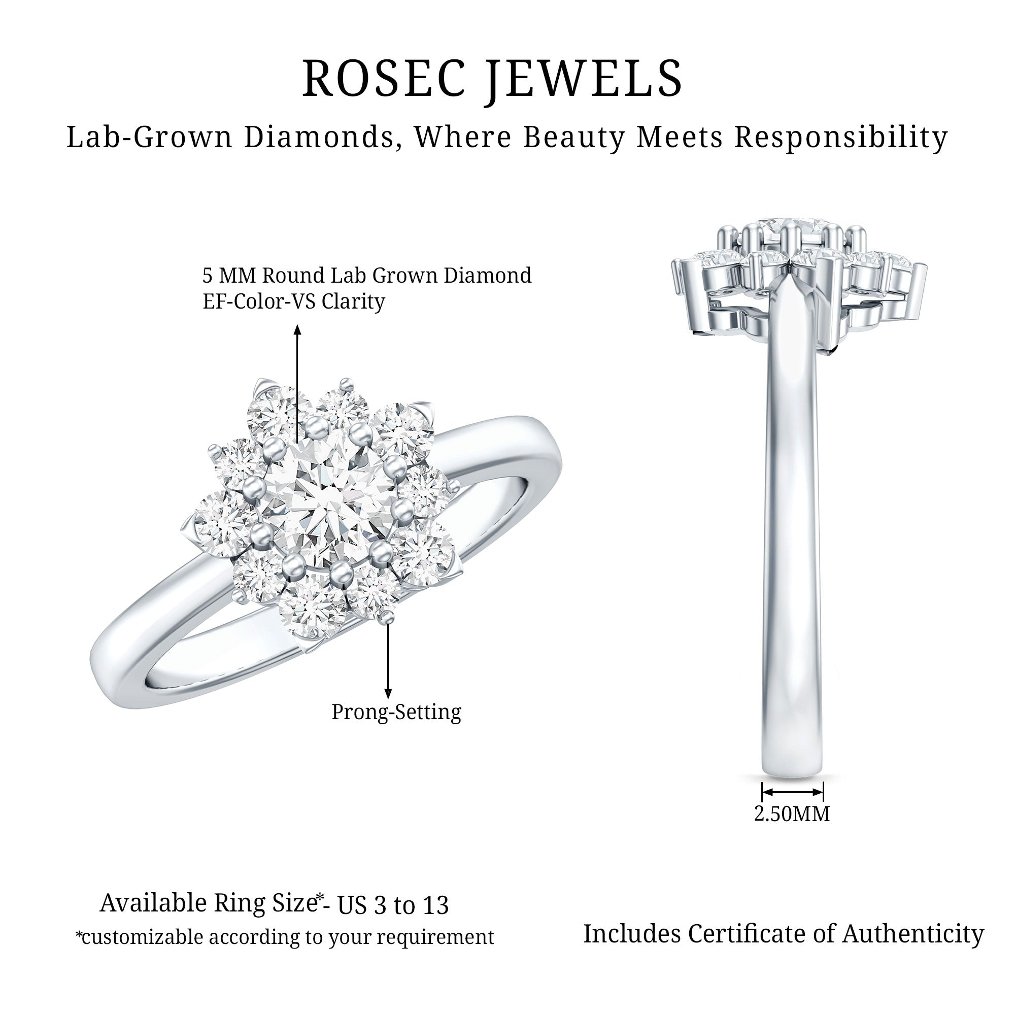 Flower Rings:- Our flower rings are inspired by nature's beauty, and are a good companion for every occasion like engagement, anniversary, birthday, and cocktail parties. Right from majestic solitaire flower rings to halo and eternity flower rings, each piece is specially designed to cater to different tastes and personalities. Even, Rosec Jewels offer you options in choosing the right gemstone for your flower ring, including diamonds, rubies, emeralds, sapphires, aquamarine, and other variety of colored gemstones.