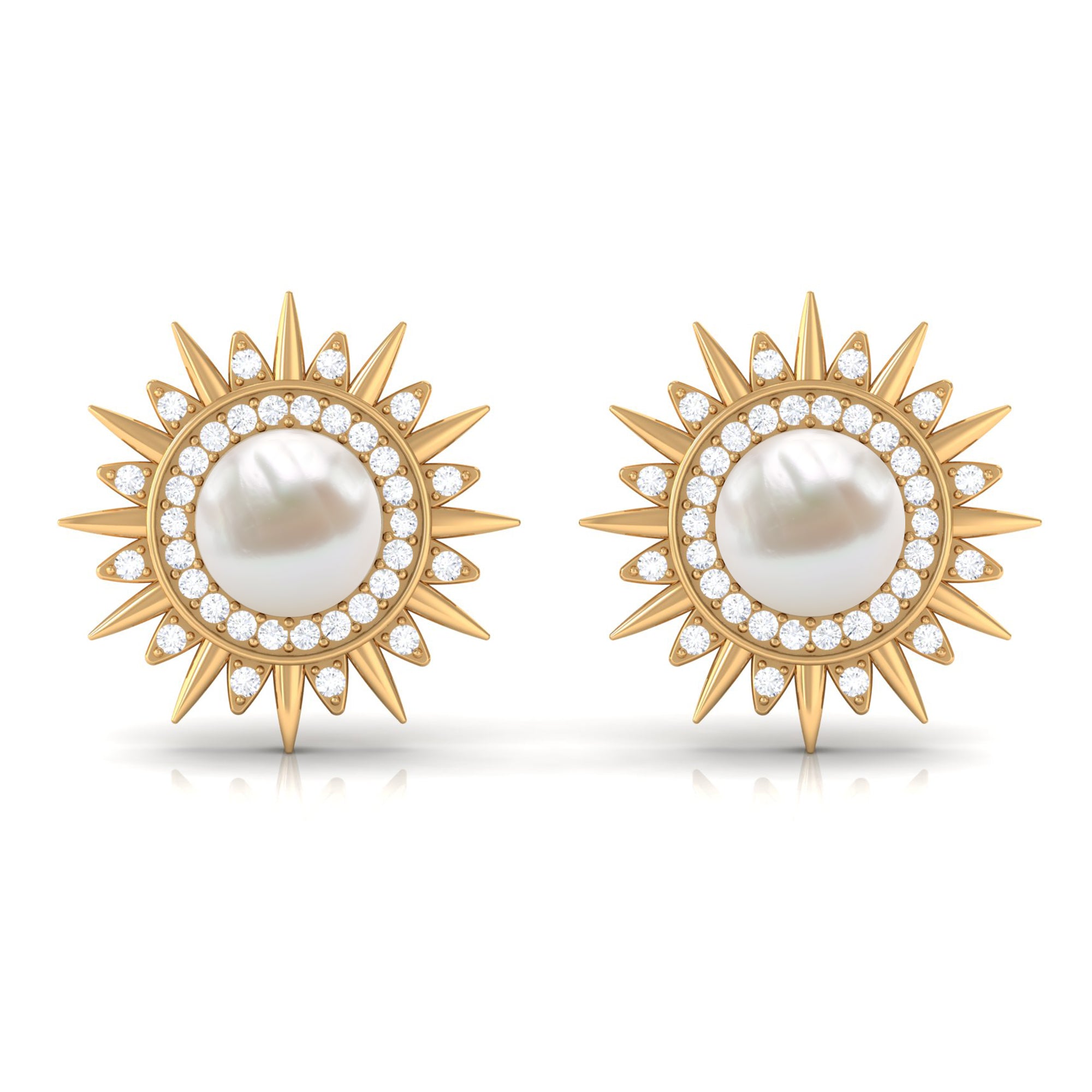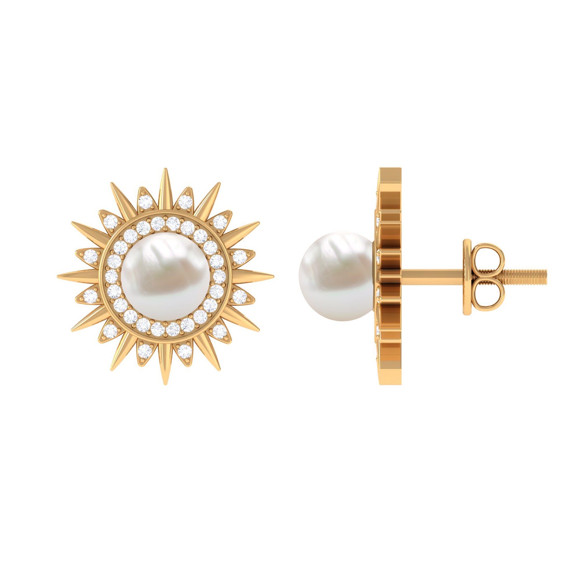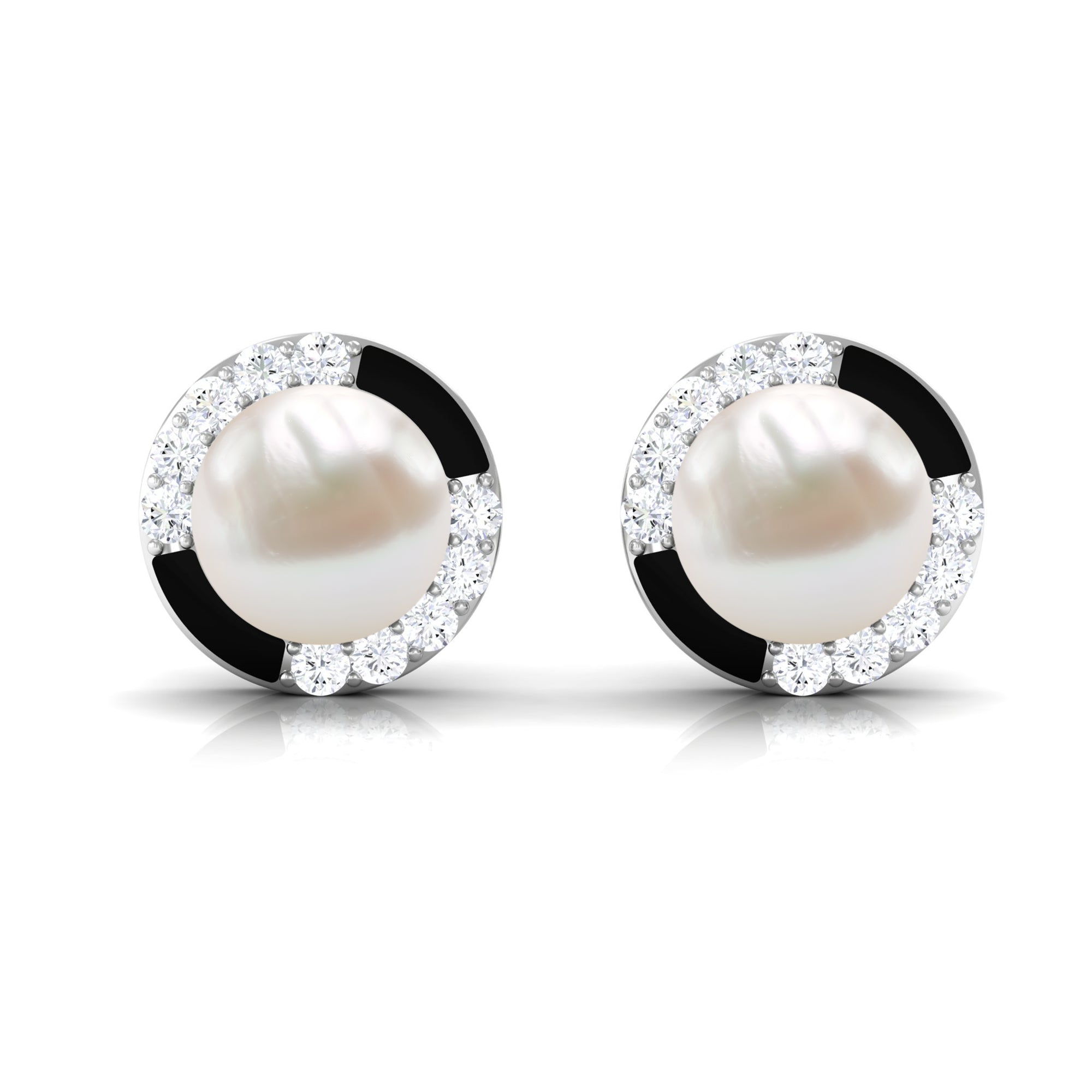 Freshwater Pearl Stud Earrings: - This classic and elegant pearl earrings remains highly popular, featuring a round pearl set in a bead setting, secured by screw back or push back to ensure its safety. These stud earrings secured by post back, complements the beauty of sophisticated pearl and also ensures its longevity. Each pair of earrings stands out for its versatility and classic look. Available in a variety of designs like simple solitaire, breathtaking infinity, shimmery halo, floral studs, and so on. The freshwater pearl studs sit elegantly on the earlobe and uplift like no one else. These can be suitable for daily wear and also worn on special, a pearl stud adds a touch of sophistication.
