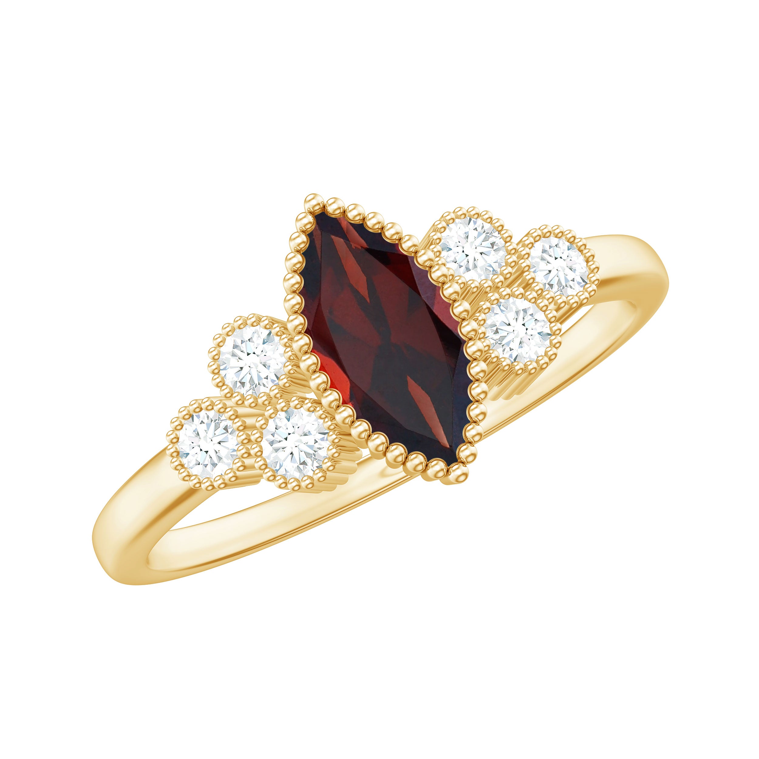 Yellow Gold: - The yellow gold enhances the vibrant tone of garnet while making the ring antique and unique.