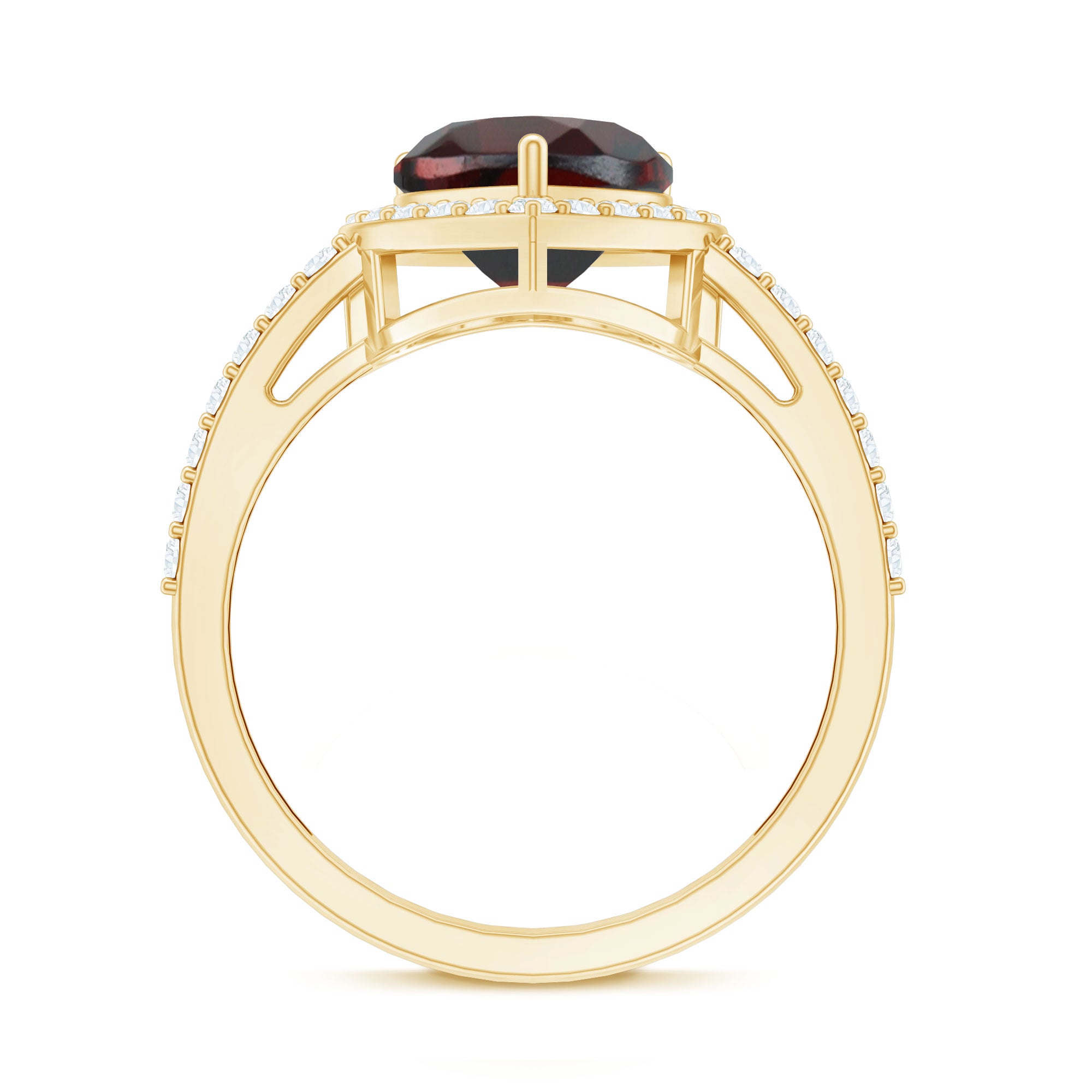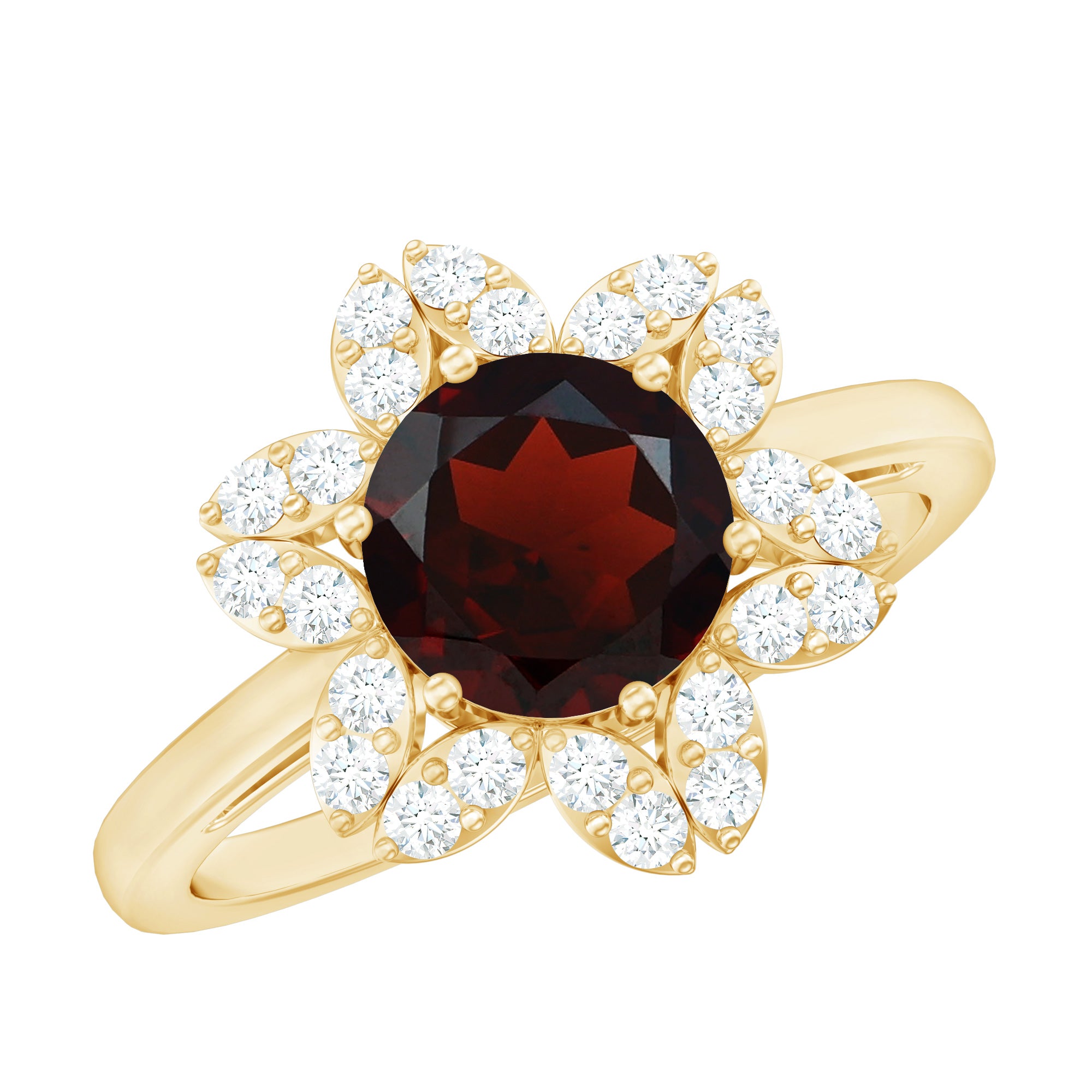 Halo Rings: - Showcases the beauty of garnet stone with a halo motif, these rings accentuate the brilliance of the center stone elegantly. Due to the diamond accents, the size of the garnet looks a bit large. The vibrant hues of red stone represent love and passion which makes them perfect for engagement rings. The halo style adds an extra layer of shine and elegance to the ring, enhancing the beauty of the ring. The Halo collection is perfect for those who always appreciate something unique and classy.