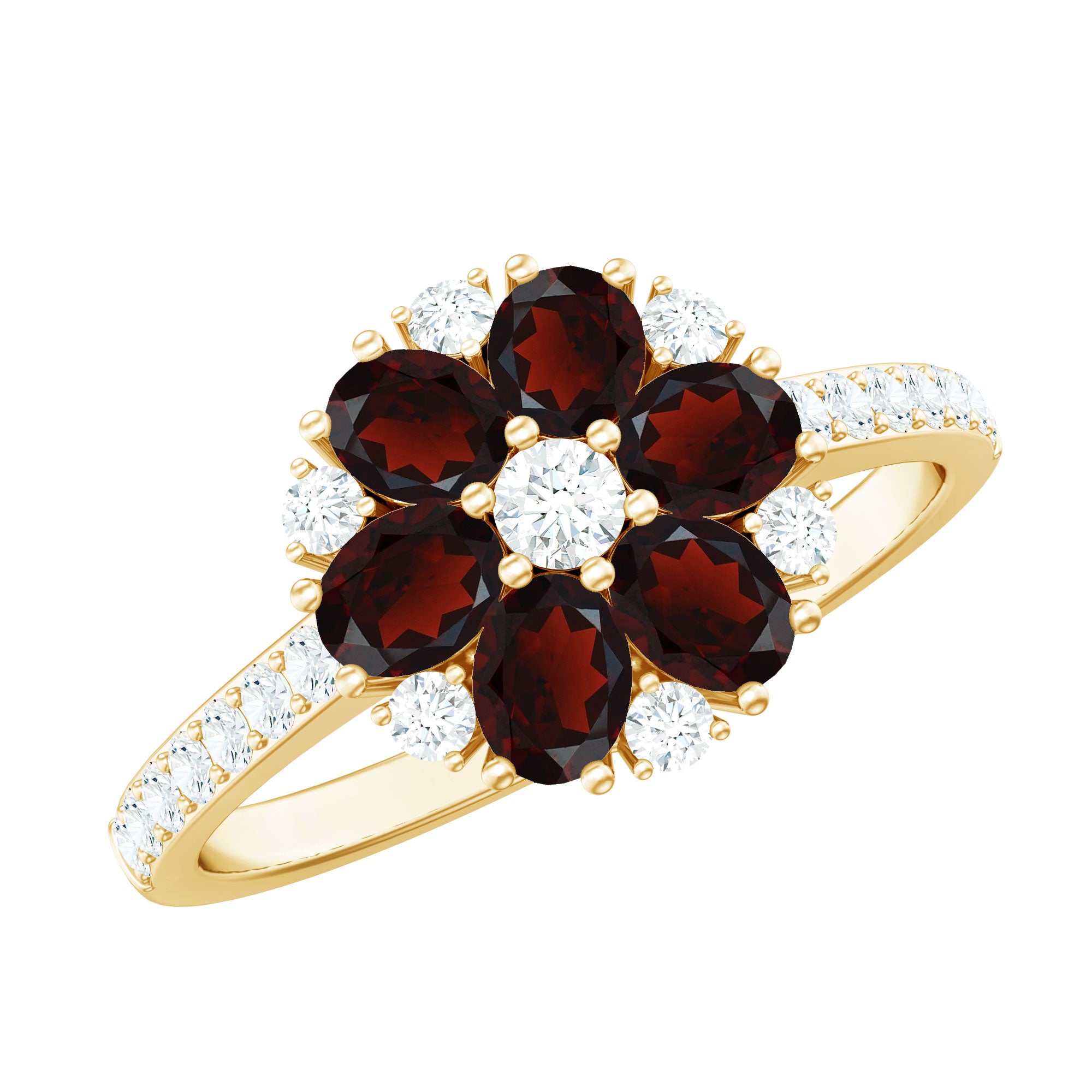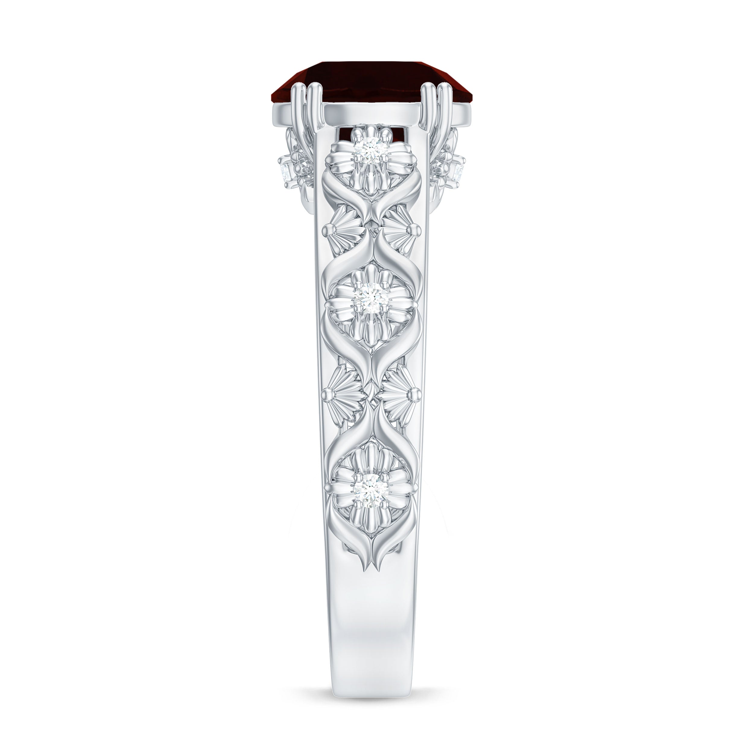 Our garnet engagement rings collection offers a wide variety of garnet engagement rings, ranging from simple solitaire styles to more intricate designer pieces. These days, red gemstones are trending for engagement jewelry due to their rich color and affordable prices. These styles offer bold ways to propose and celebrate love. The garnet gem considers as the stone of love, mainly associated with protection, love, passion, commitment, and never-ending friendship. Whether you're going to choose a classic solitaire ring or an antique vintage ring, each ring is specially designed to cater to your style.