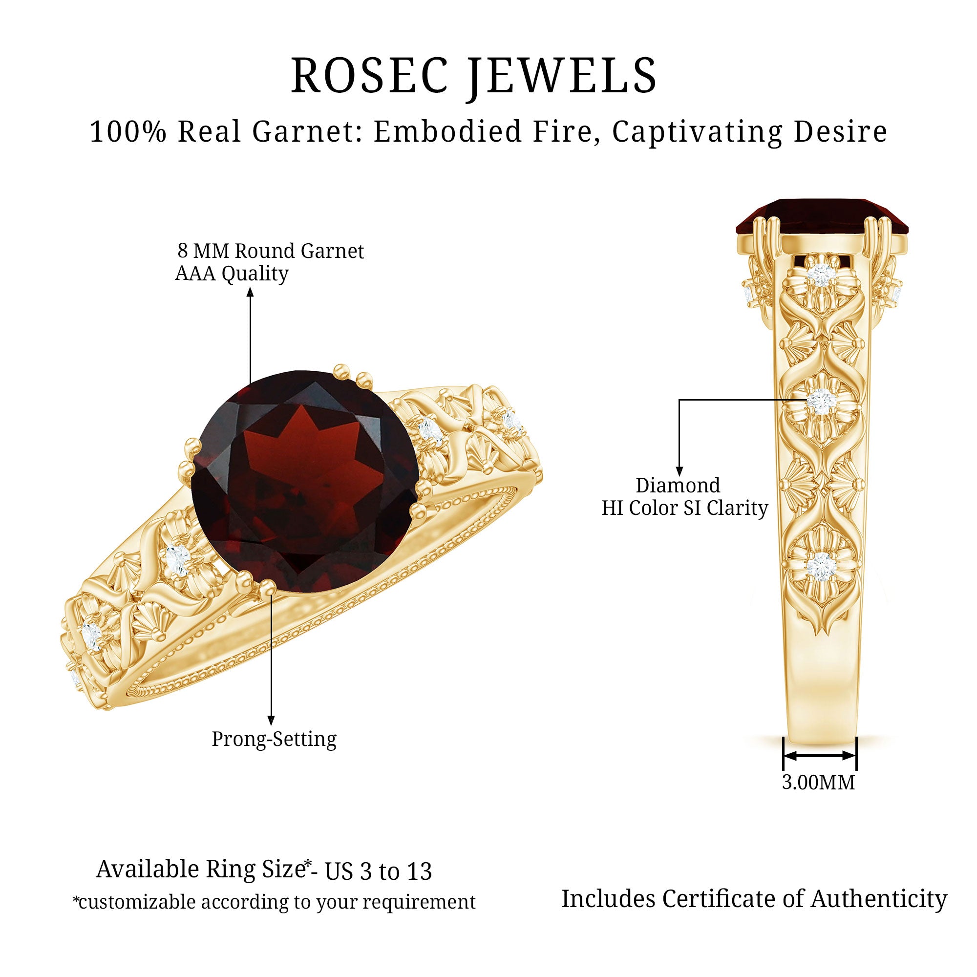 Yellow Gold: - The yellow gold enhances the vibrant tone of garnet while making the ring antique and unique.