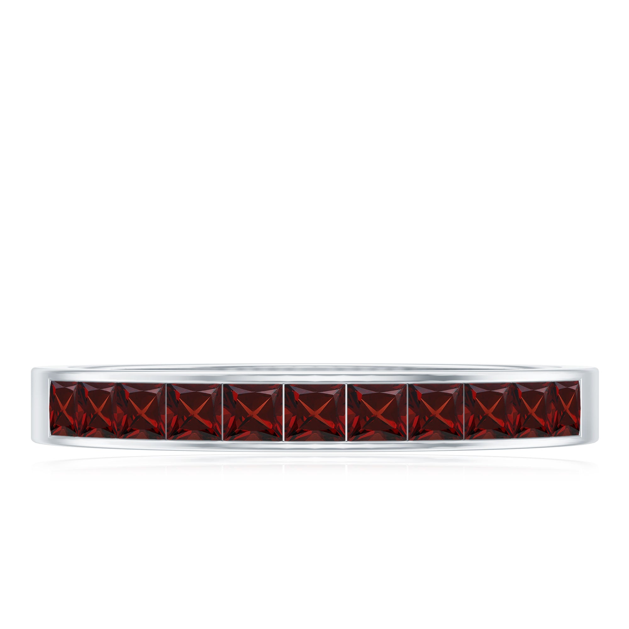 When worn as a wedding band, garnets can be a symbolism of love and life force, while a eternity wedding band in itself will symbolize a promise of love for eternity.