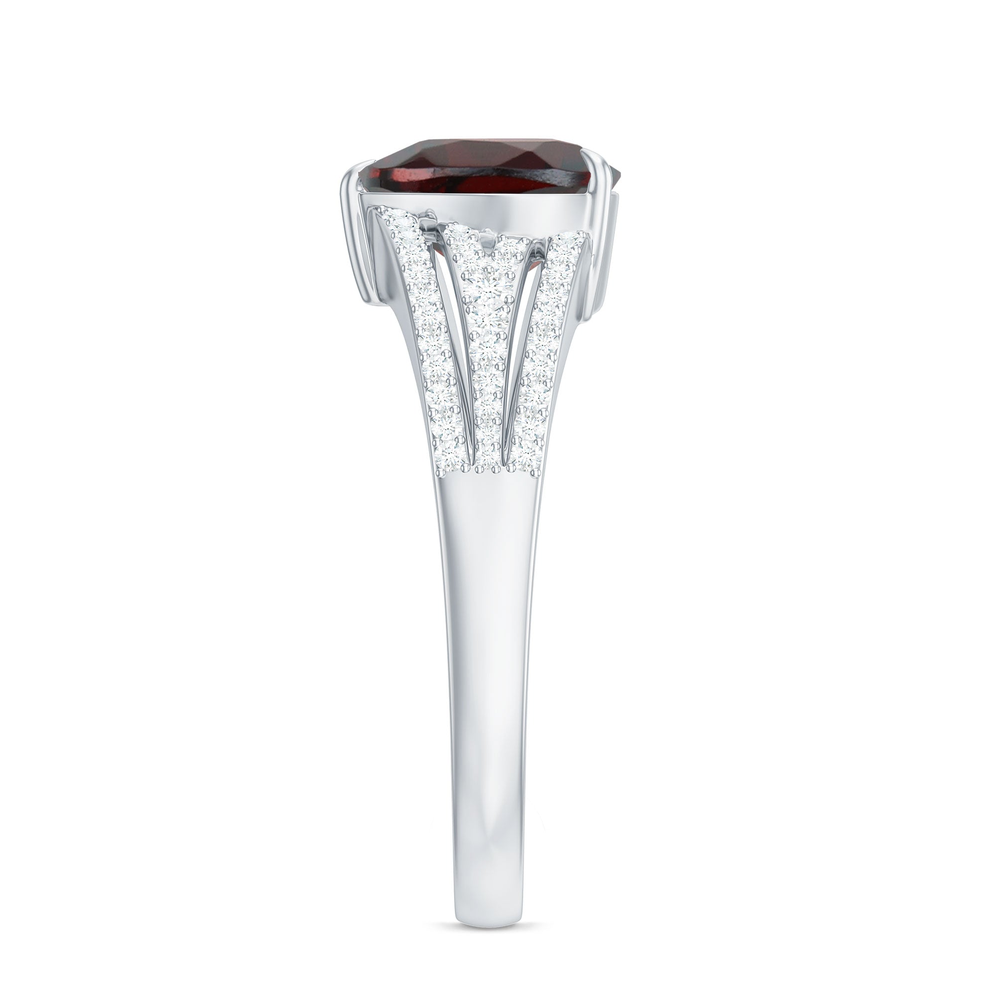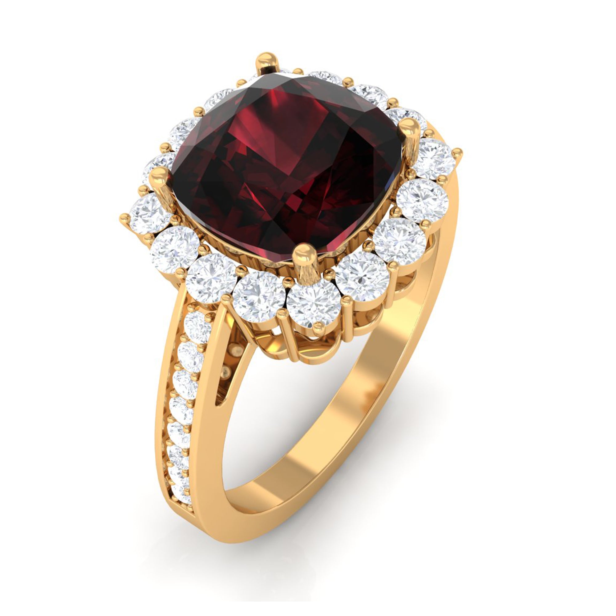 Garnet Halo Rings: - A fascinating twist on the traditional Solitaire Ring is the “halo ring”, which features a circle of diamond or moissanite surrounding the garnet solitaire. The Halo isn't just about adding sparkle; it adds versatility to the ring. Furthermore, it draws more focus to the garnet, creating the illusion of a larger stone. The halo style makes the ring more unique and attractive.