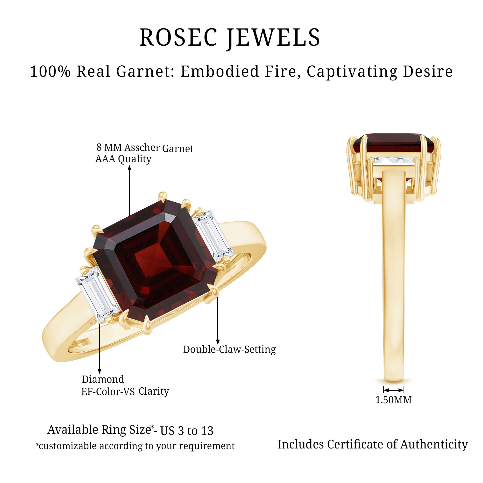 Garnet Solitaire Rings: - Truly the most traditional option for a garnet engagement rings, the Solitaire Style emphasizes the singular centerpiece of garnet. What's great about this style is its versatility, appealing to various aesthetics. While a round cut garnet solitaire ring might be the classic choice. You can also opt for fancier cuts such as marquise, pear, or princess shapes to add a contemporary touch. For those seeking a vintage vibe then an asscher, cushion, or emerald cut garnet engagement ring will be the ideal choice.