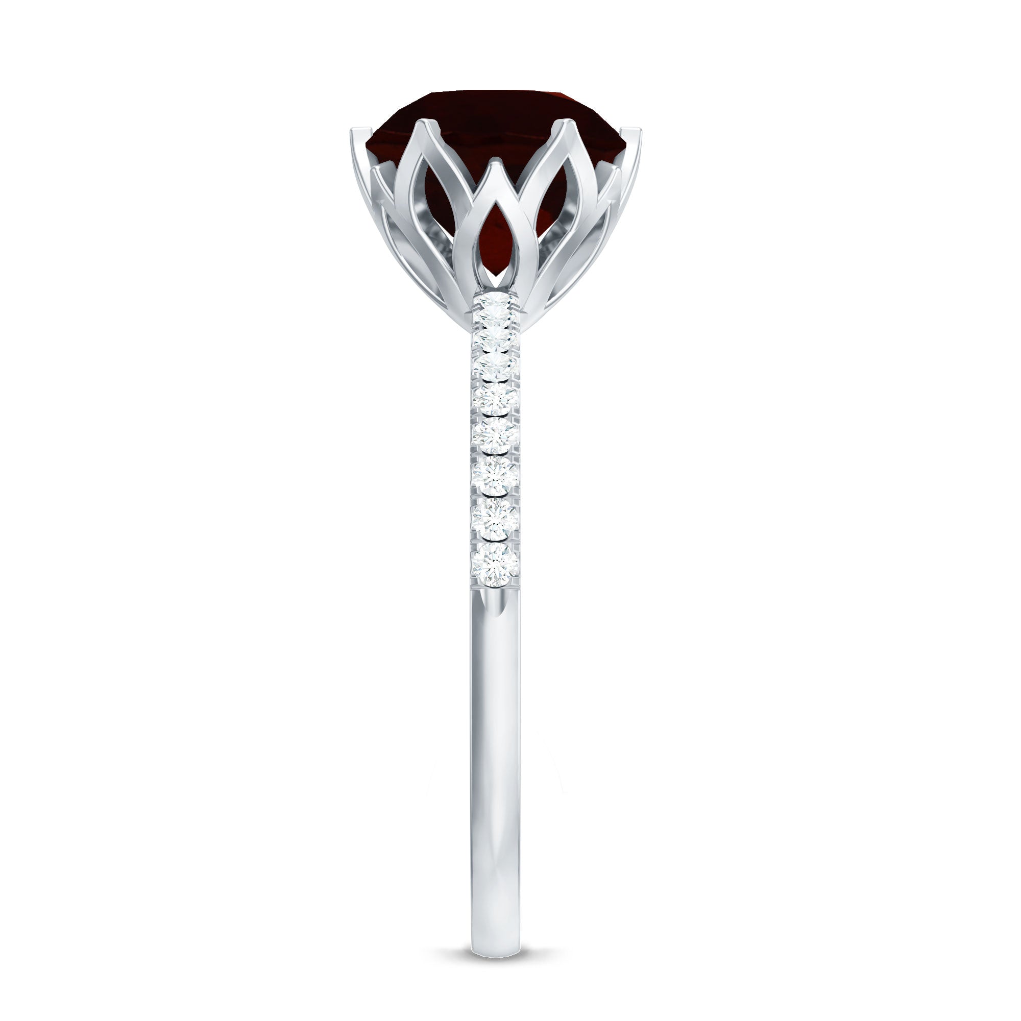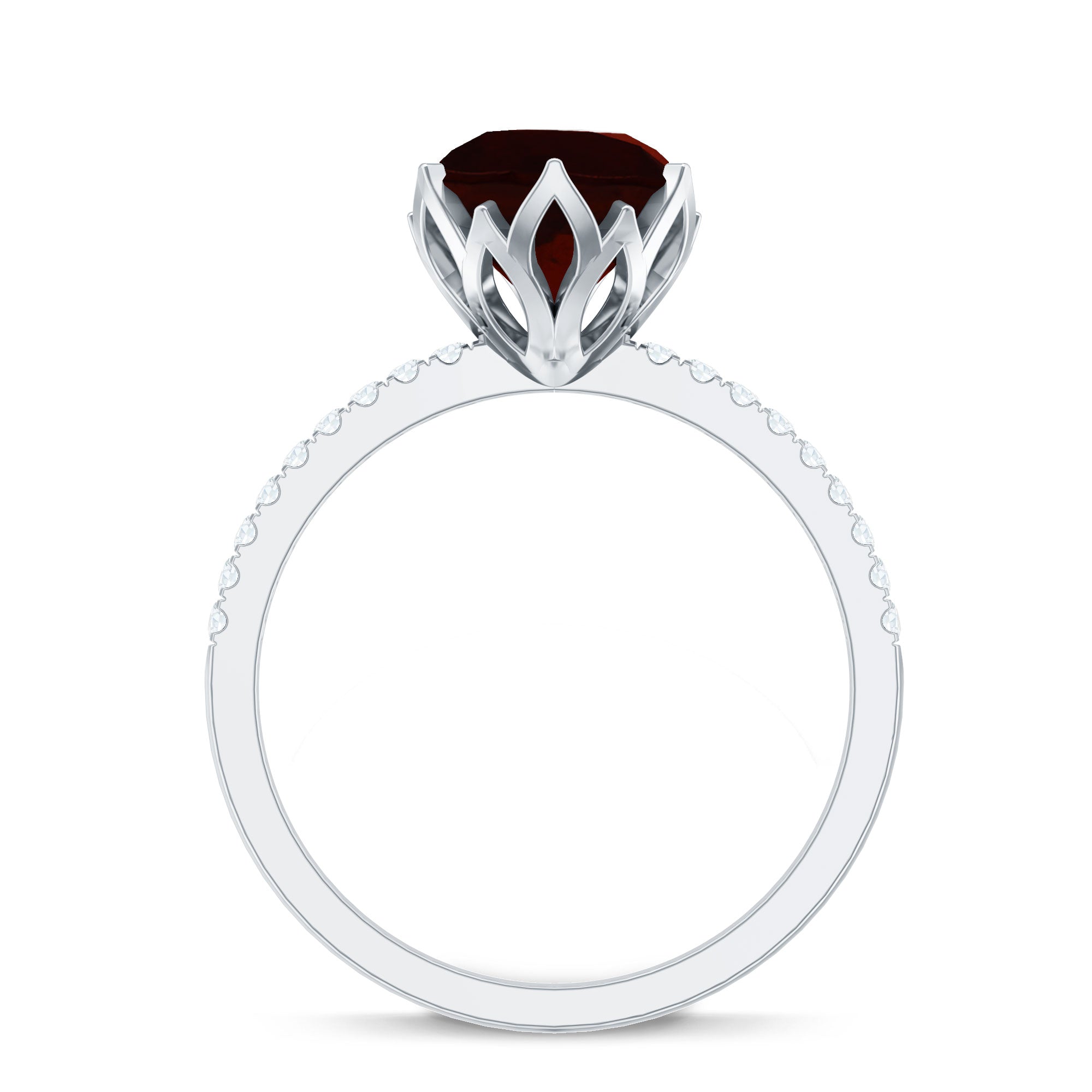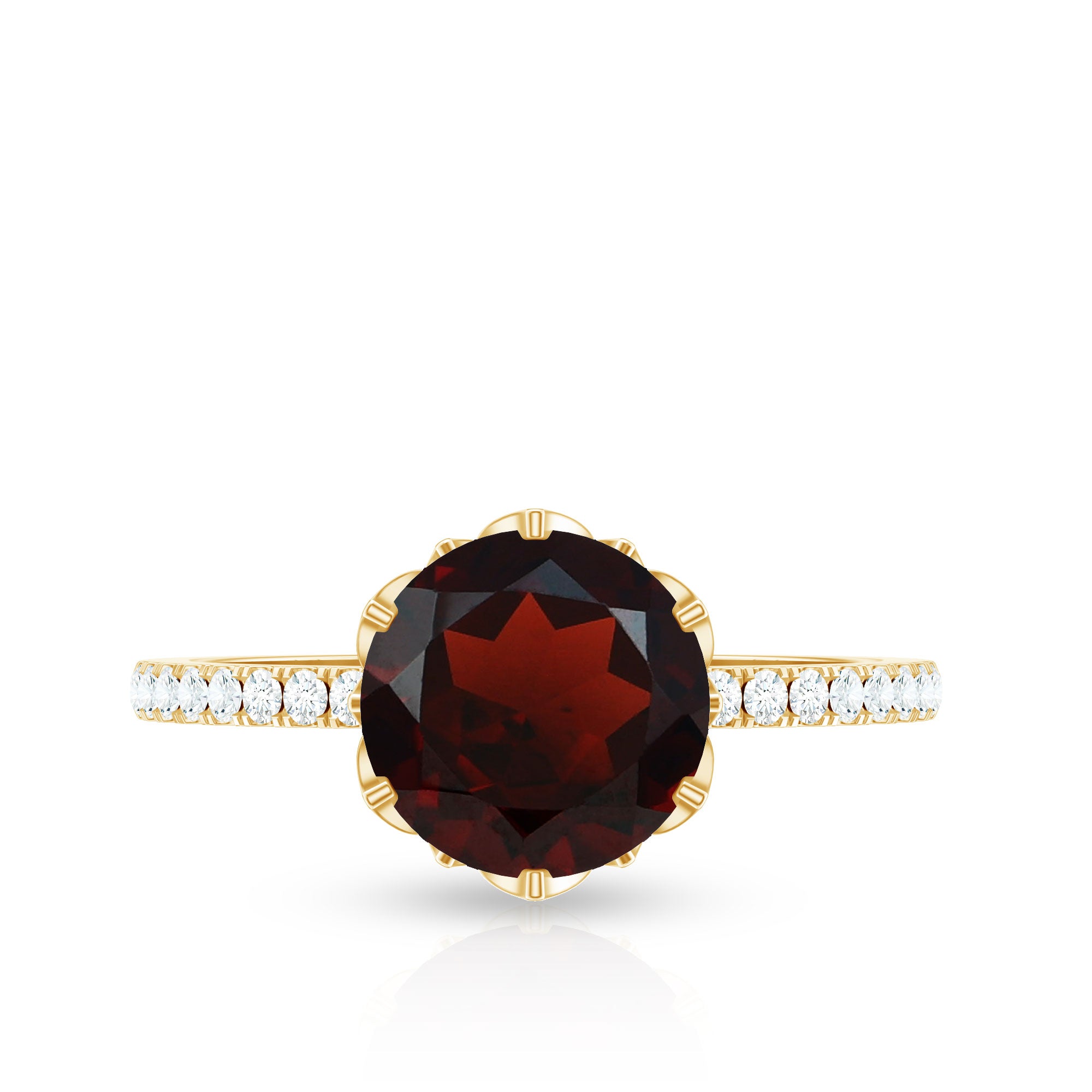 Garnet Solitaire Rings: - Truly the most traditional option for a garnet engagement rings, the Solitaire Style emphasizes the singular centerpiece of garnet. What's great about this style is its versatility, appealing to various aesthetics. While a round cut garnet solitaire ring might be the classic choice. You can also opt for fancier cuts such as marquise, pear, or princess shapes to add a contemporary touch. For those seeking a vintage vibe then an asscher, cushion, or emerald cut garnet engagement ring will be the ideal choice.