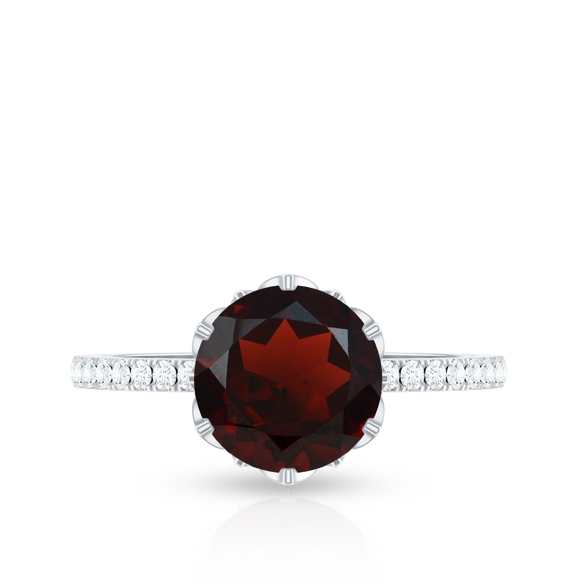 Garnet Halo Rings: - A fascinating twist on the traditional Solitaire Ring is the “halo ring”, which features a circle of diamond or moissanite surrounding the garnet solitaire. The Halo isn't just about adding sparkle; it adds versatility to the ring. Furthermore, it draws more focus to the garnet, creating the illusion of a larger stone. The halo style makes the ring more unique and attractive.