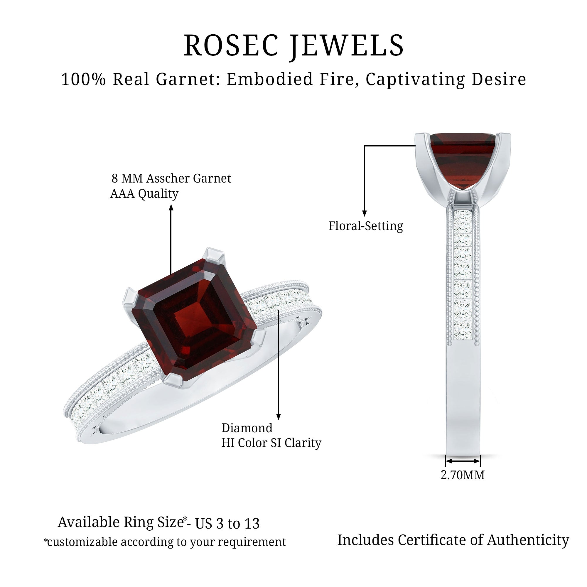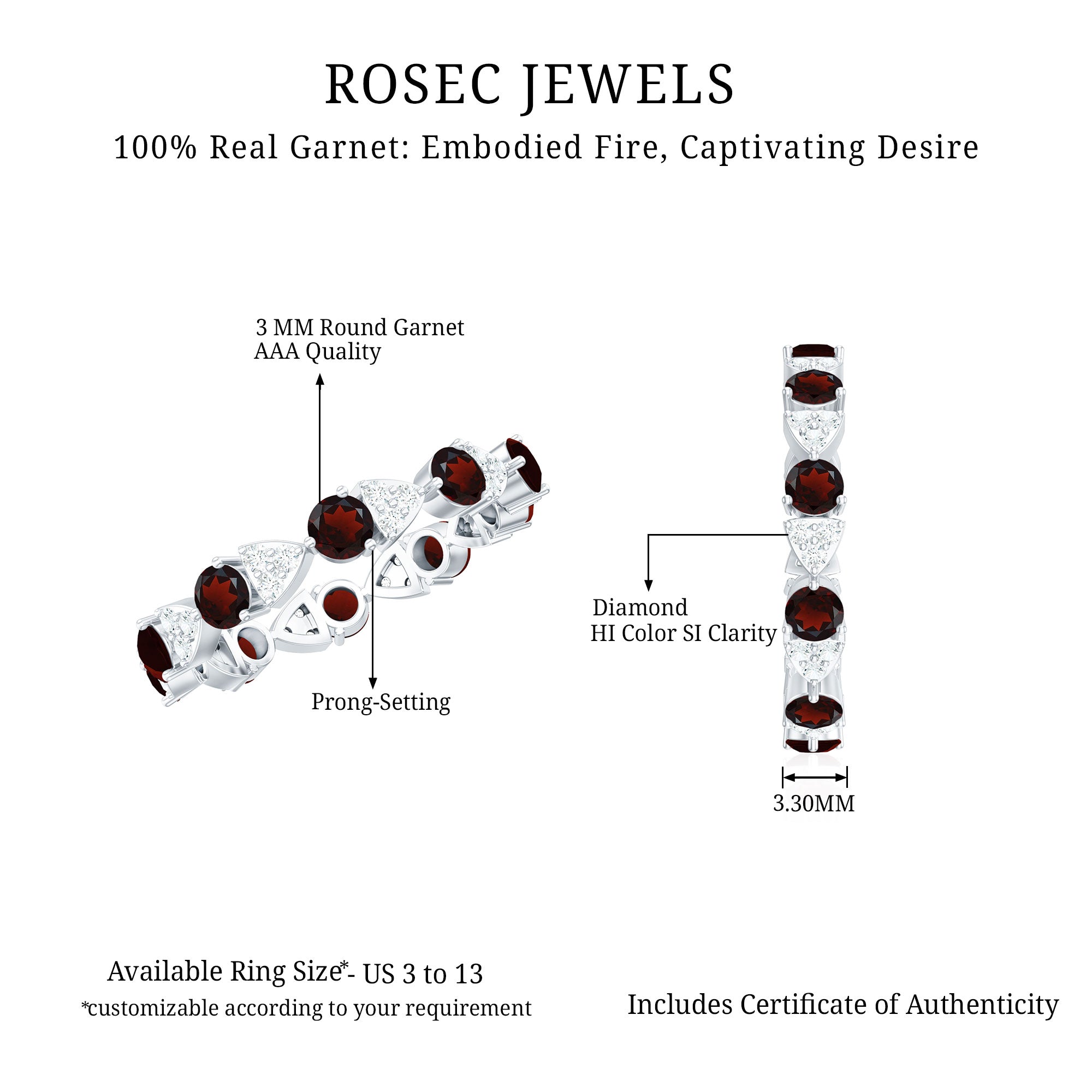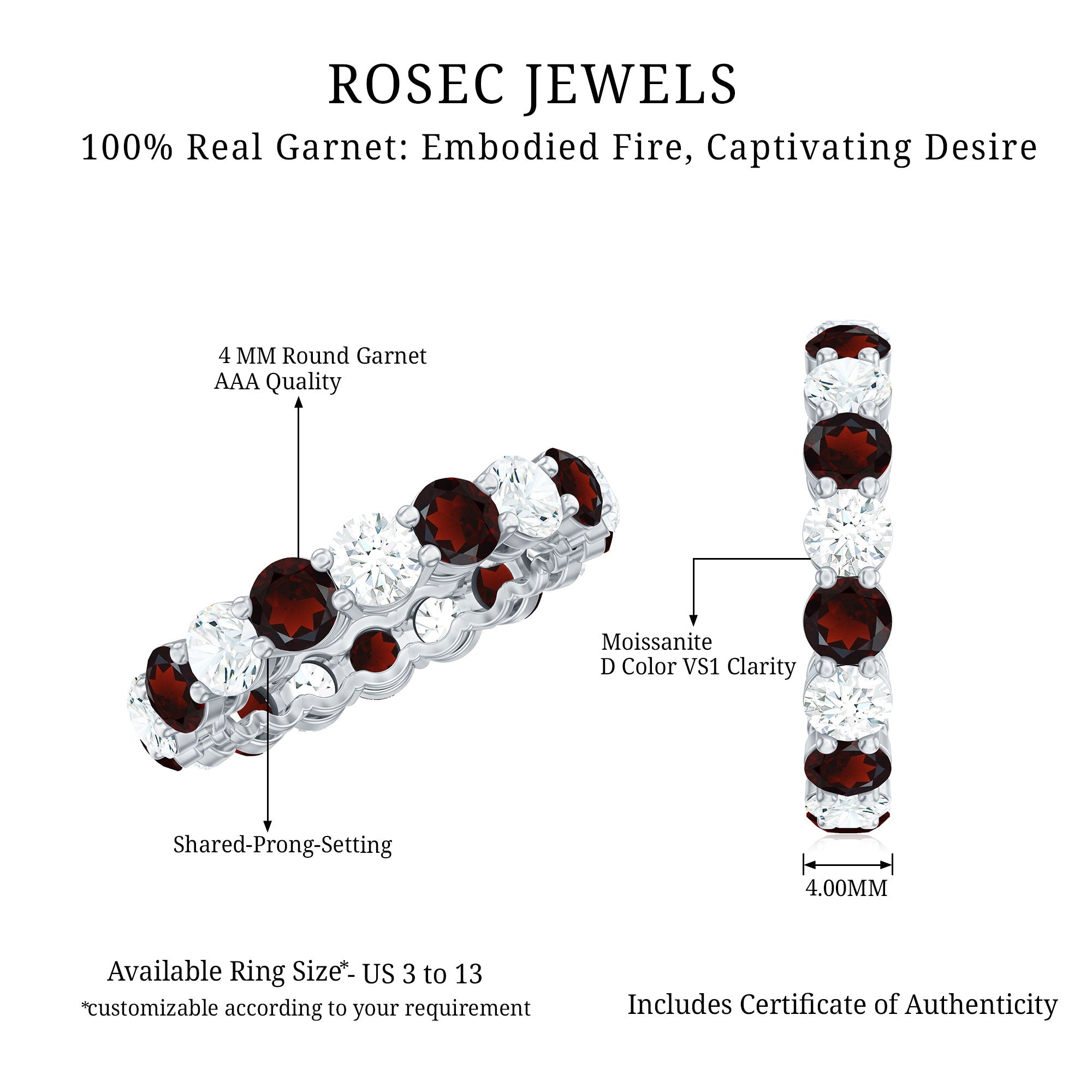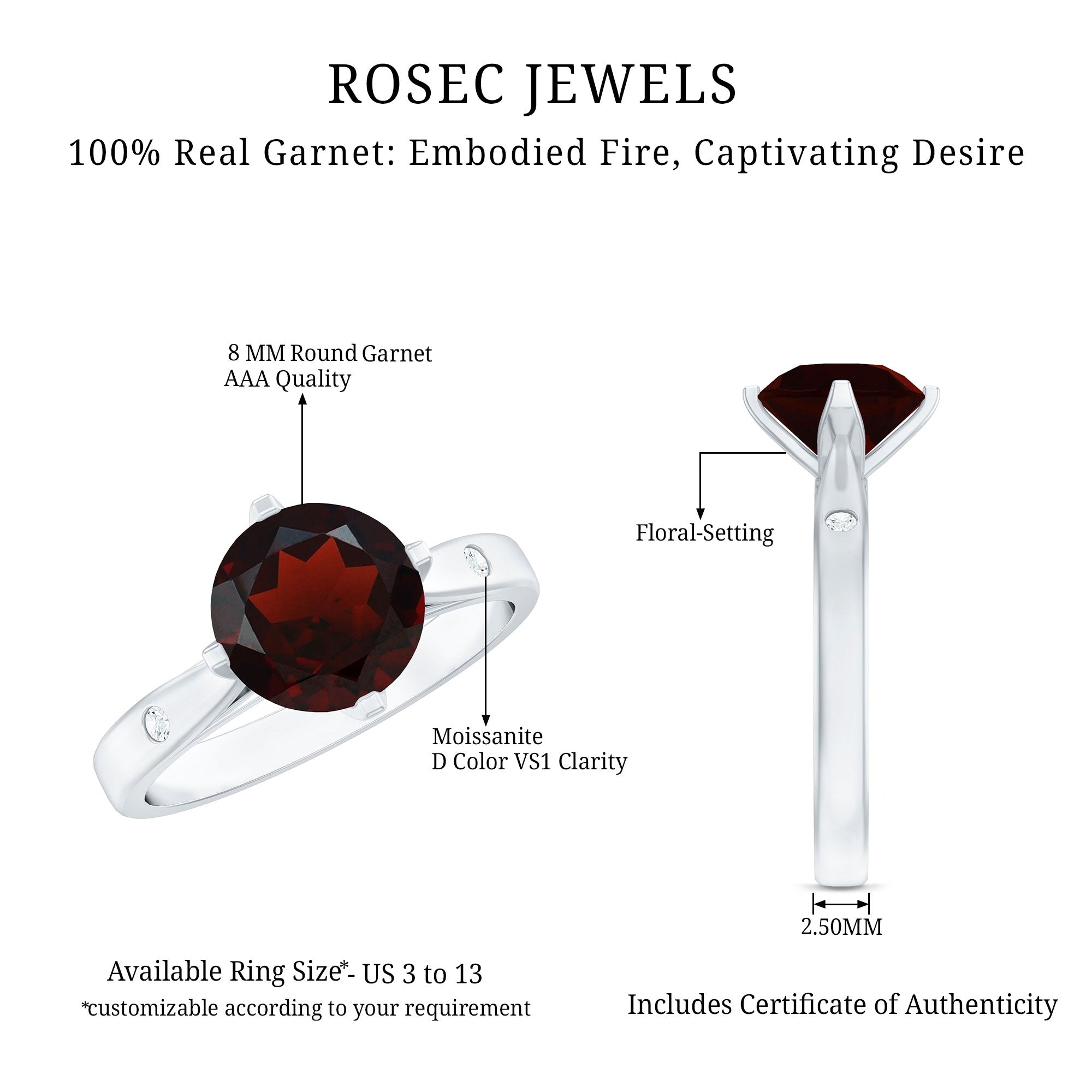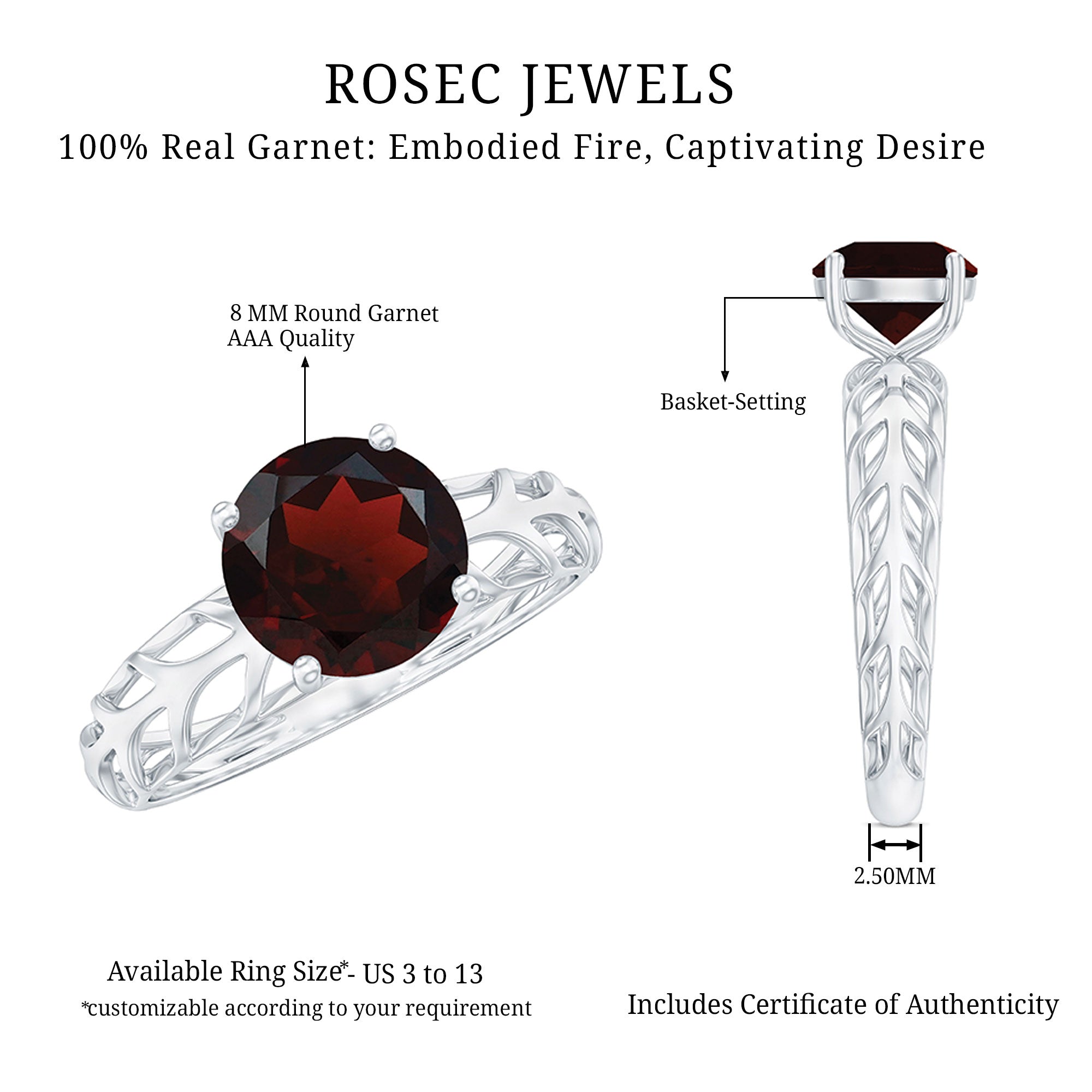 • Fast and Reliable Shipping: - Rosec Jewels is well known for fast and reliable shipping, and our valuable customers can take maximum benefit of it. We ensure that your garnet ring reaches you securely without delay.