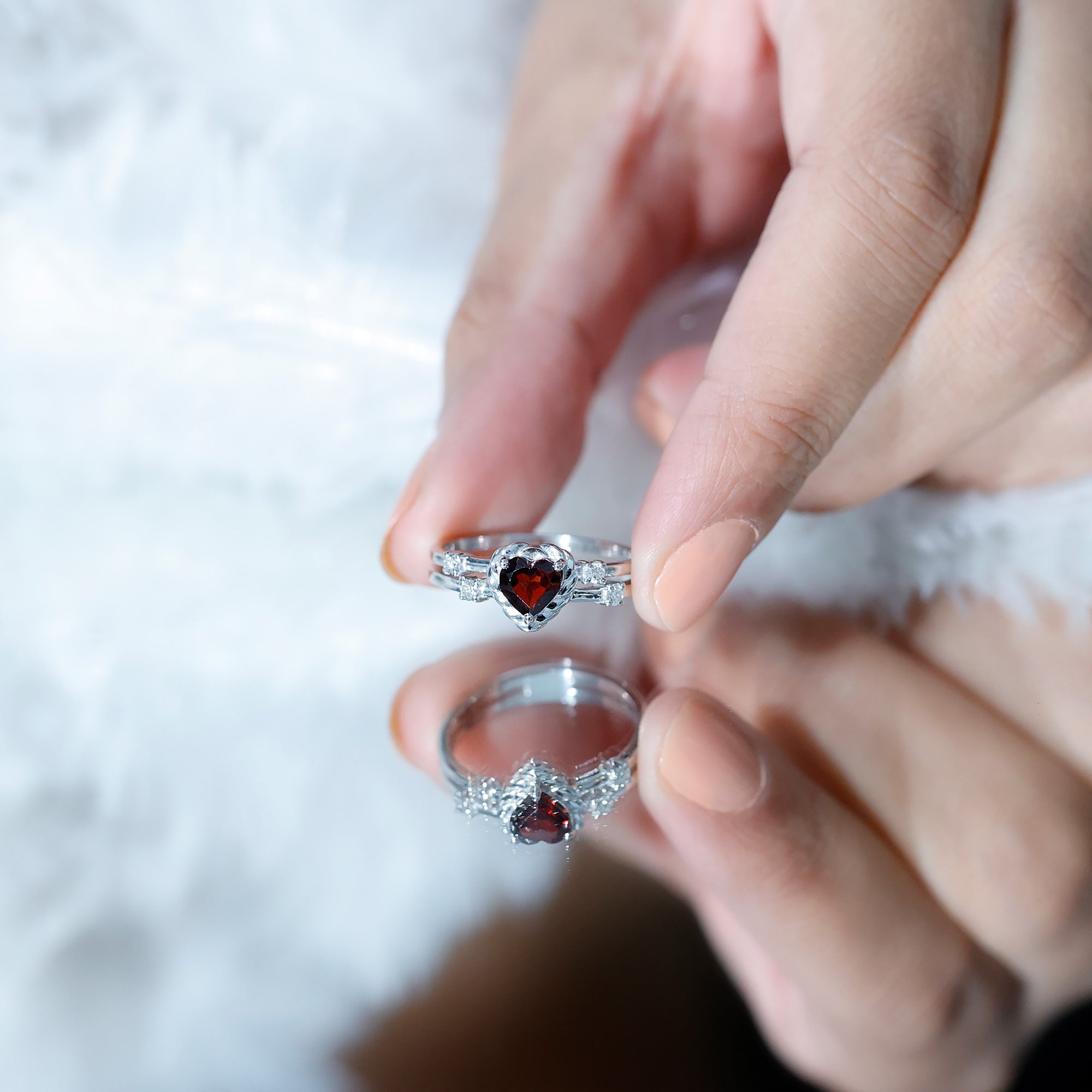 • Garnet Heart Rings: - Features heart shape garnet that holds symbolic significance in the wearer's life. These heart garnet rings can be exchanged between couples as a pledge of love and dedication. Its aesthetic varies widely, ranging from a classic garnet solitaire Ring to a more extravagant halo design for classy appearance. The Garnet Heart Ring emerges as the epitome of romantic and meaningful promise rings.