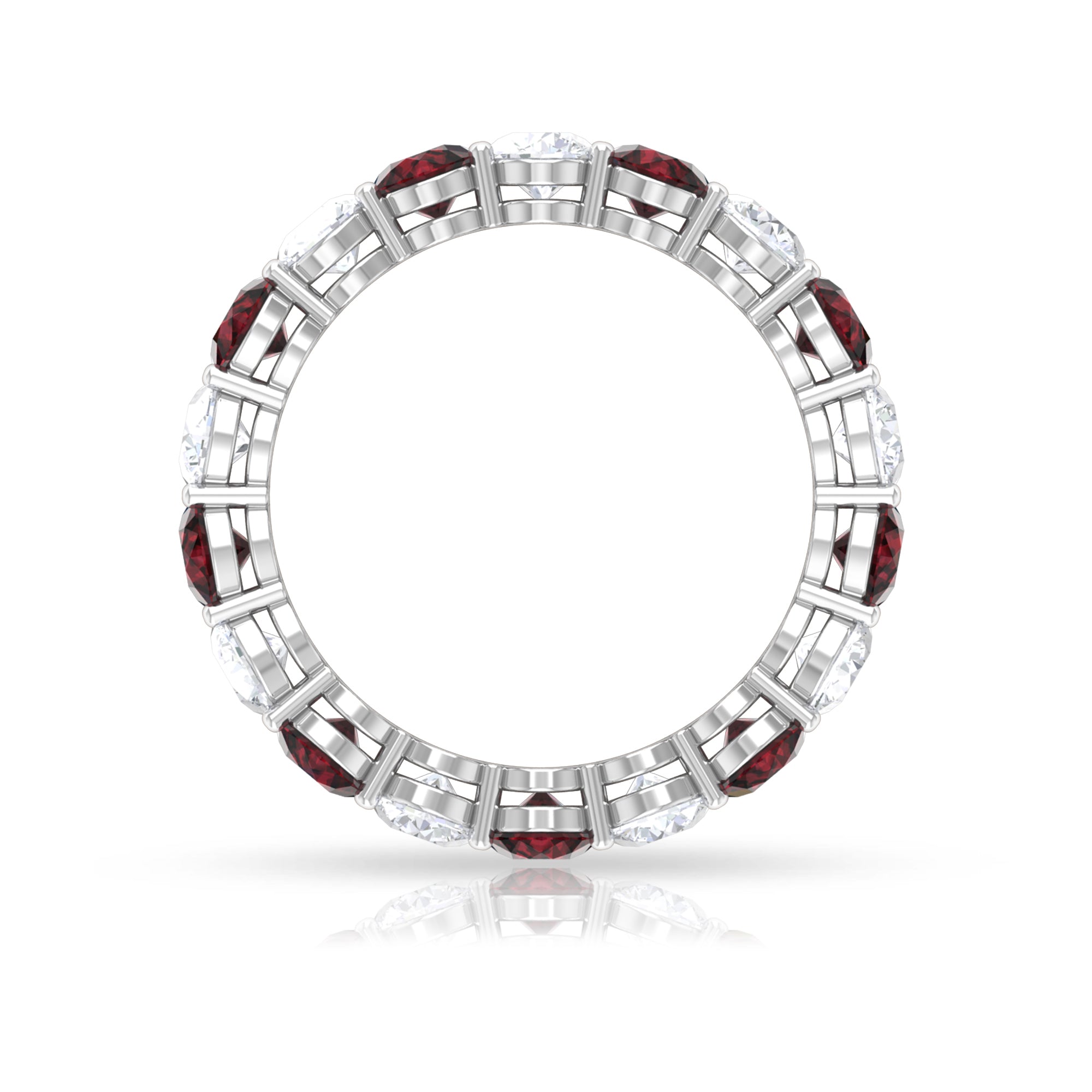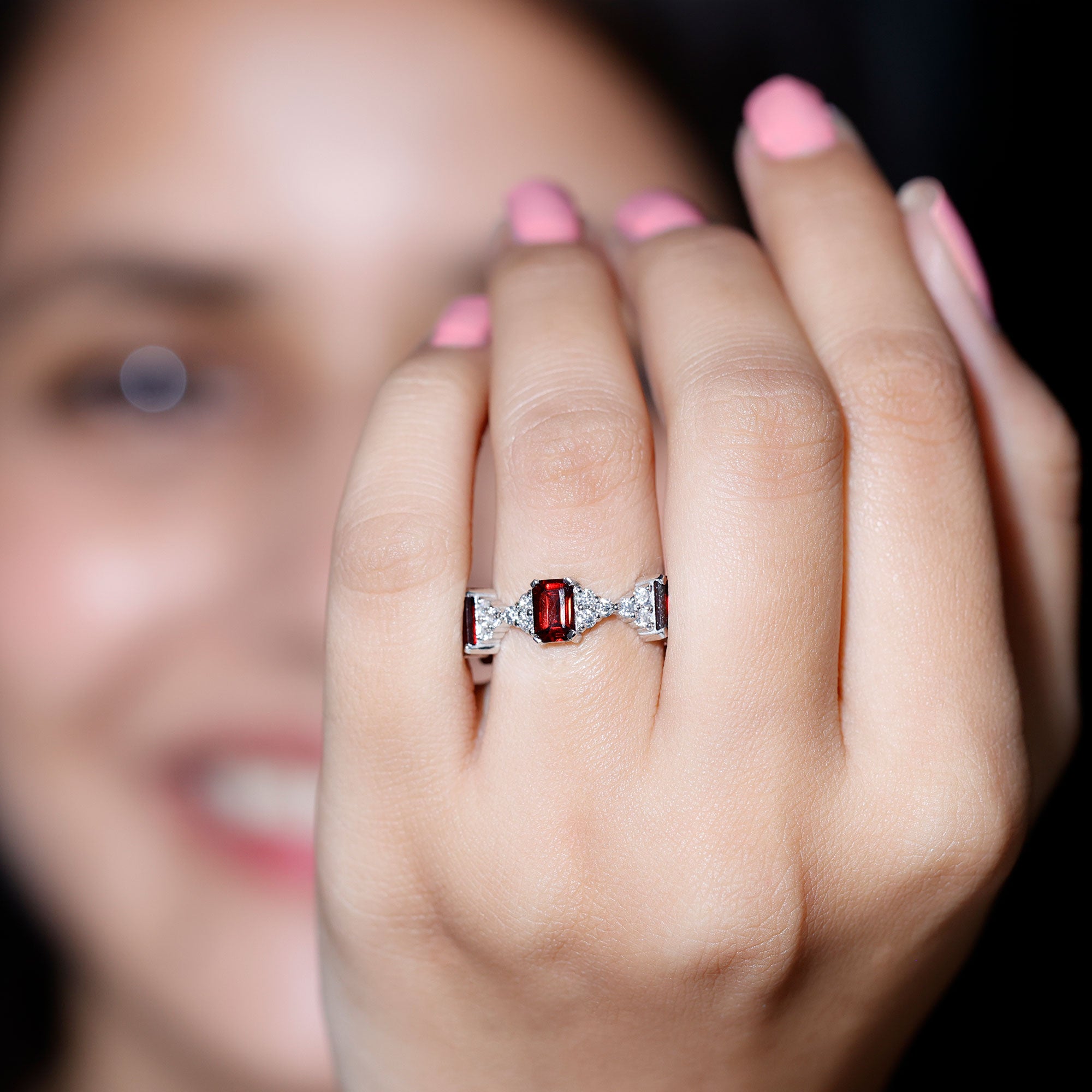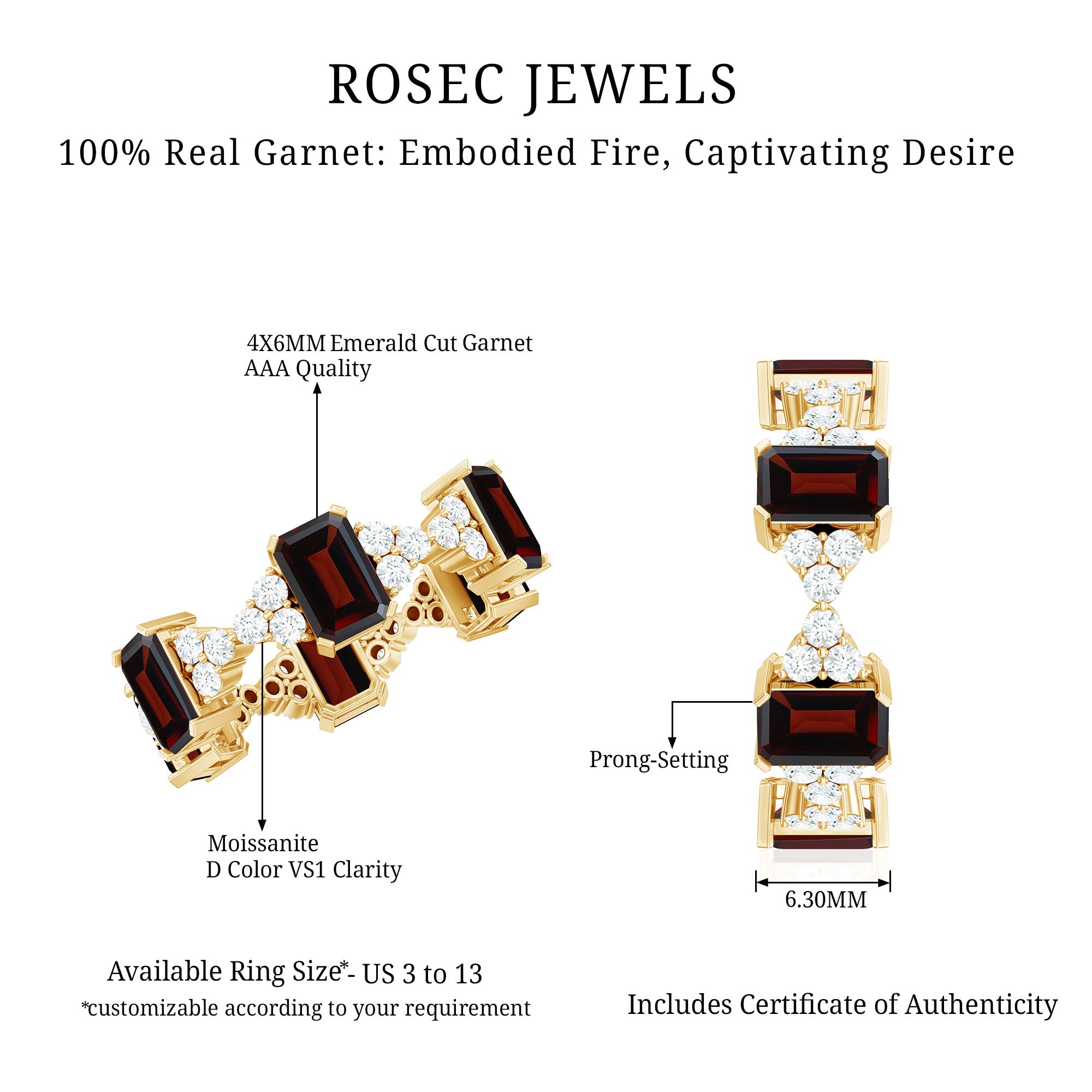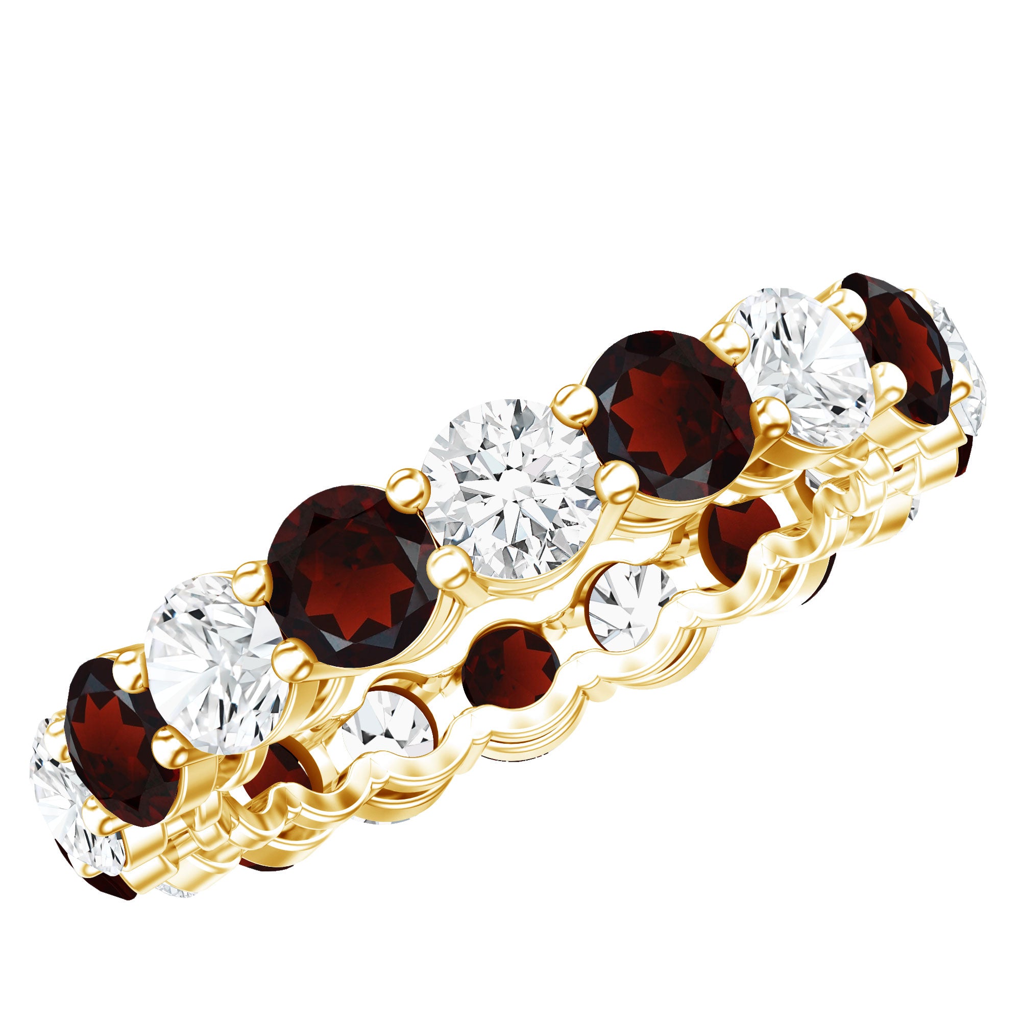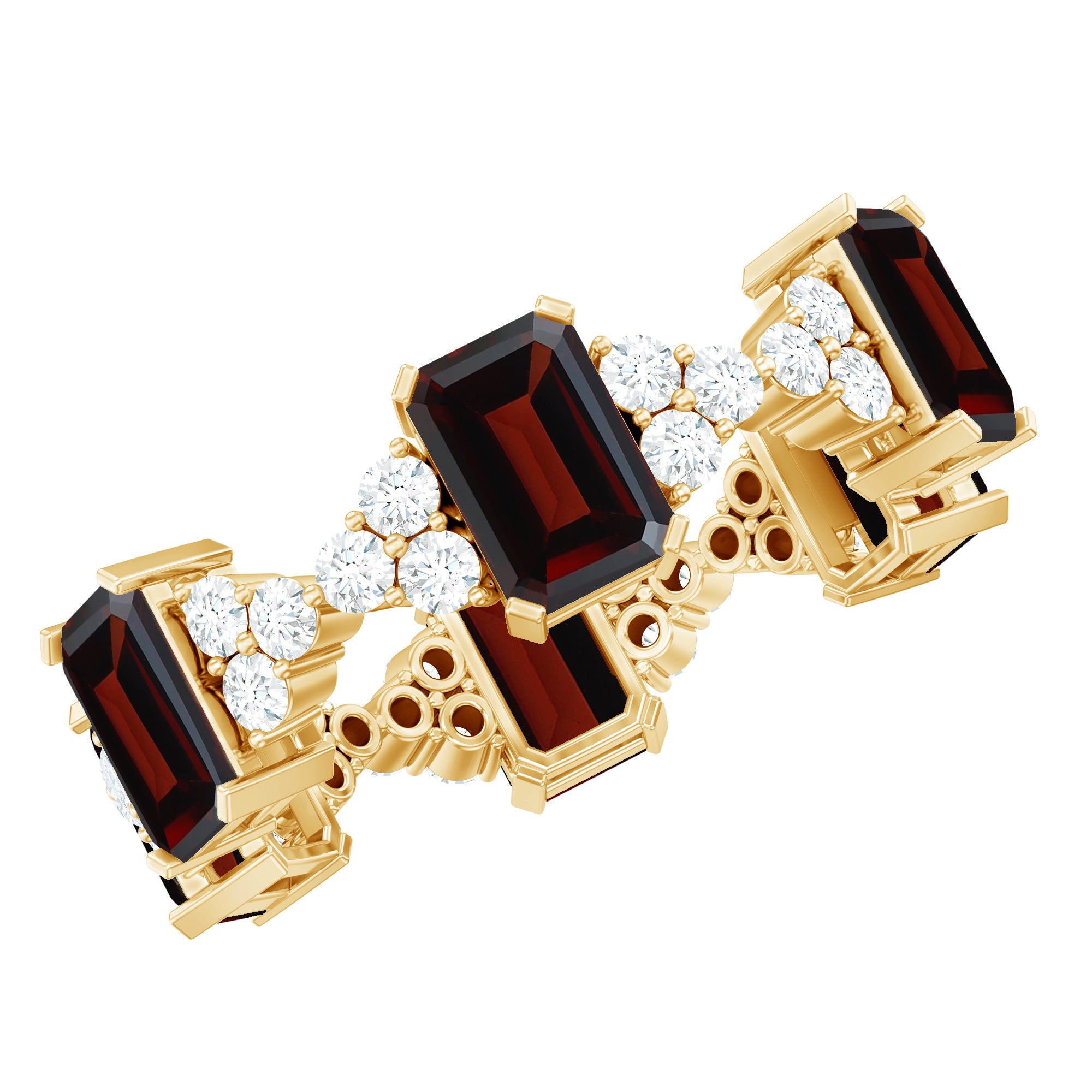 Garnet Eternity Rings: - An eternity ring showcases a continuous circle of garnets, providing a vibrant burst of color for those seeking more than a solitaire style. With its bold red hue, a garnet eternity ring becomes a classic yet striking accessory in your jewelry collection. Moreover, a garnet and diamond ring in an eternity style offers a unique blend of color and sparkle, making it a truly exotic choice. Beyond its aesthetic appeal, this style symbolizes a love that transcends boundaries, making it a meaningful option for a garnet wedding ring.