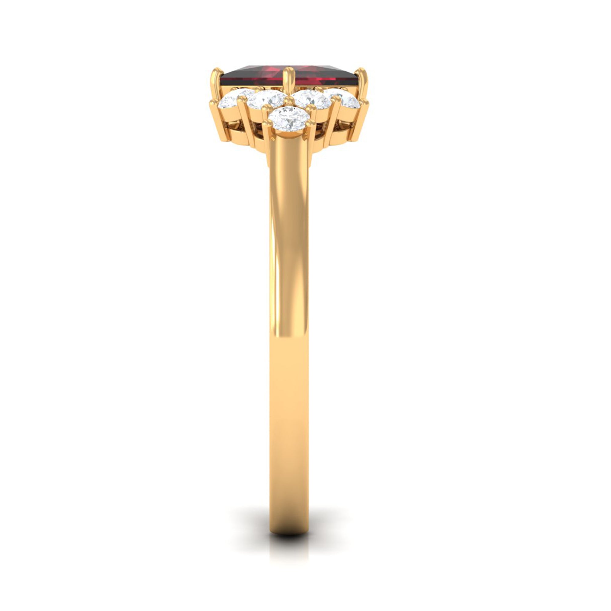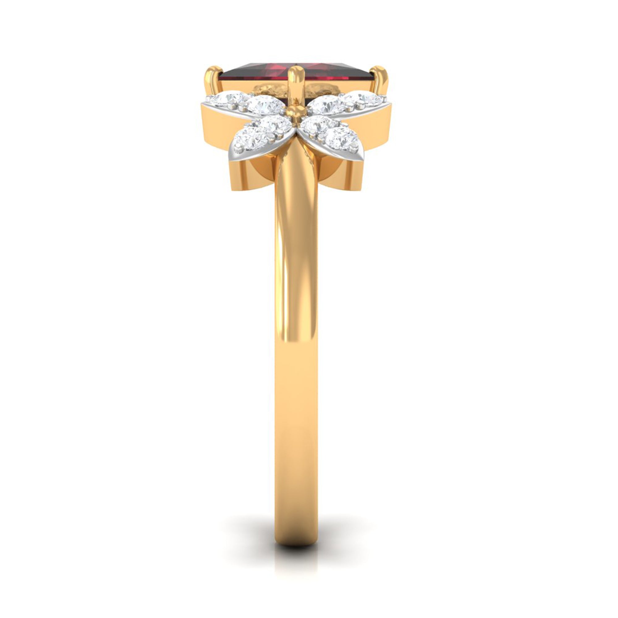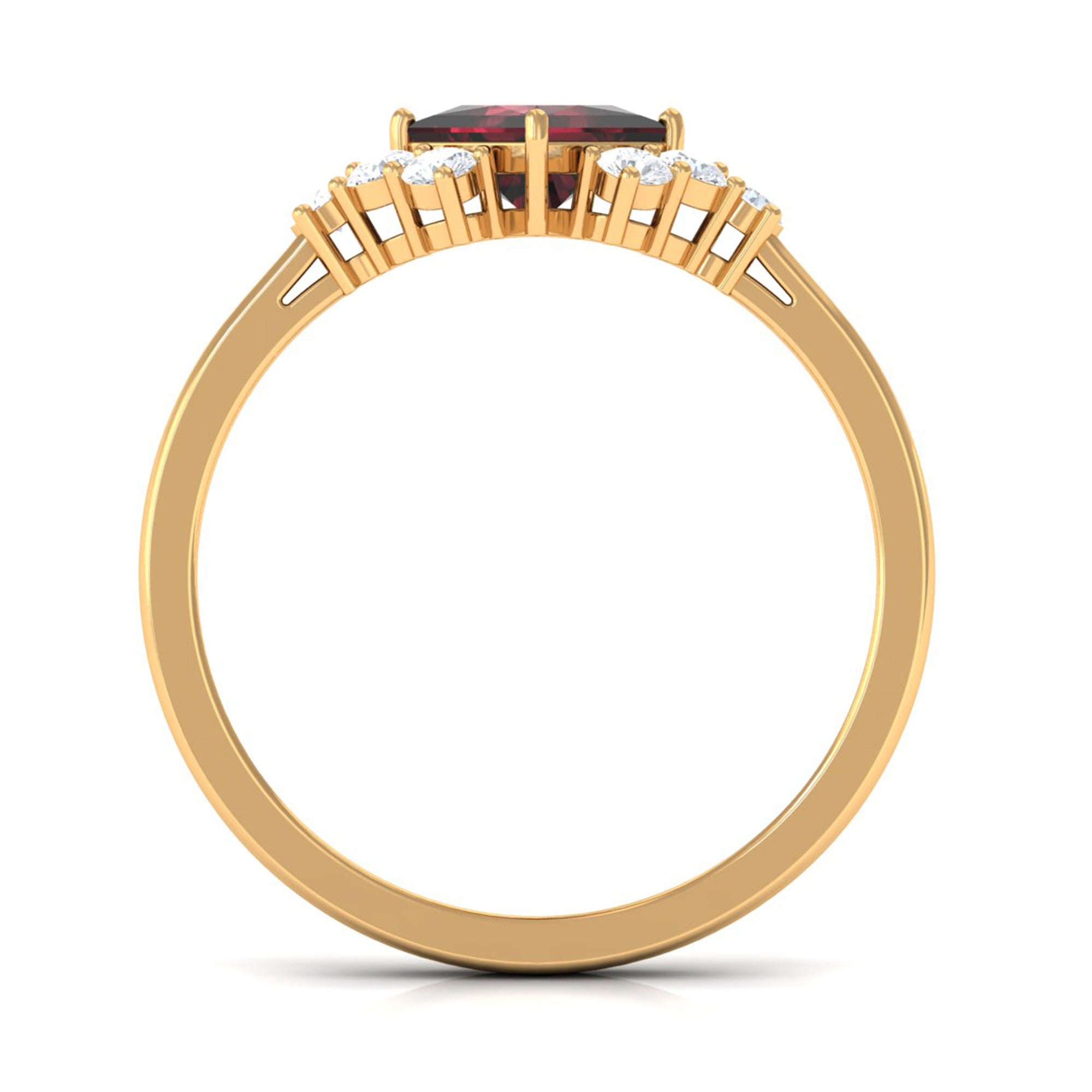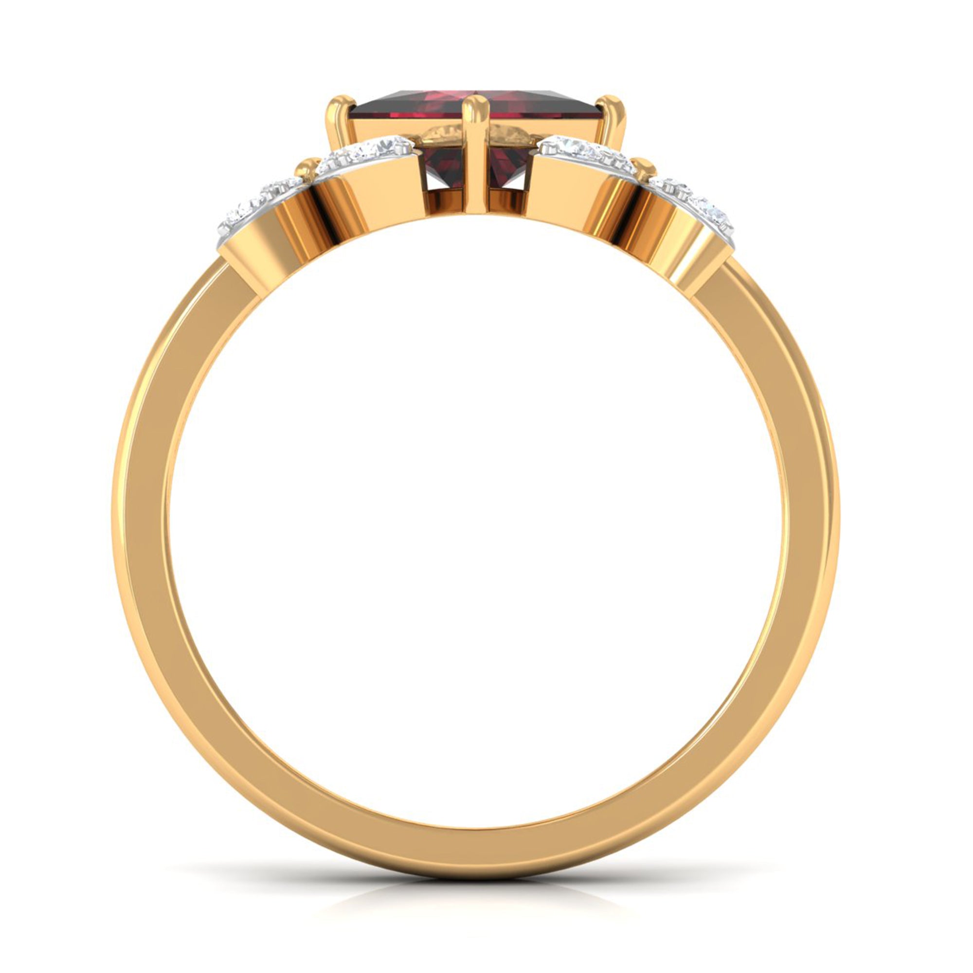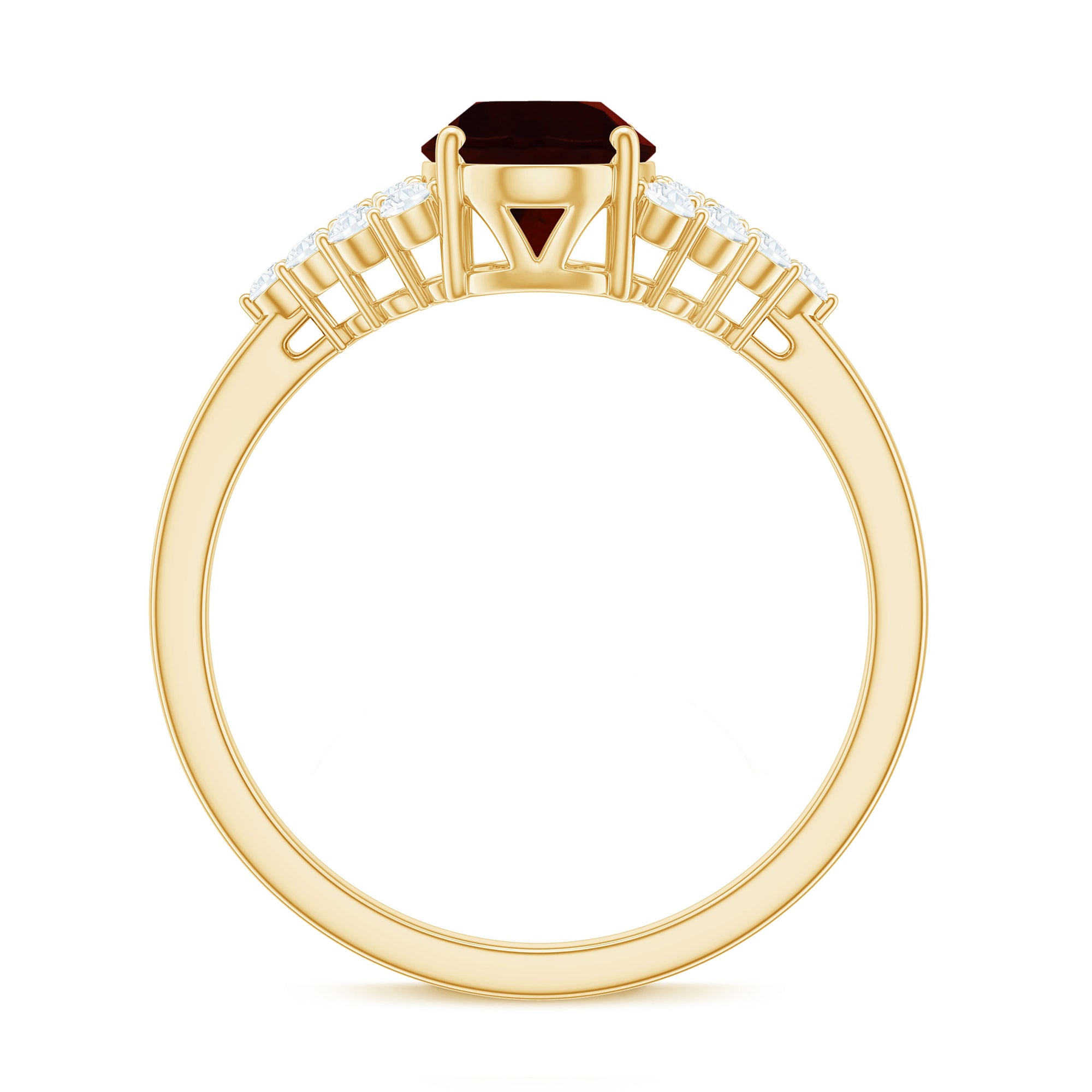 Garnet Solitaire Rings: - Truly the most traditional option for a garnet engagement rings, the Solitaire Style emphasizes the singular centerpiece of garnet. What's great about this style is its versatility, appealing to various aesthetics. While a round cut garnet solitaire ring might be the classic choice. You can also opt for fancier cuts such as marquise, pear, or princess shapes to add a contemporary touch. For those seeking a vintage vibe then an asscher, cushion, or emerald cut garnet engagement ring will be the ideal choice.