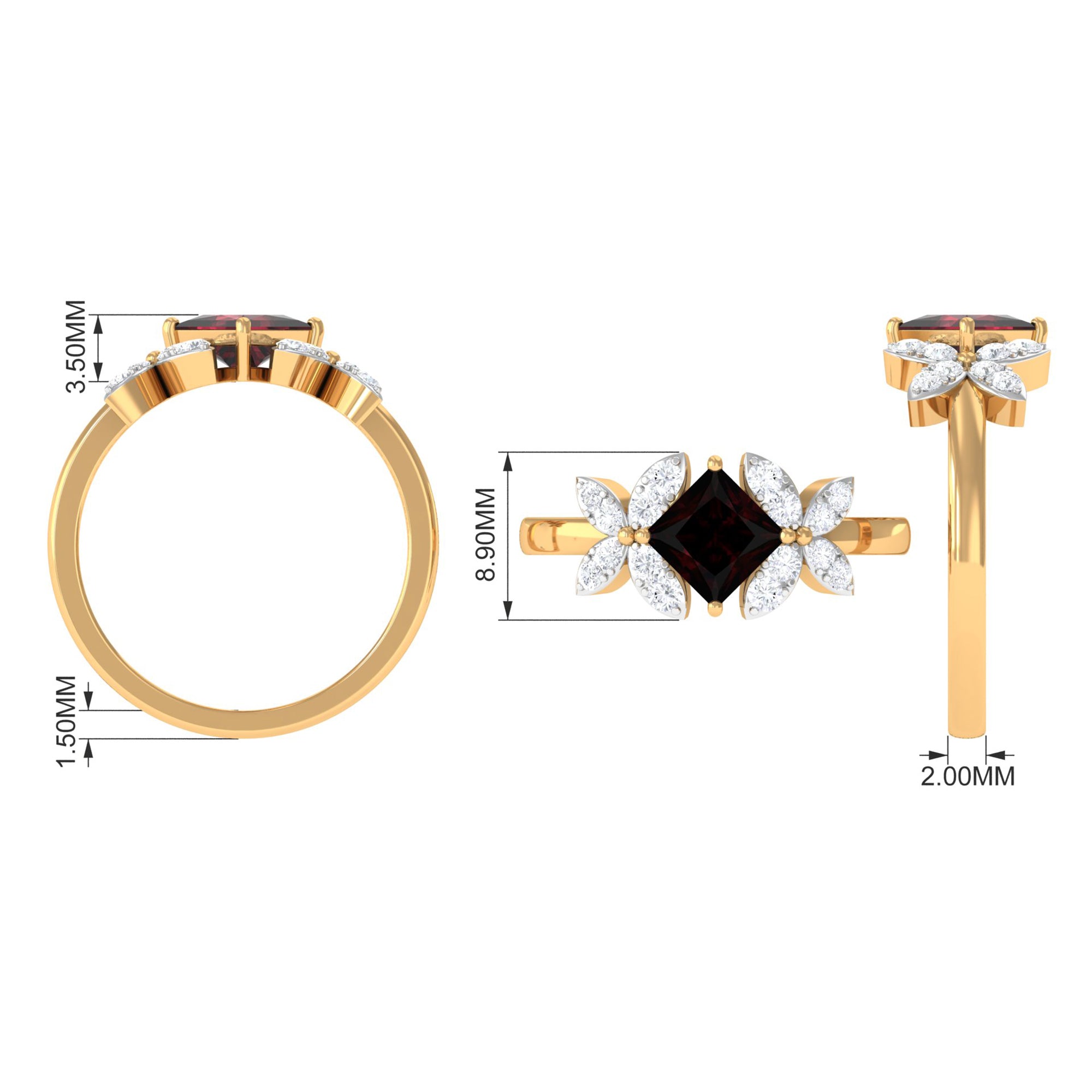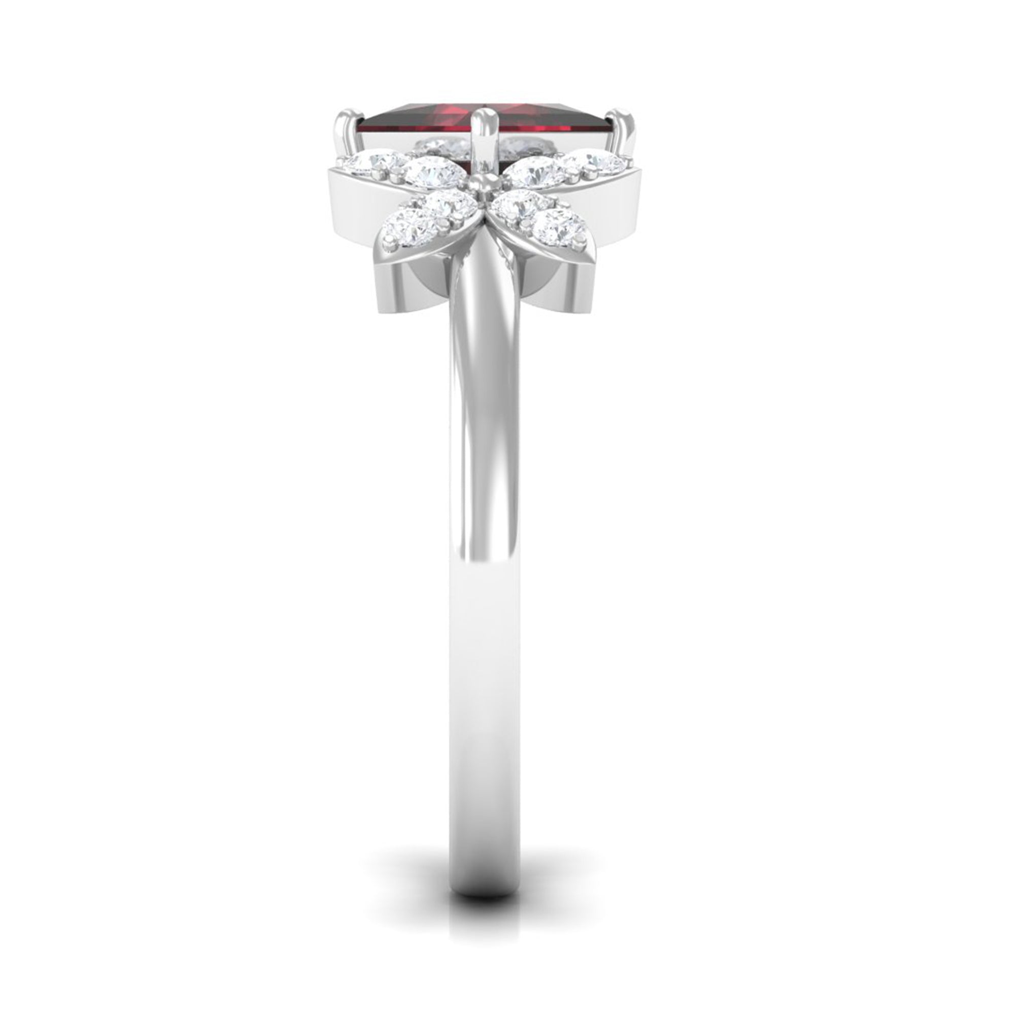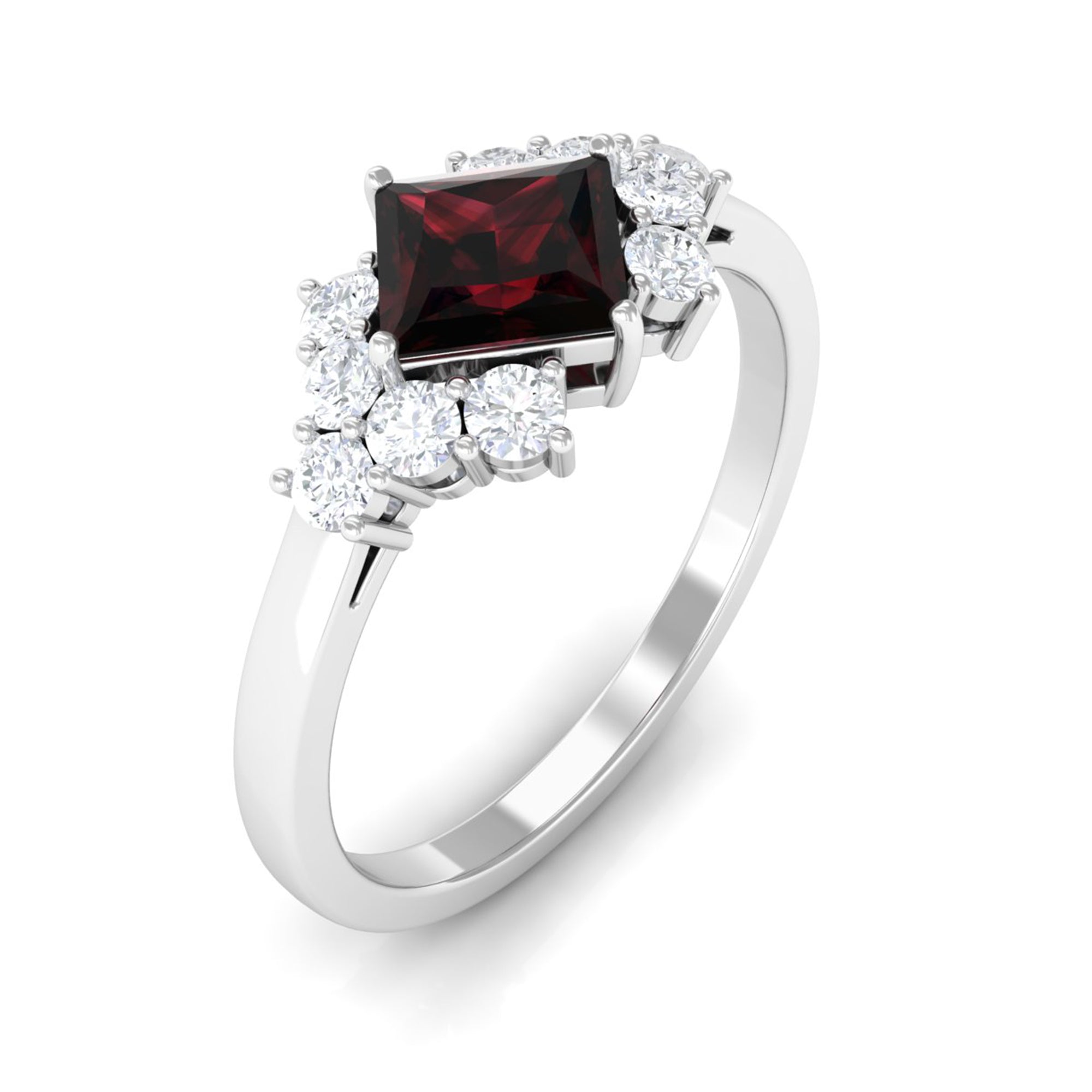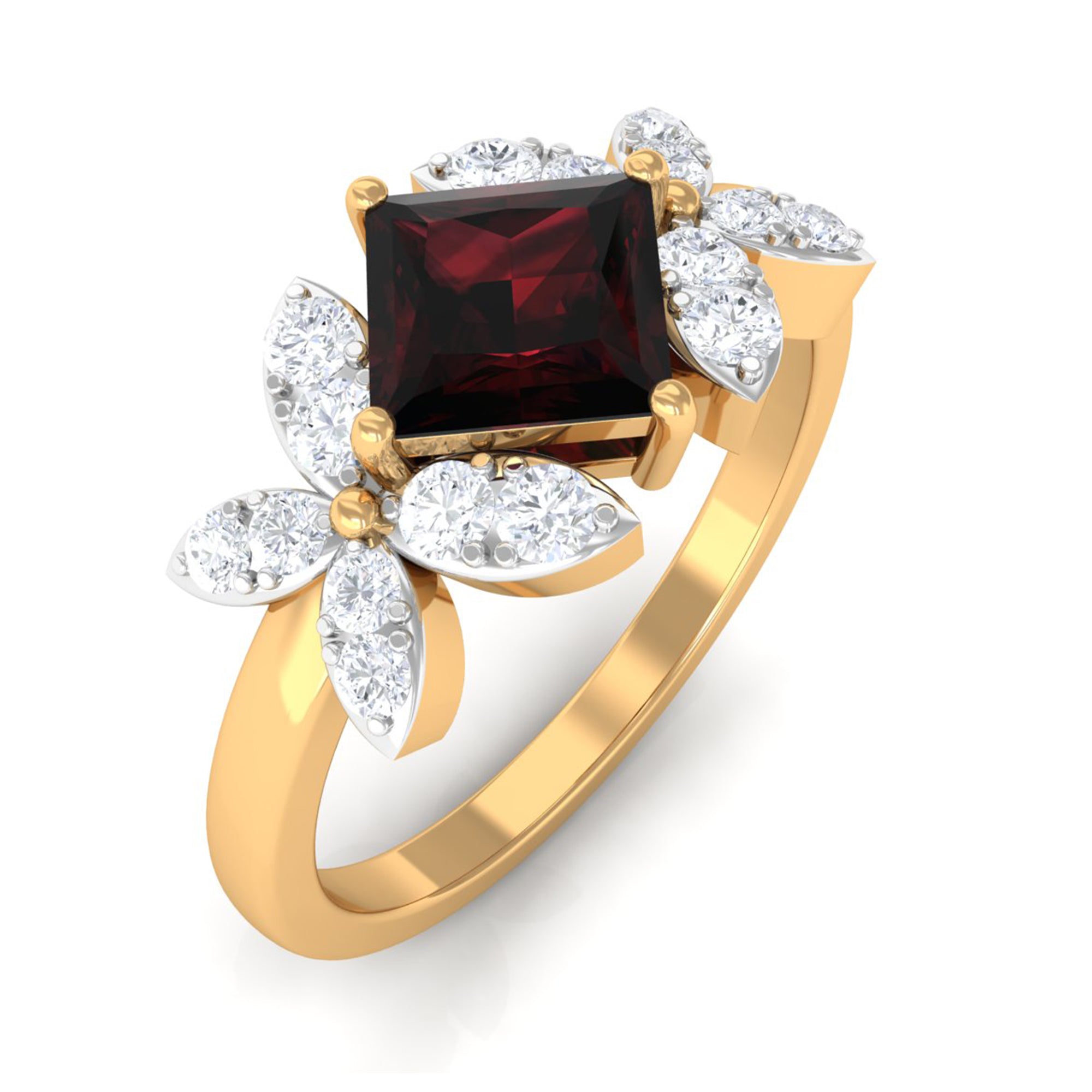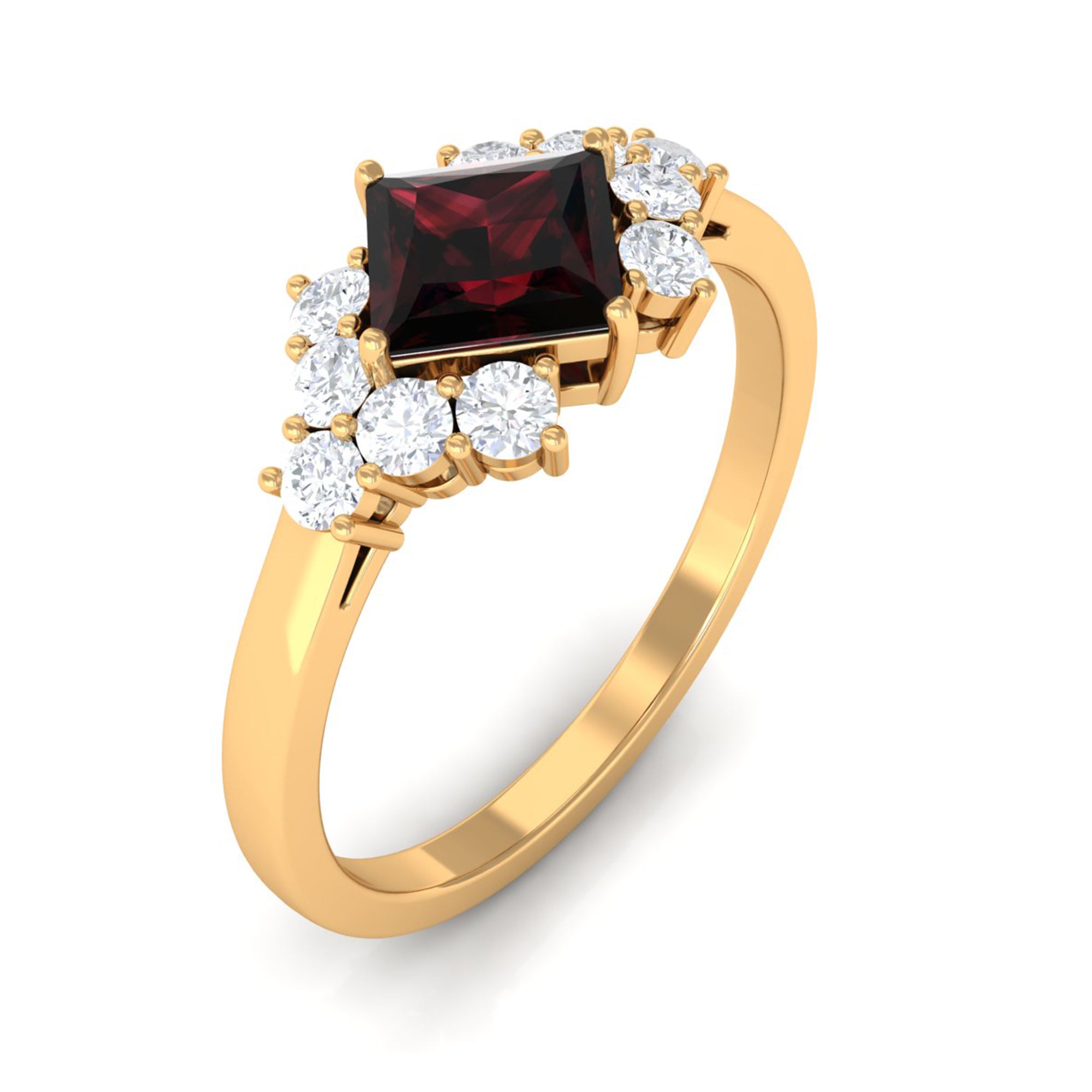 Garnet Solitaire Rings: - Truly the most traditional option for a garnet engagement rings, the Solitaire Style emphasizes the singular centerpiece of garnet. What's great about this style is its versatility, appealing to various aesthetics. While a round cut garnet solitaire ring might be the classic choice. You can also opt for fancier cuts such as marquise, pear, or princess shapes to add a contemporary touch. For those seeking a vintage vibe then an asscher, cushion, or emerald cut garnet engagement ring will be the ideal choice.