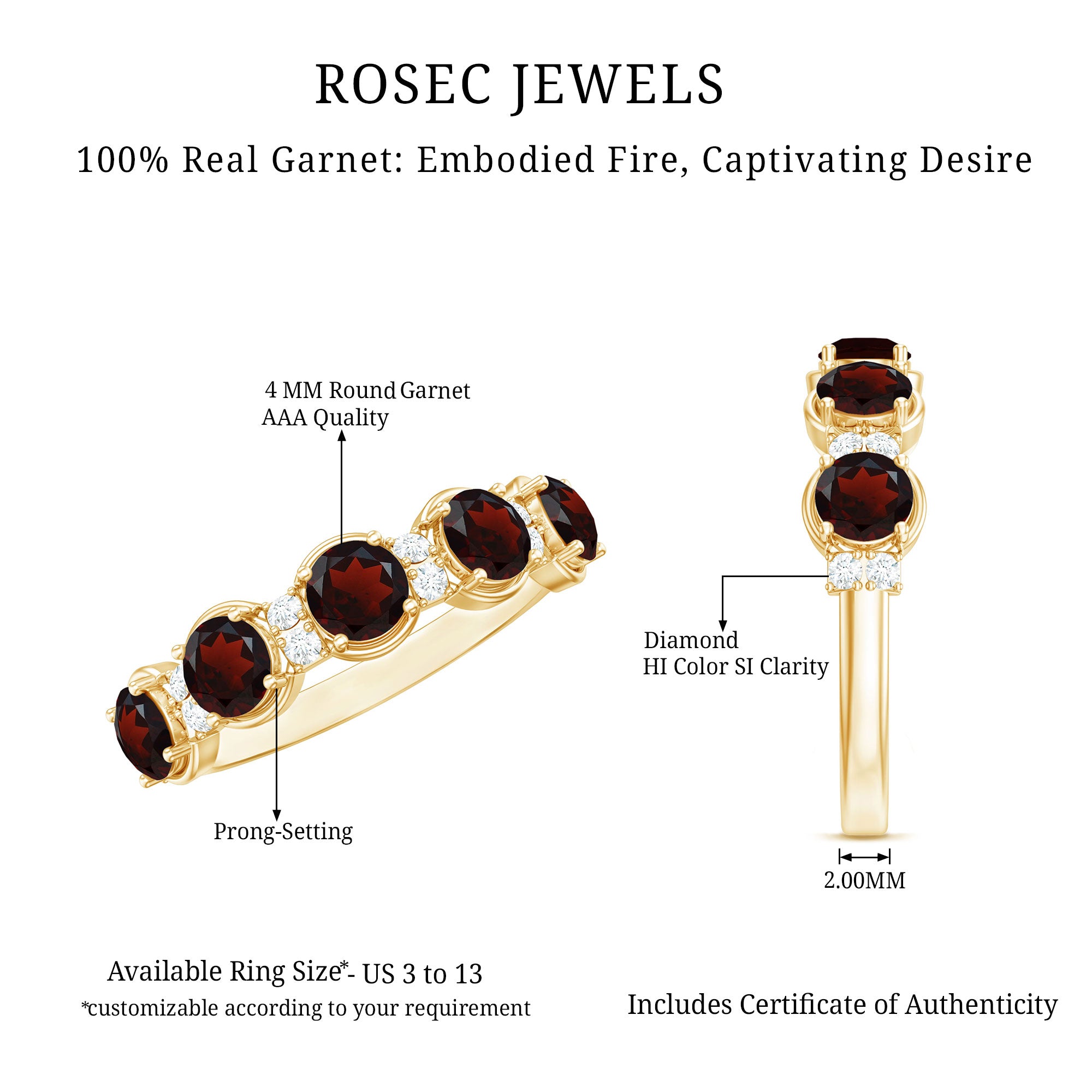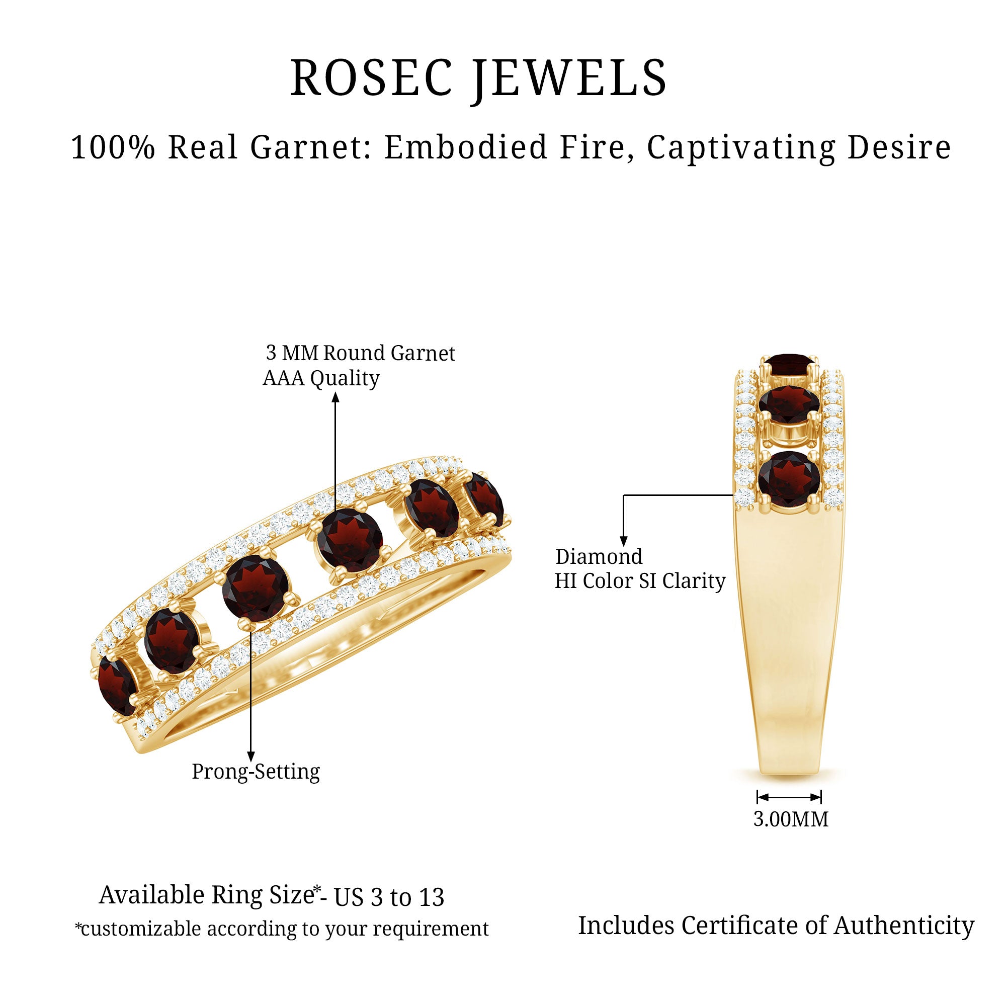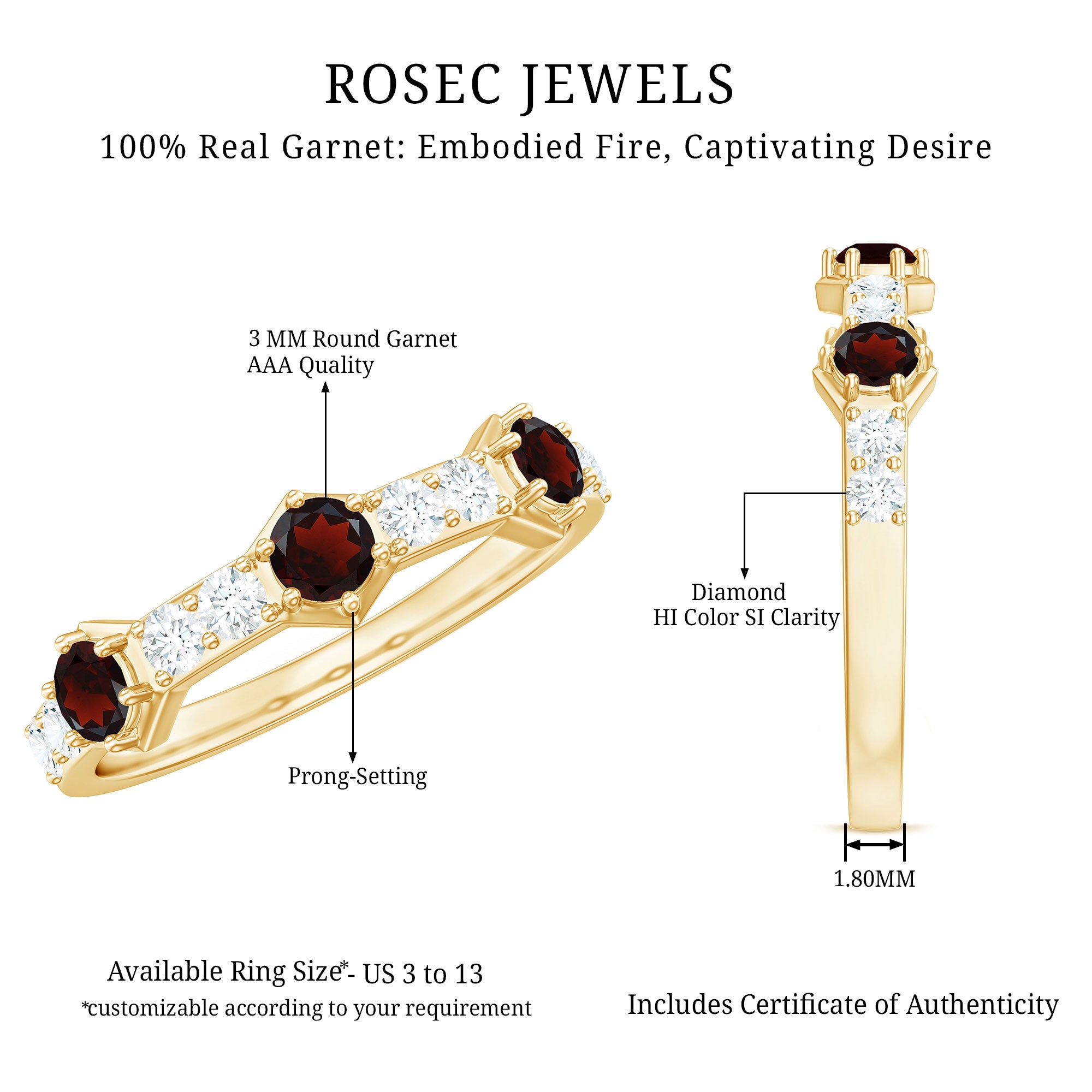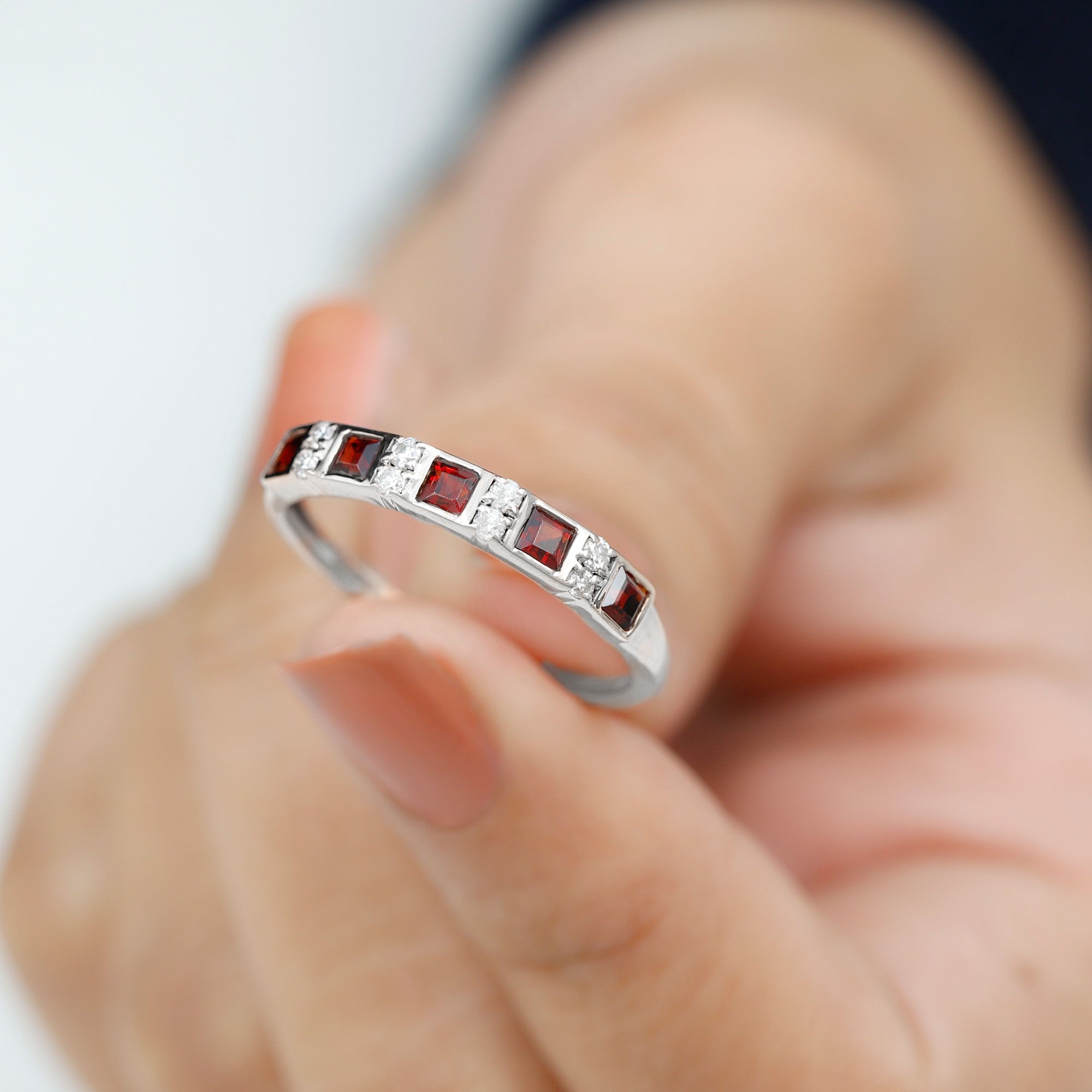 Garnet wedding rings from Rosec Jewels will leave your better half astound when the wedding ring slides down her finger, a moment that is going to sit in her memory forever. Featuring natural garnets, the member of silicate family of minerals and have loved for their wide spectrum of colors of almost all the shades. This great diversity in helps jewelers to employ red garnets while handcrafting garnet rings for women. Our artisans are as well after curating January birthstone rings for wedding that boast of fine and delicate designs.