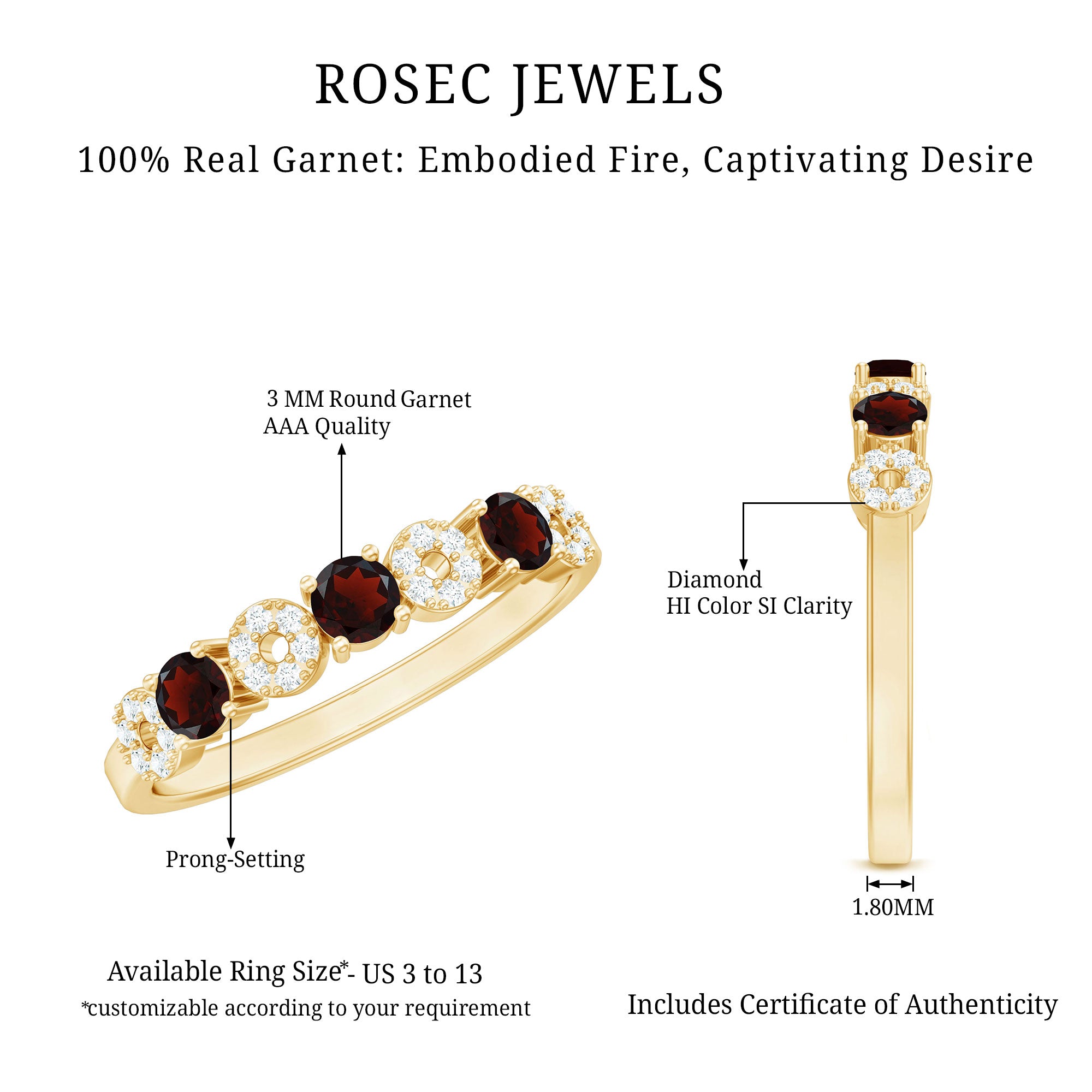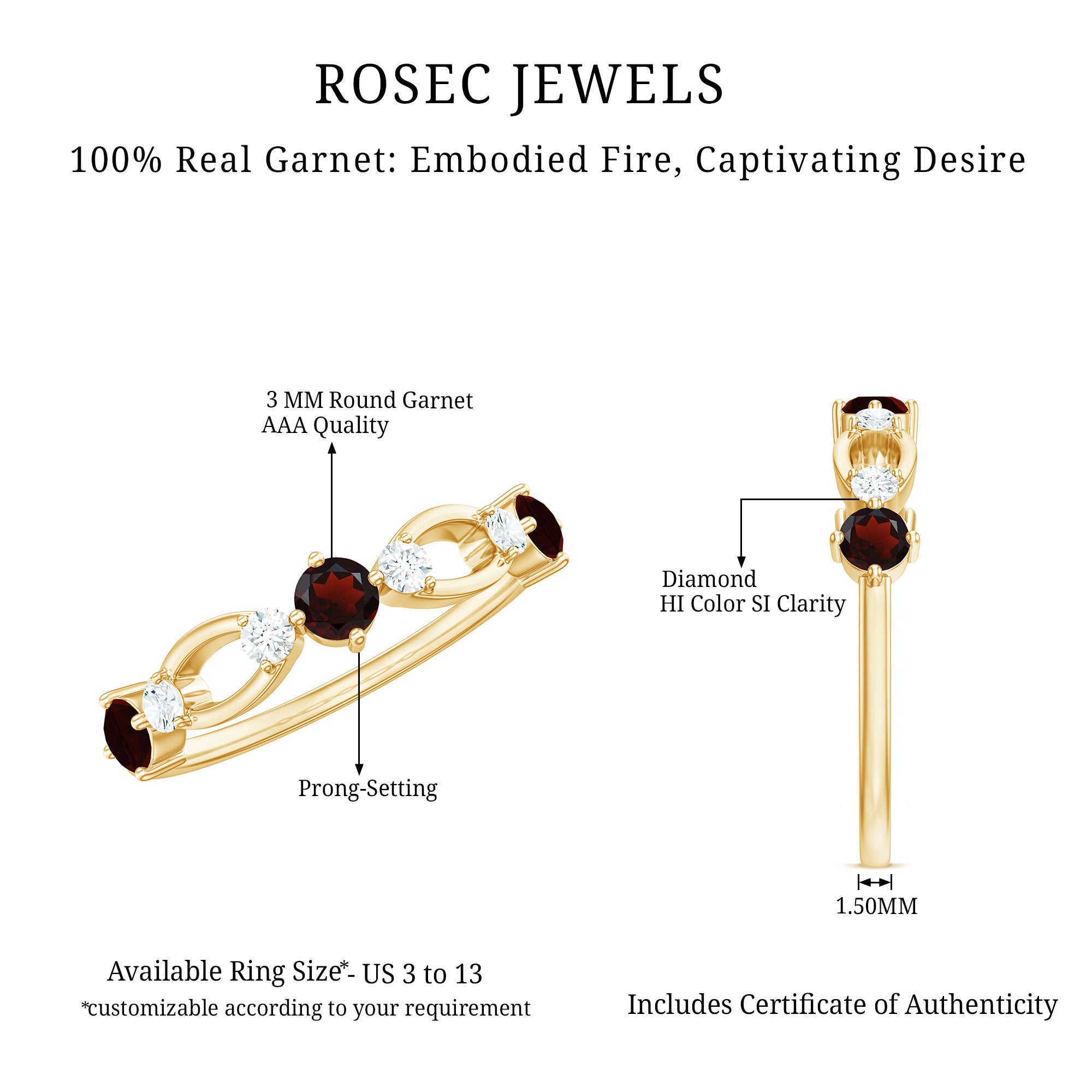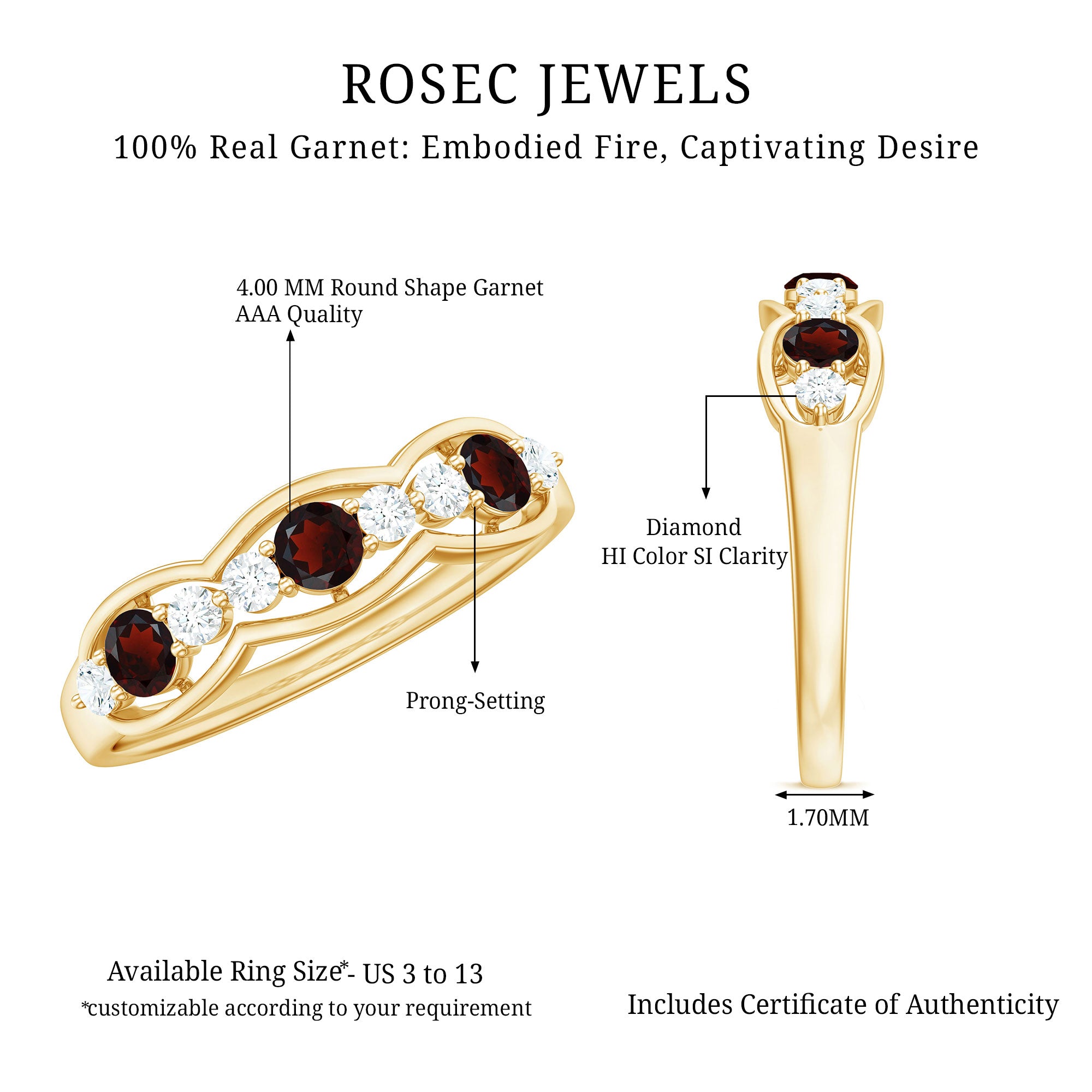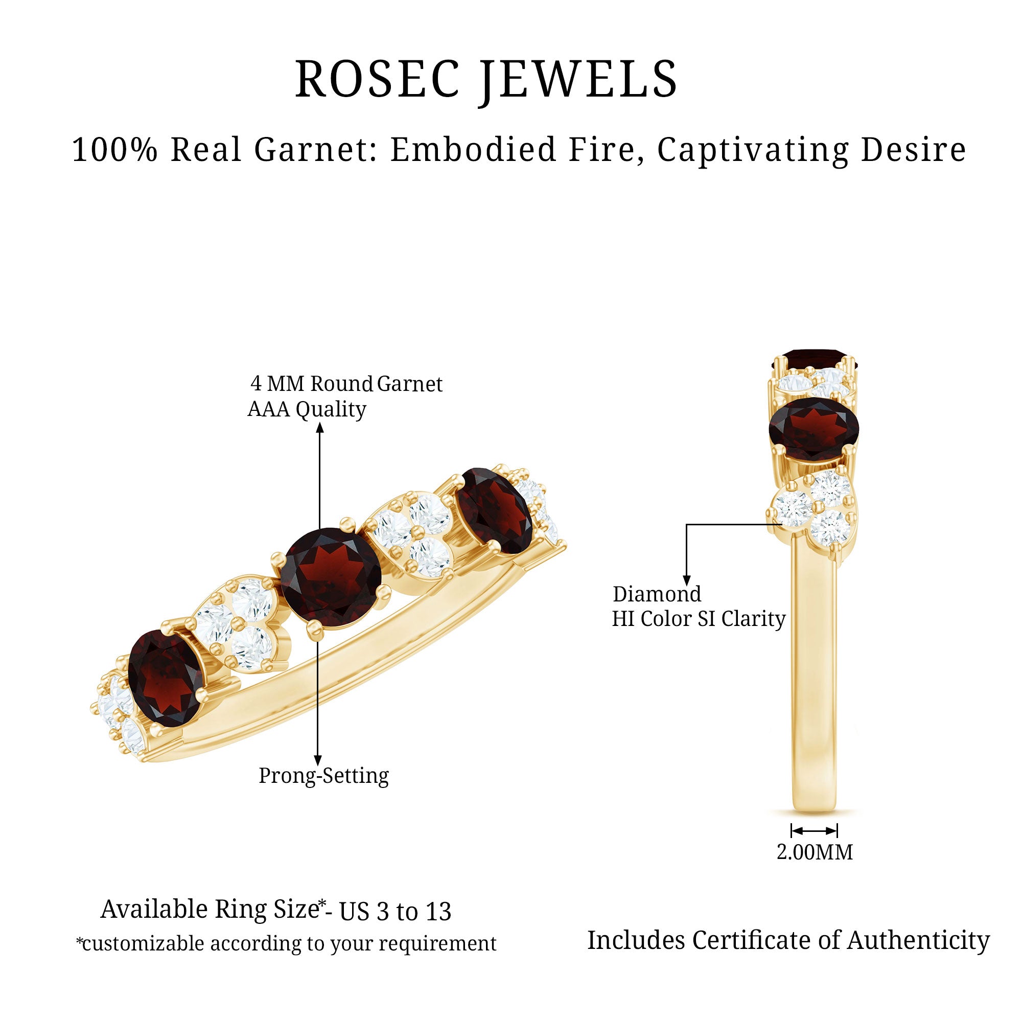 Garnet wedding rings from Rosec Jewels will leave your better half astound when the wedding ring slides down her finger, a moment that is going to sit in her memory forever. Featuring natural garnets, the member of silicate family of minerals and have loved for their wide spectrum of colors of almost all the shades. This great diversity in helps jewelers to employ red garnets while handcrafting garnet rings for women. Our artisans are as well after curating January birthstone rings for wedding that boast of fine and delicate designs.