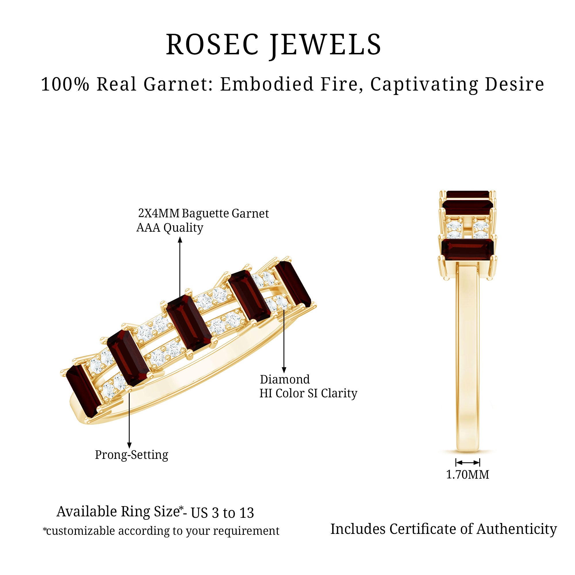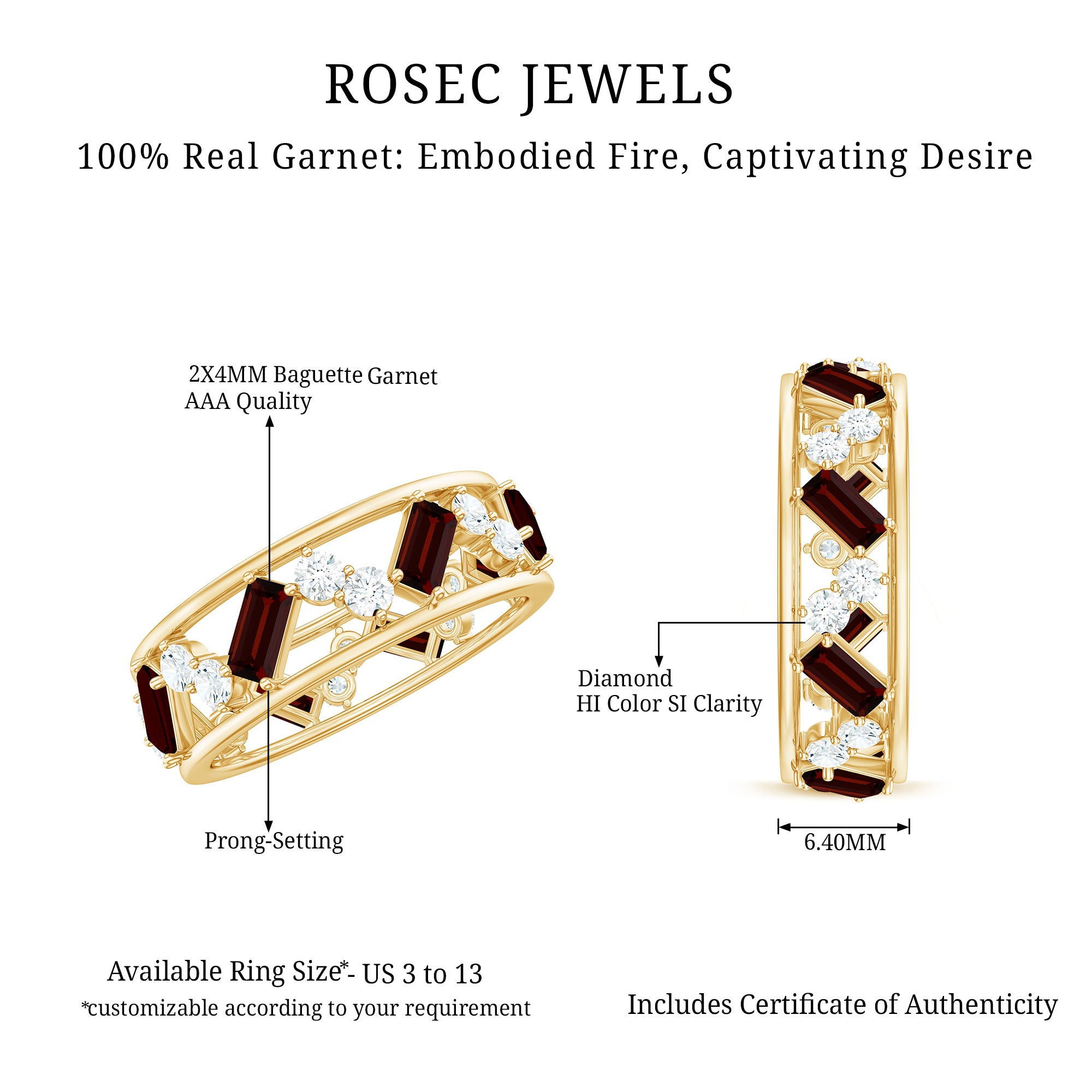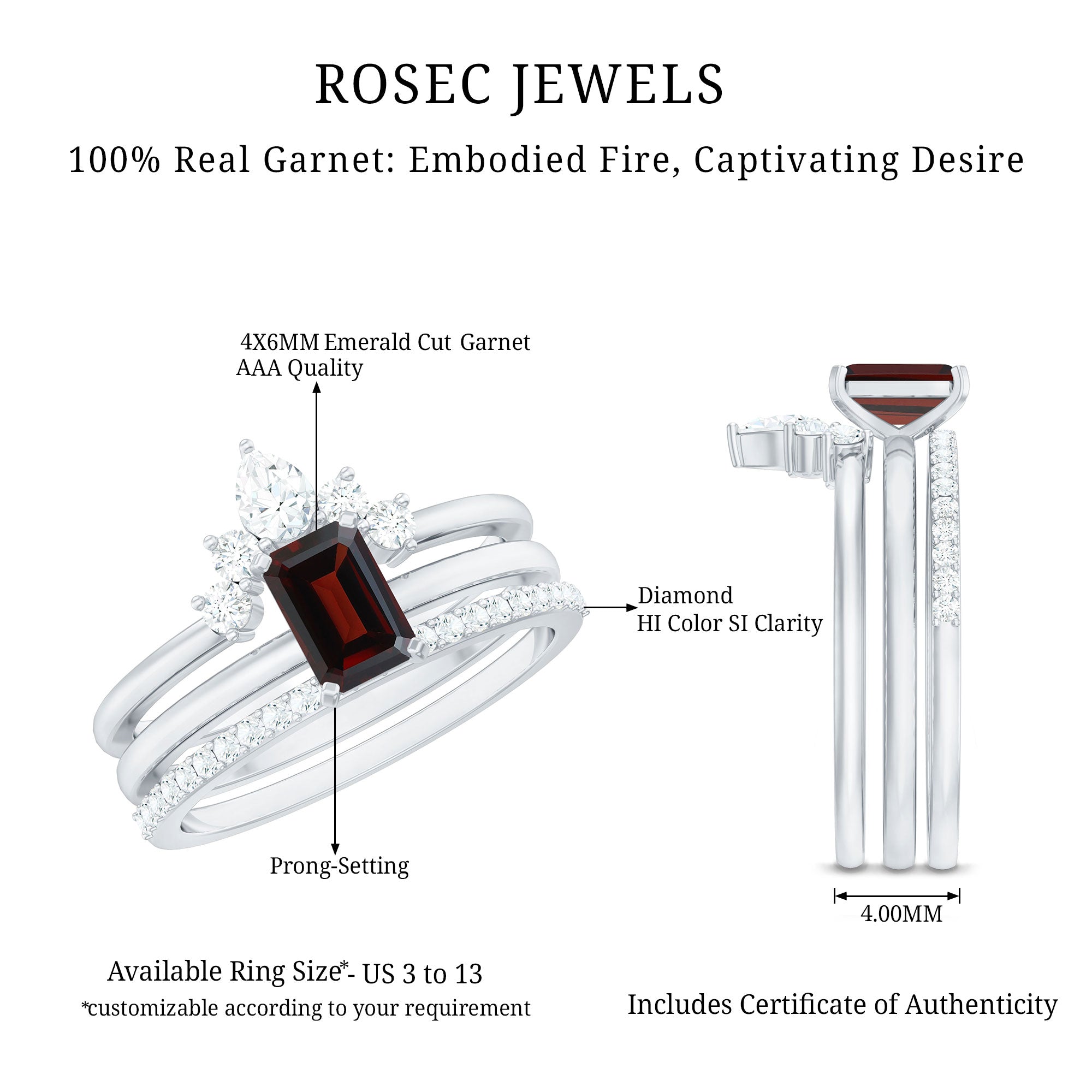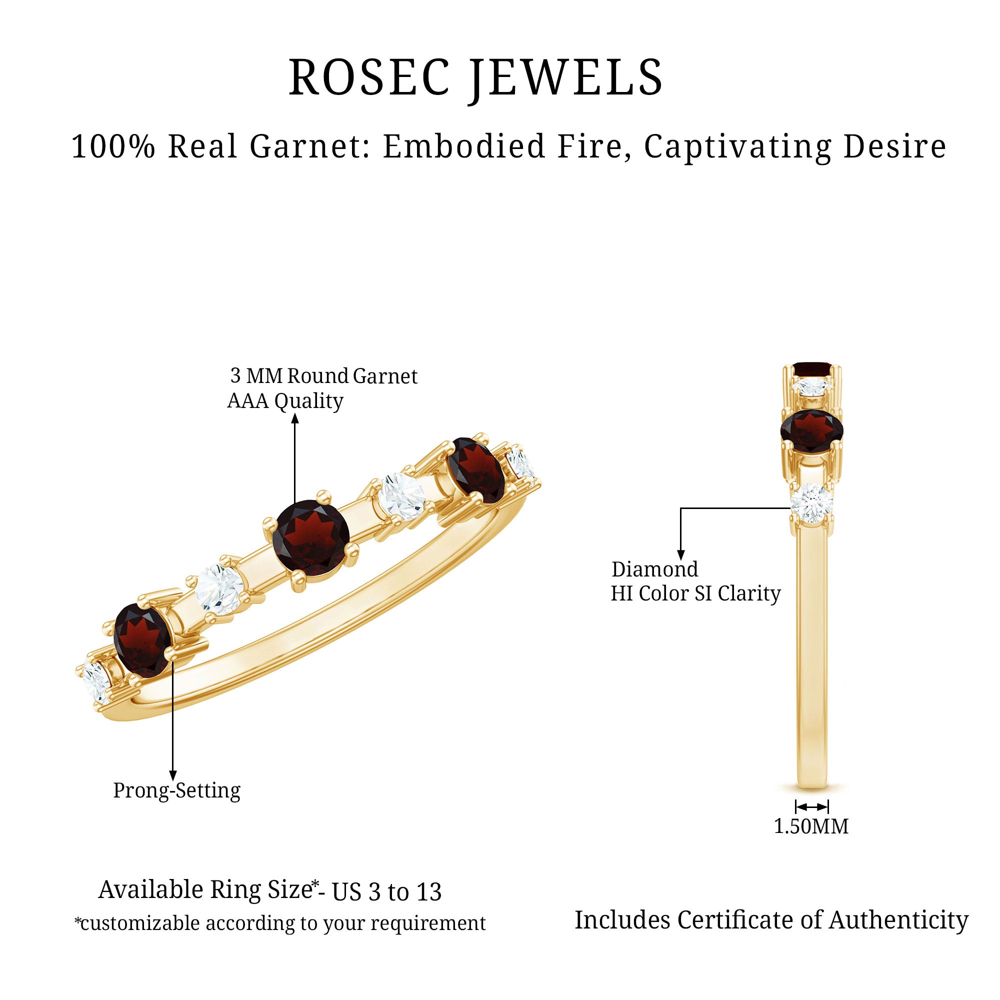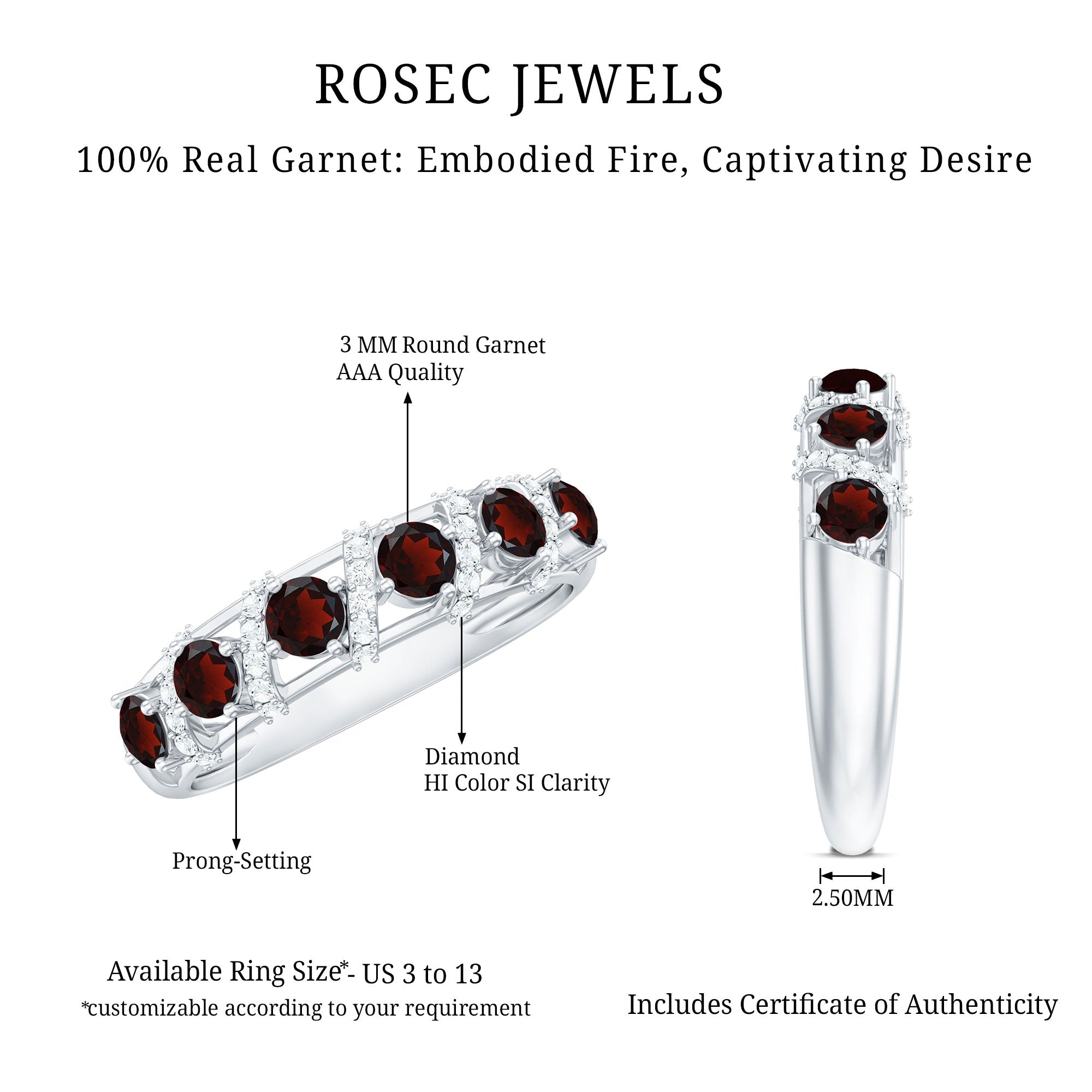 Garnet wedding rings from Rosec Jewels will leave your better half astound when the wedding ring slides down her finger, a moment that is going to sit in her memory forever. Featuring natural garnets, the member of silicate family of minerals and have loved for their wide spectrum of colors of almost all the shades. This great diversity in helps jewelers to employ red garnets while handcrafting garnet rings for women. Our artisans are as well after curating January birthstone rings for wedding that boast of fine and delicate designs.
