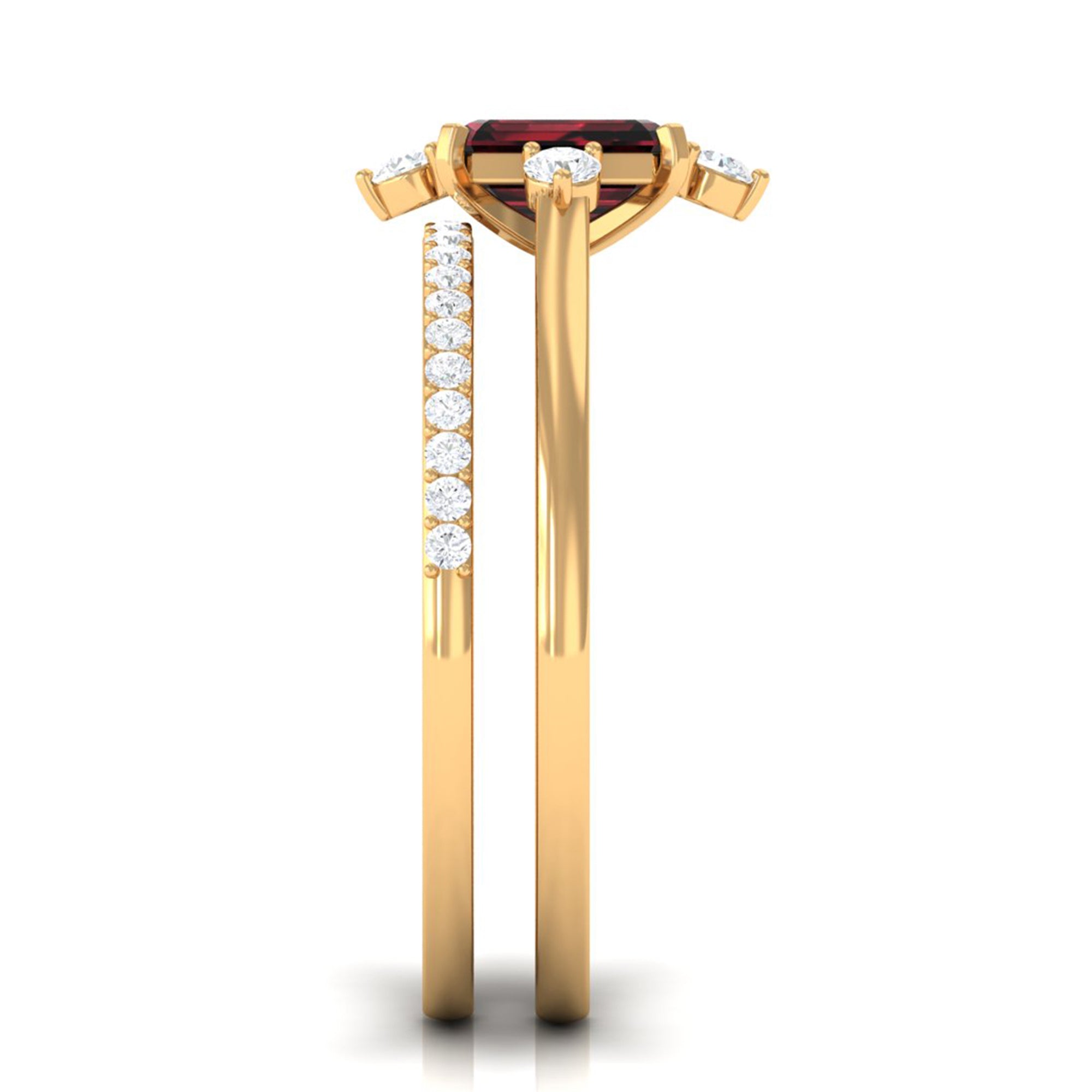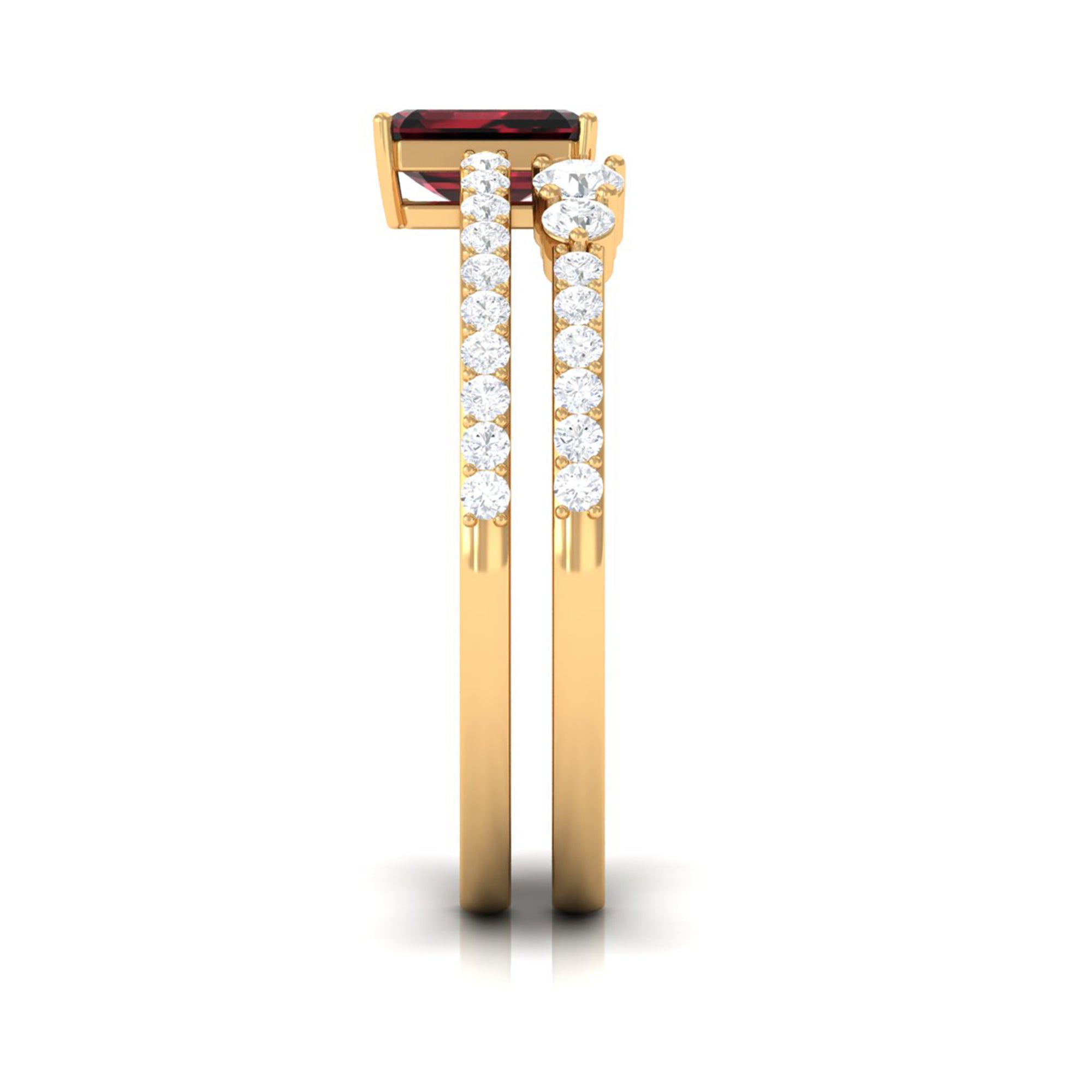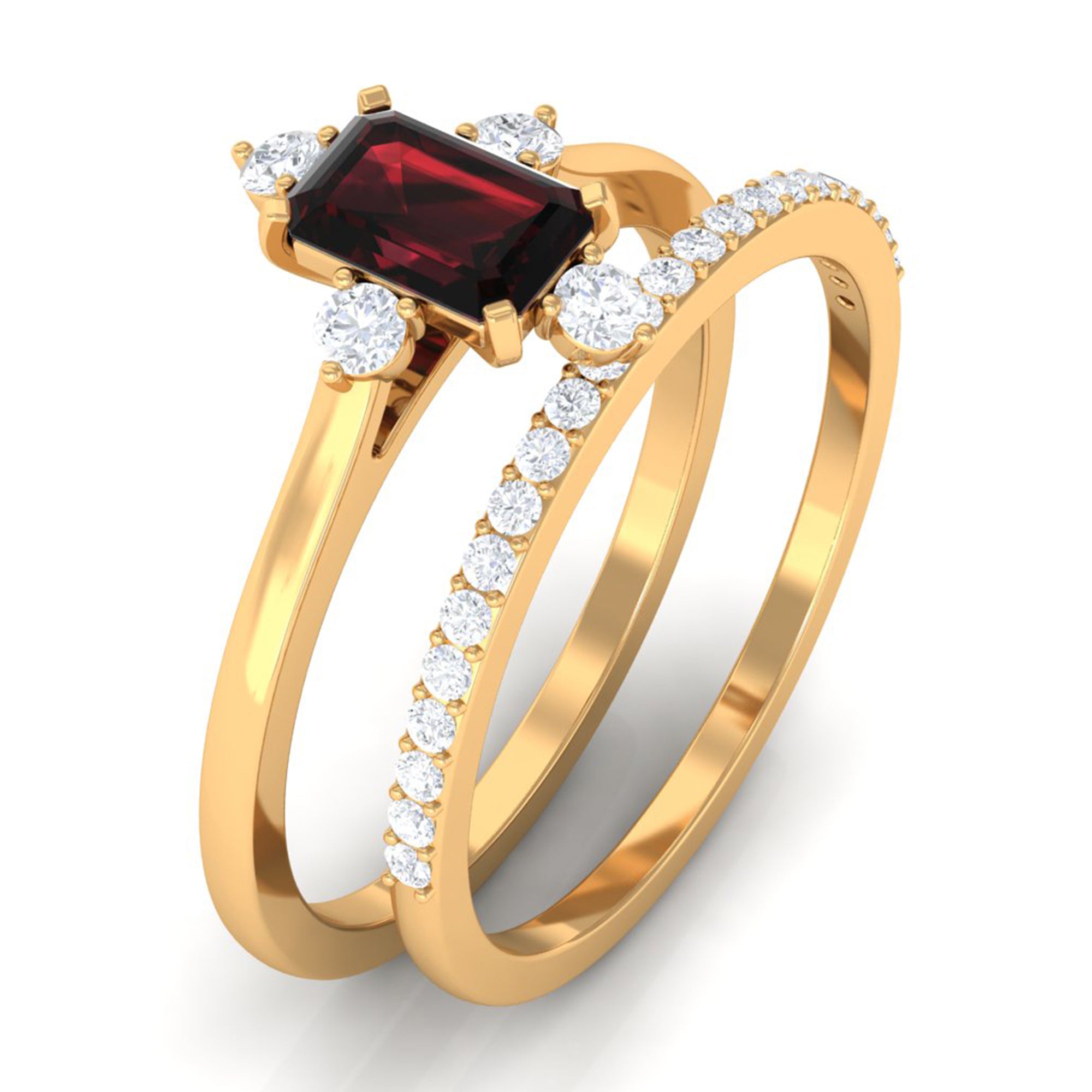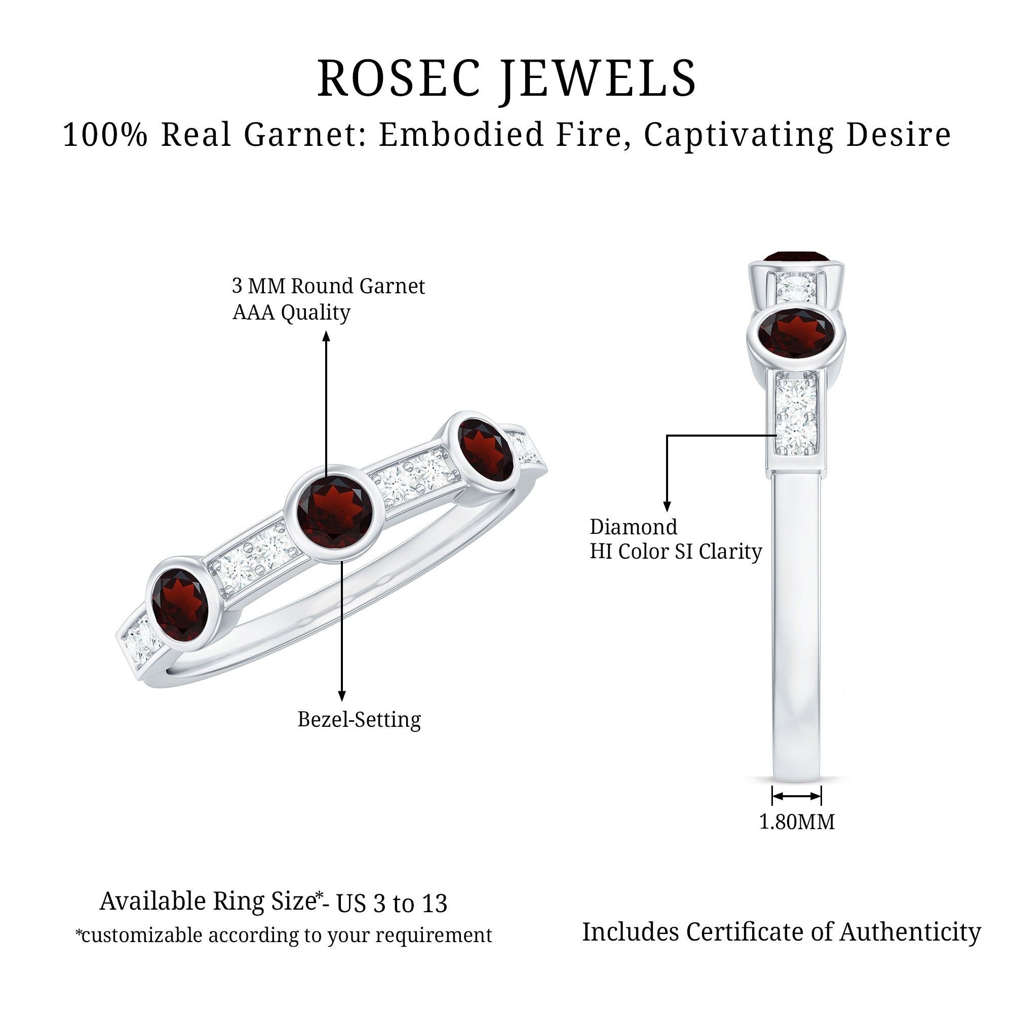 Garnet wedding rings from Rosec Jewels will leave your better half astound when the wedding ring slides down her finger, a moment that is going to sit in her memory forever. Featuring natural garnets, the member of silicate family of minerals and have loved for their wide spectrum of colors of almost all the shades. This great diversity in helps jewelers to employ red garnets while handcrafting garnet rings for women. Our artisans are as well after curating January birthstone rings for wedding that boast of fine and delicate designs.