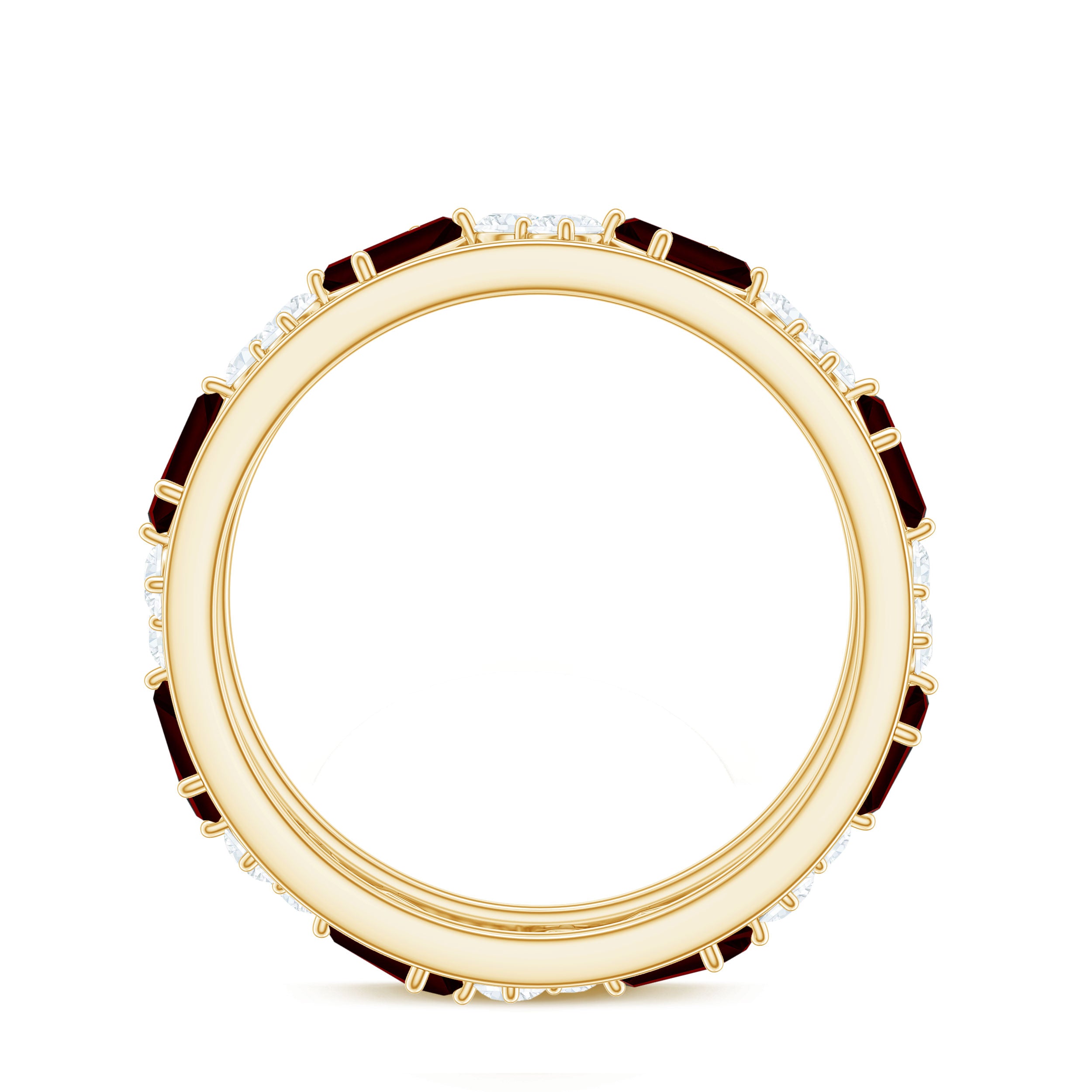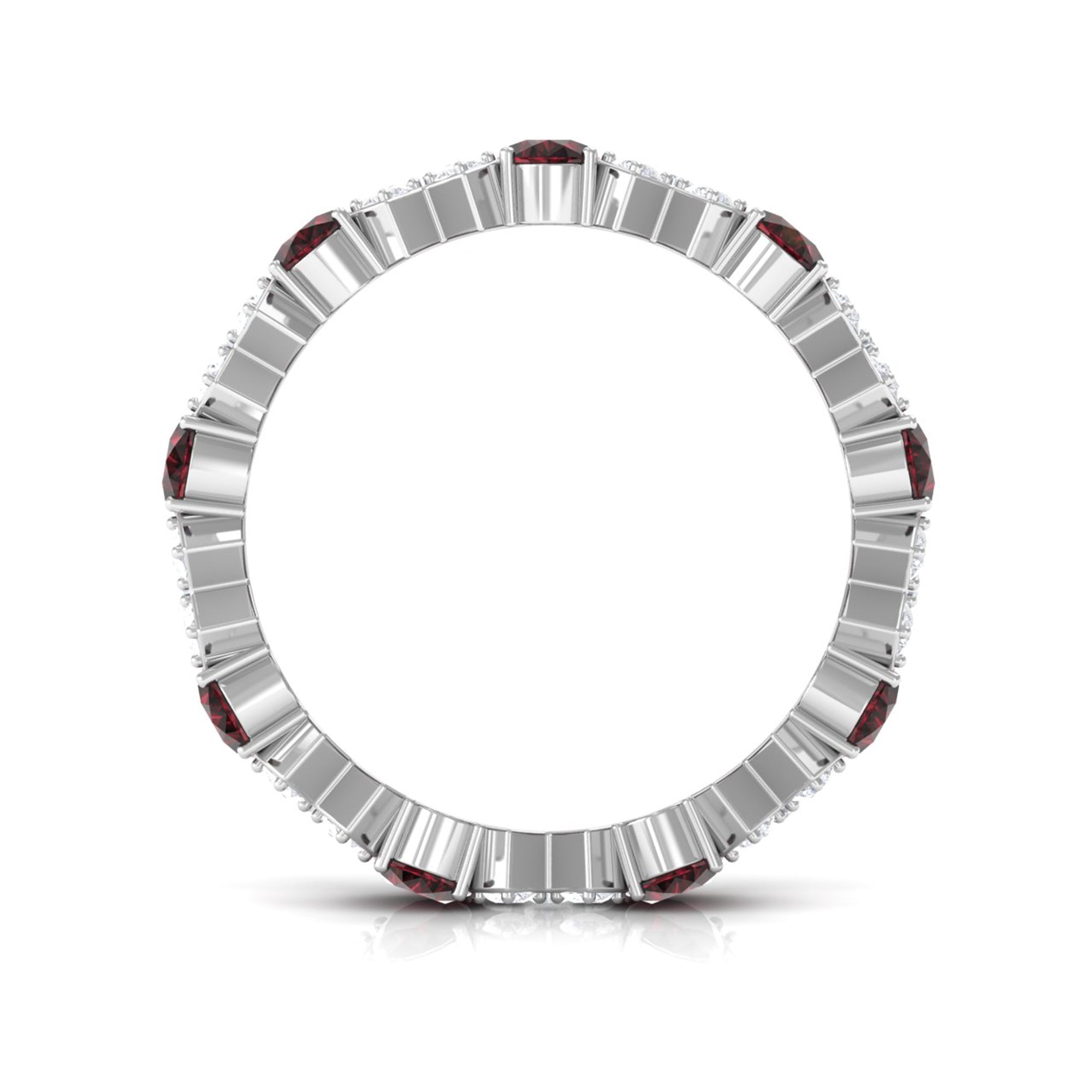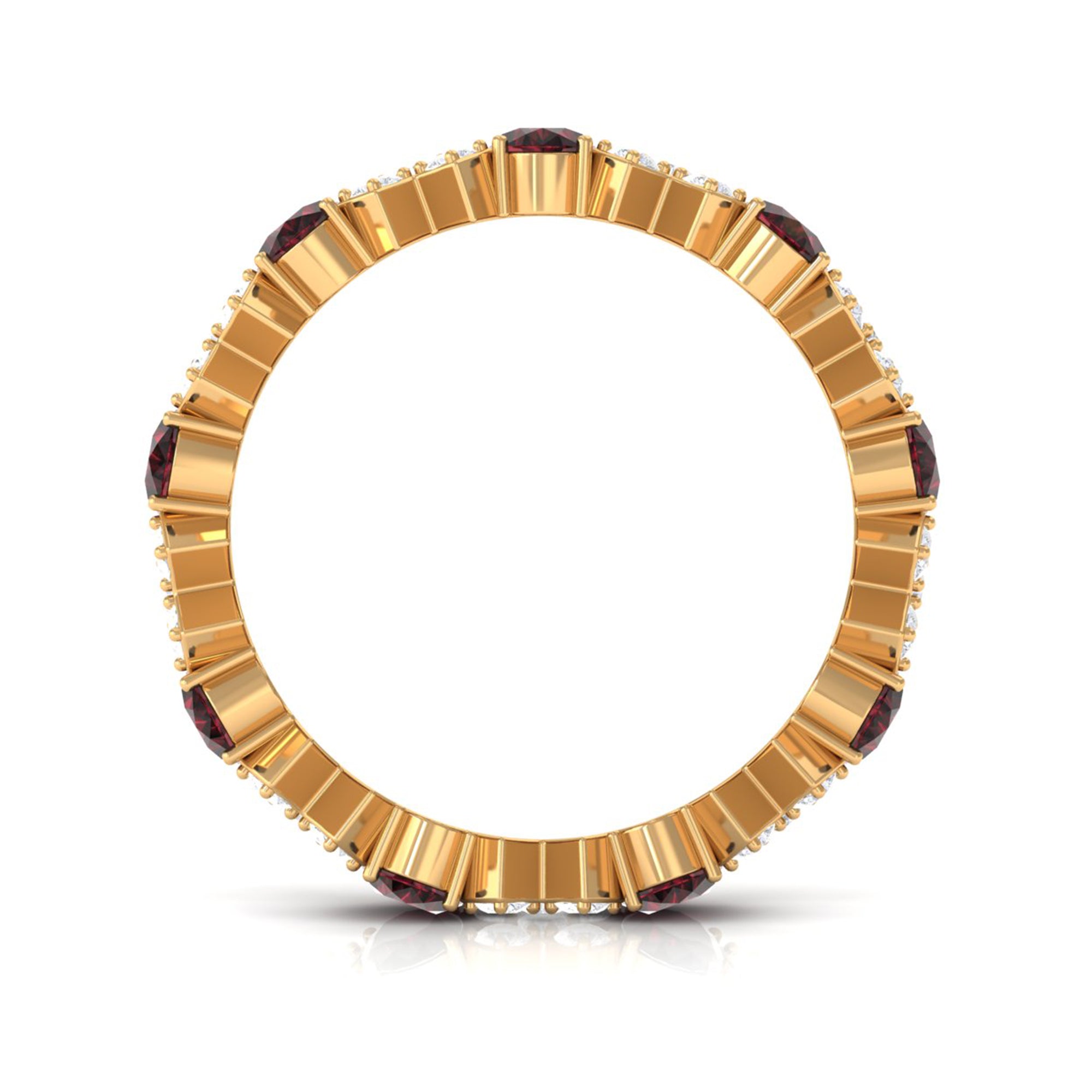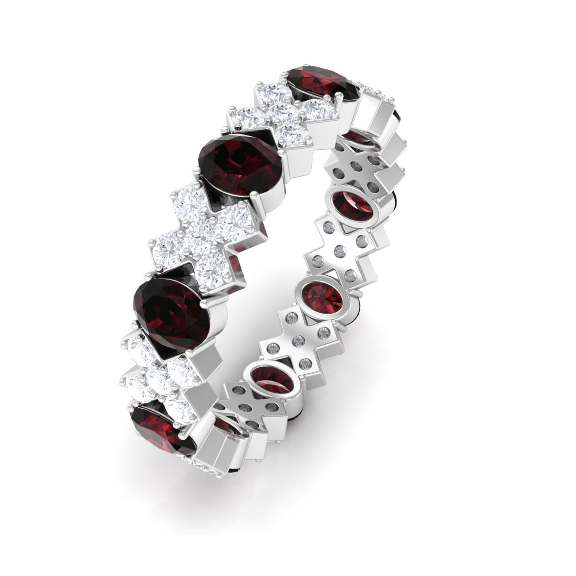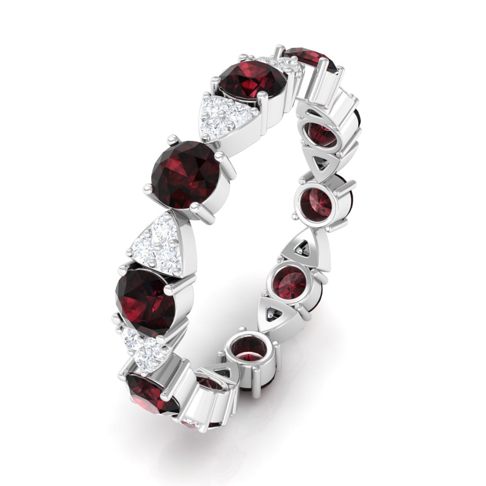 When worn as a wedding band, garnets can be a symbolism of love and life force, while a eternity wedding band in itself will symbolize a promise of love for eternity.