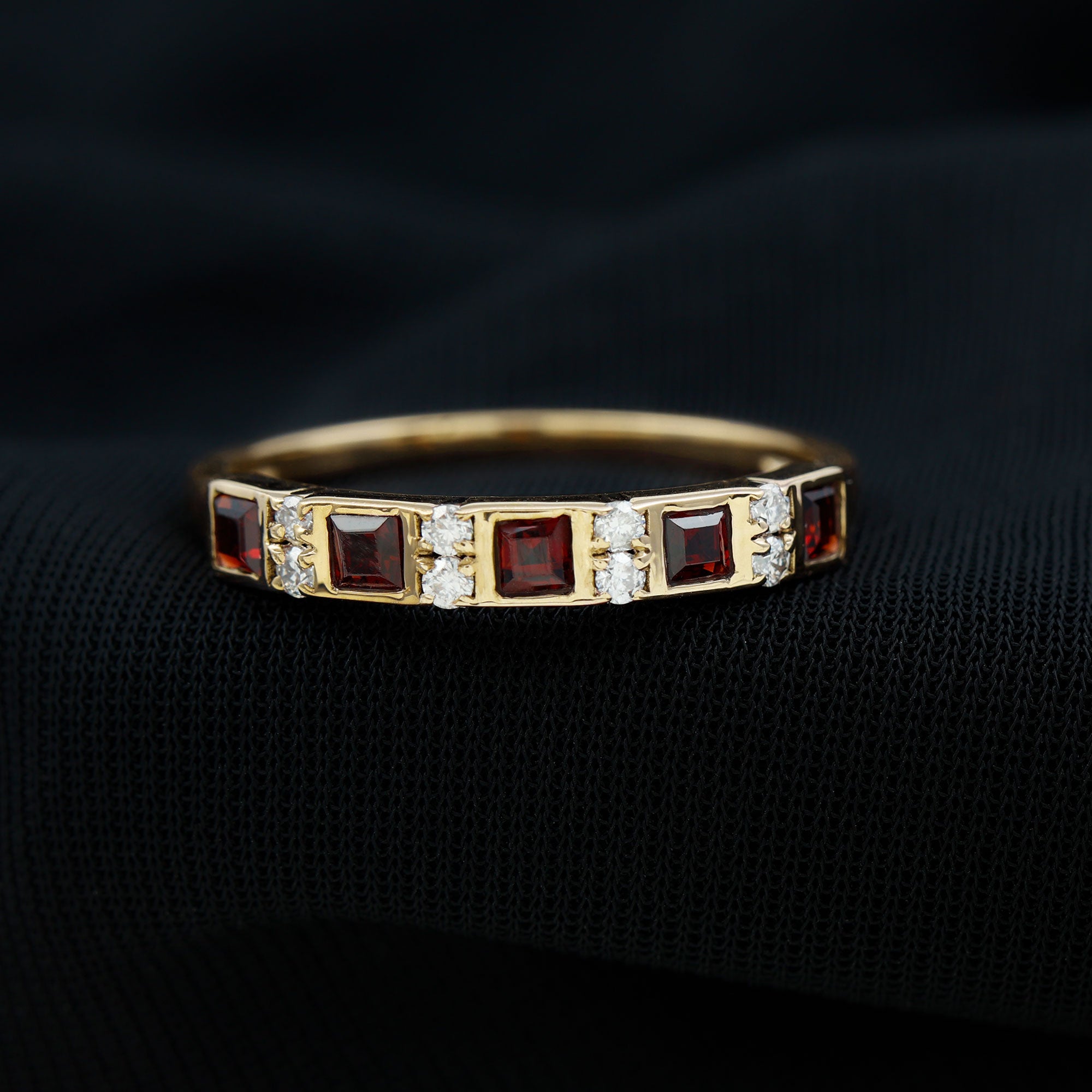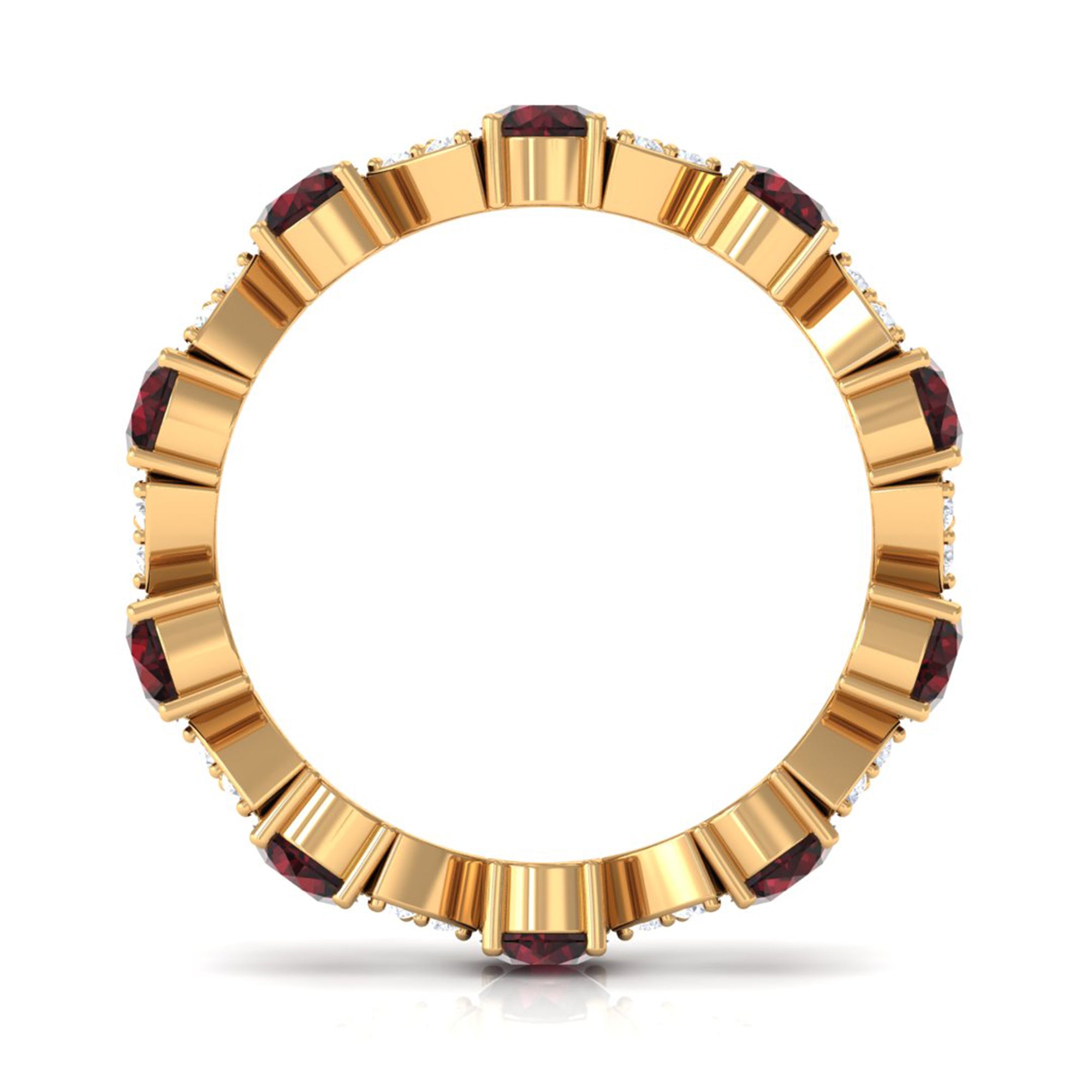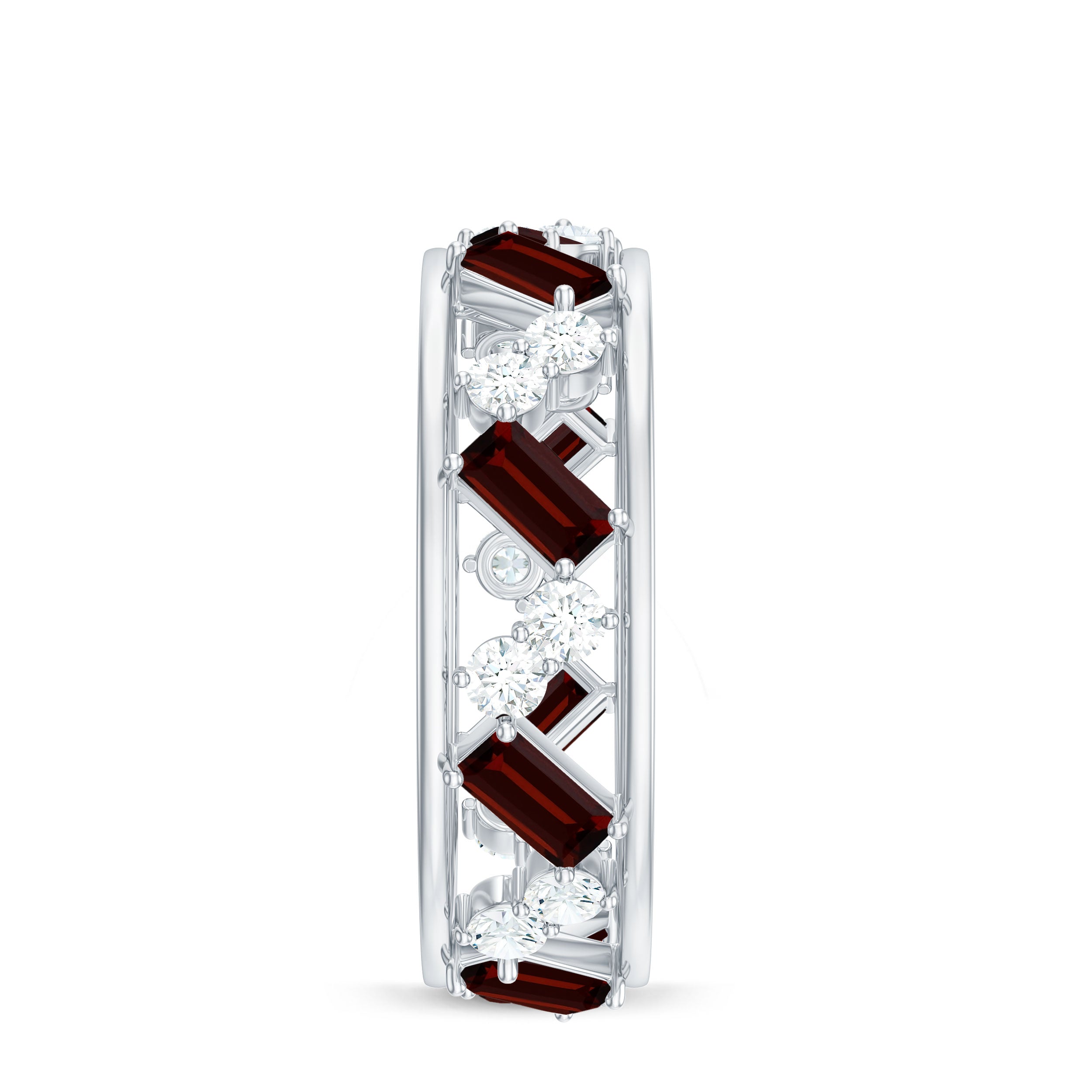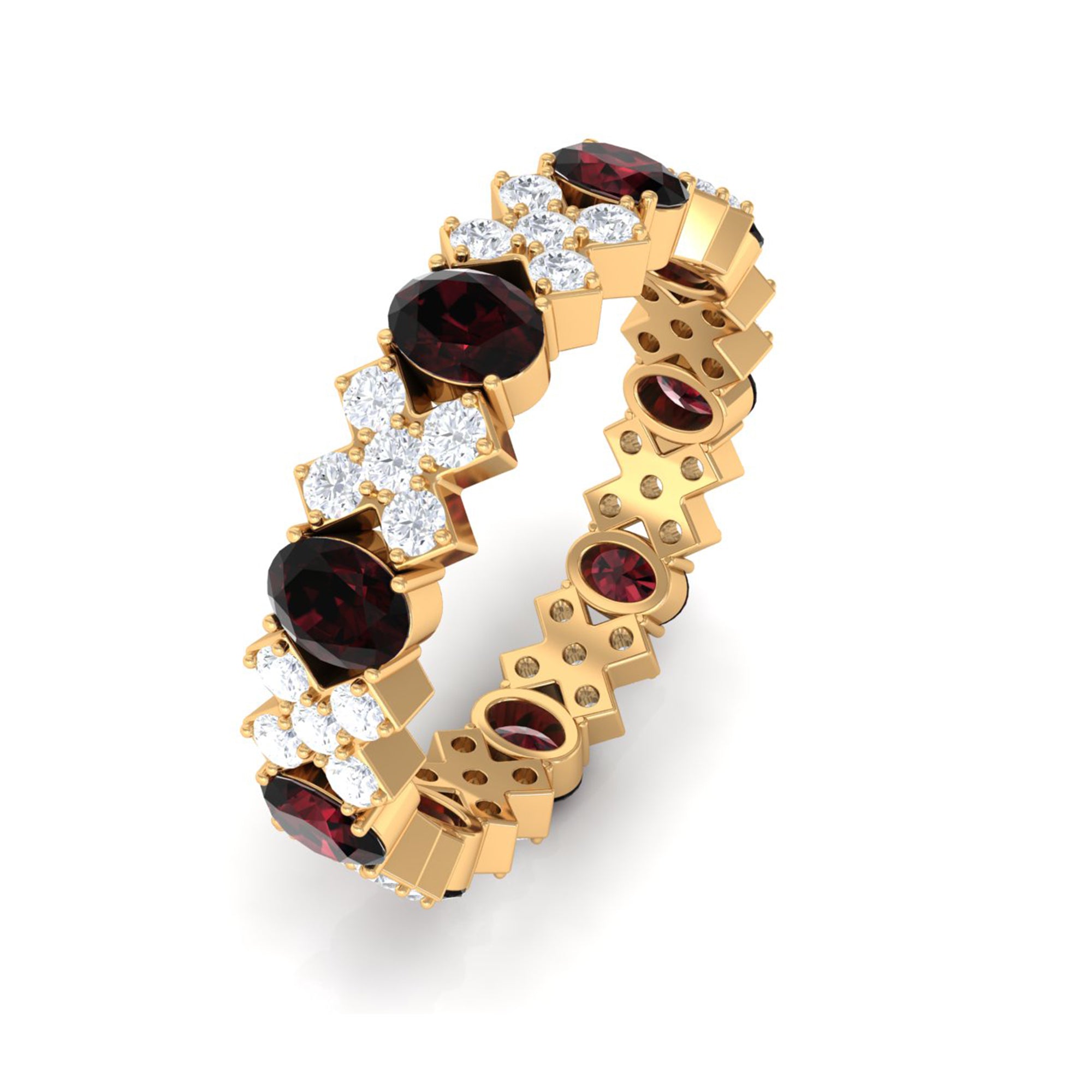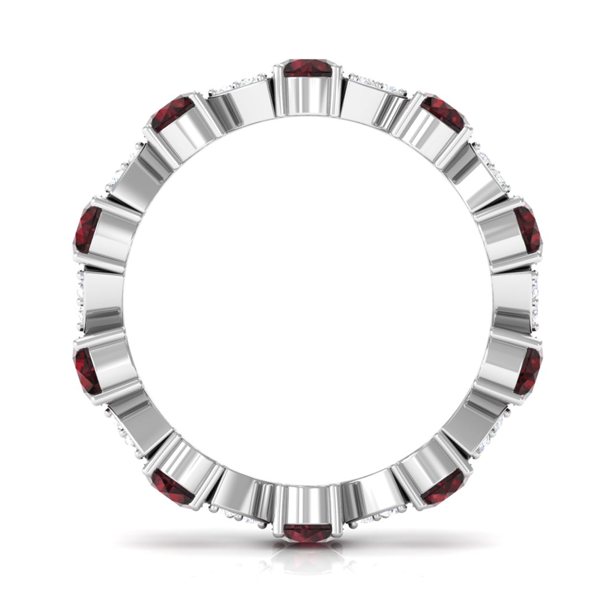 When worn as a wedding band, garnets can be a symbolism of love and life force, while a eternity wedding band in itself will symbolize a promise of love for eternity.