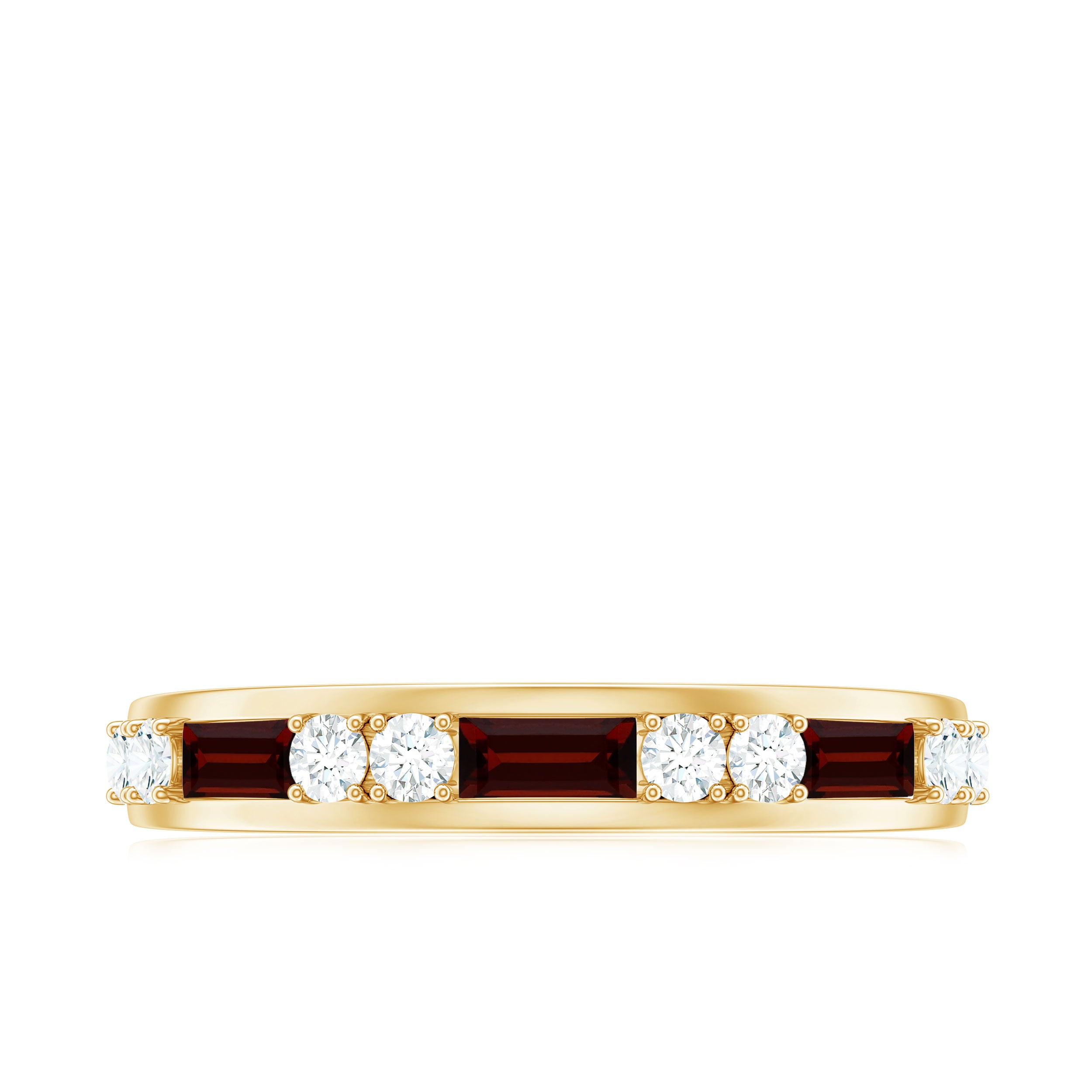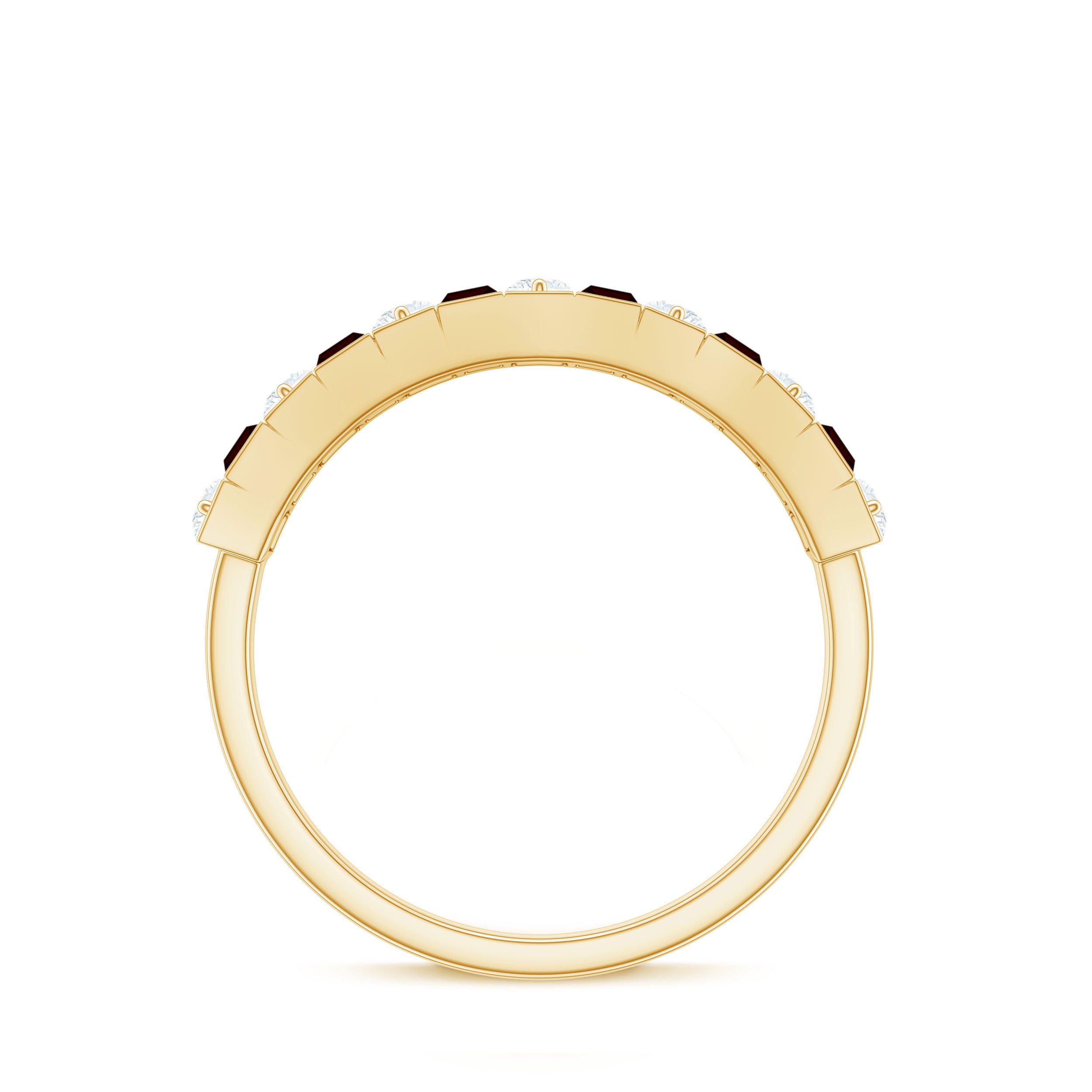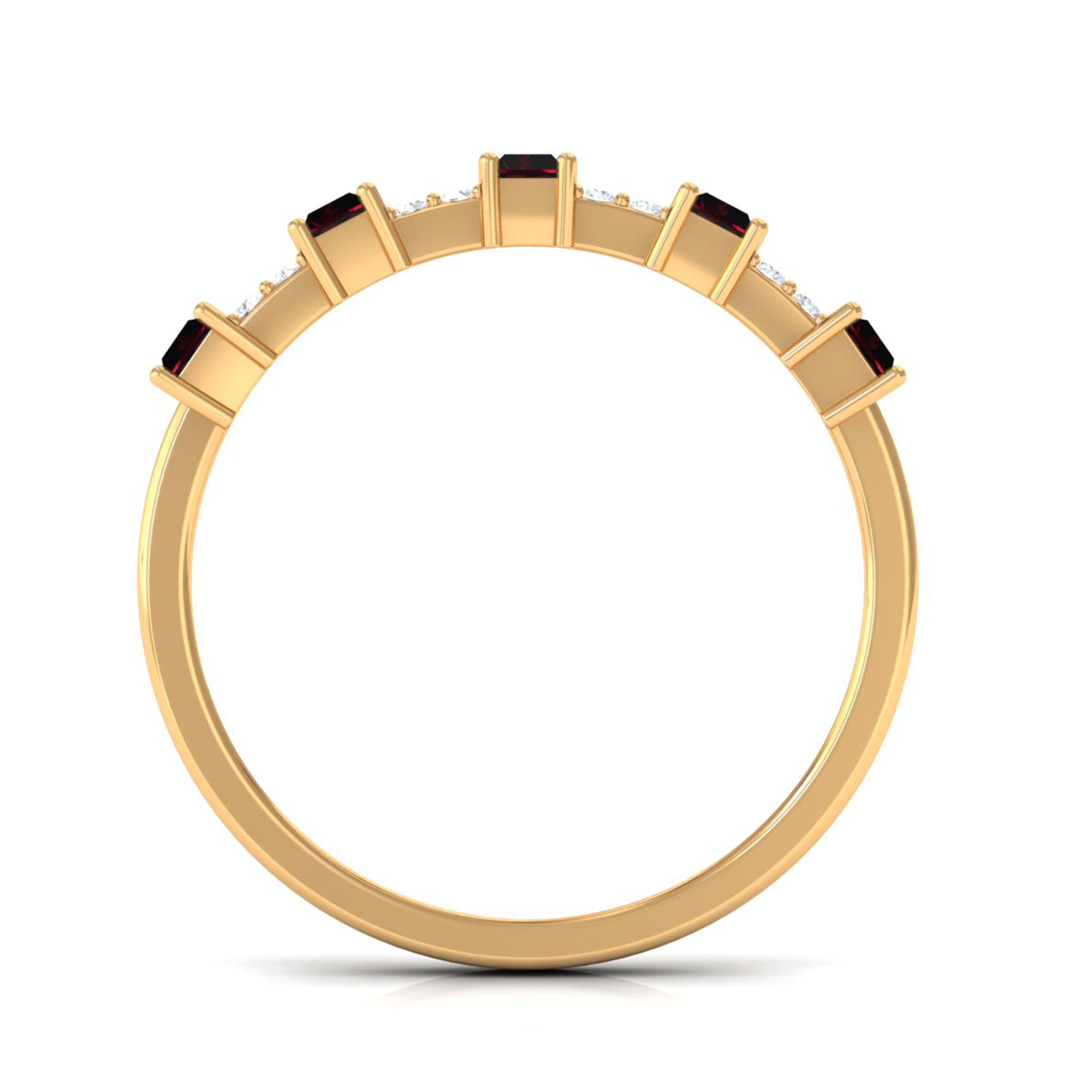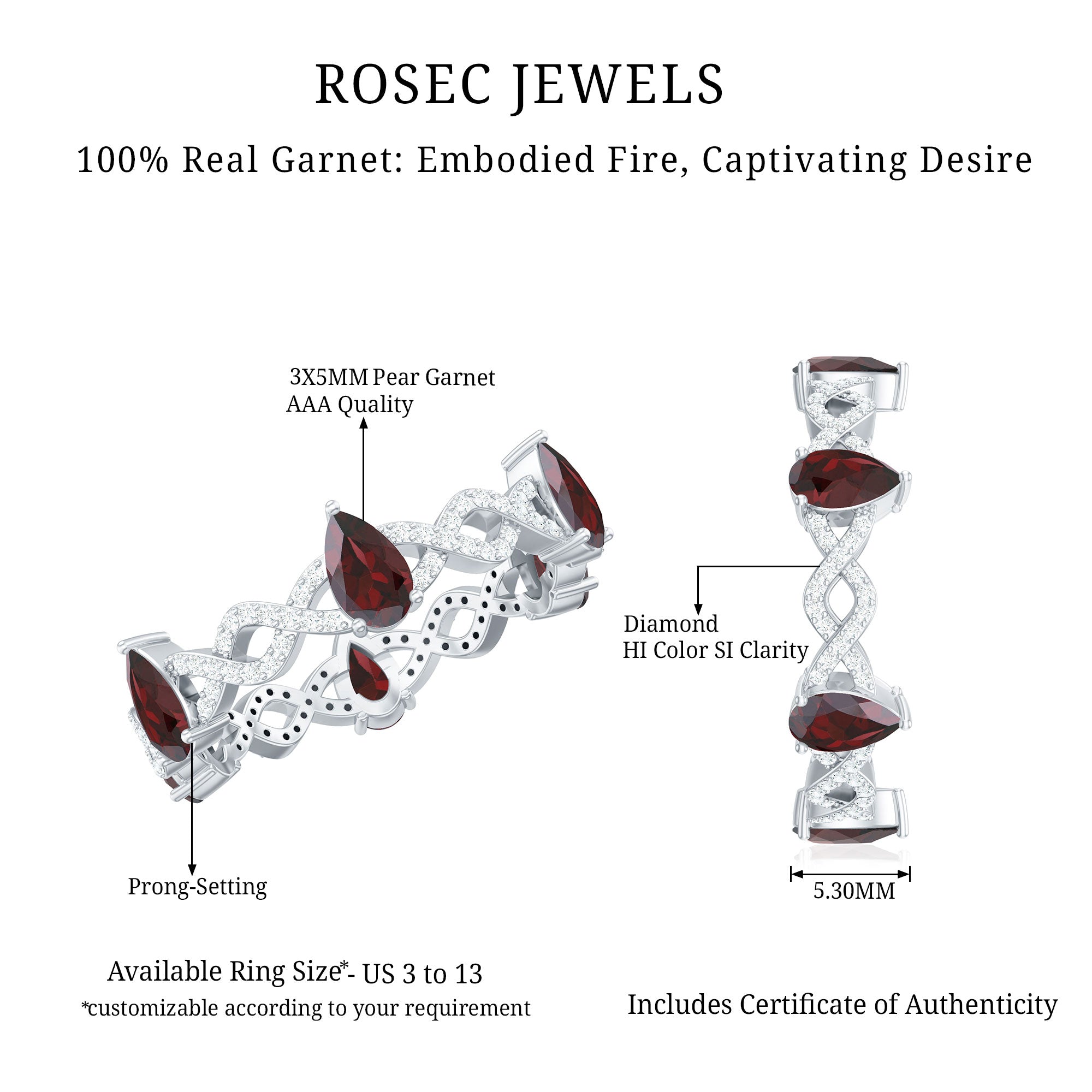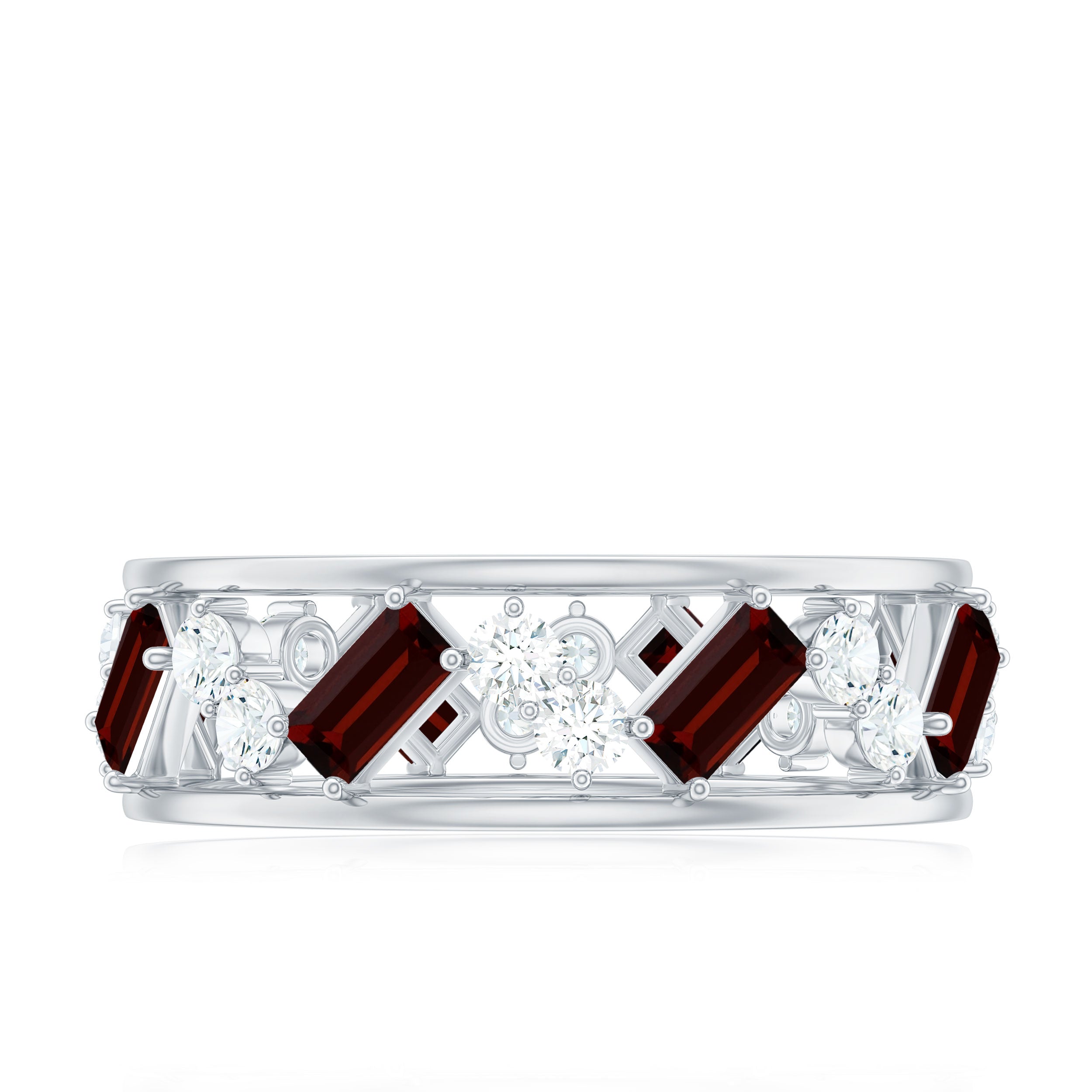 When worn as a wedding band, garnets can be a symbolism of love and life force, while a eternity wedding band in itself will symbolize a promise of love for eternity.