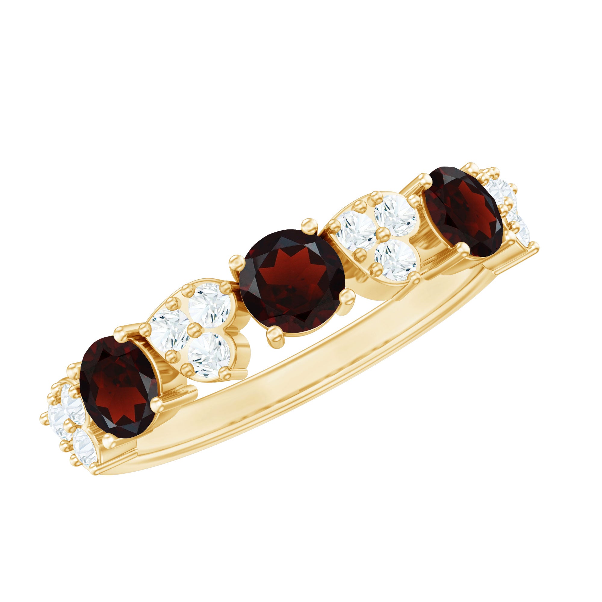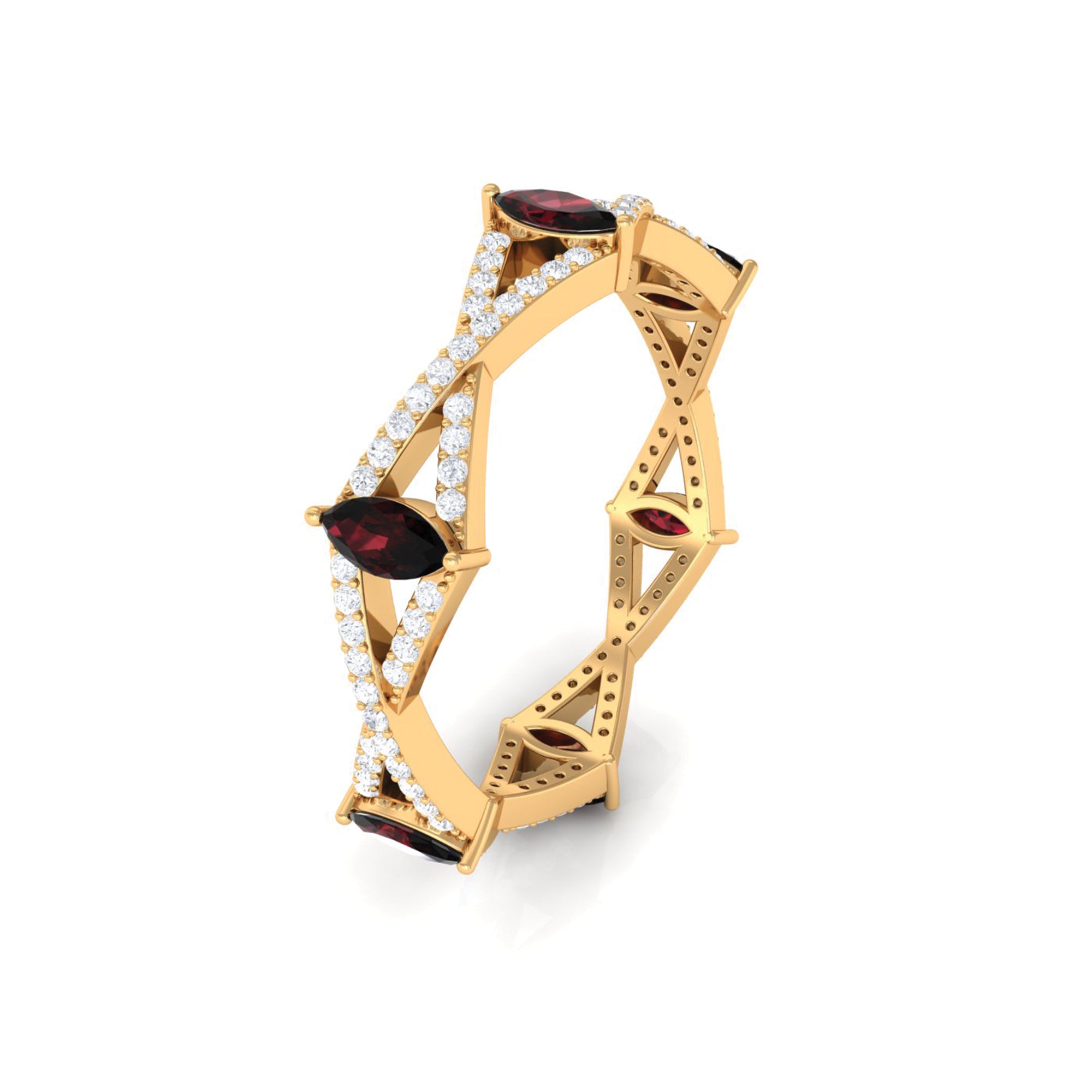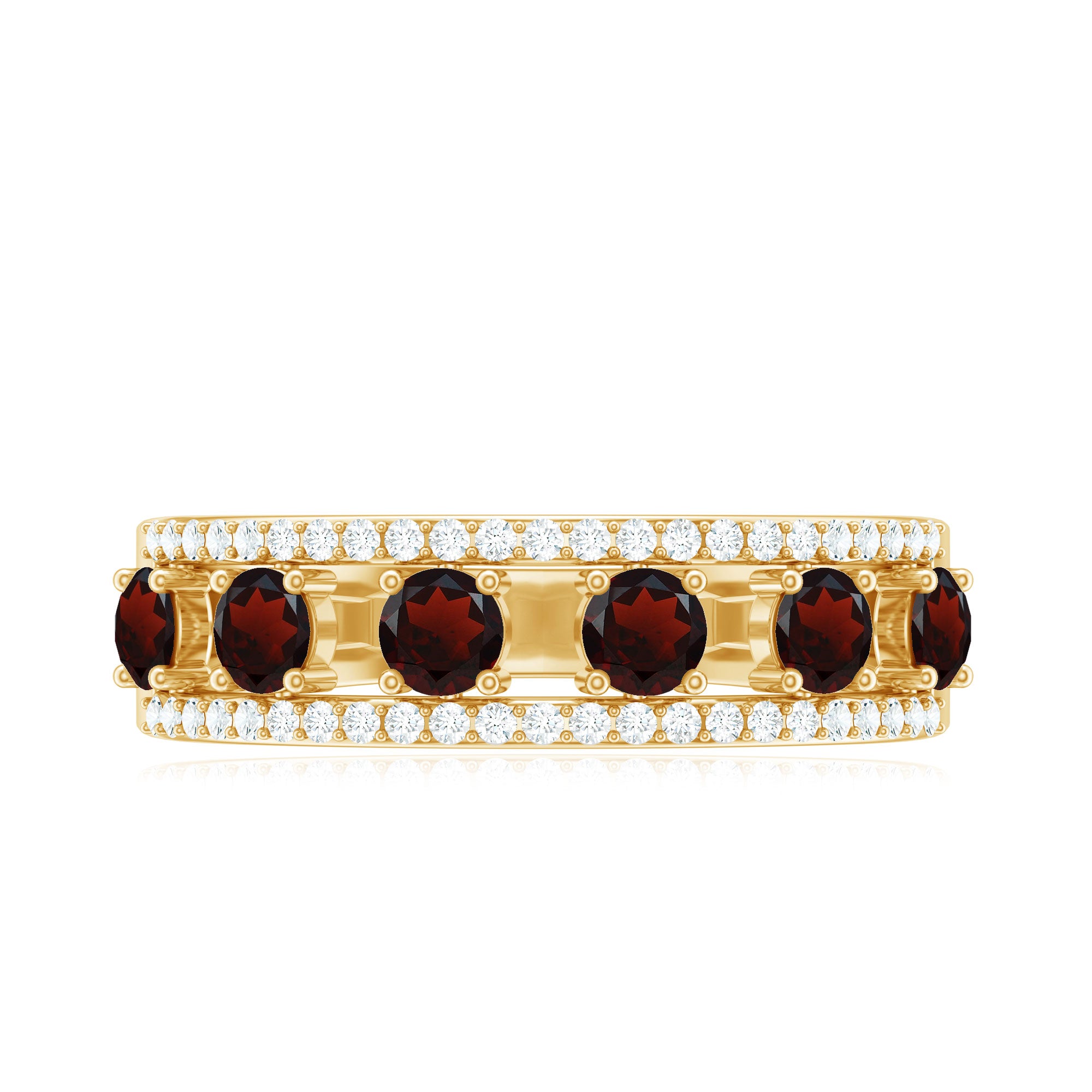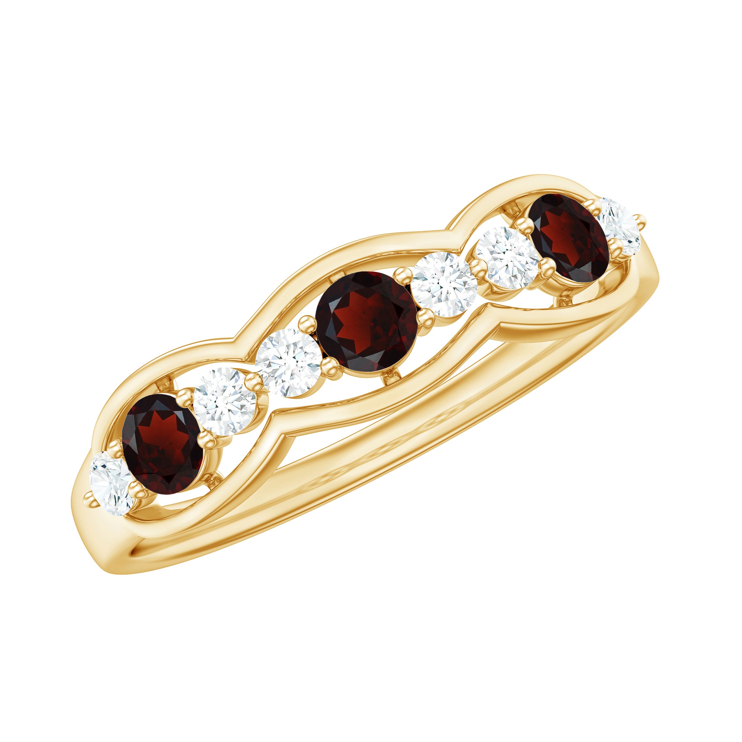 Fantastic garnet wedding band styles are curated by combining different garnet shapes ranging from round, oval, pear, marquise, cushion and many more. The garnet rings can also be selected on the basis of ring styles, most popular being the garnet eternity band for women with a knack for latest stylish trends in fashion. Metal embellishments in different adorable colors of gold namely, yellow gold, white gold and rose gold will leave the jewelry enthusiasts with plethora of engagement rings and wedding bands to choose from.