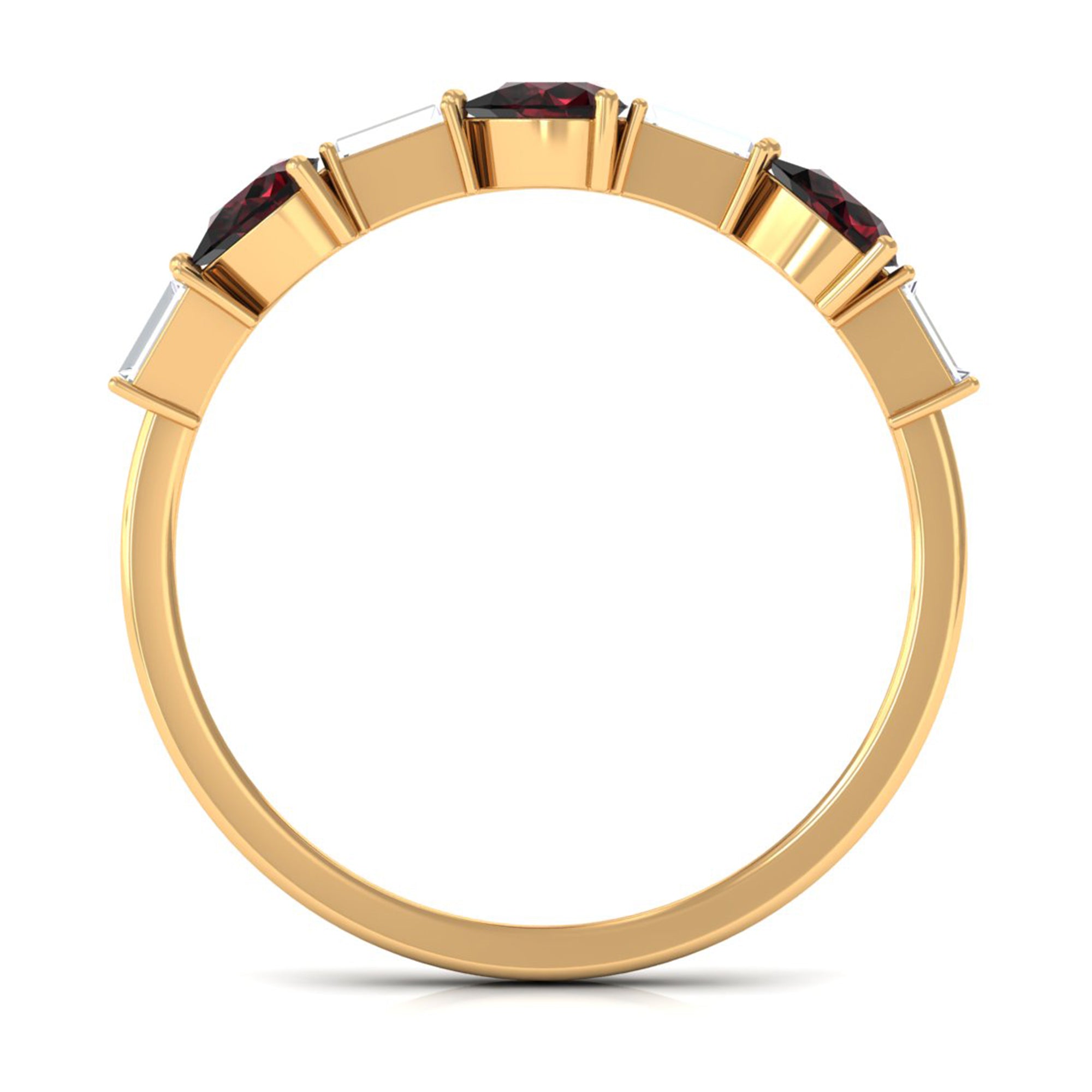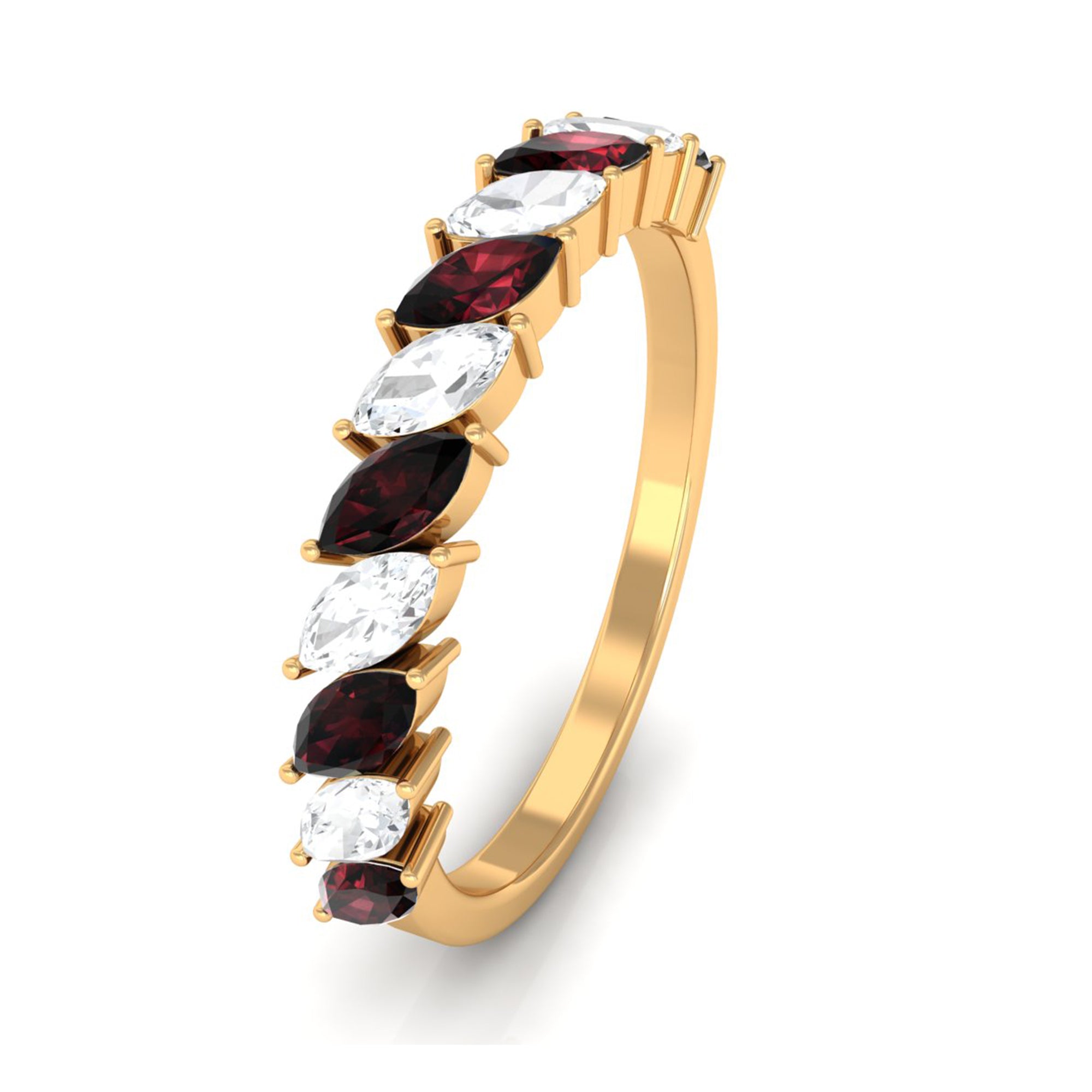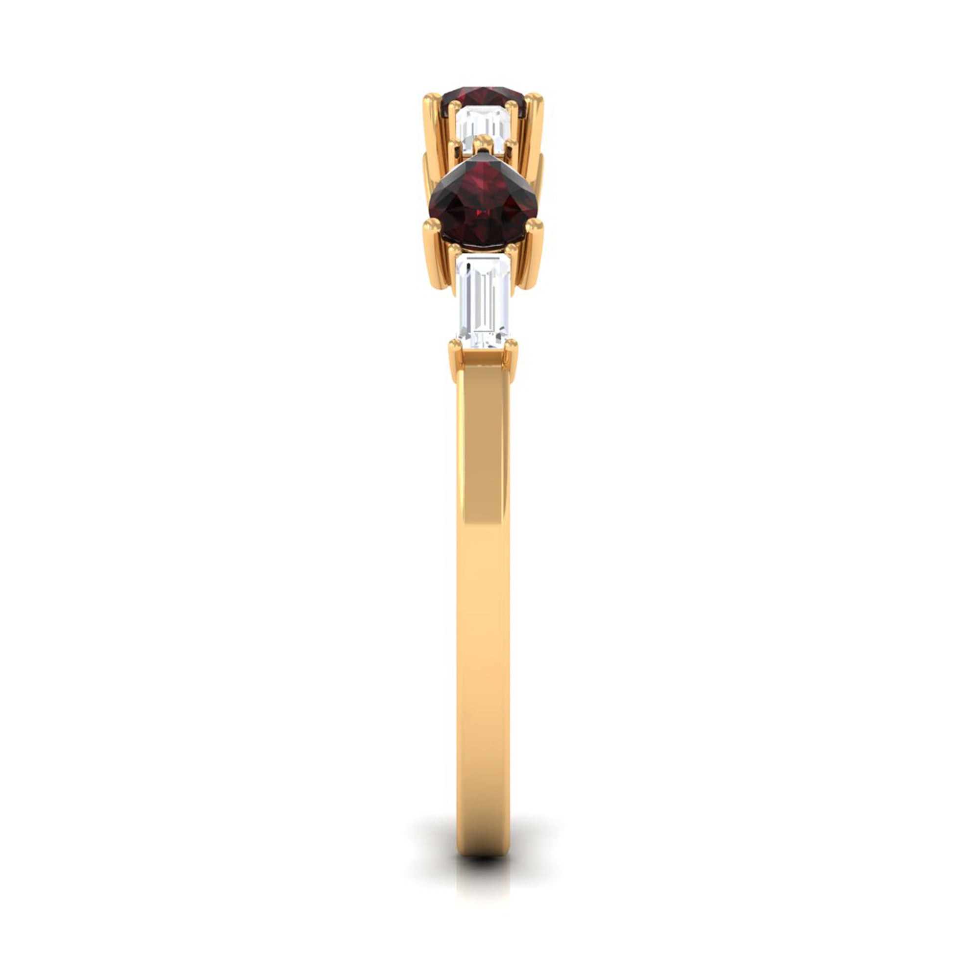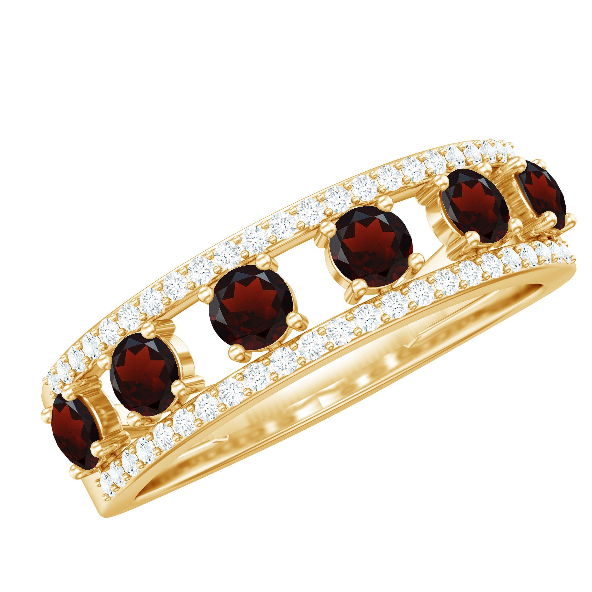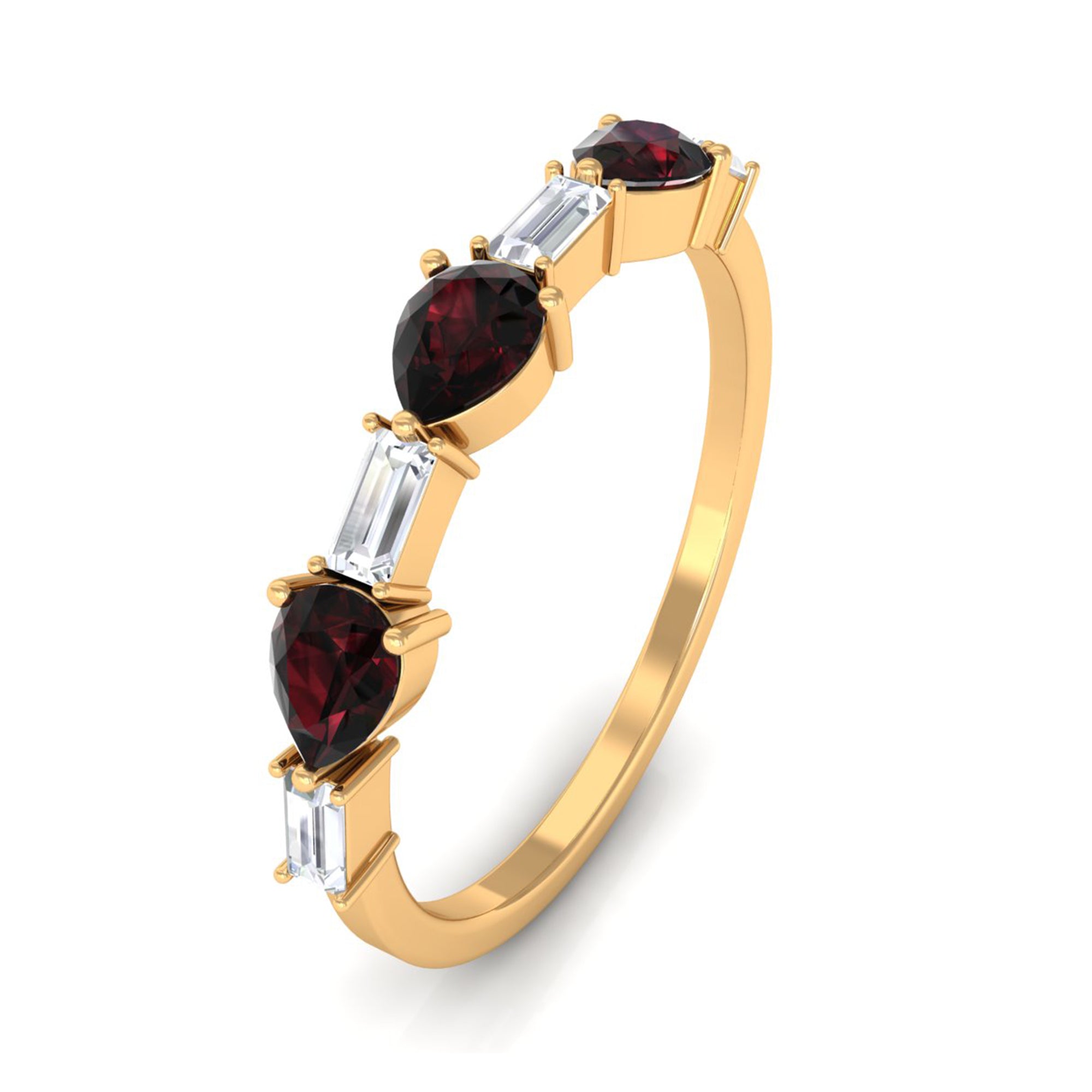 Fantastic garnet wedding band styles are curated by combining different garnet shapes ranging from round, oval, pear, marquise, cushion and many more. The garnet rings can also be selected on the basis of ring styles, most popular being the garnet eternity band for women with a knack for latest stylish trends in fashion. Metal embellishments in different adorable colors of gold namely, yellow gold, white gold and rose gold will leave the jewelry enthusiasts with plethora of engagement rings and wedding bands to choose from.