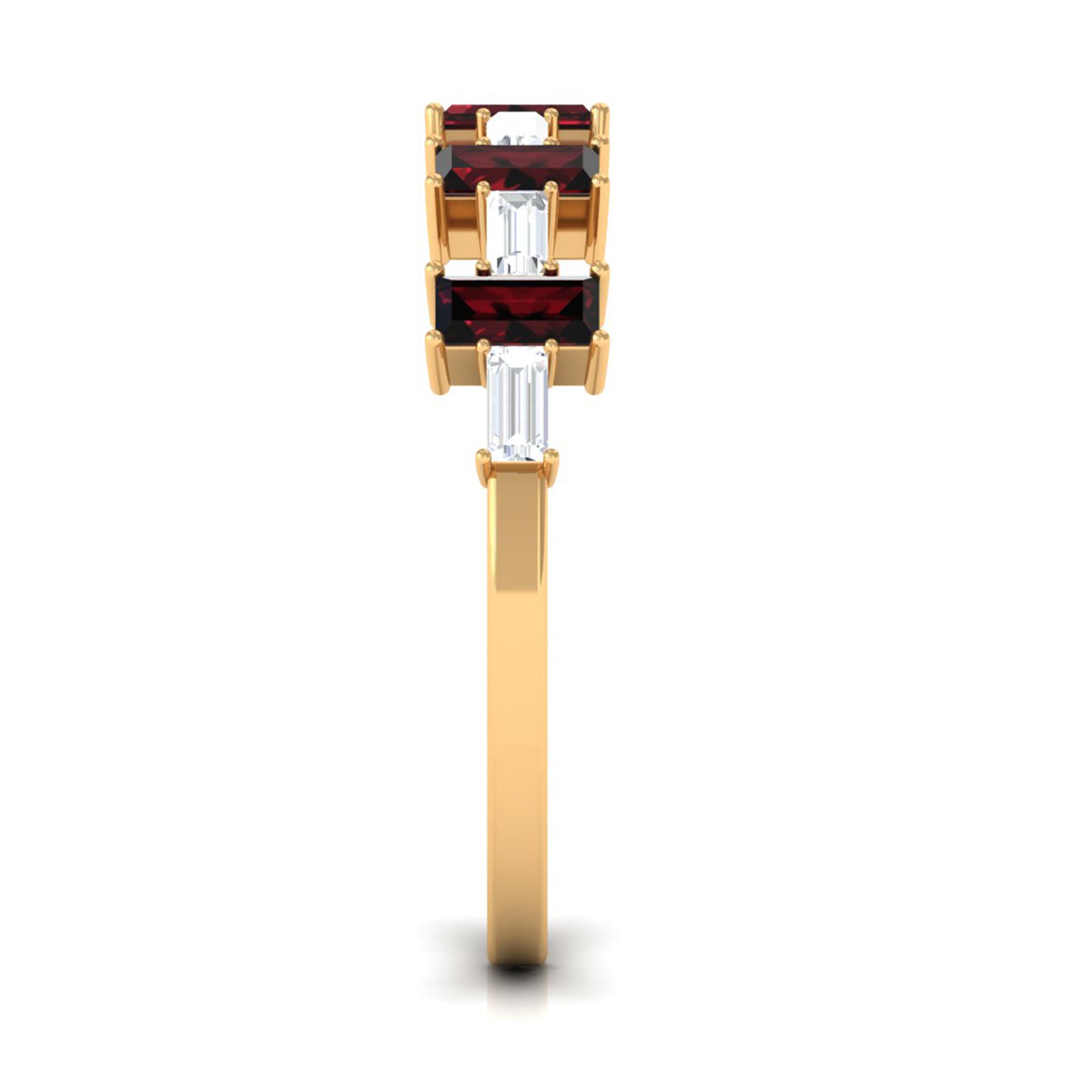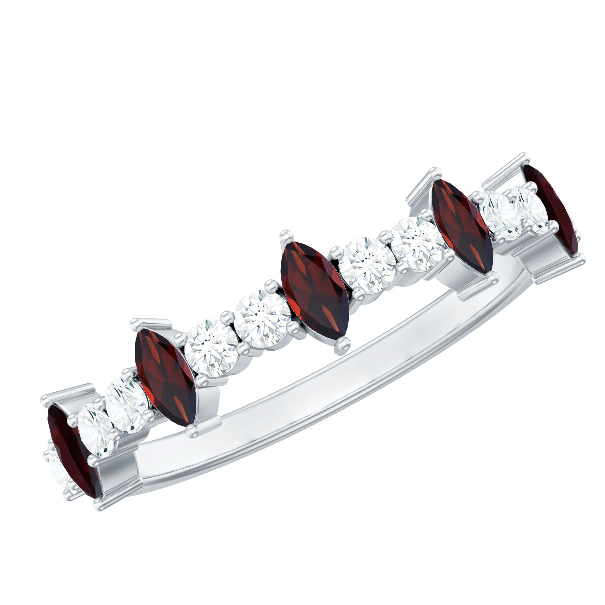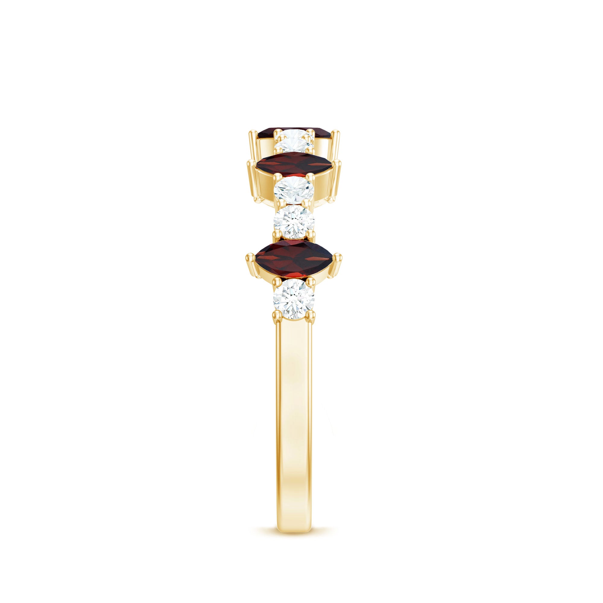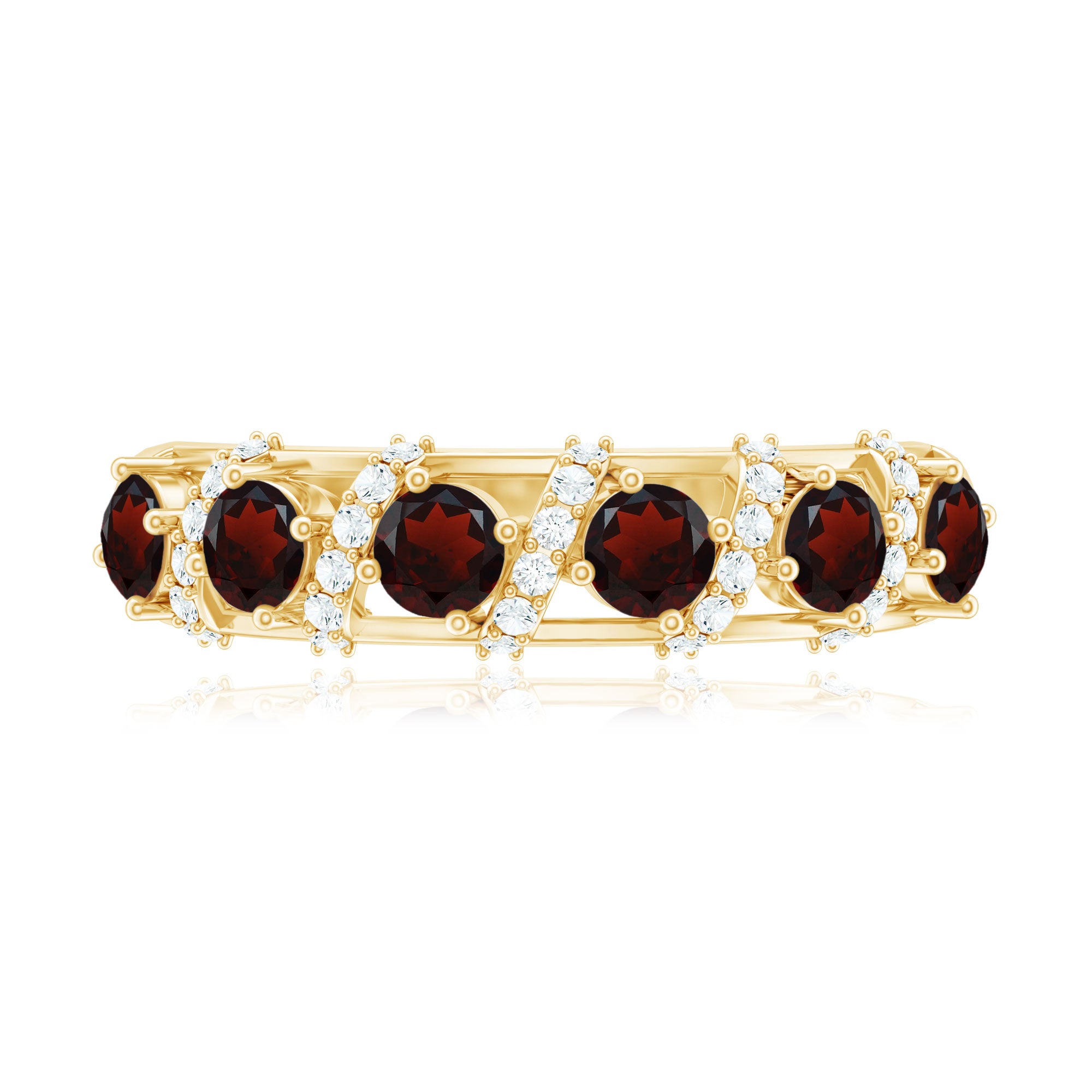 Fantastic garnet wedding band styles are curated by combining different garnet shapes ranging from round, oval, pear, marquise, cushion and many more. The garnet rings can also be selected on the basis of ring styles, most popular being the garnet eternity band for women with a knack for latest stylish trends in fashion. Metal embellishments in different adorable colors of gold namely, yellow gold, white gold and rose gold will leave the jewelry enthusiasts with plethora of engagement rings and wedding bands to choose from.