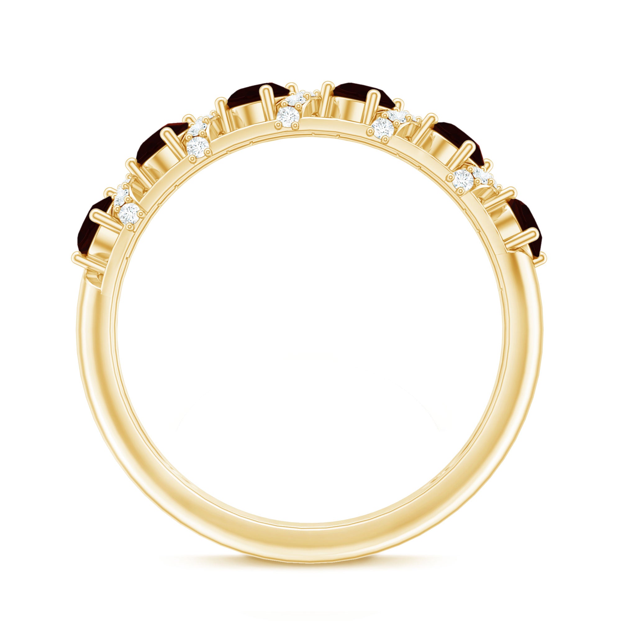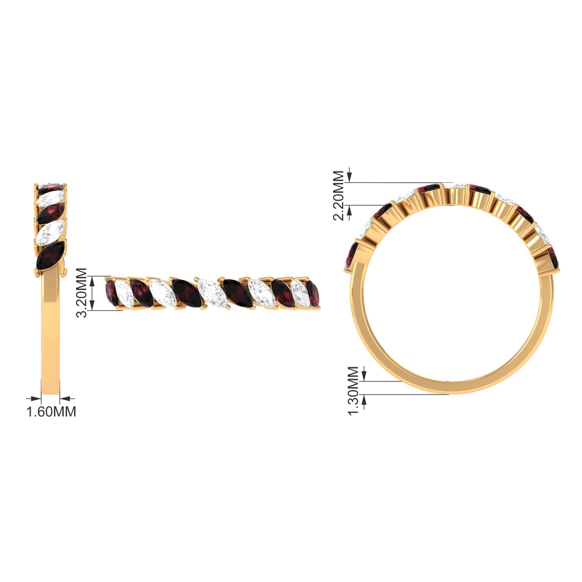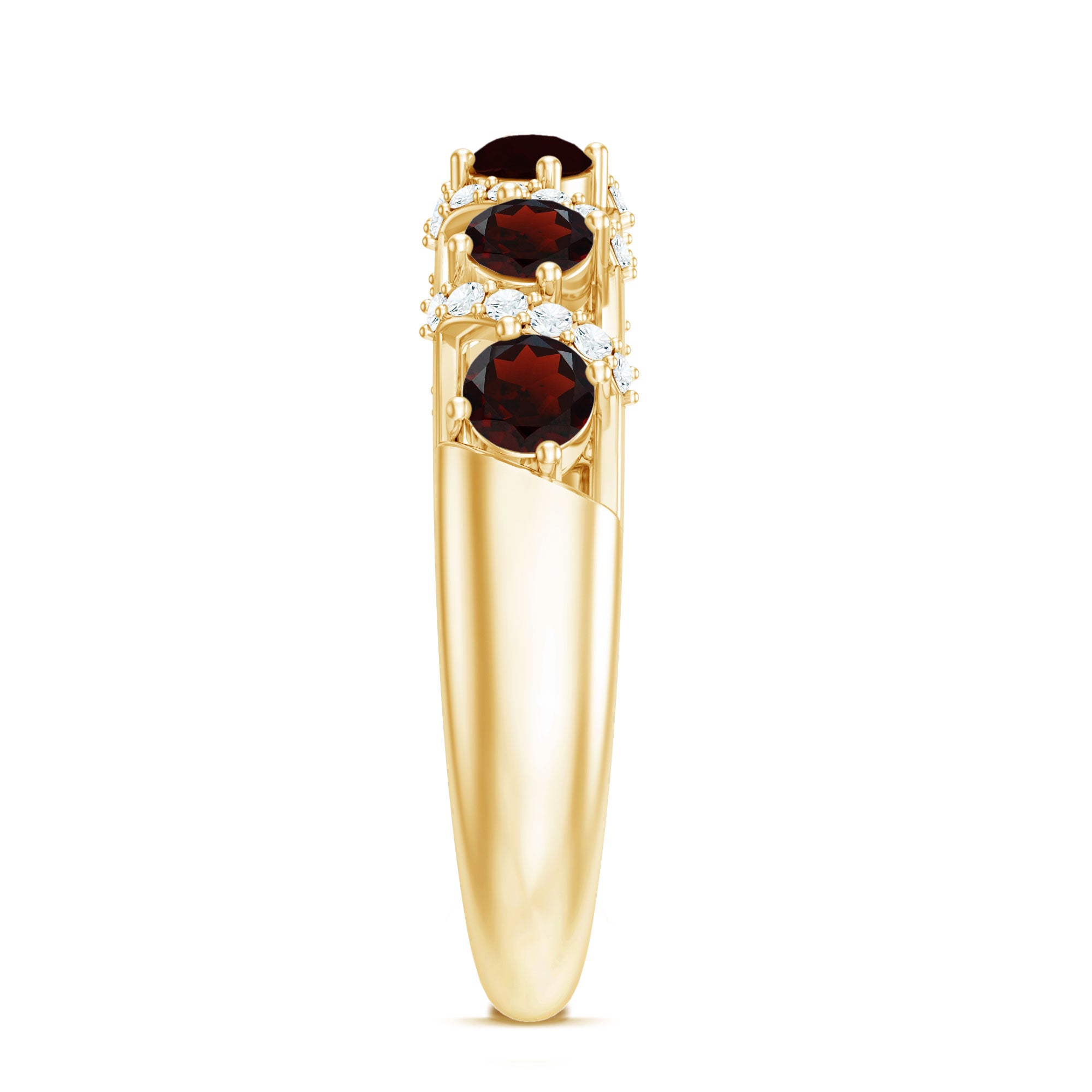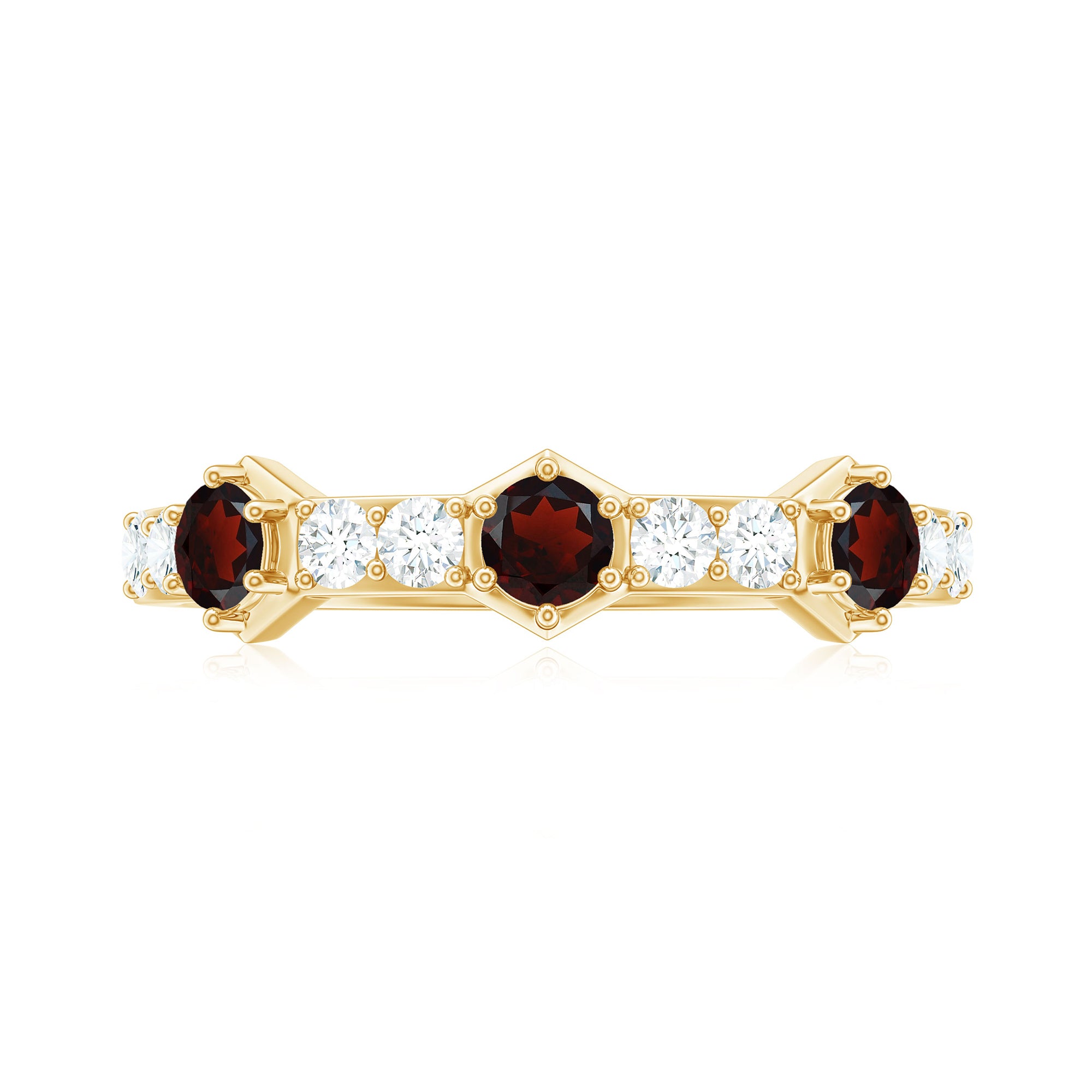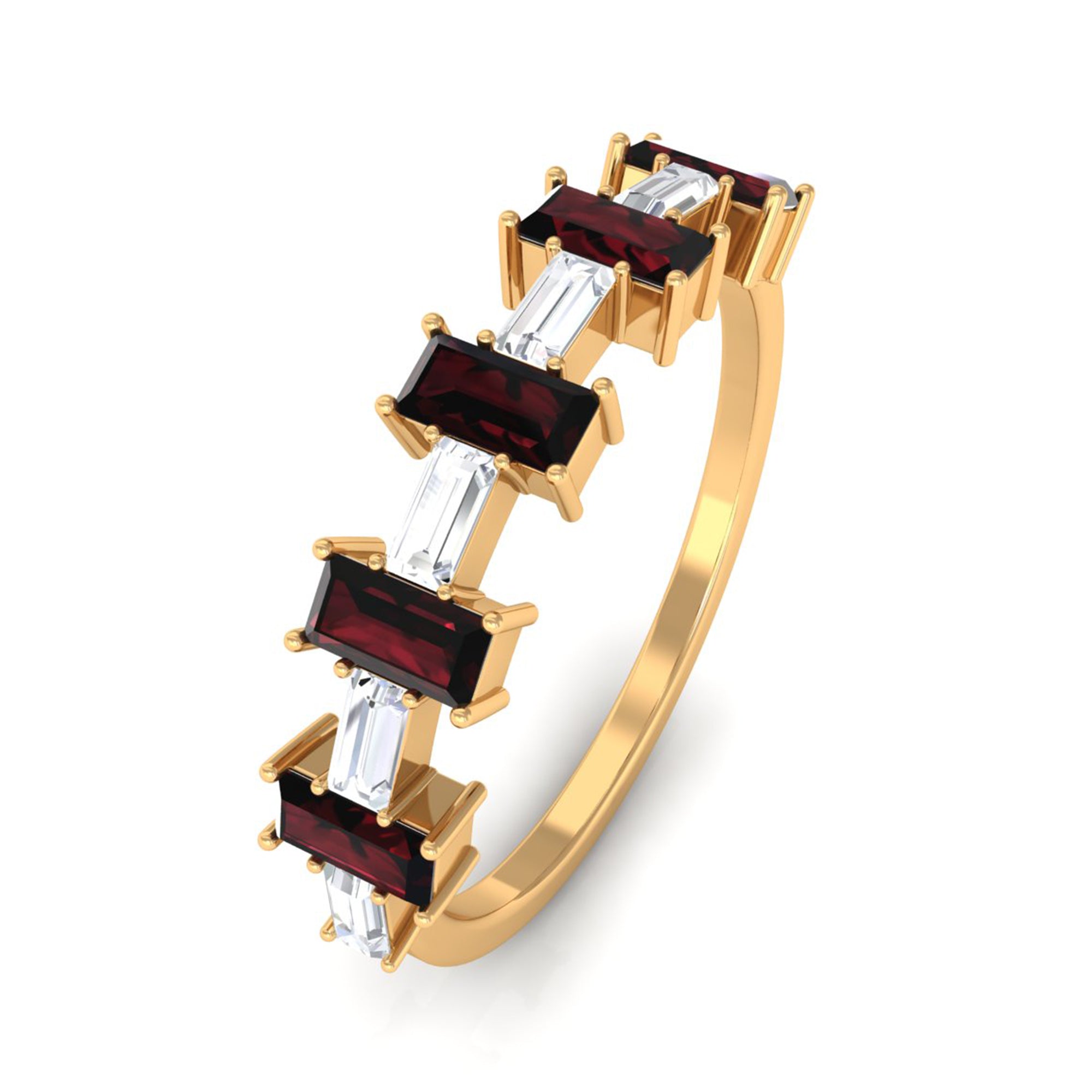 Fantastic garnet wedding band styles are curated by combining different garnet shapes ranging from round, oval, pear, marquise, cushion and many more. The garnet rings can also be selected on the basis of ring styles, most popular being the garnet eternity band for women with a knack for latest stylish trends in fashion. Metal embellishments in different adorable colors of gold namely, yellow gold, white gold and rose gold will leave the jewelry enthusiasts with plethora of engagement rings and wedding bands to choose from.