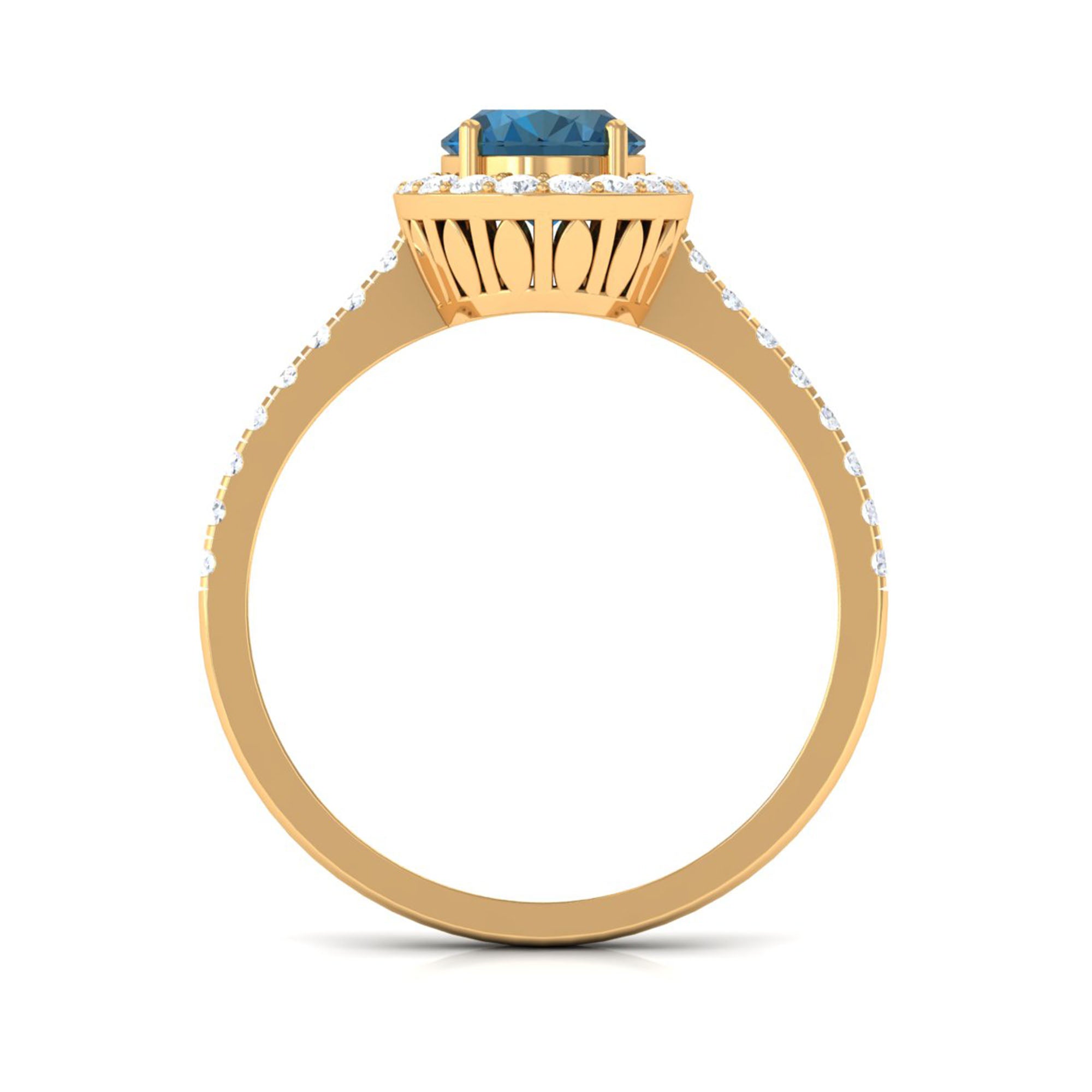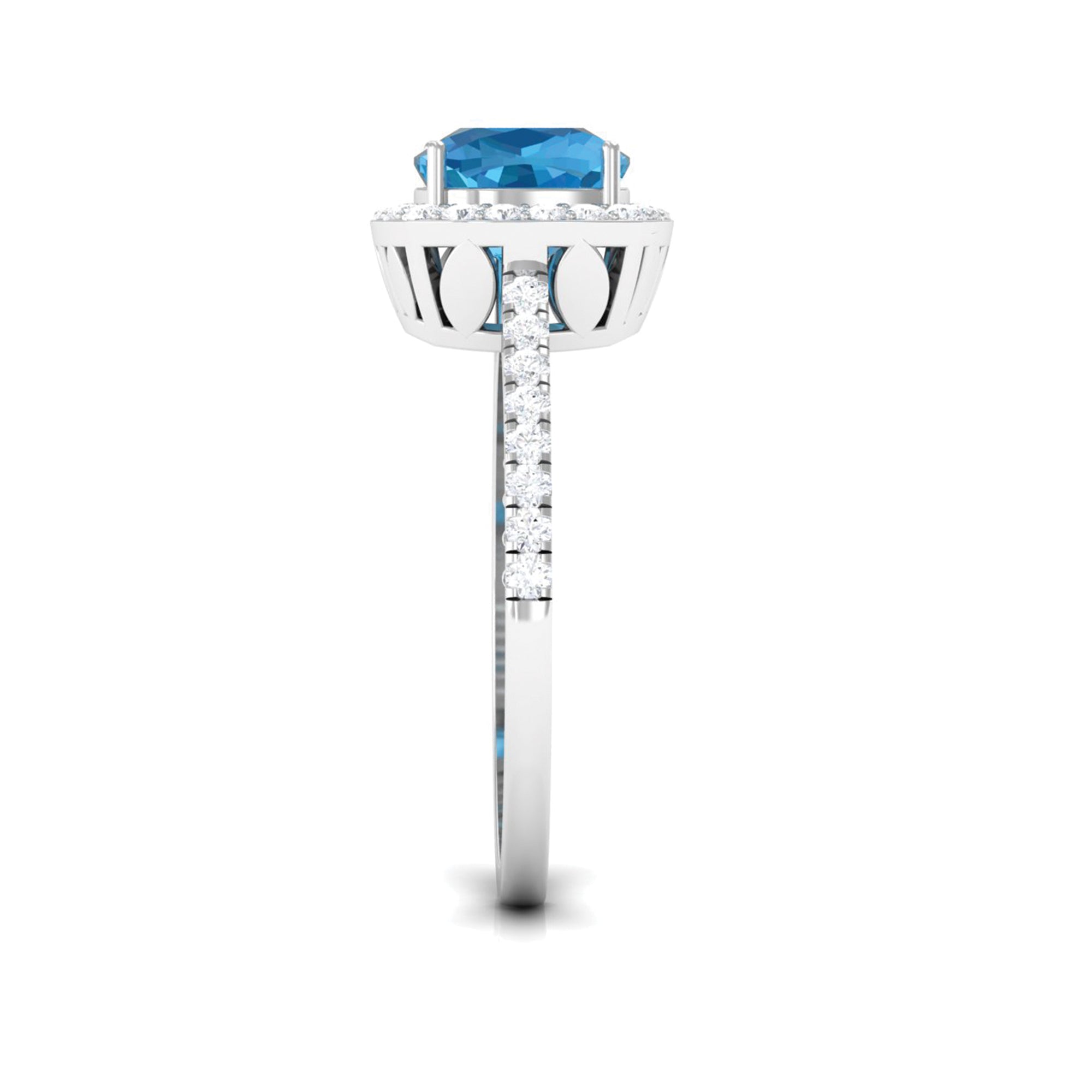 The Halo Engagement Ring costs less than a solitaire ring. A halo surrounds the center gemstone in a Halo ring, and only a large singular gemstone is used in Solitaire. A more prominent gemstone costs more.