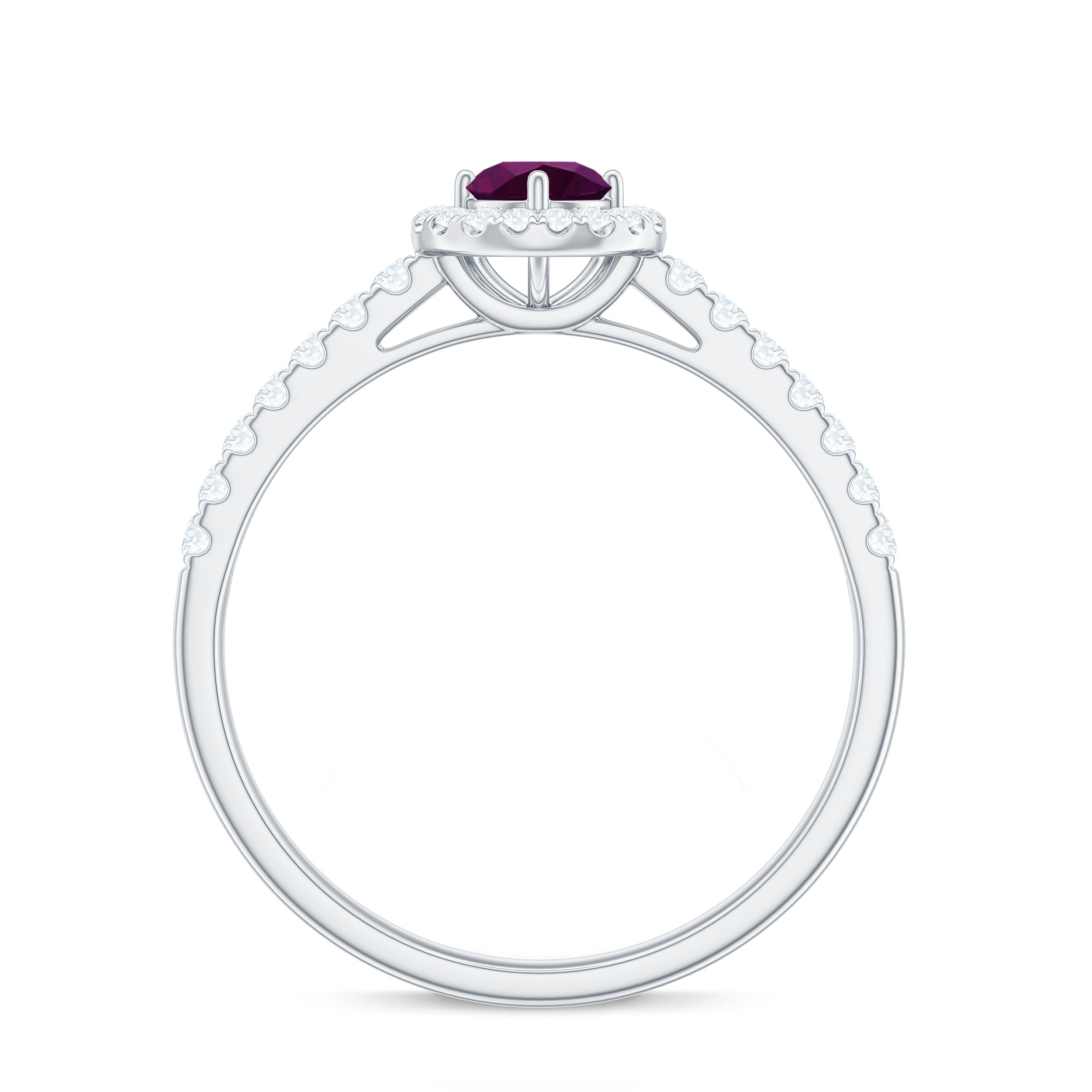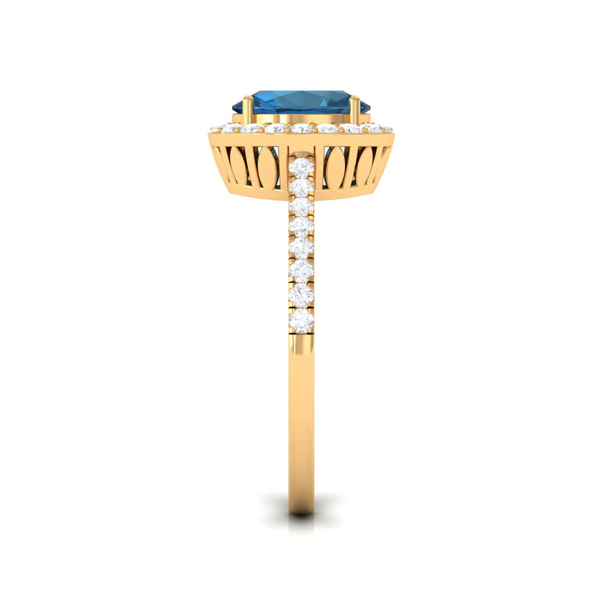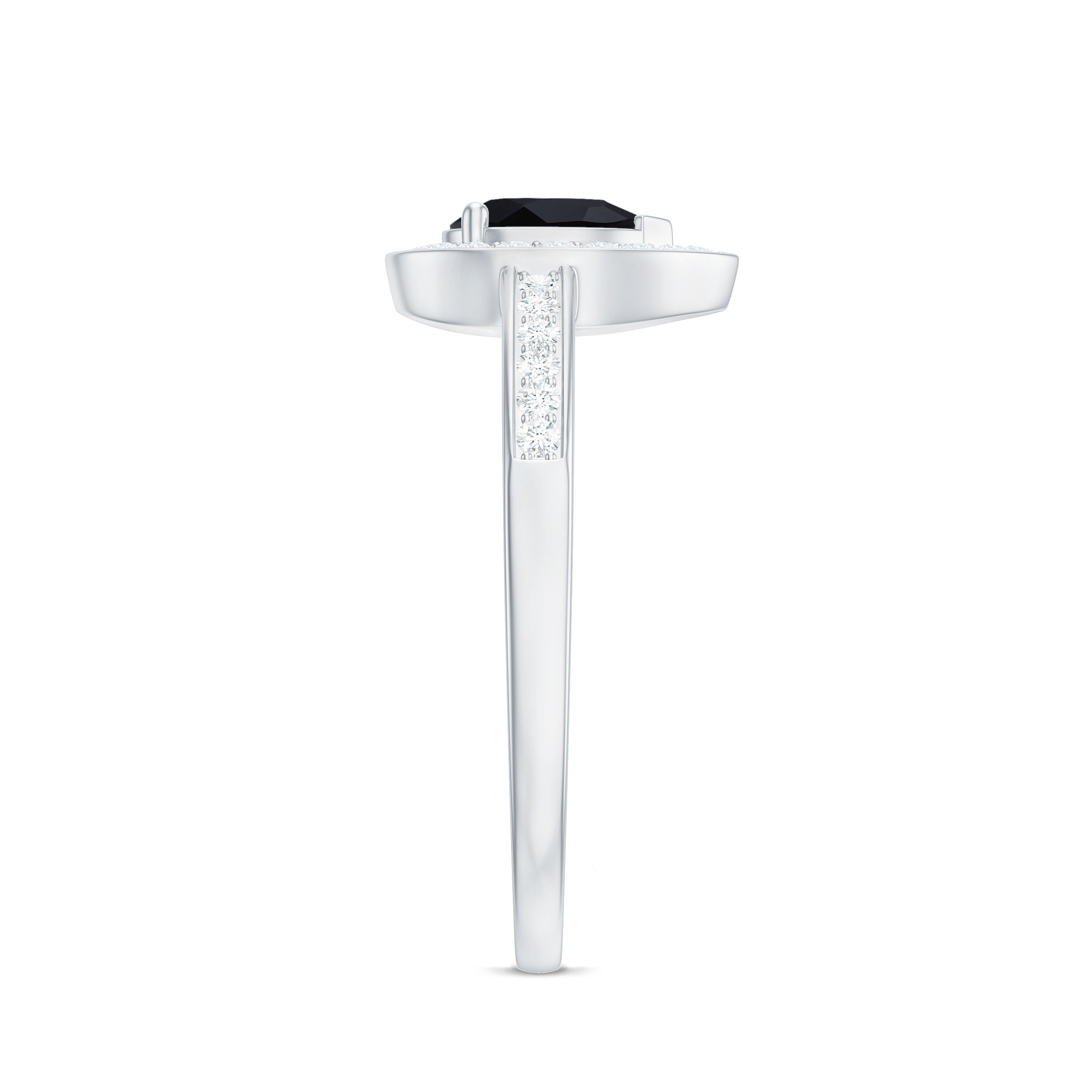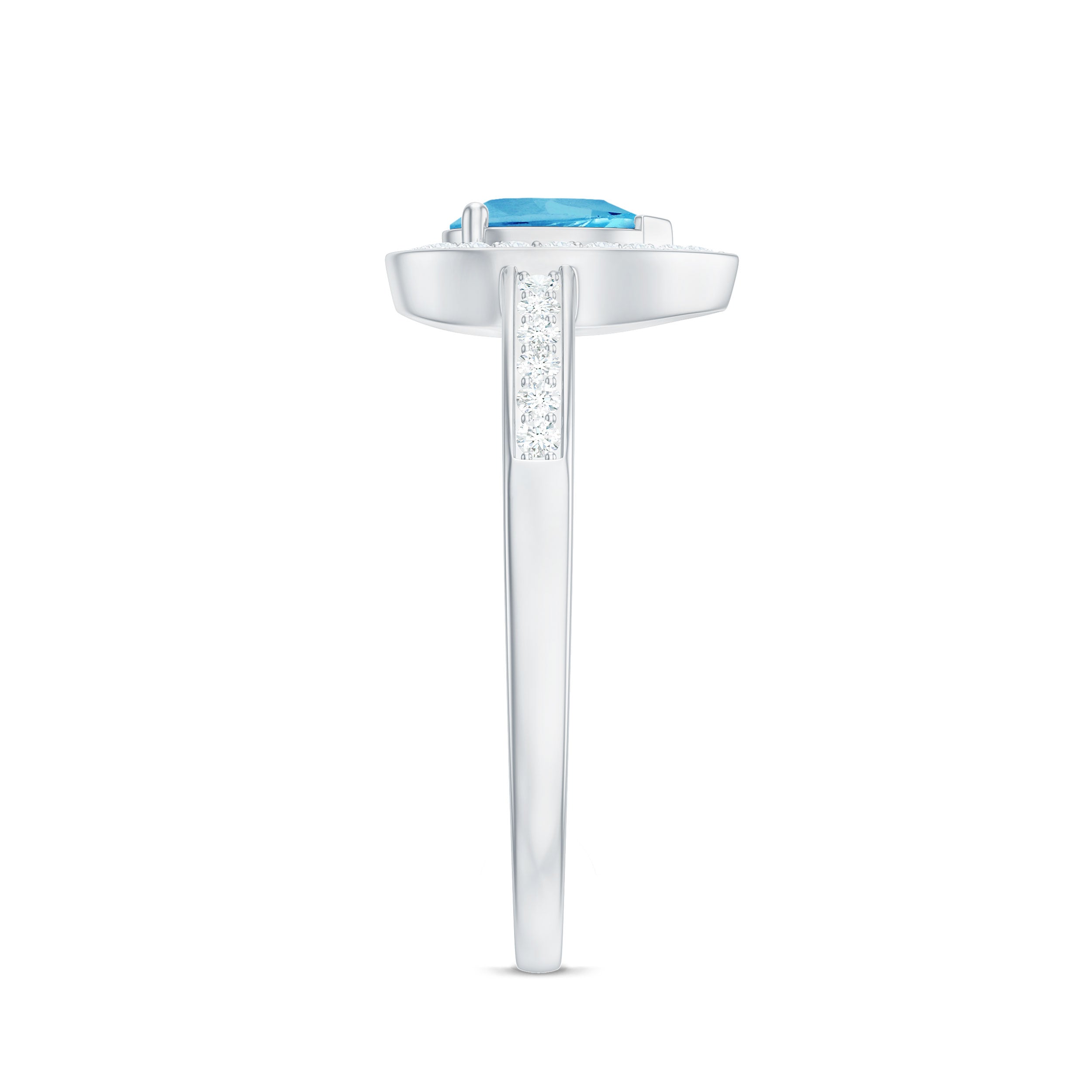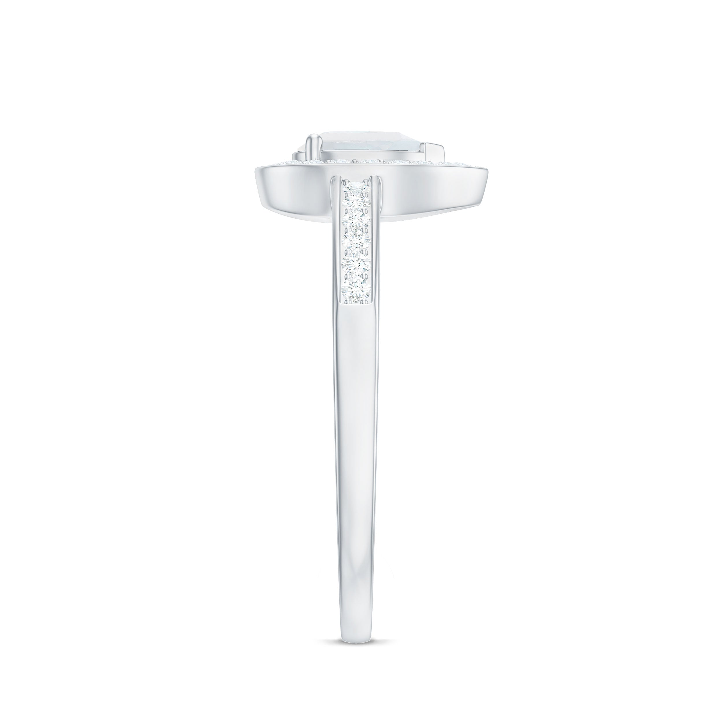 The pear shaped halo engagement ring is an attractive option for individuals who want a more distinctive and exquisite appearance. This design mixes traditional sophistication with a dash of modern flair with its teardrop-shaped center stone and the surrounding halo.