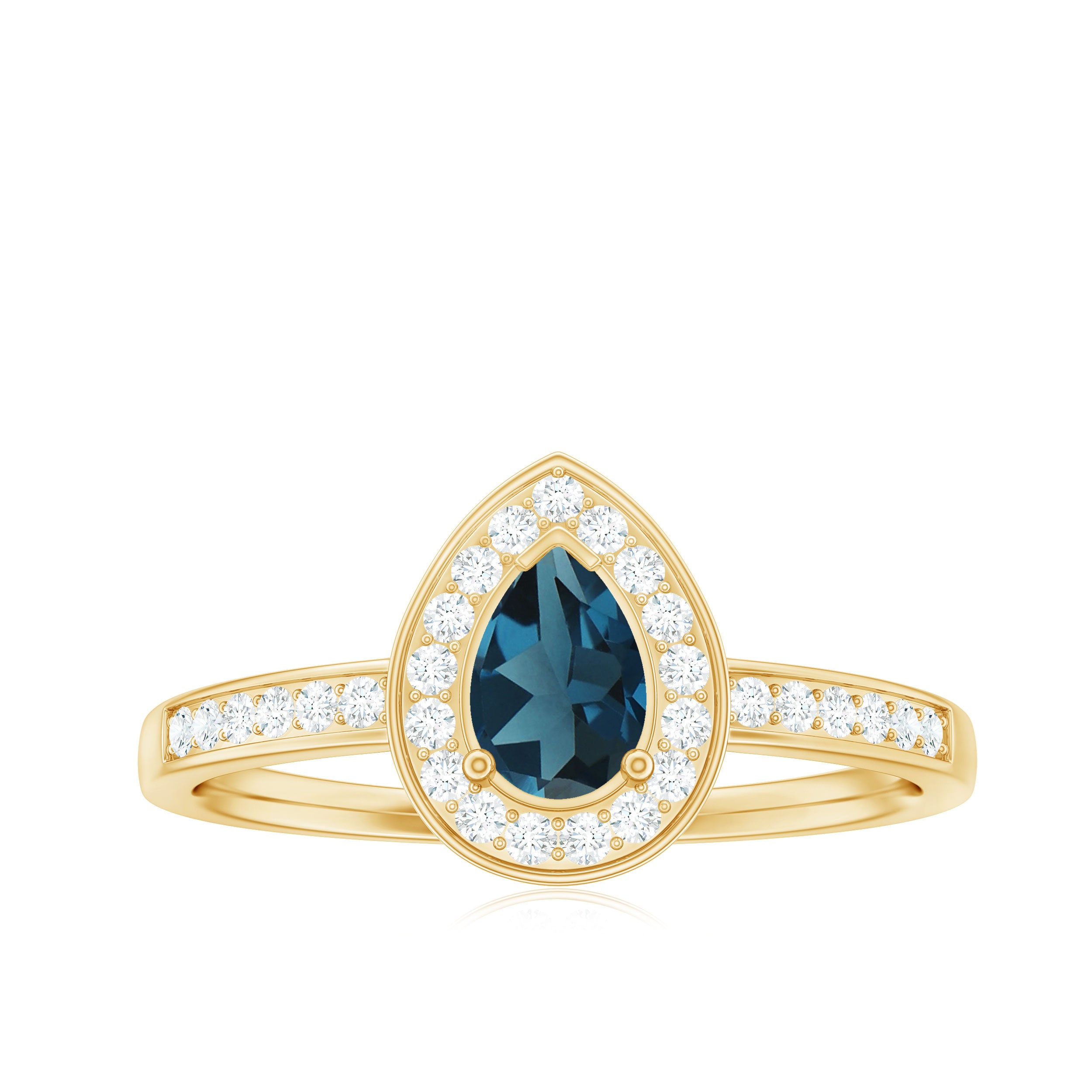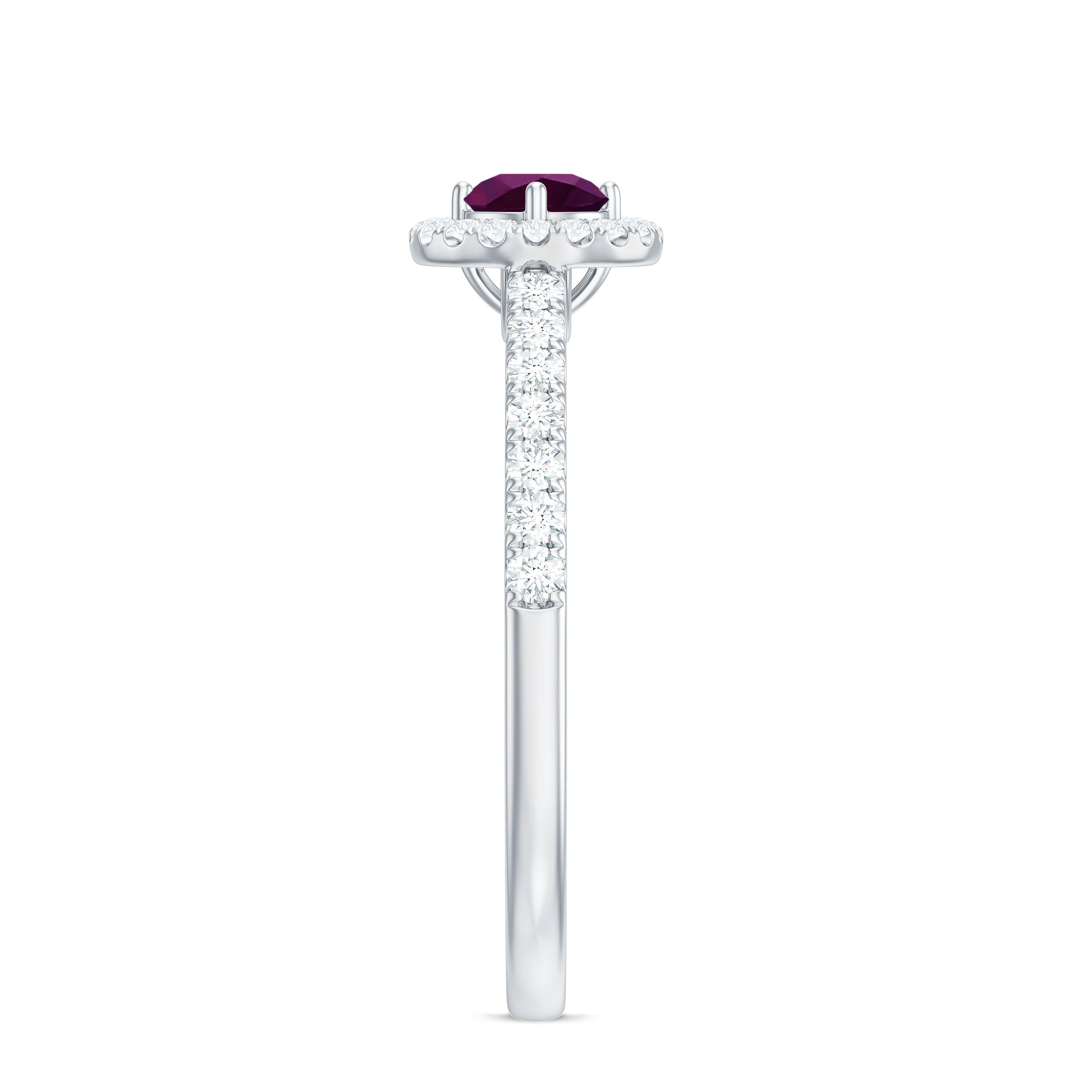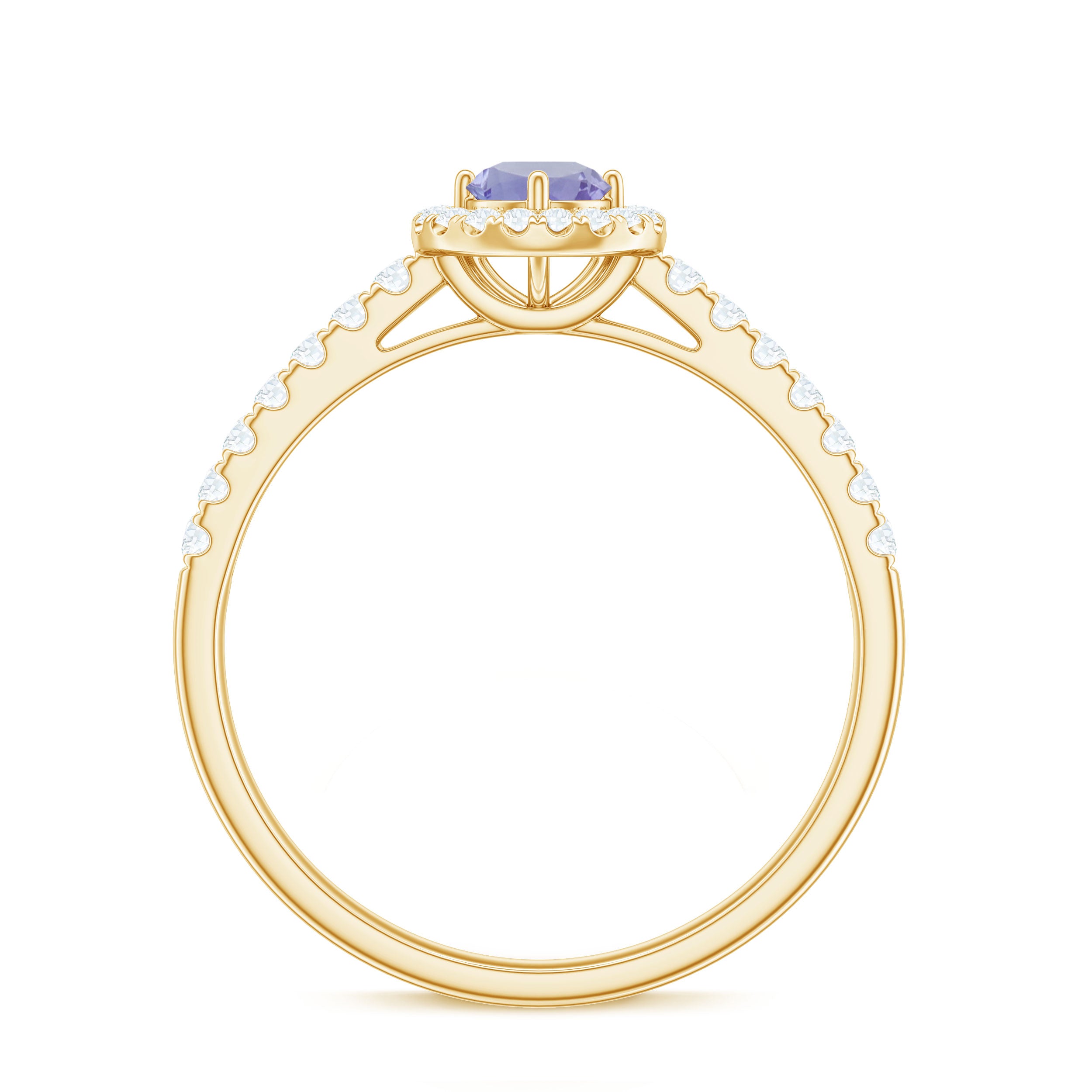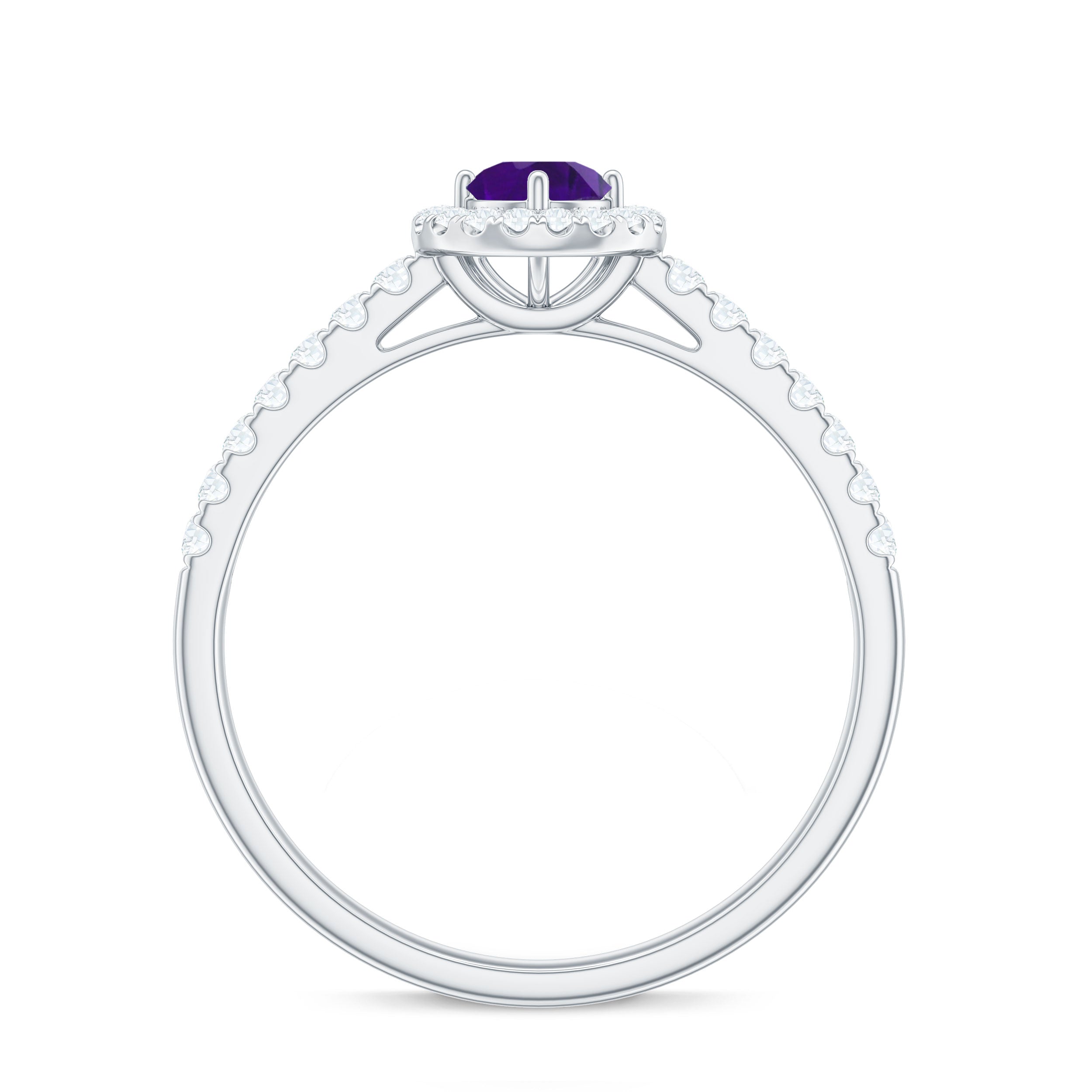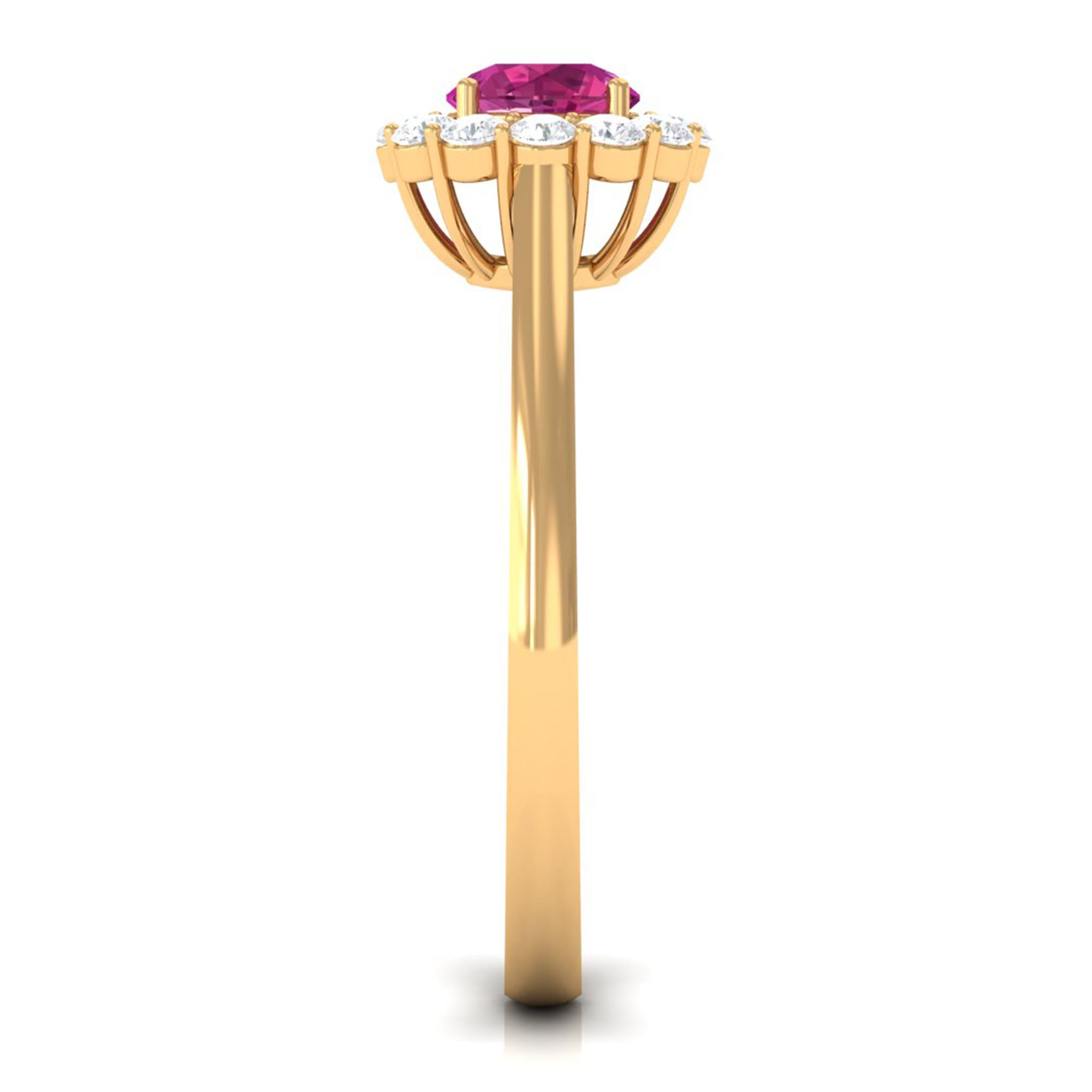 The pear shaped halo engagement ring is an attractive option for individuals who want a more distinctive and exquisite appearance. This design mixes traditional sophistication with a dash of modern flair with its teardrop-shaped center stone and the surrounding halo.