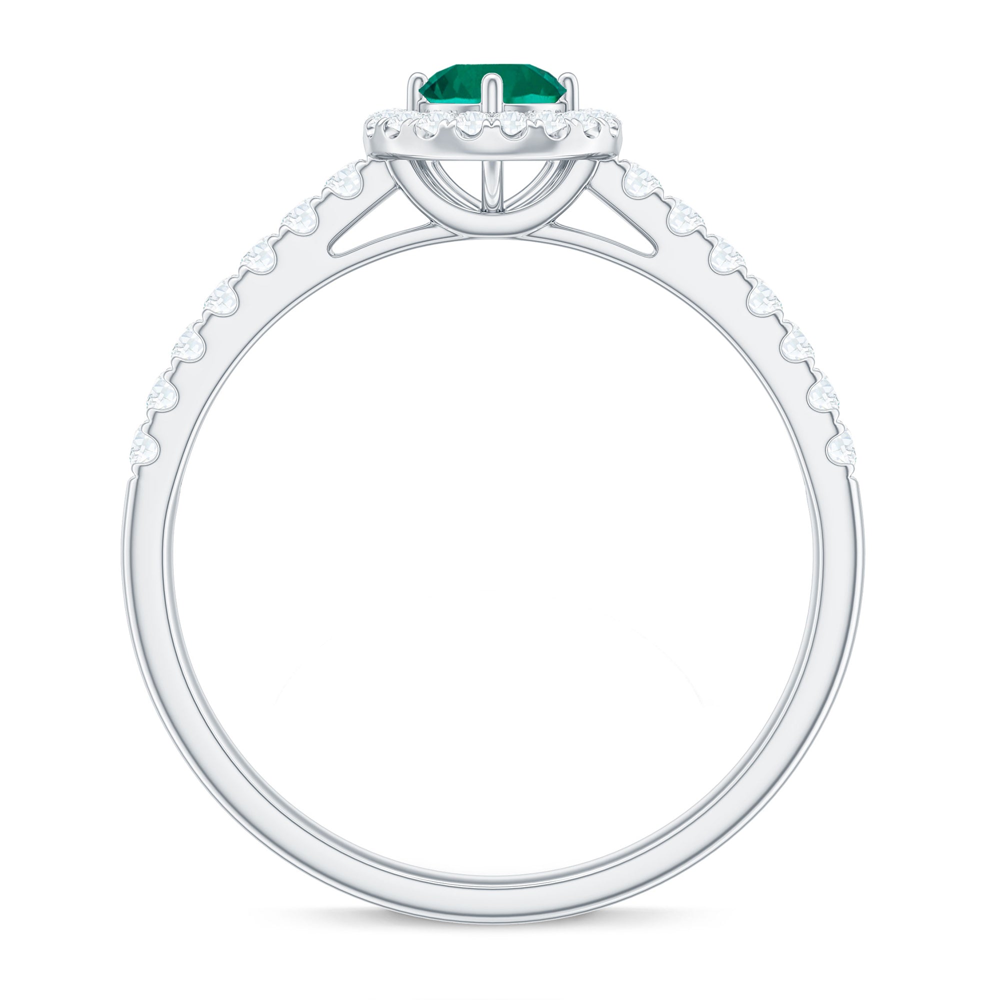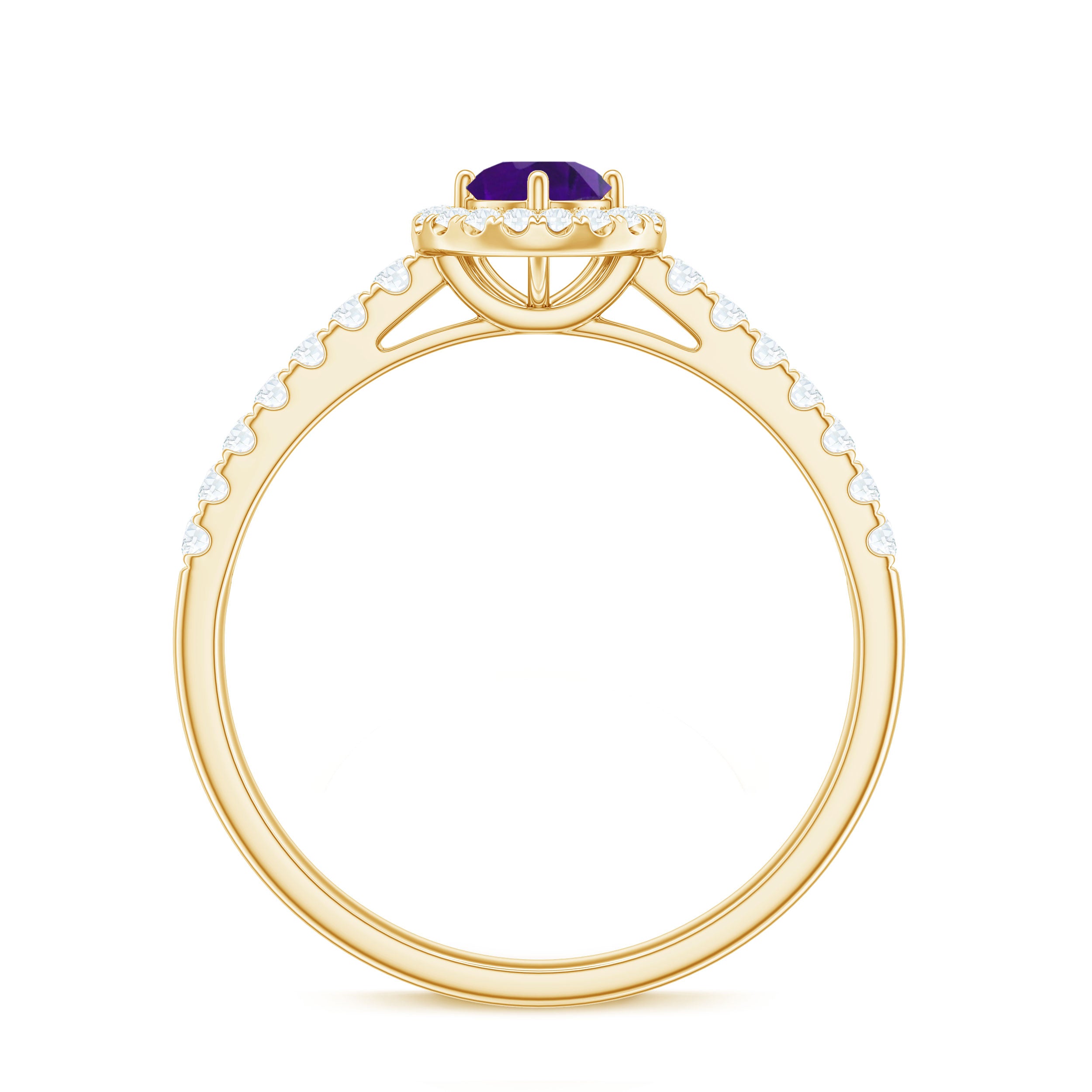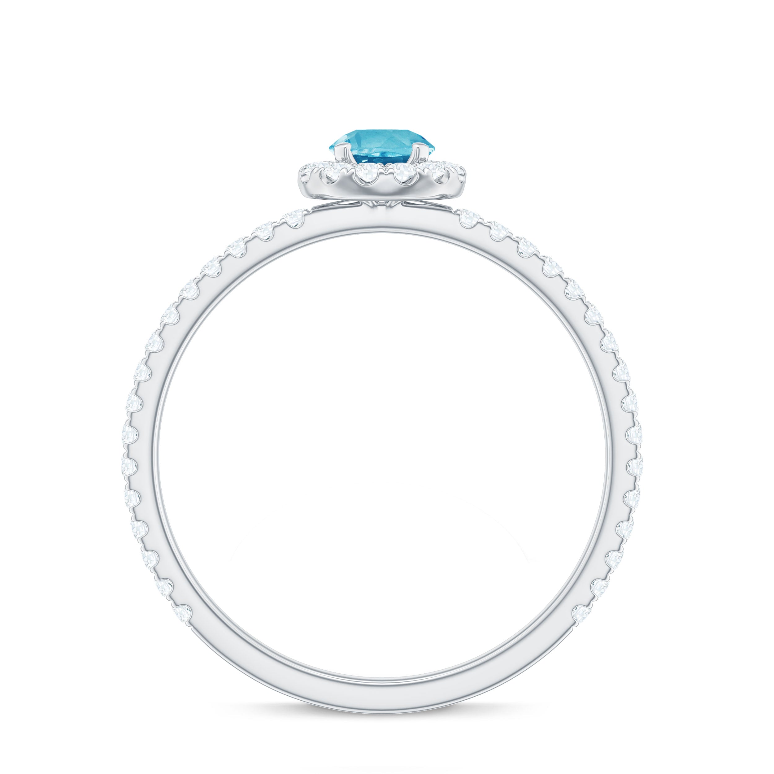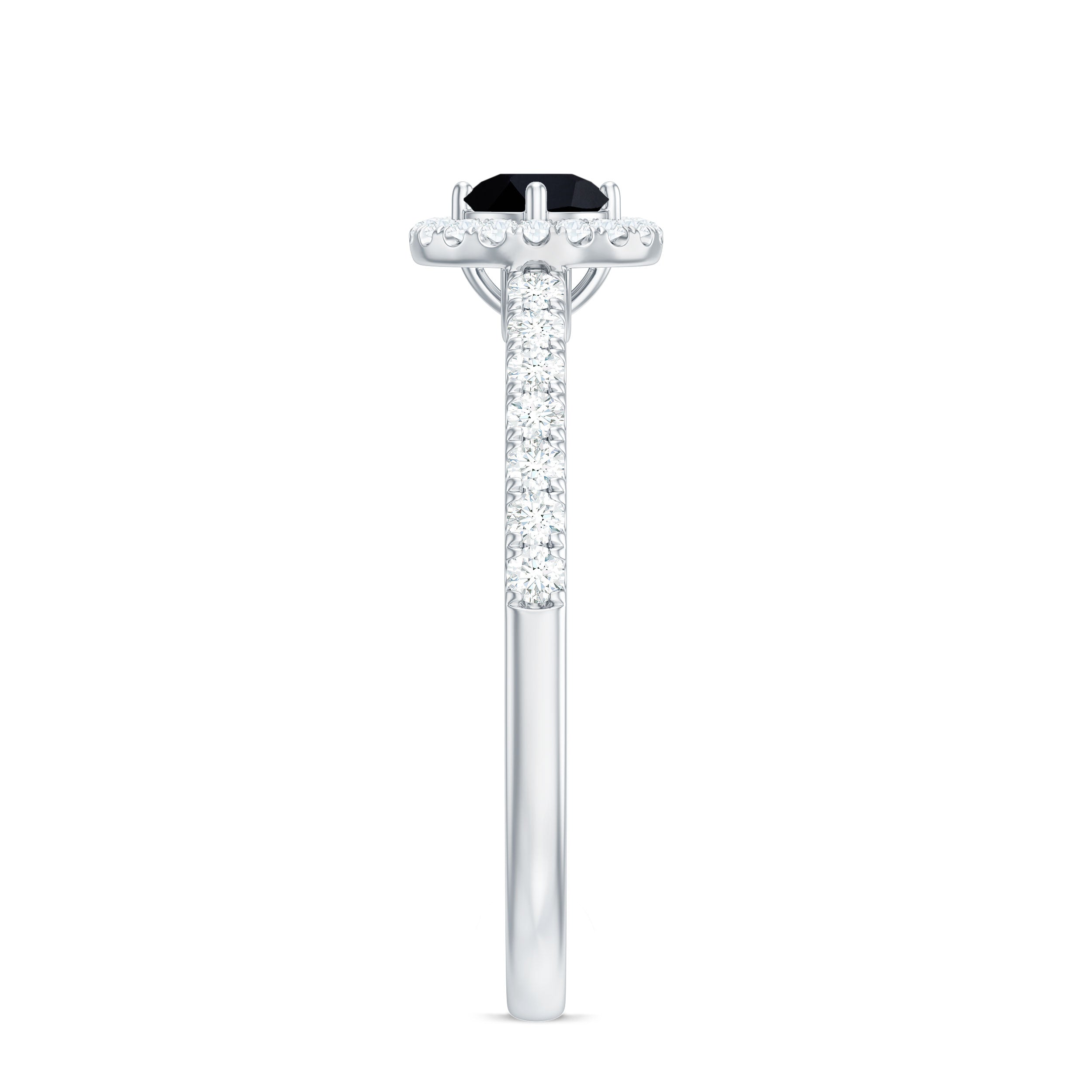 The pear shaped halo engagement ring is an attractive option for individuals who want a more distinctive and exquisite appearance. This design mixes traditional sophistication with a dash of modern flair with its teardrop-shaped center stone and the surrounding halo.