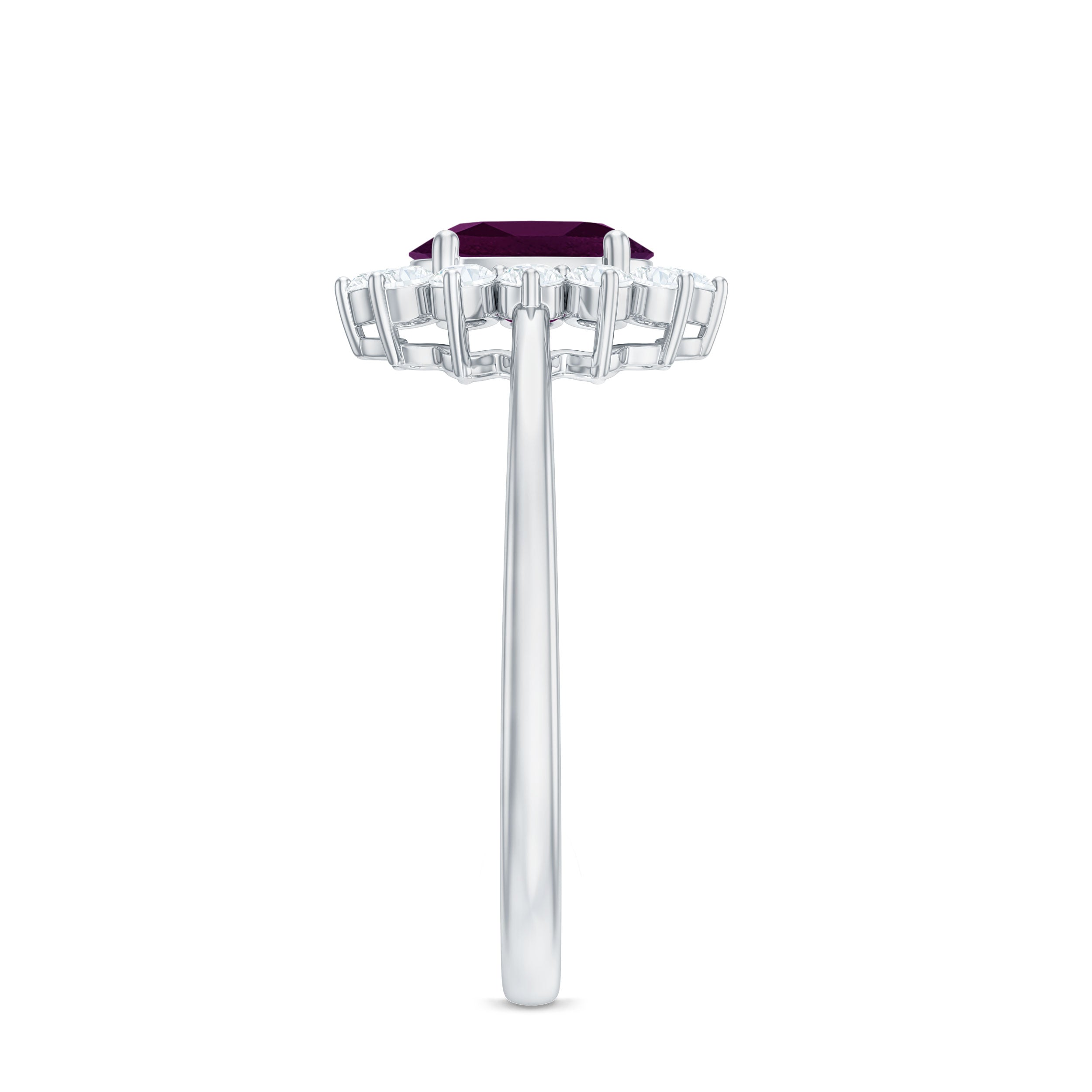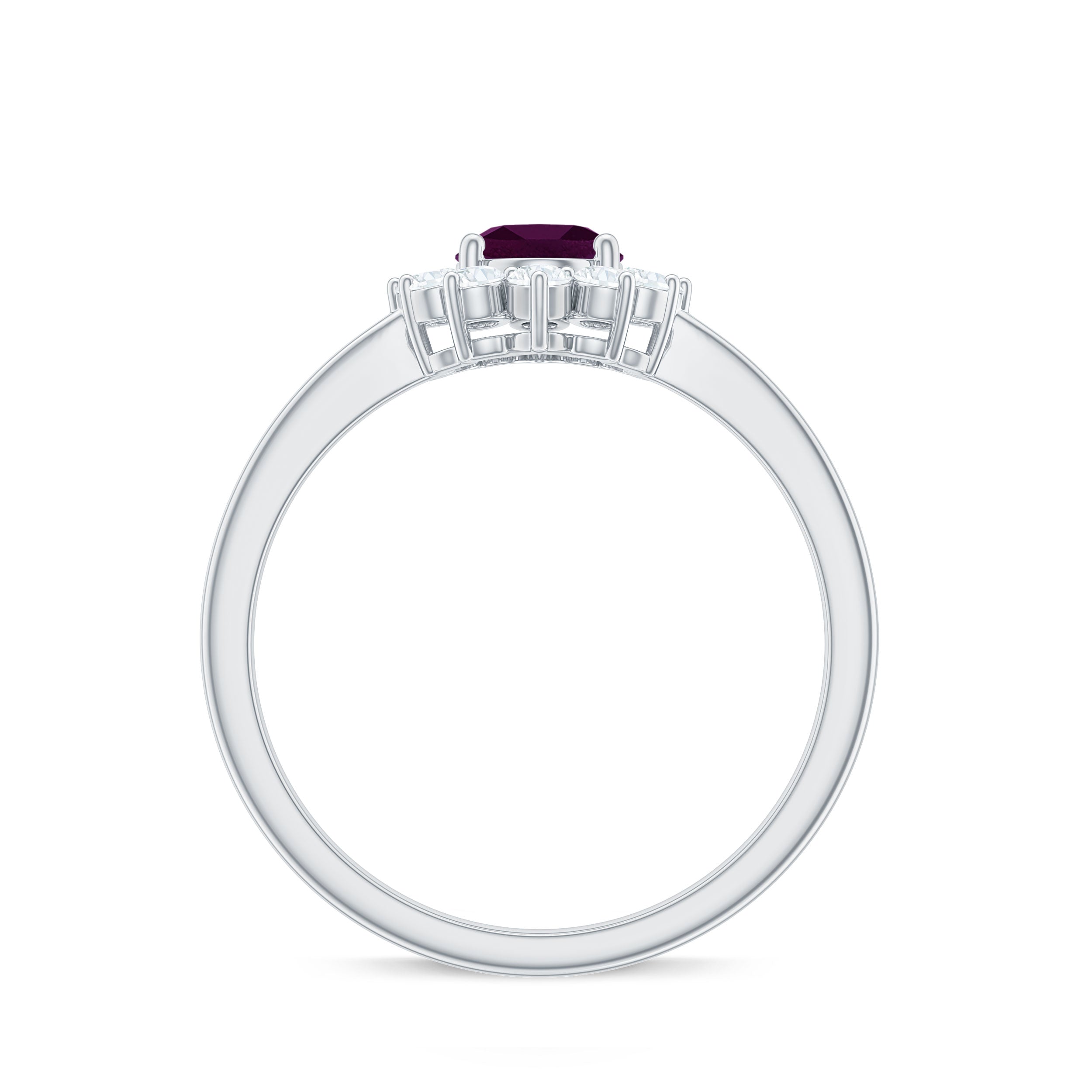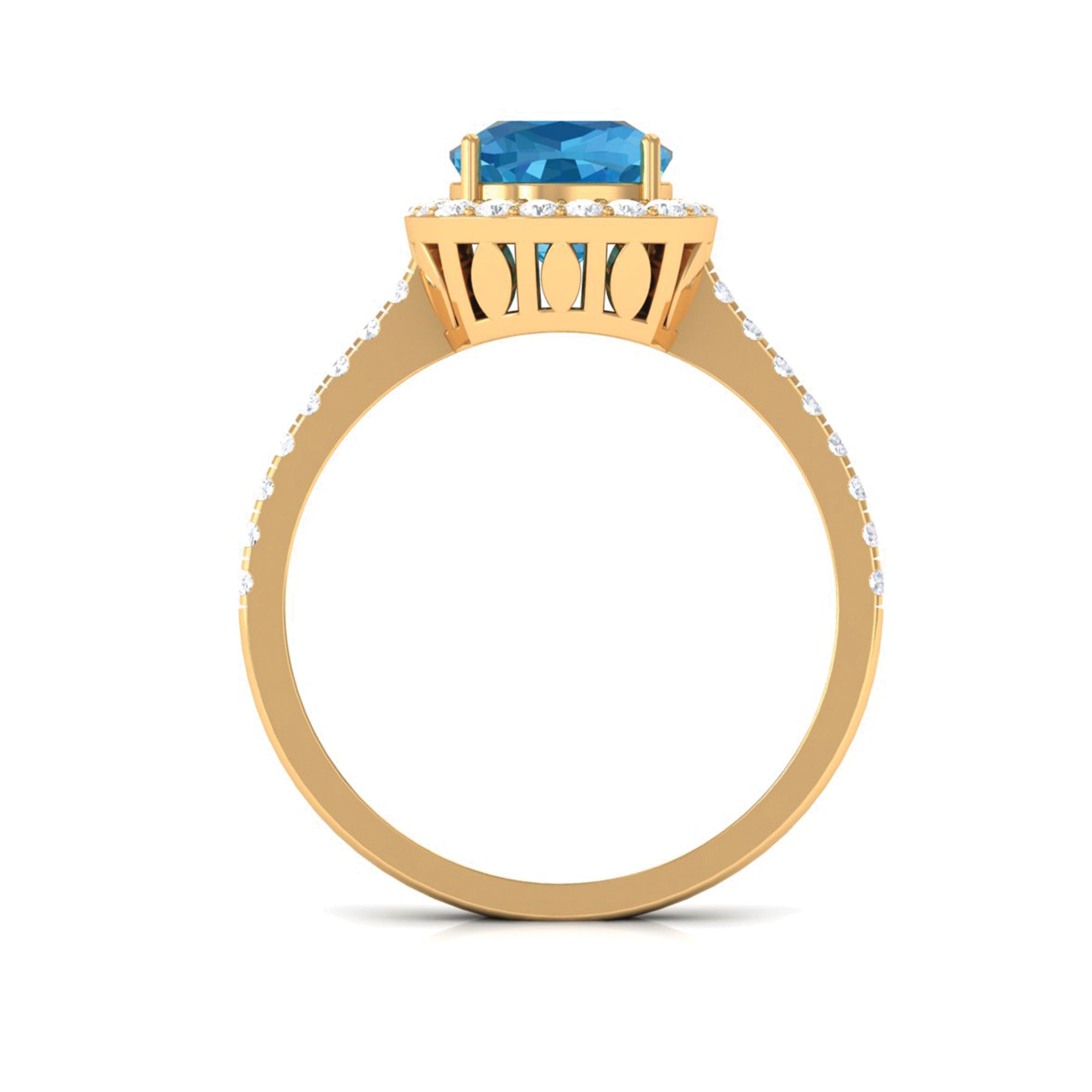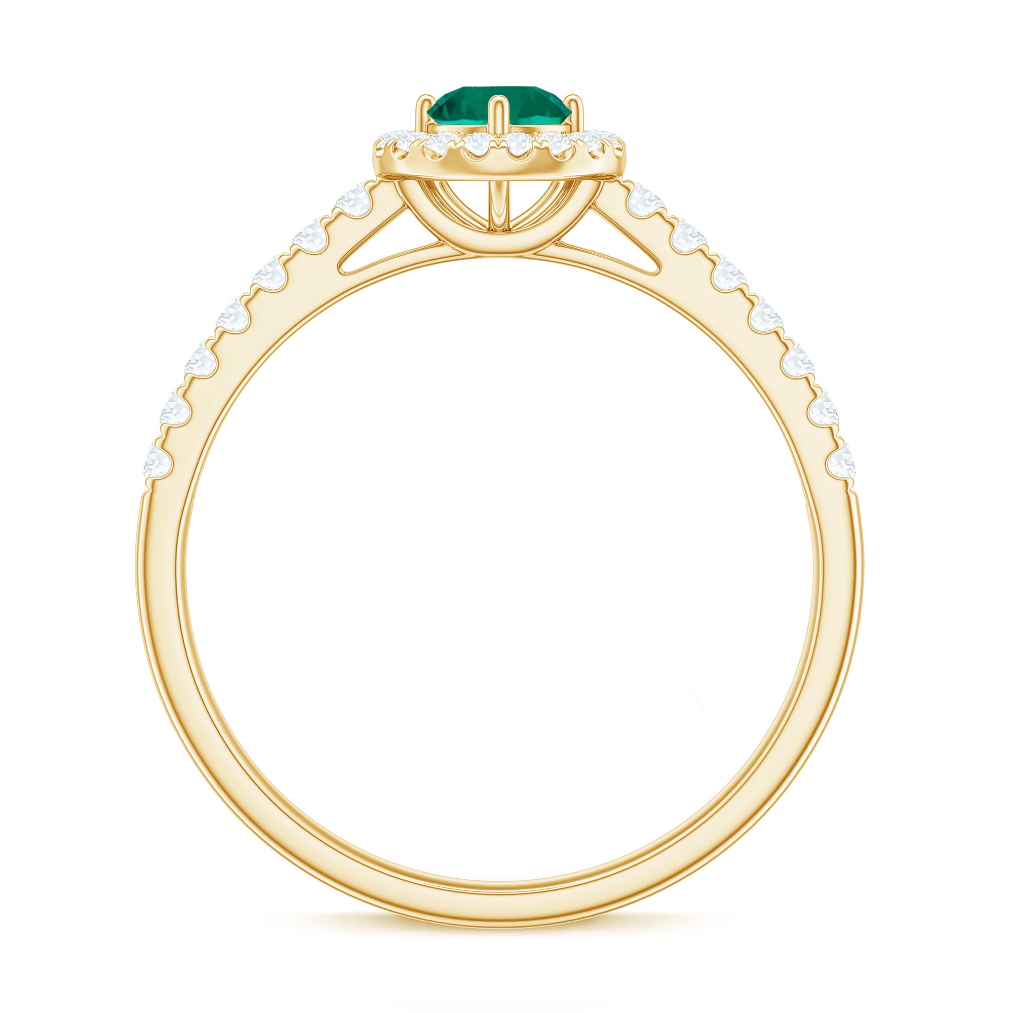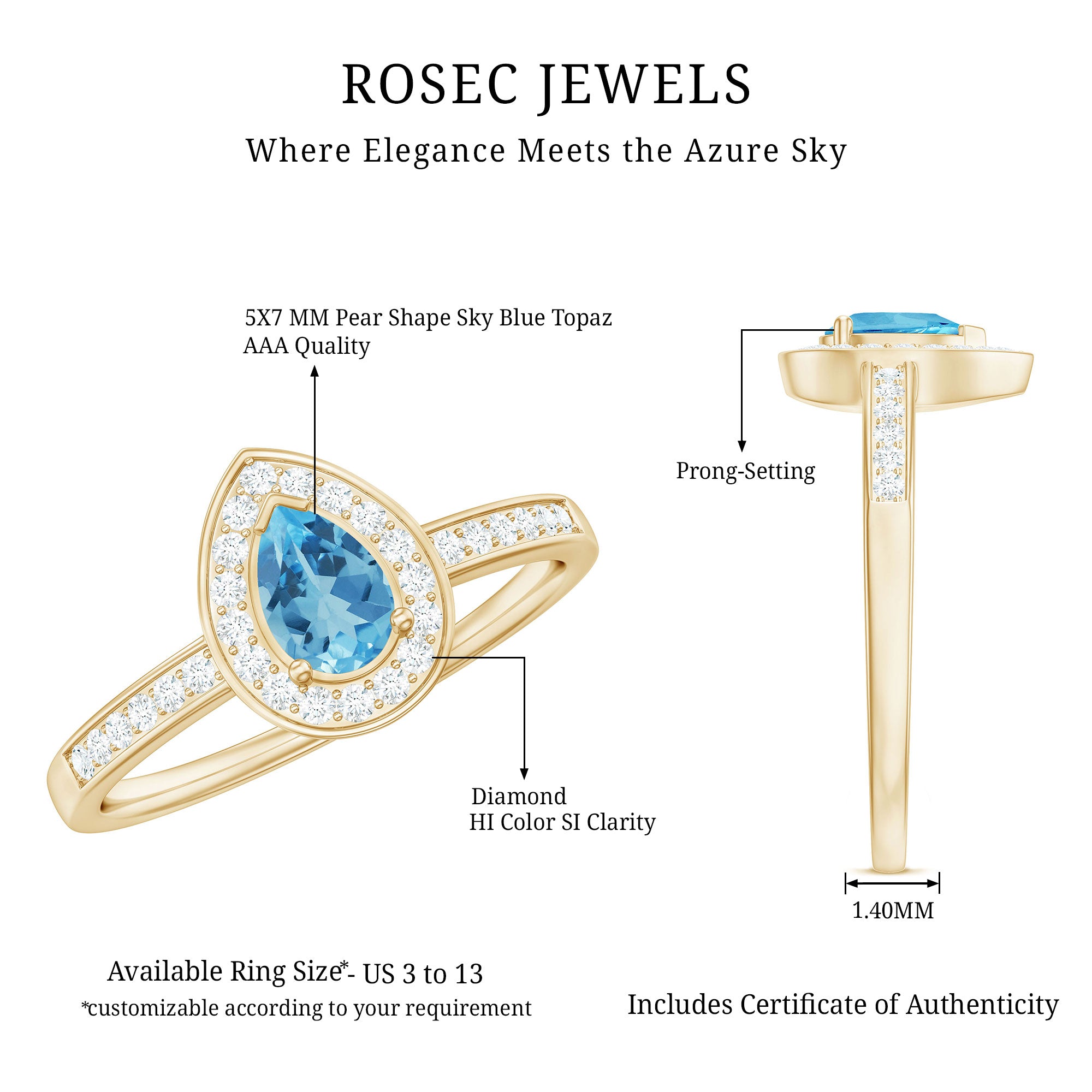 The pear shaped halo engagement ring is an attractive option for individuals who want a more distinctive and exquisite appearance. This design mixes traditional sophistication with a dash of modern flair with its teardrop-shaped center stone and the surrounding halo.
