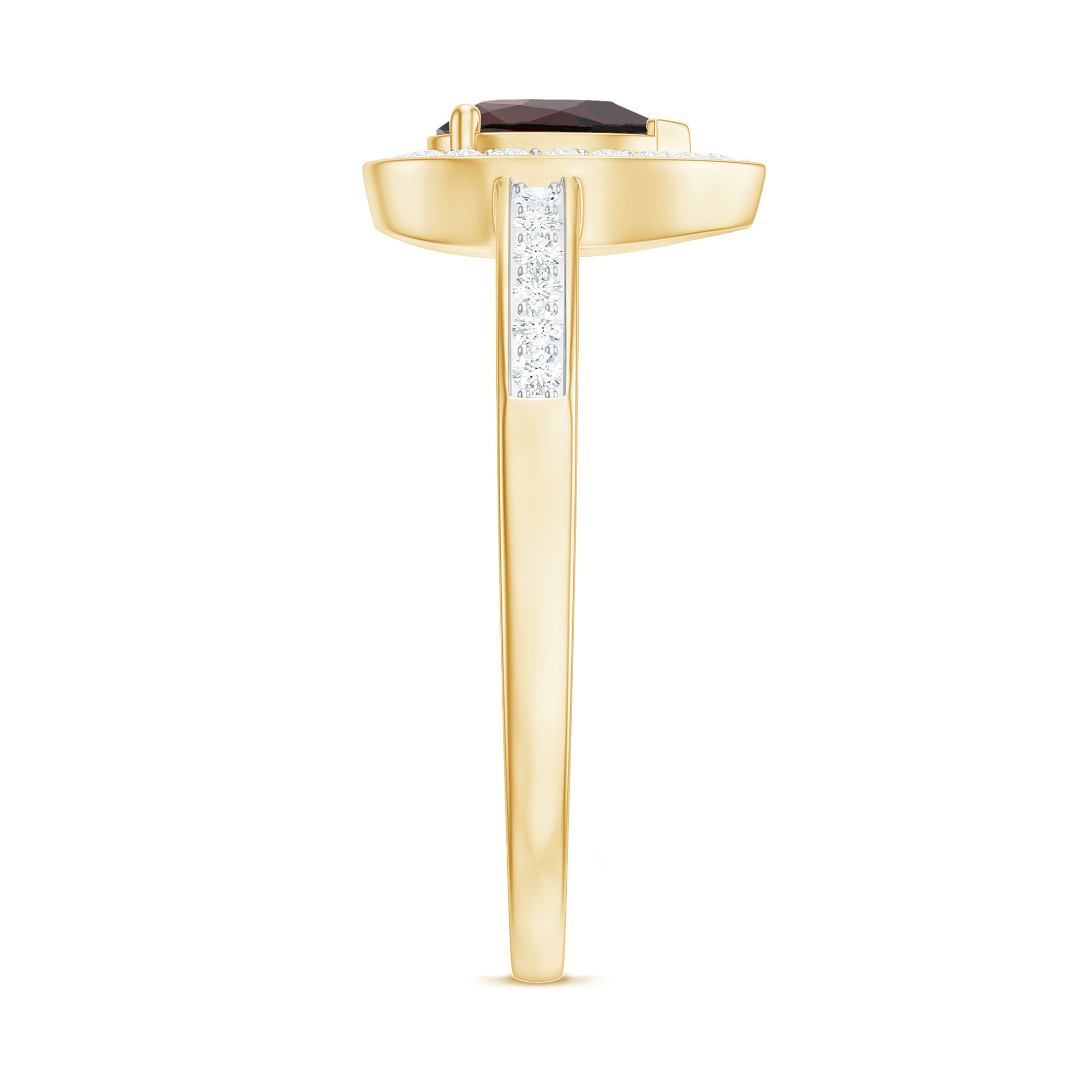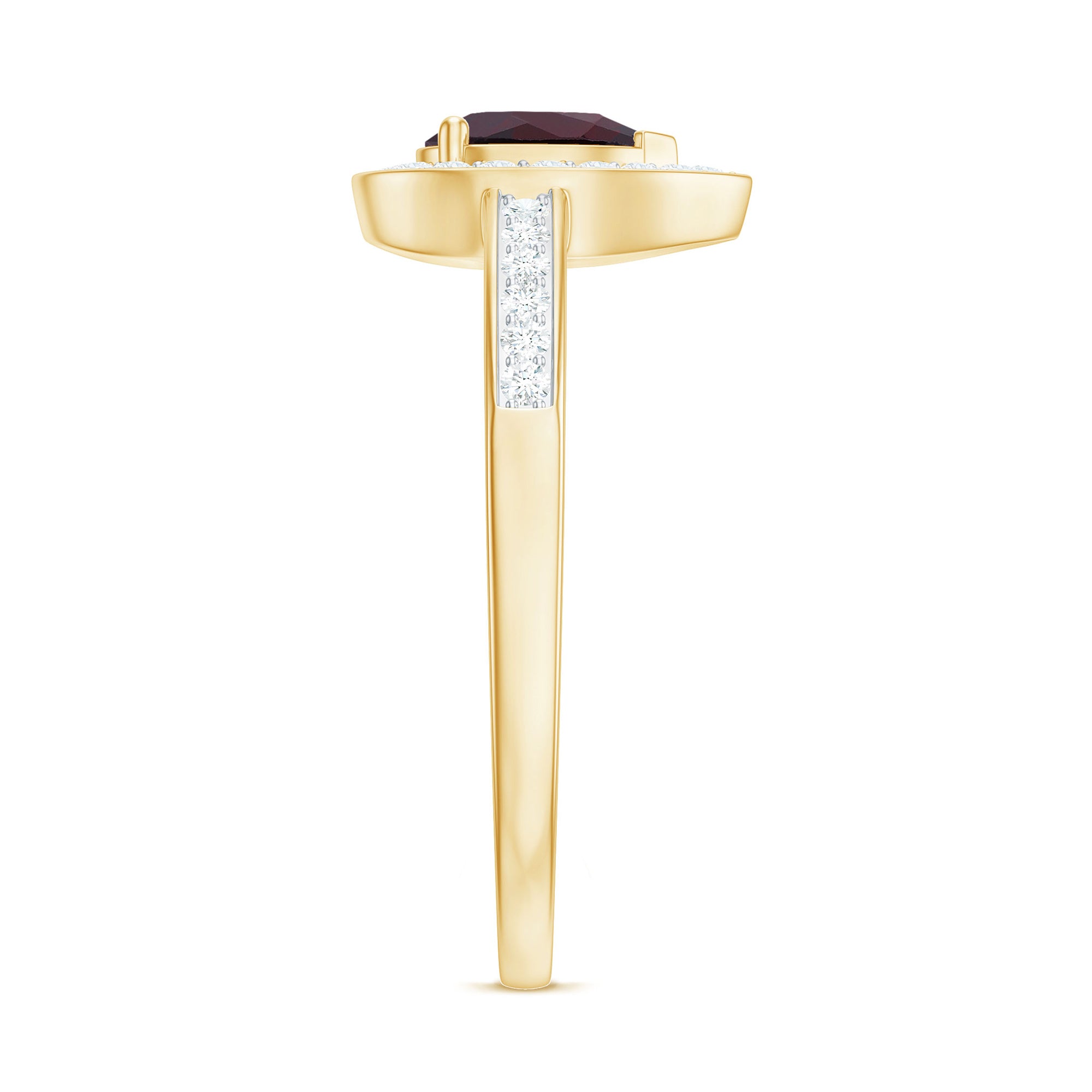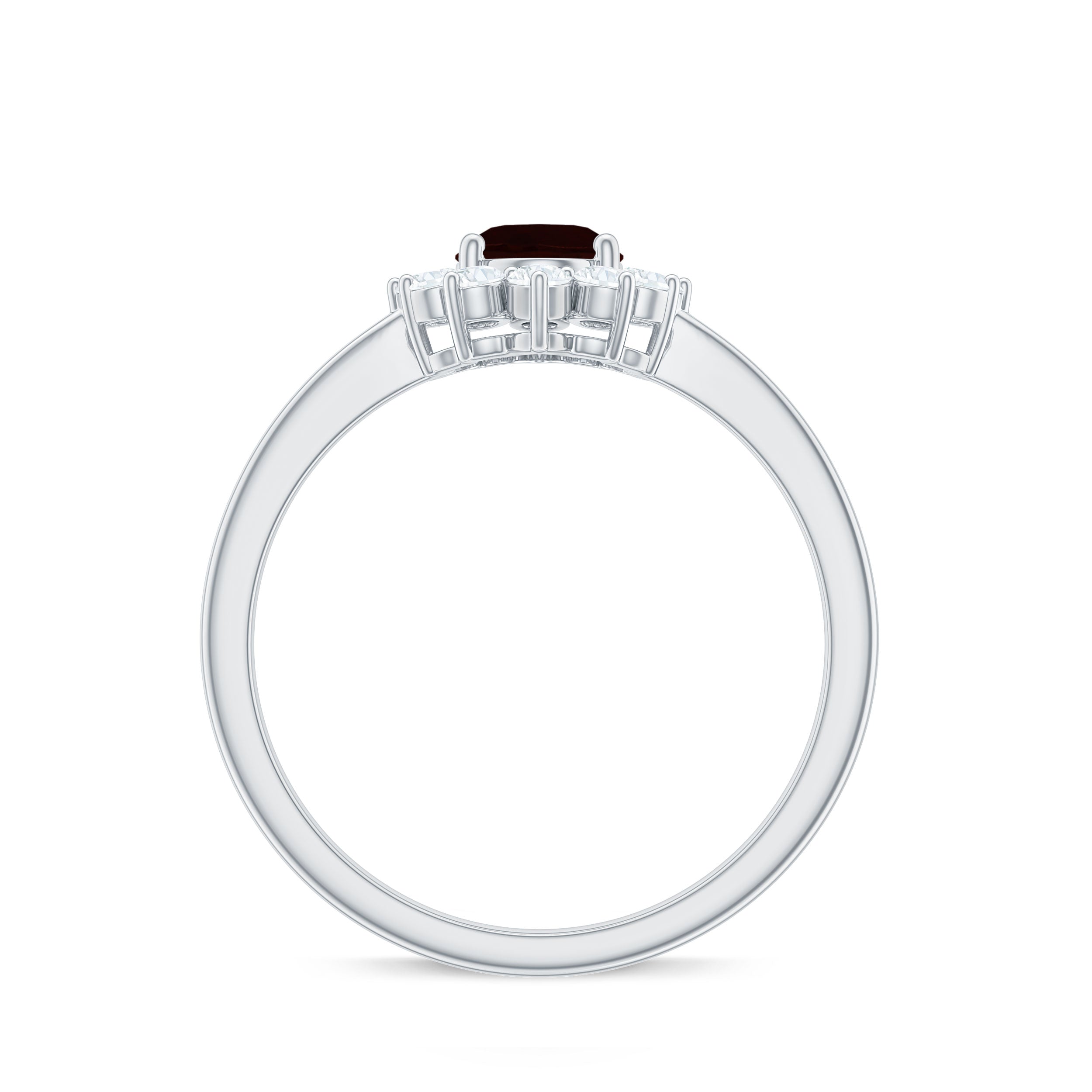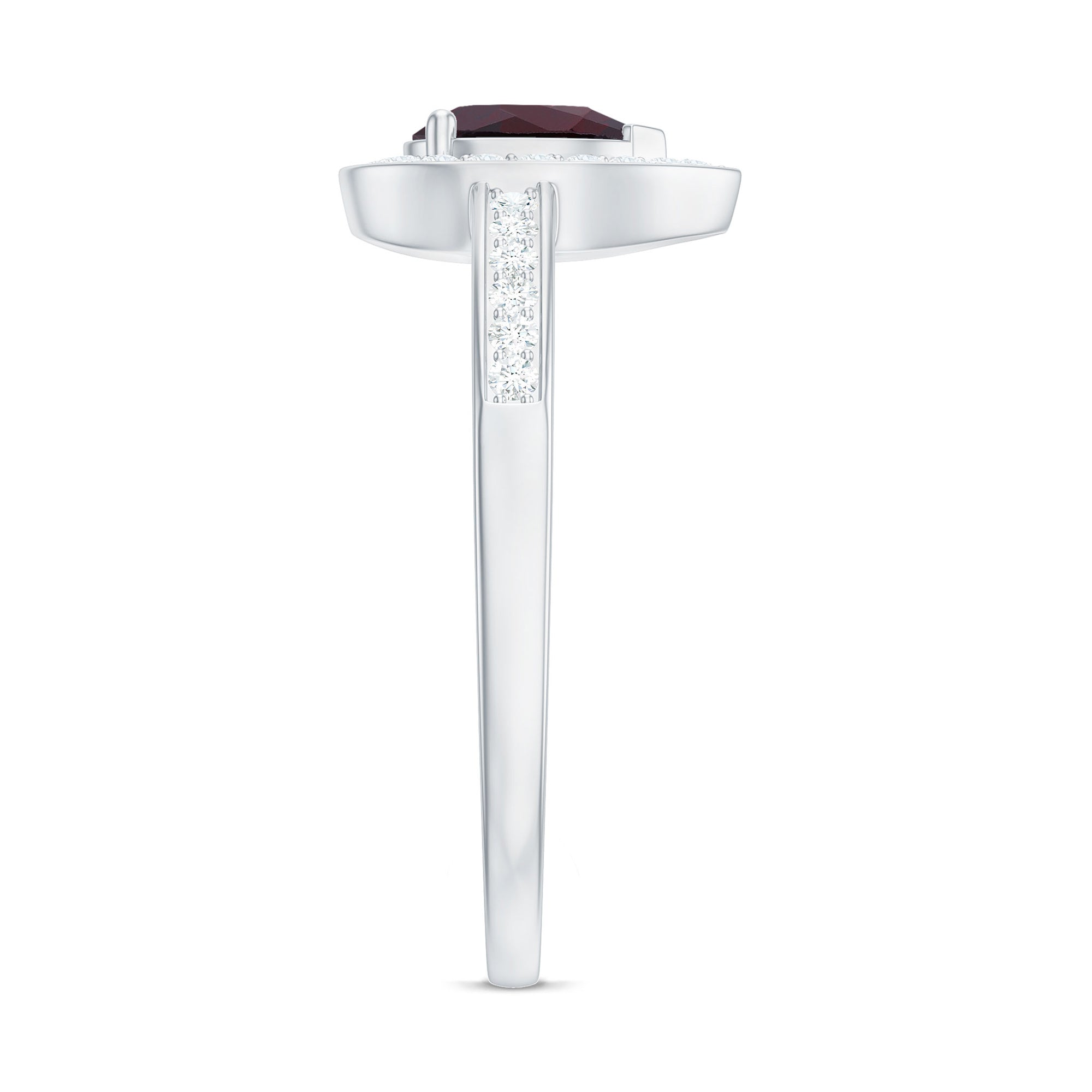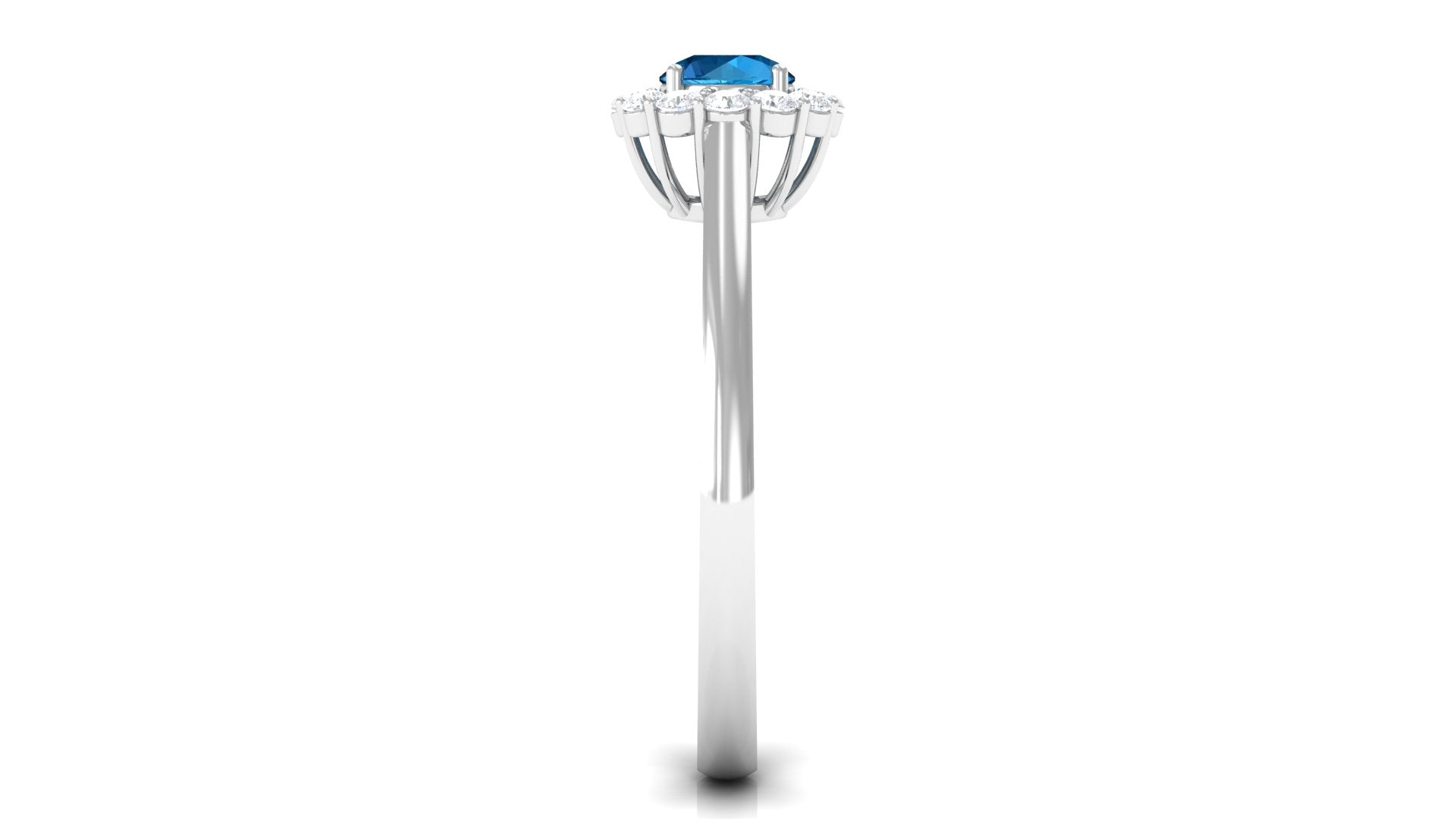 The pear shaped halo engagement ring is an attractive option for individuals who want a more distinctive and exquisite appearance. This design mixes traditional sophistication with a dash of modern flair with its teardrop-shaped center stone and the surrounding halo.